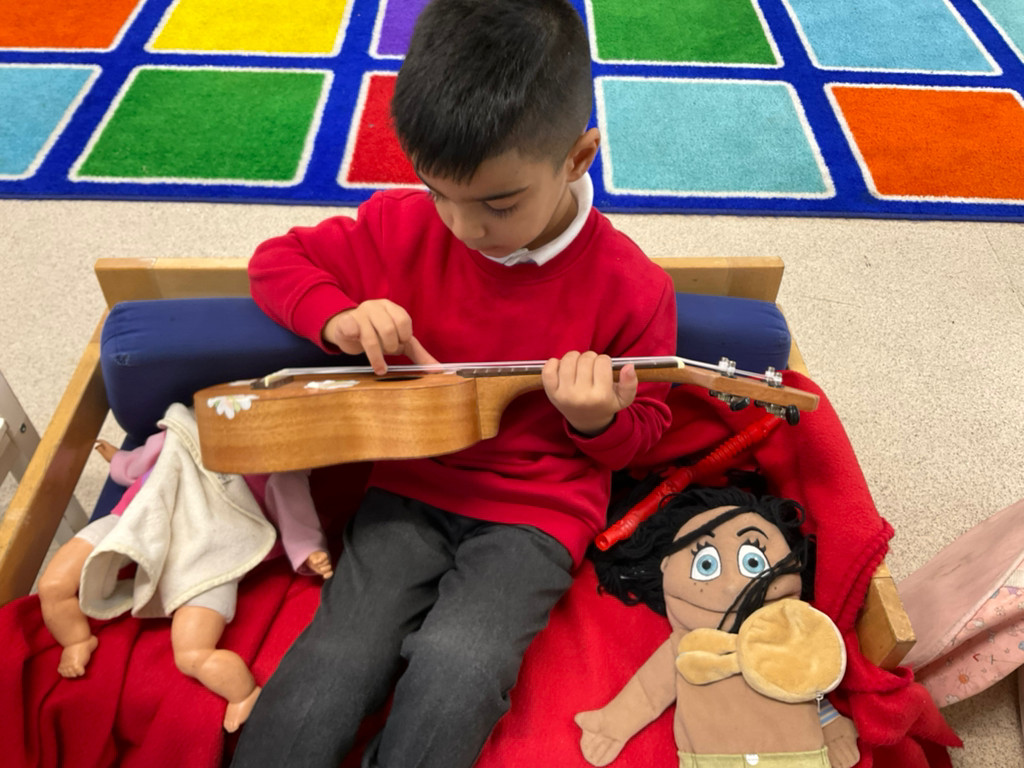 During Black History Month, the children explored African musical instruments, including the steel pan. The activity provided an engaging opportunity for them to experiment with rhythm, sound, and movement.