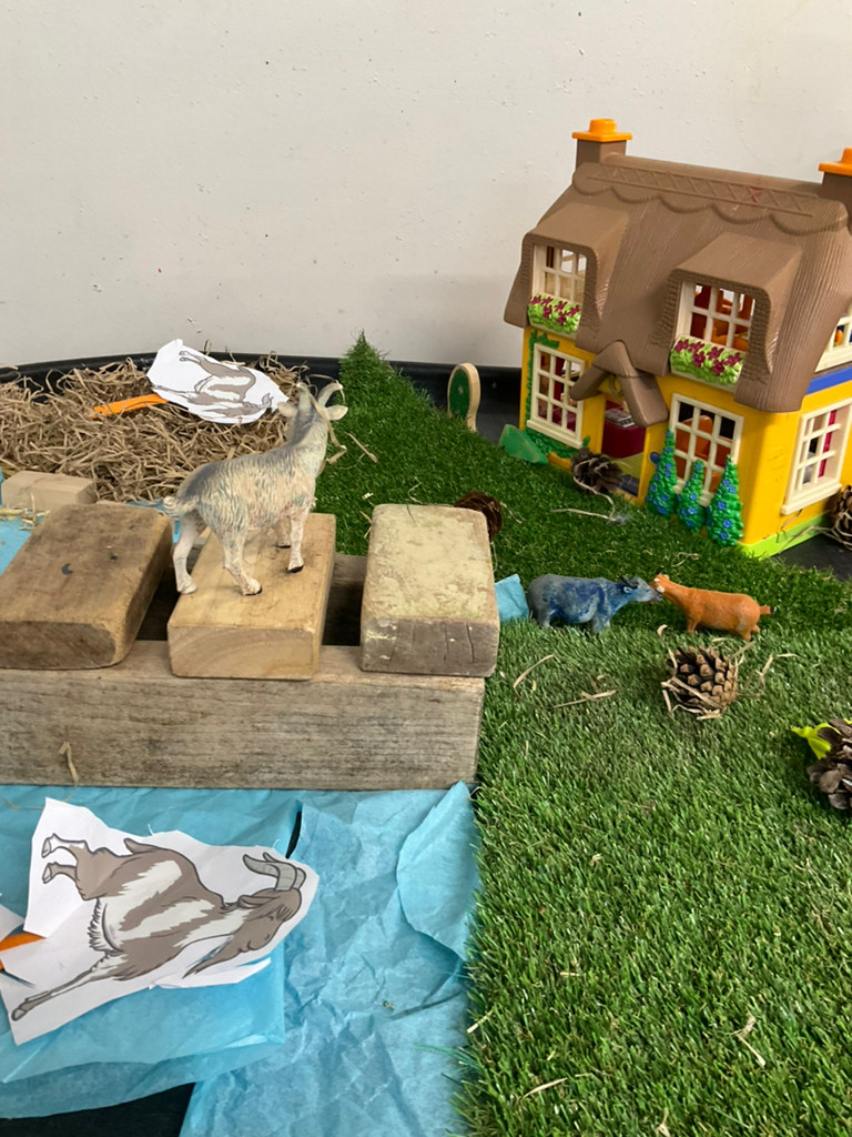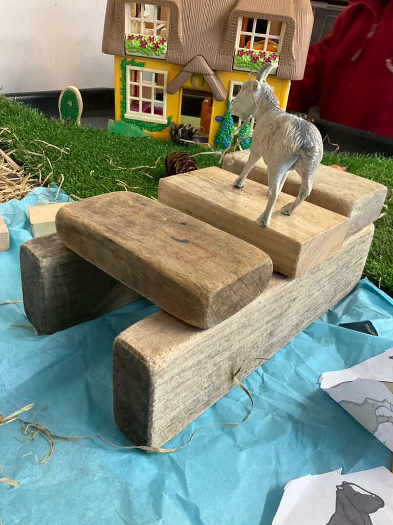 The children enjoyed listening to the story and took part in a range of hands-on activities to help bring the story to life. Through small world play, the children recreated the bridge and river scene, using different materials to build and explore. They showed curiosity and imagination as they retold parts of the story using props and figures.