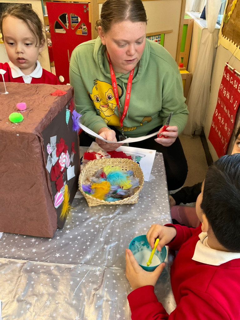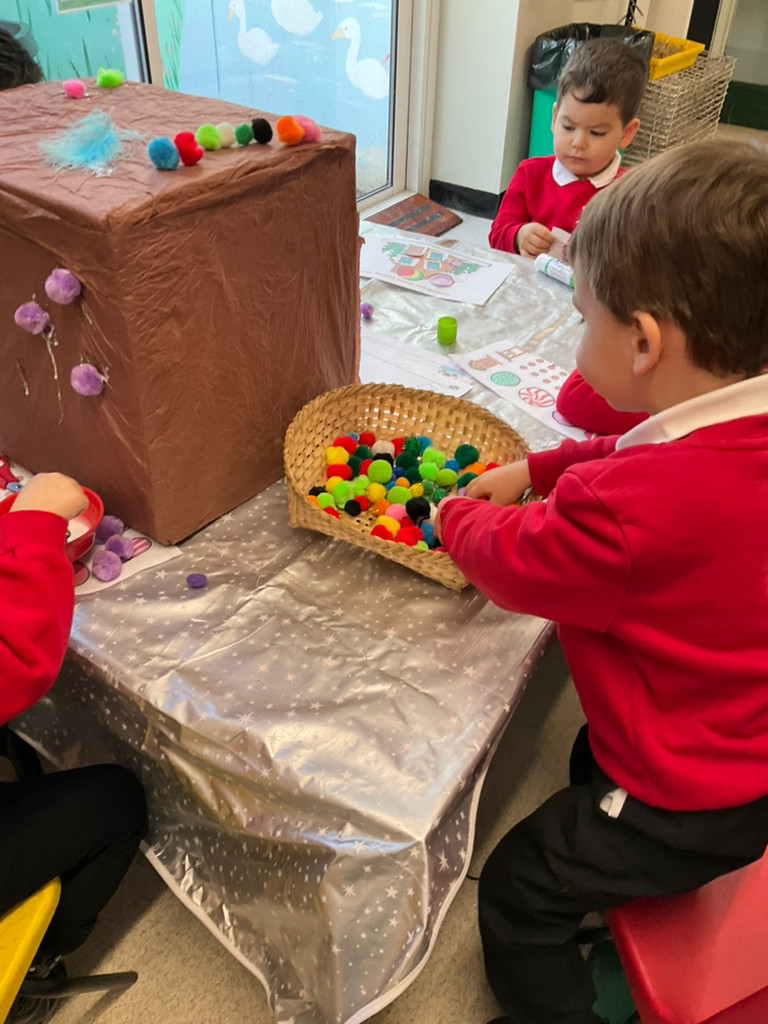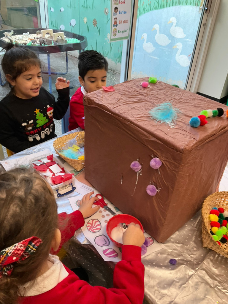 The nursery children showed enthusiasm and concentration as they selected materials, applied glue carefully, and arranged their resources thoughtfully. Through this creative experience, they were encouraged to express their ideas, make independent choices, and engage with the story in a meaningful and enjoyable way.