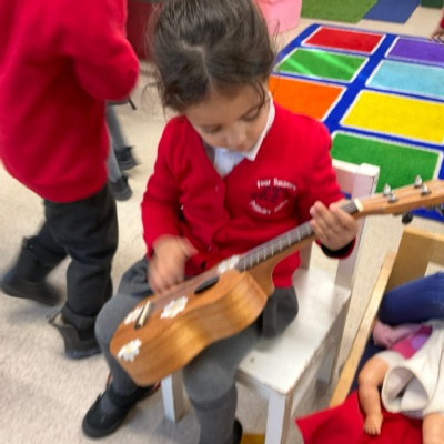 They showed a great deal of enthusiasm and curiosity throughout the session. They were particularly drawn to the shaker and the steel pan.