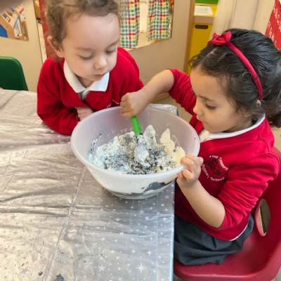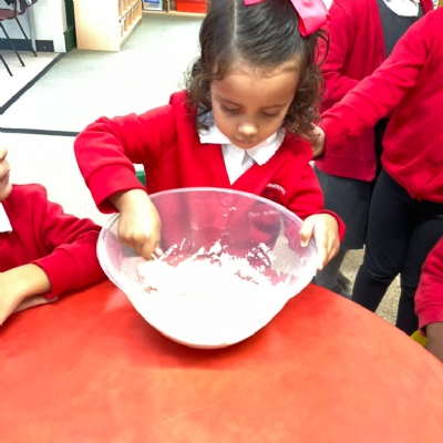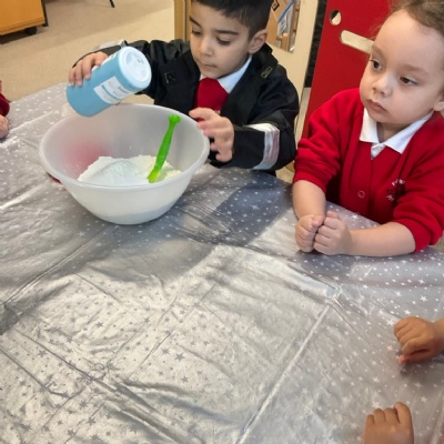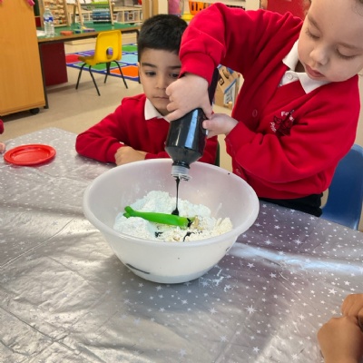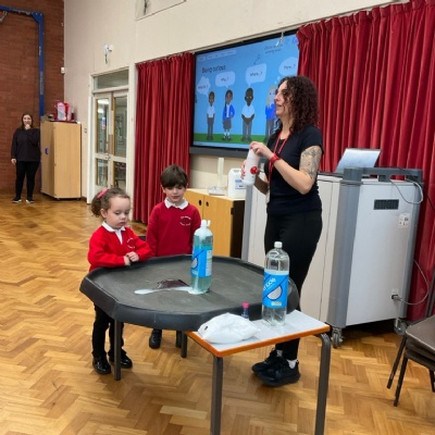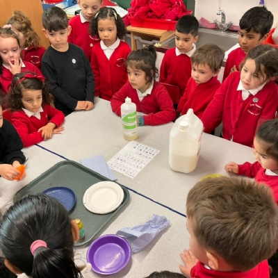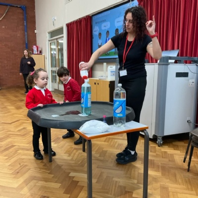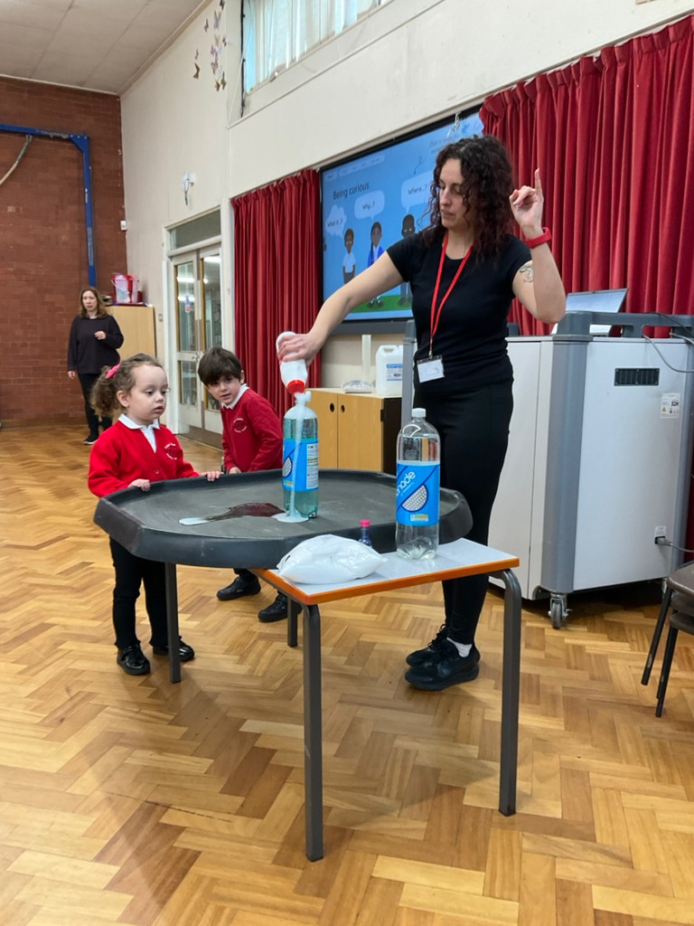Our Year 2 teacher, who is also the Science Lead, supported the learning by carrying out additional experiments with the children. One activity involved mixing borax, washing-up liquid, and baking soda, which allowed the children to observe changes that happen when different materials are combined. The children showed curiosity and enthusiasm as they watched the reaction and discussed what was happening.