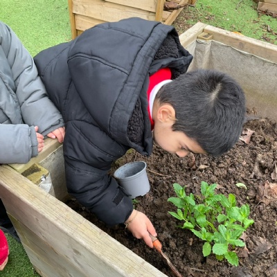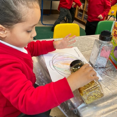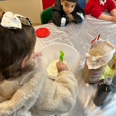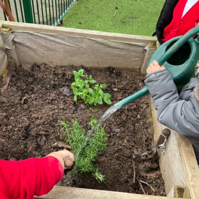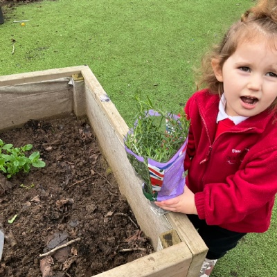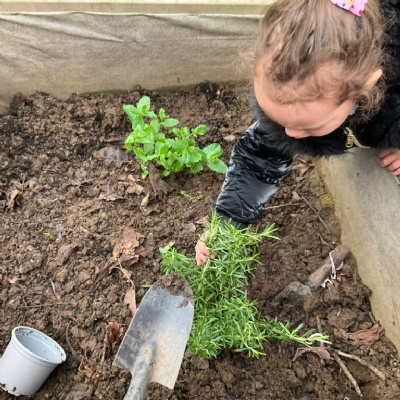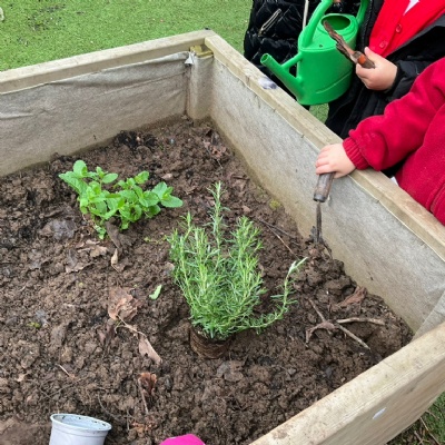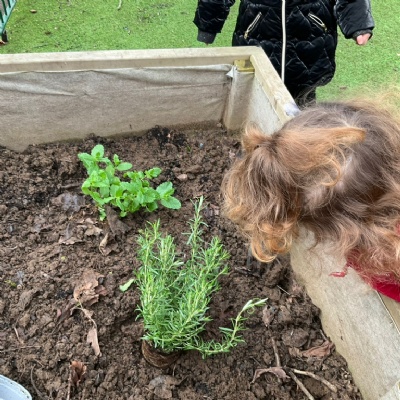 eat pride in caring for our garden - watering the plants every morning and afternoon, and using their sensesto touch and smell the herbs growing there.In addition to our nature-based learning, the nursery children have been busy practising letter formation using paper, whiteboards, and sensory trays filled with materials such as glitter and sand.