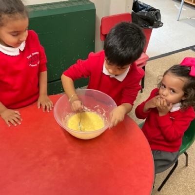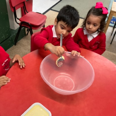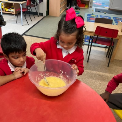 Our nursery children were so excited about making cupcakes. We went through the ingredients and how much we needed. Then, we talked about what order we are mixing the ingredients. After that, the children put all the ingredients into a bowl and started to mix them. They said that it smelled delicious and tasty. Then the cake was ready to go to the oven. The children then decorated their cakes and took them home.