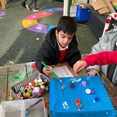 vely engaged in our mud kitchen area that supports their creatuvity, language and comunnication skills. They have made blossom cakes and flower soup.We have also learned how to save our planet. The children worked hard to sort out the recycling and non-recycling items. We had a discussion where England is on the planet. The in our art and craft session the children used their creativity to make a planet out of paper plate and paint.