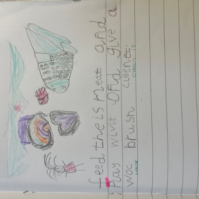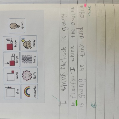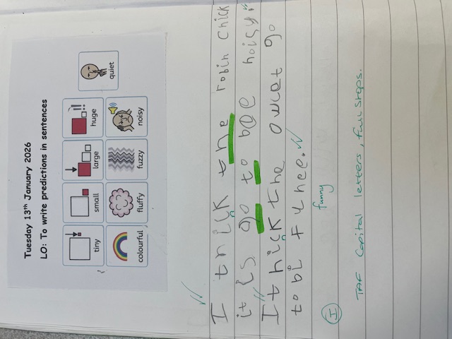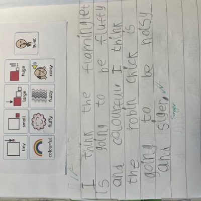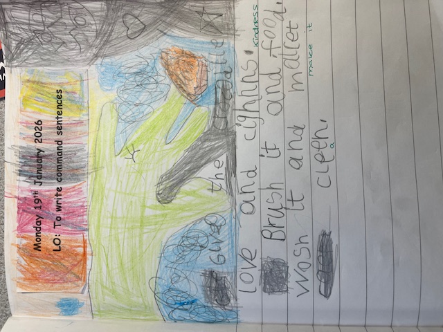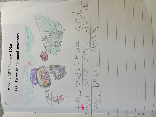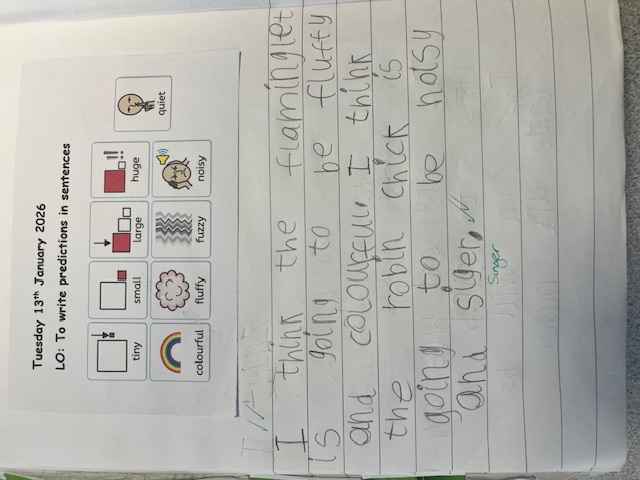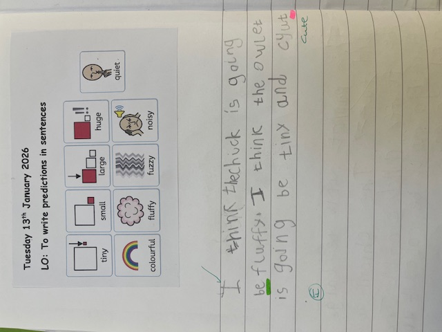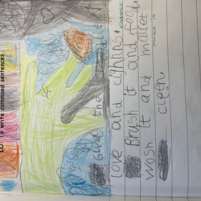 In English, our core book is The Odd Egg. The children have been writing predictions and writing commands to the duck.