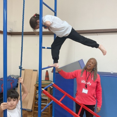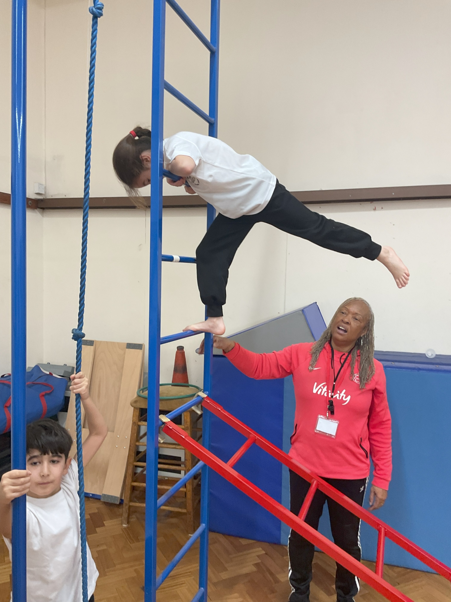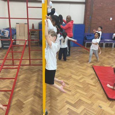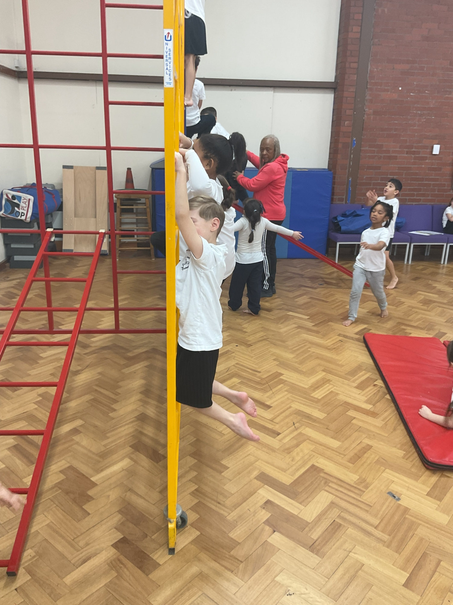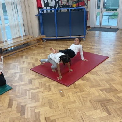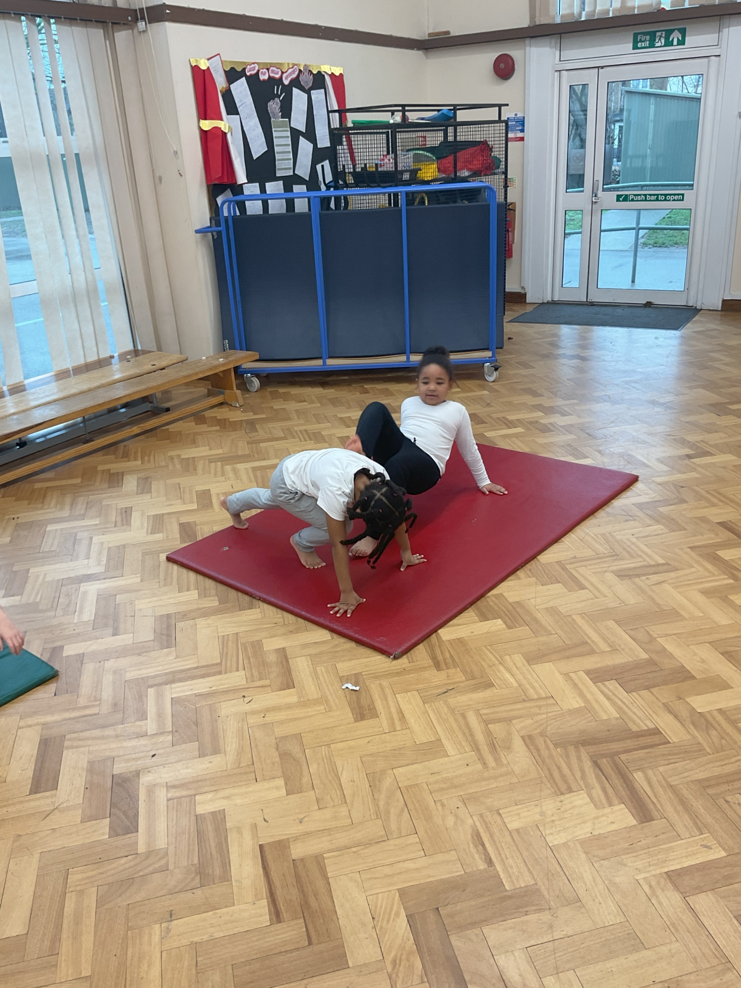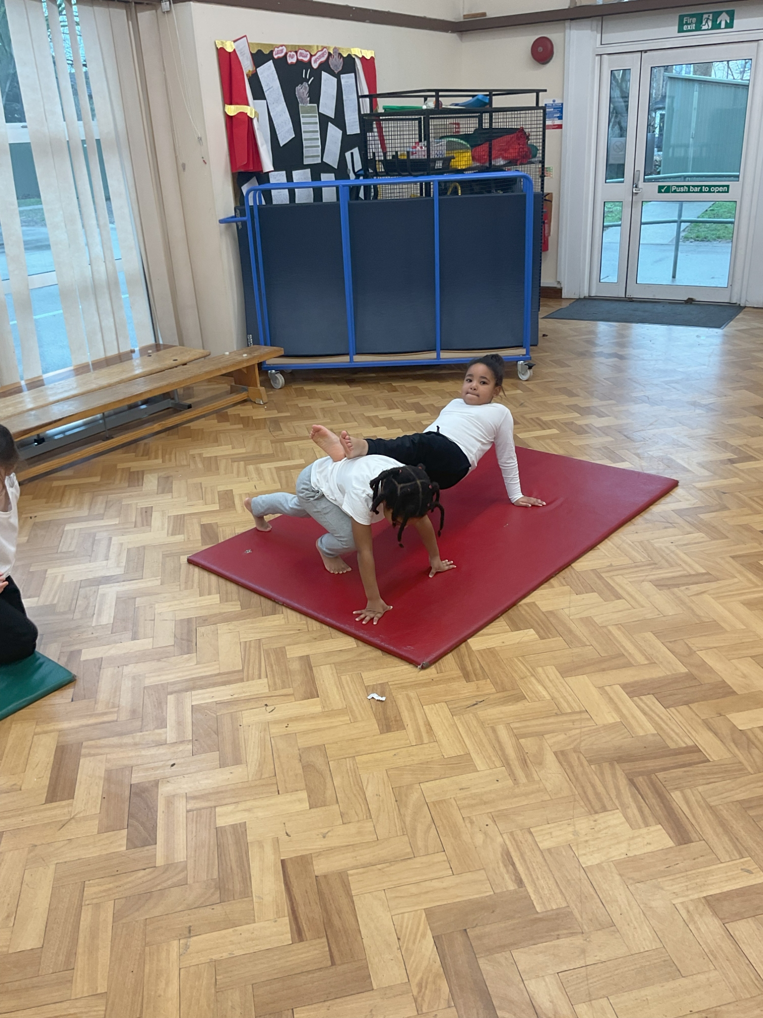 This term in PE, we have been exploring and developing basic gymnastics actions on the floor, such as jumping, rolling, balancing, travelling and using low apparatus.