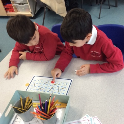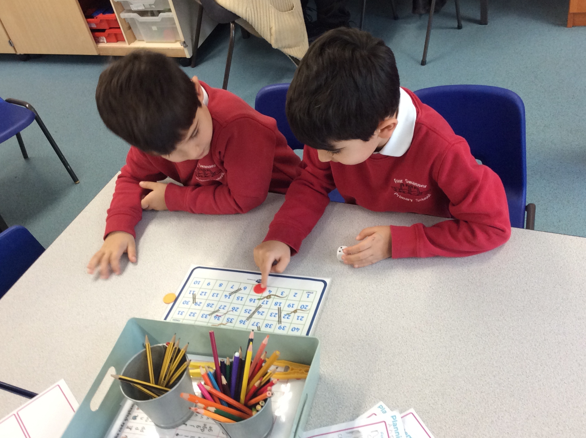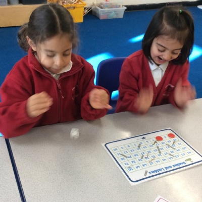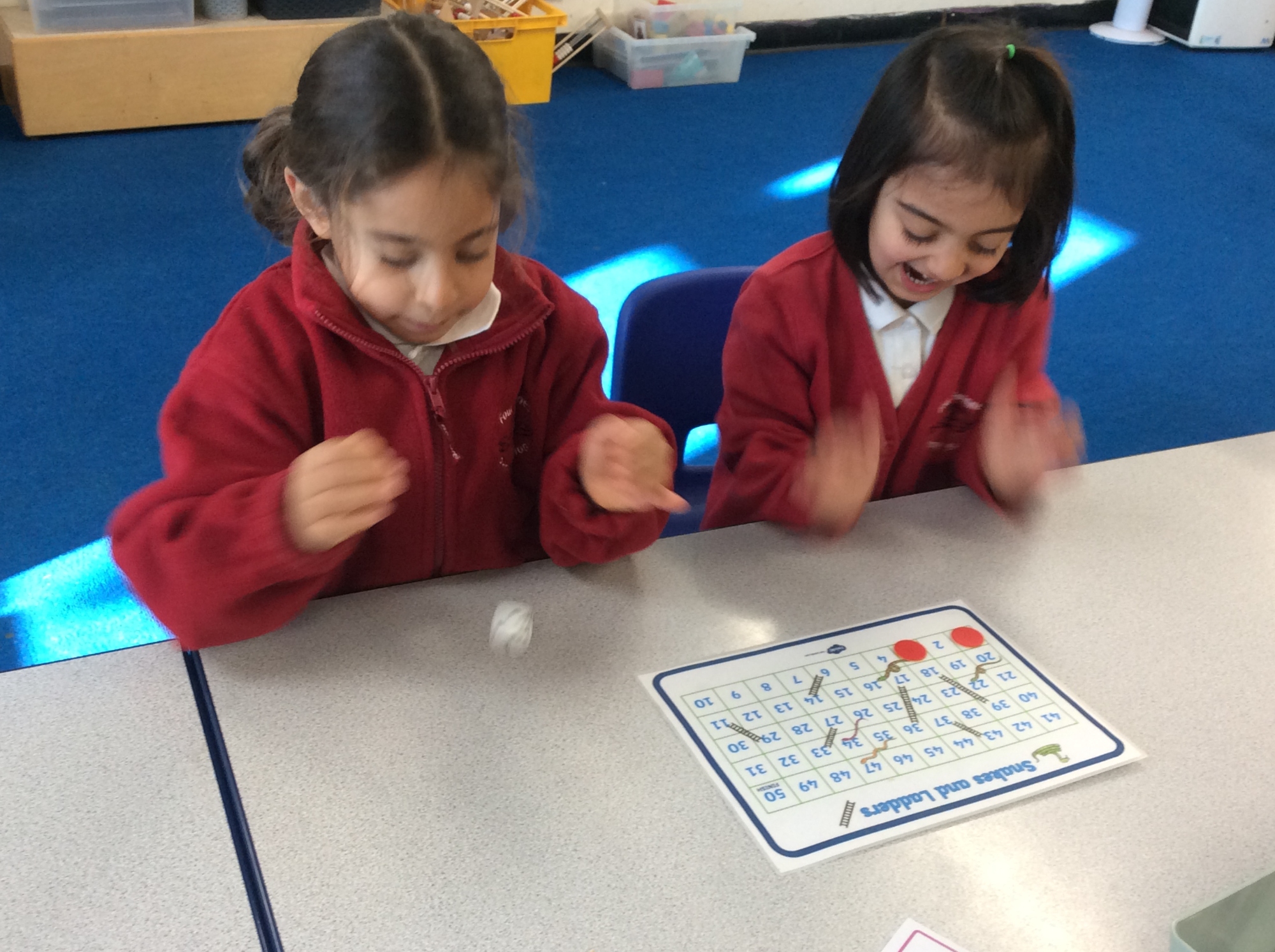 We enjoy Maths in many ways. We play Snakes and Ladders to help us count and recognise numbers as well as take turns. We also use a range of manipulatives to help us with our learning.