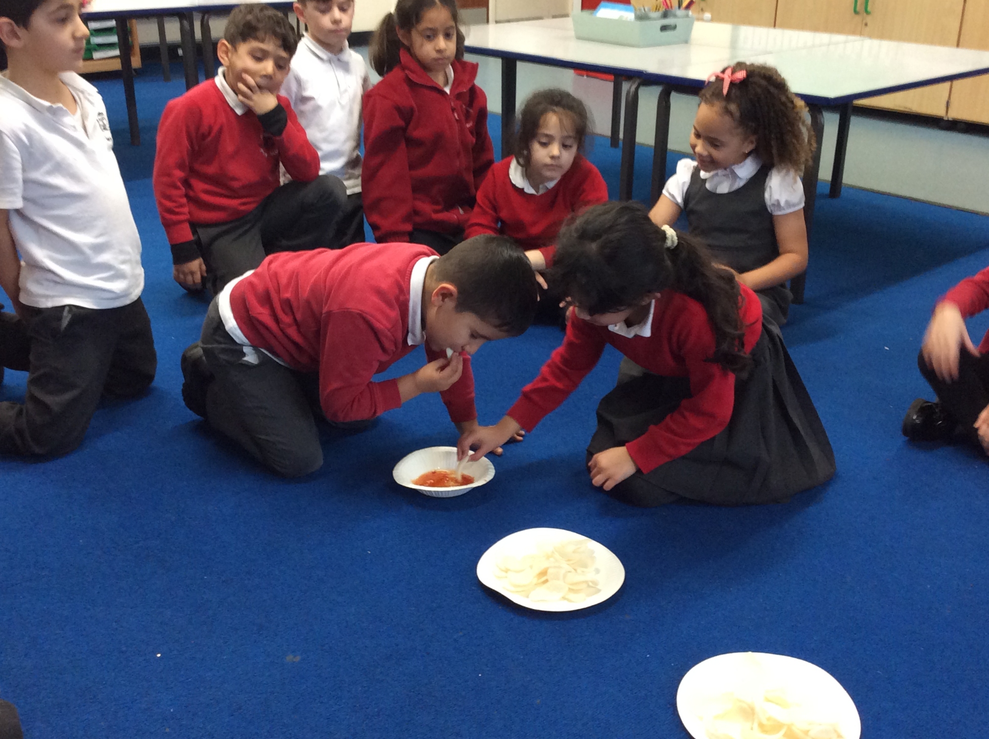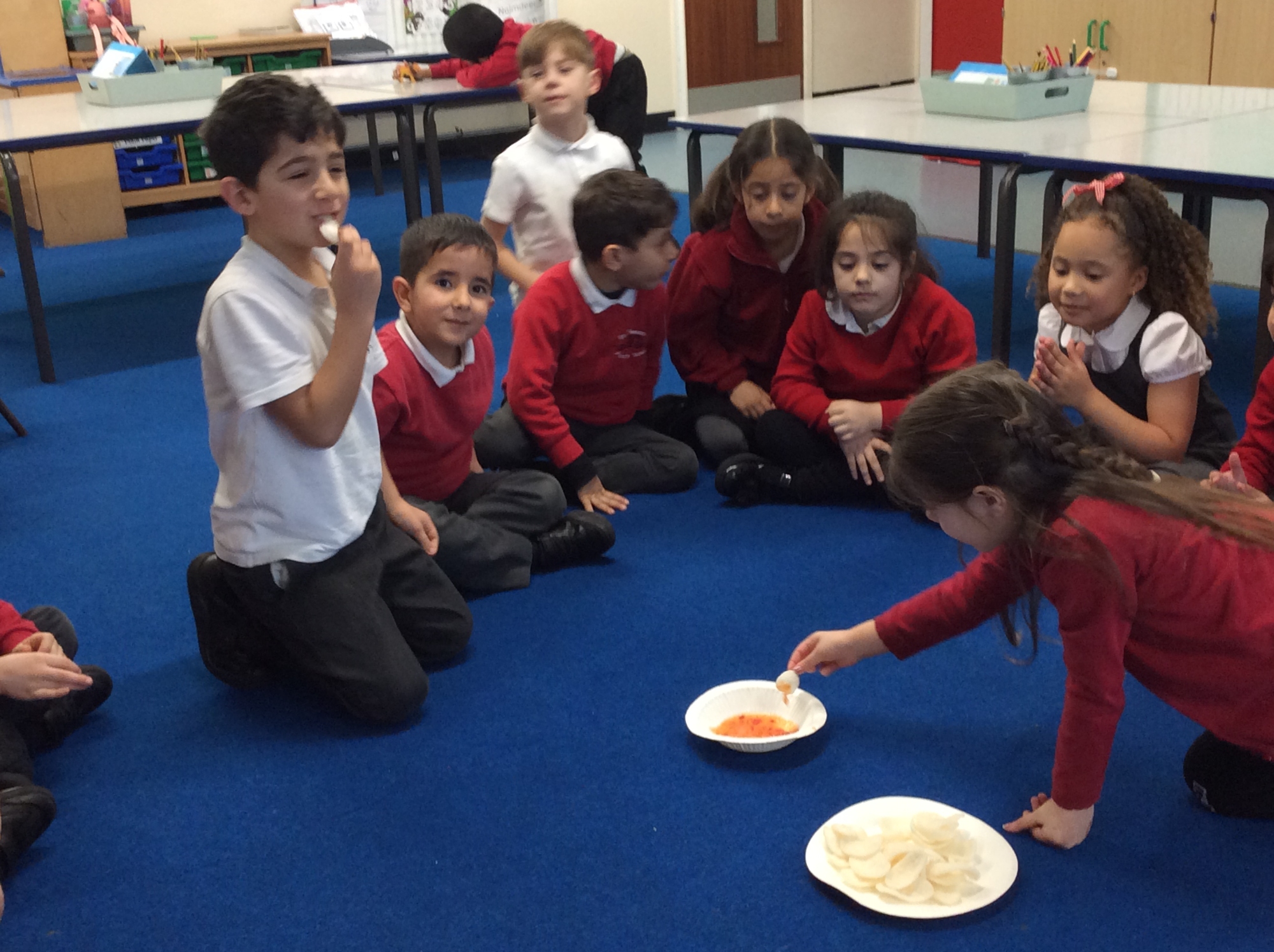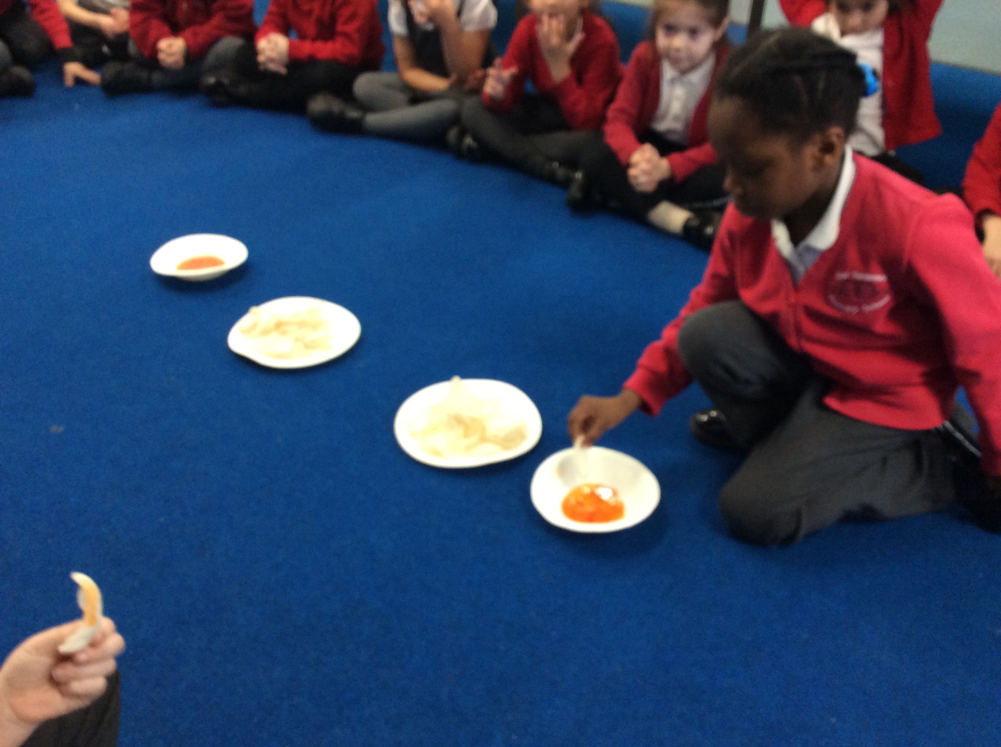 As the Chinese New Year is approaching, we thought it would be nice to taste some prawn crackers with sweet chilli sauce and listen to the story 'The Great Race'.