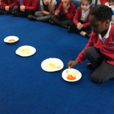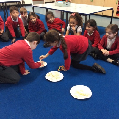 Today the children made their own fruit salad. They learnt how to use a knife to chop the fruit they wanted in their fruit salad. The children then presented their fruit salad before they ate it,