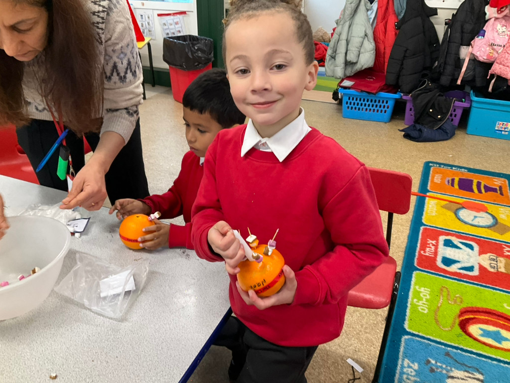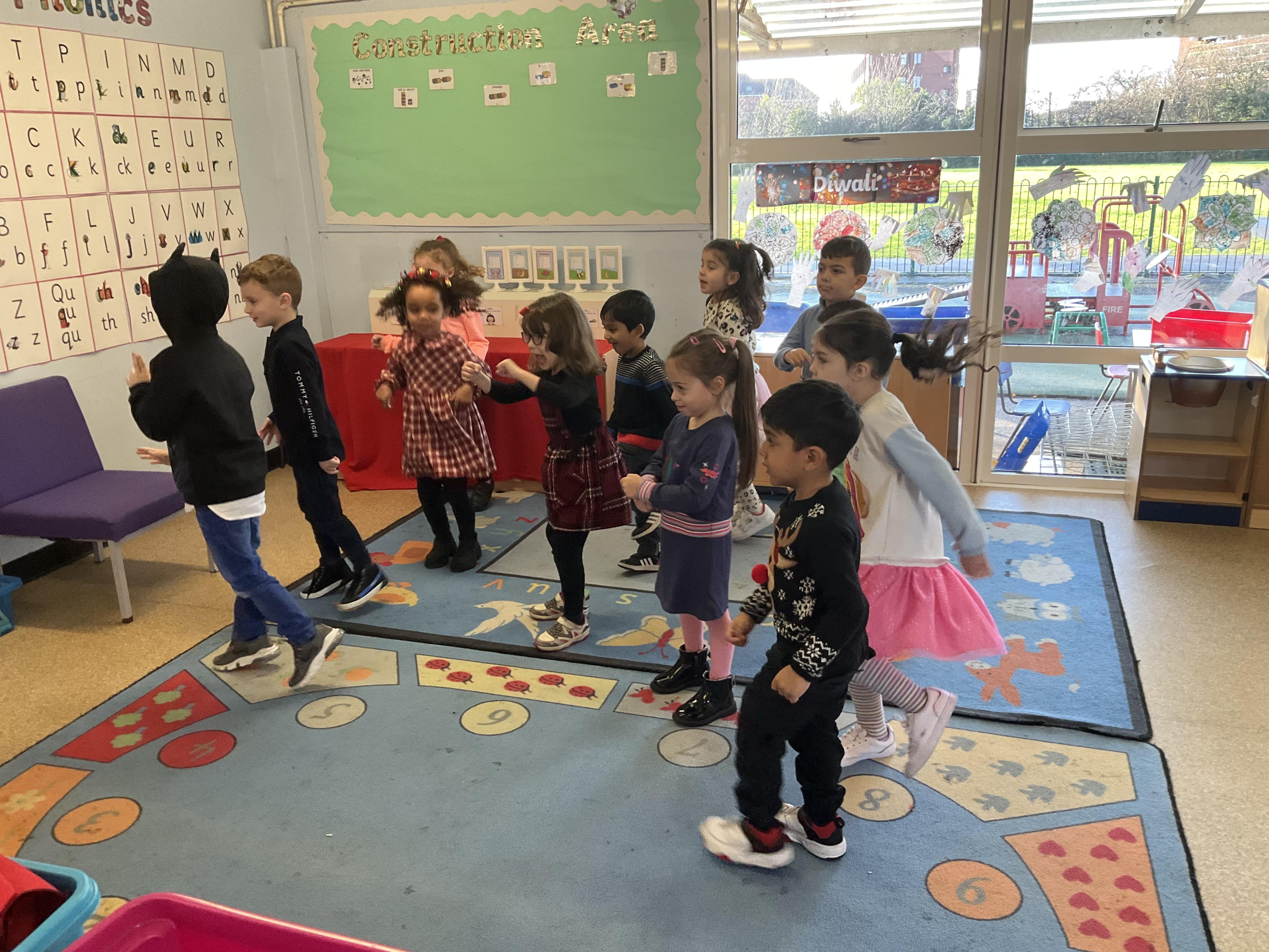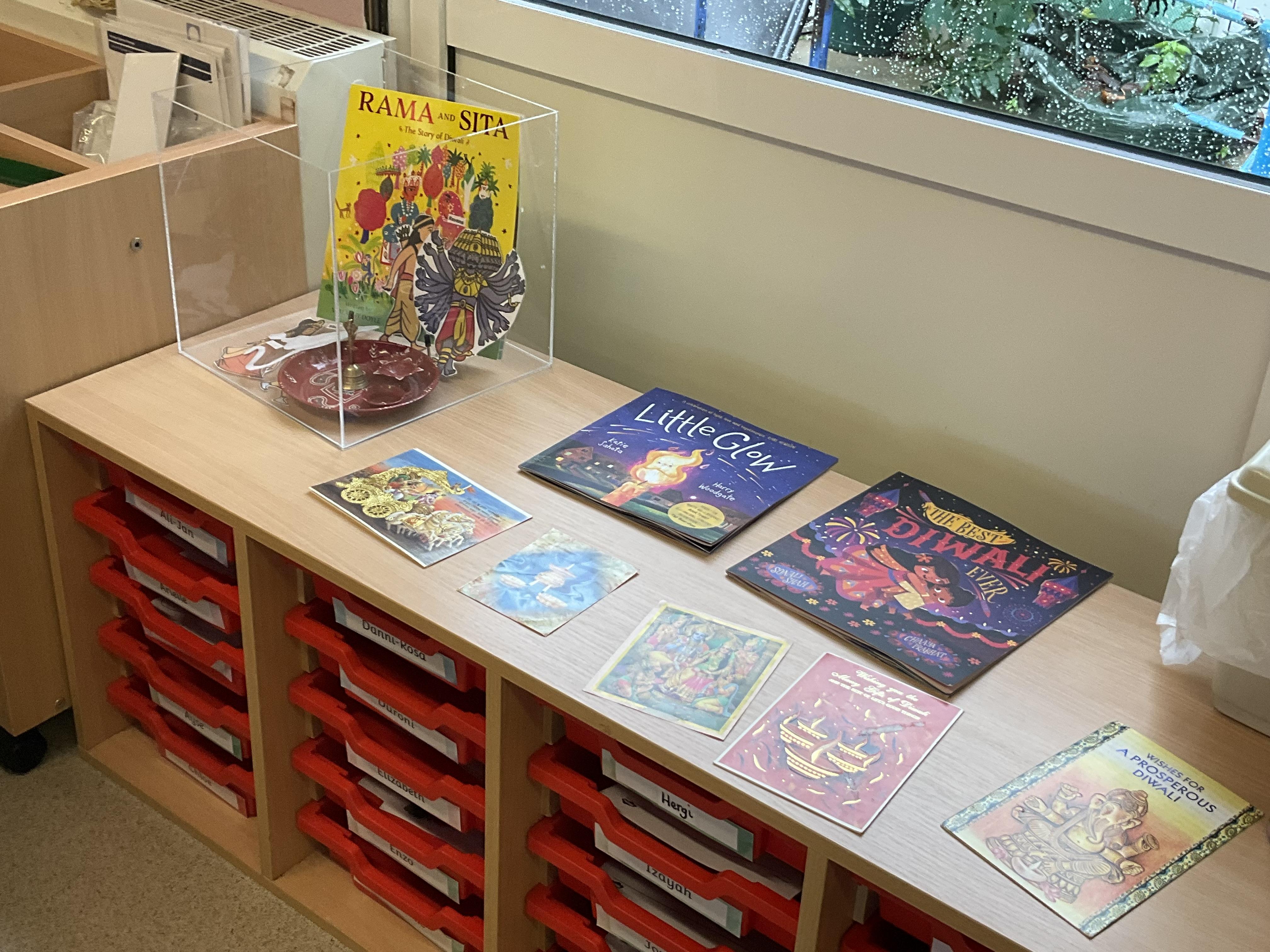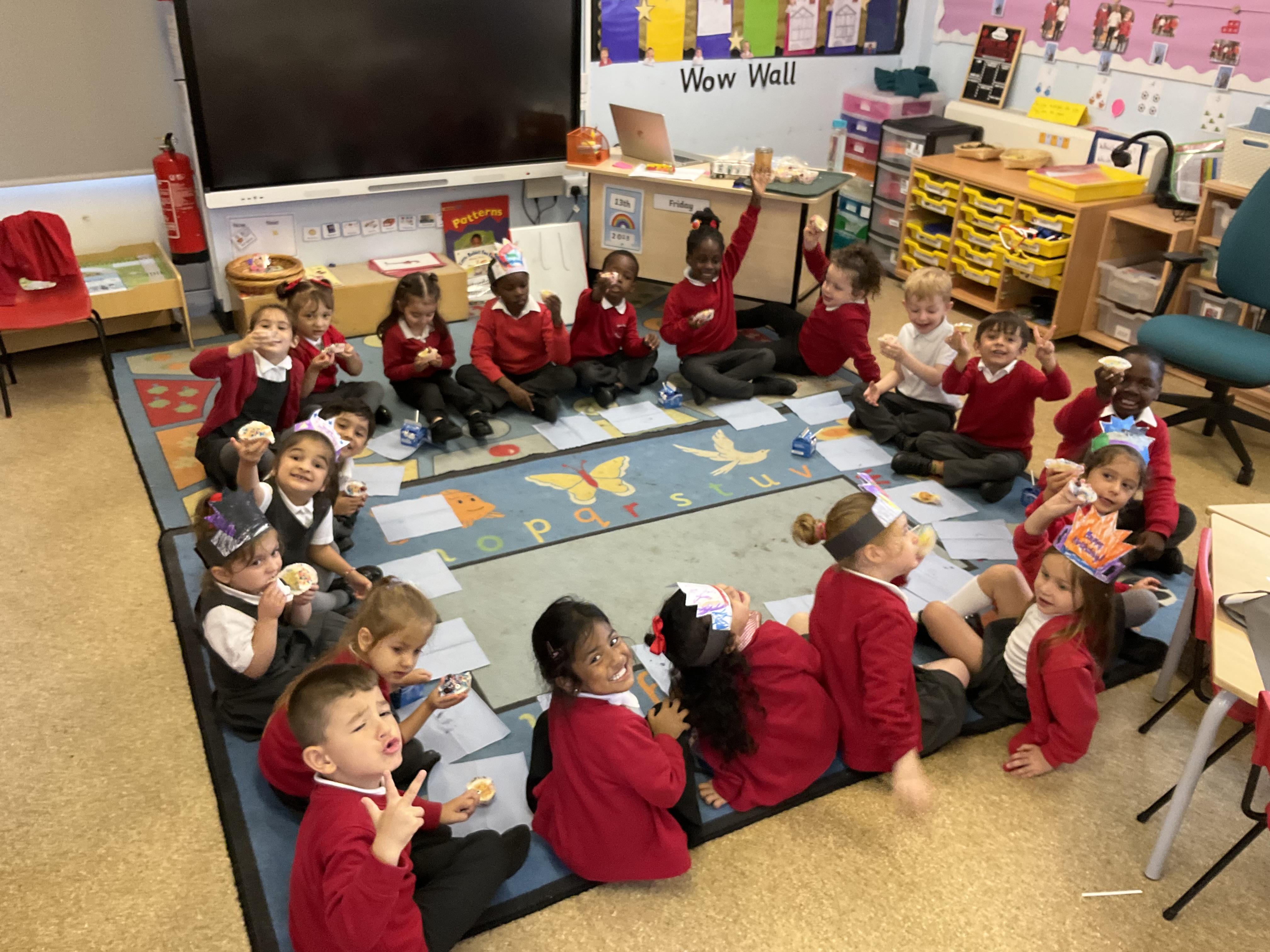 Today we celebrated Diwali, We made Rangoli patterns, sculpted clay divas, had a Diwali feast of samosas, pakoras, and bhajis and then we learnt a diwali dance. Mrs Dhanjal from Year 3 came to talk to the children about how she celebrates Diwali at home.
