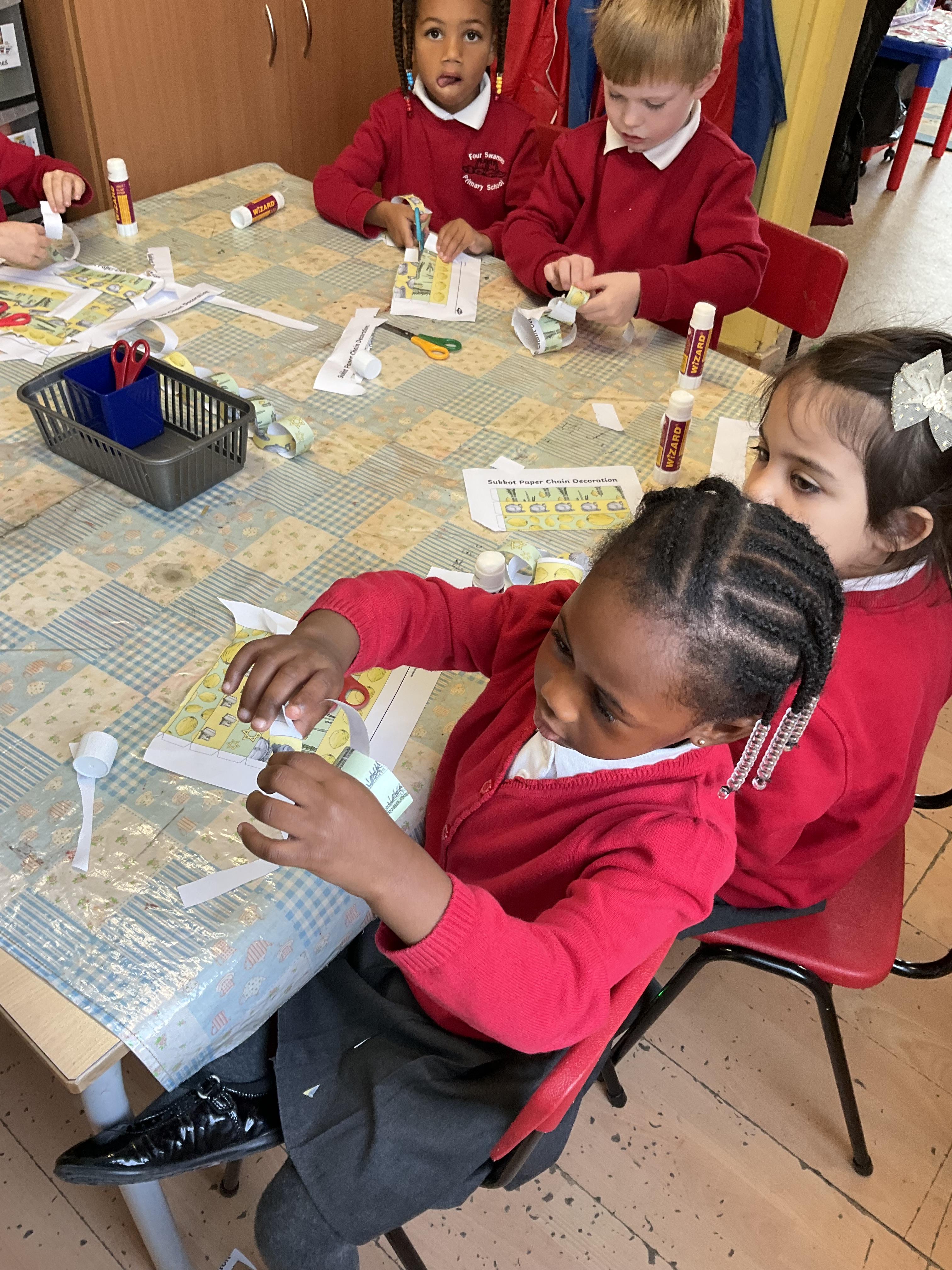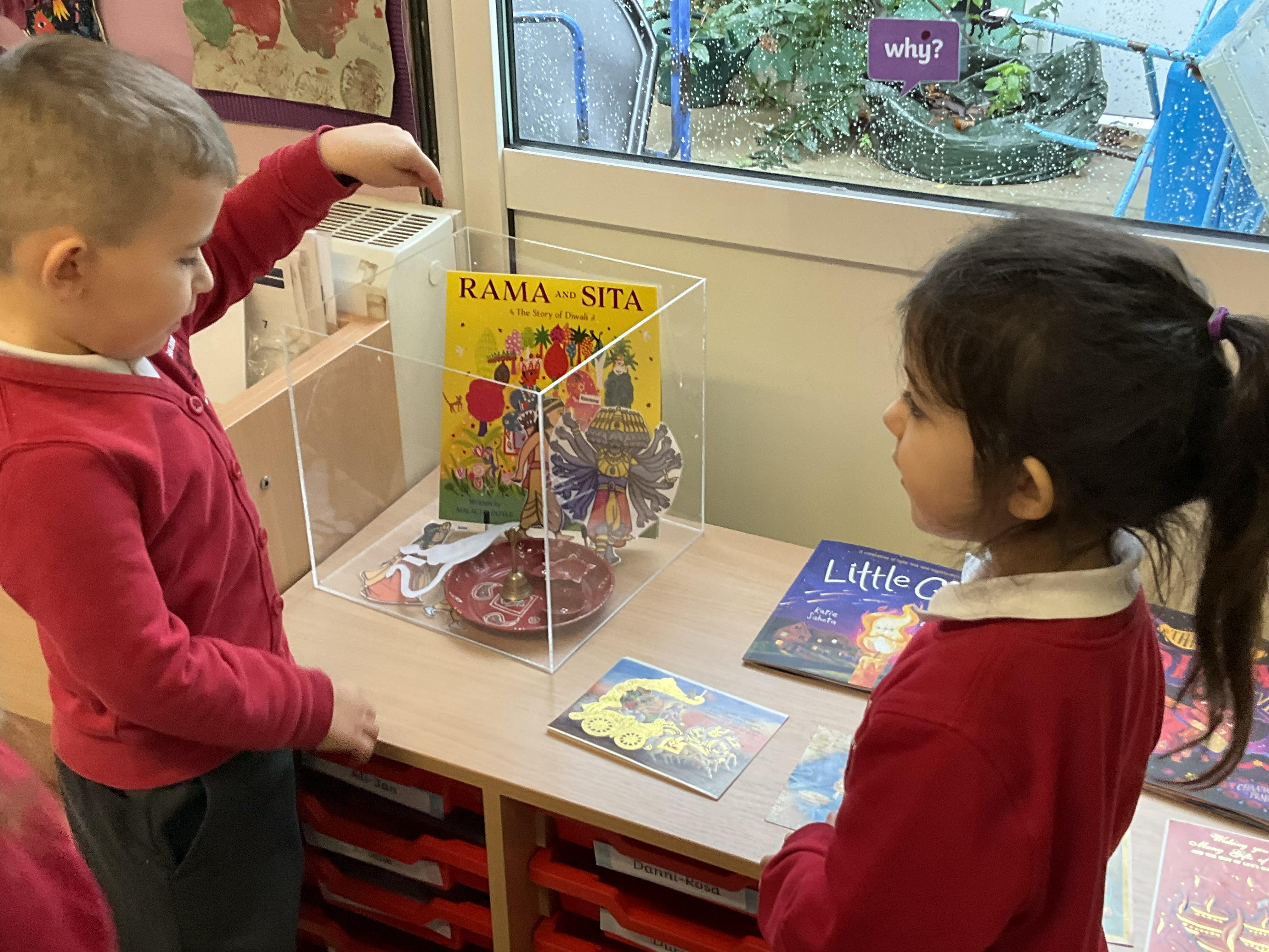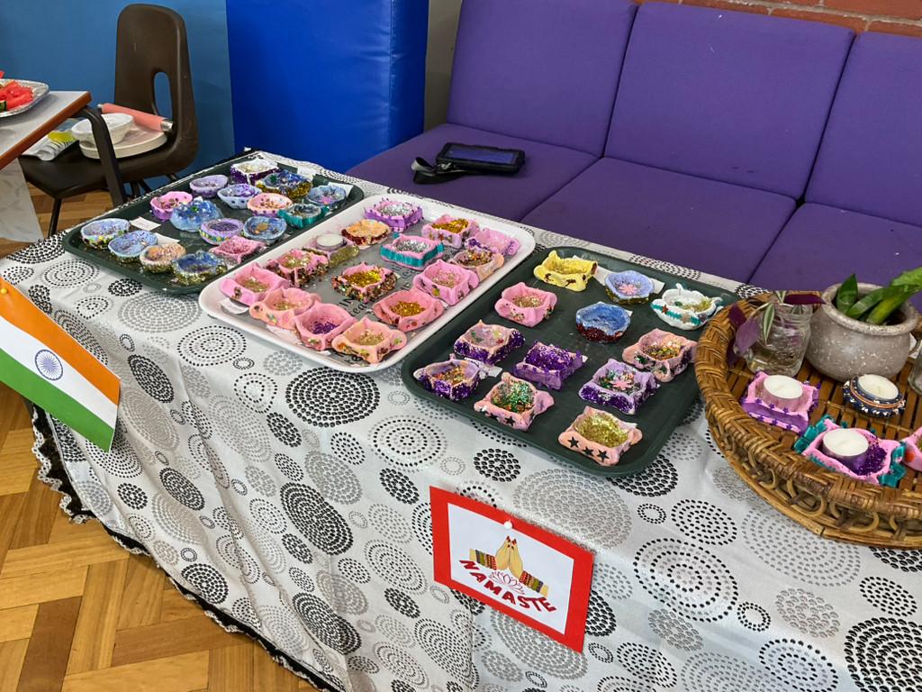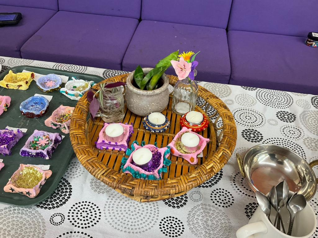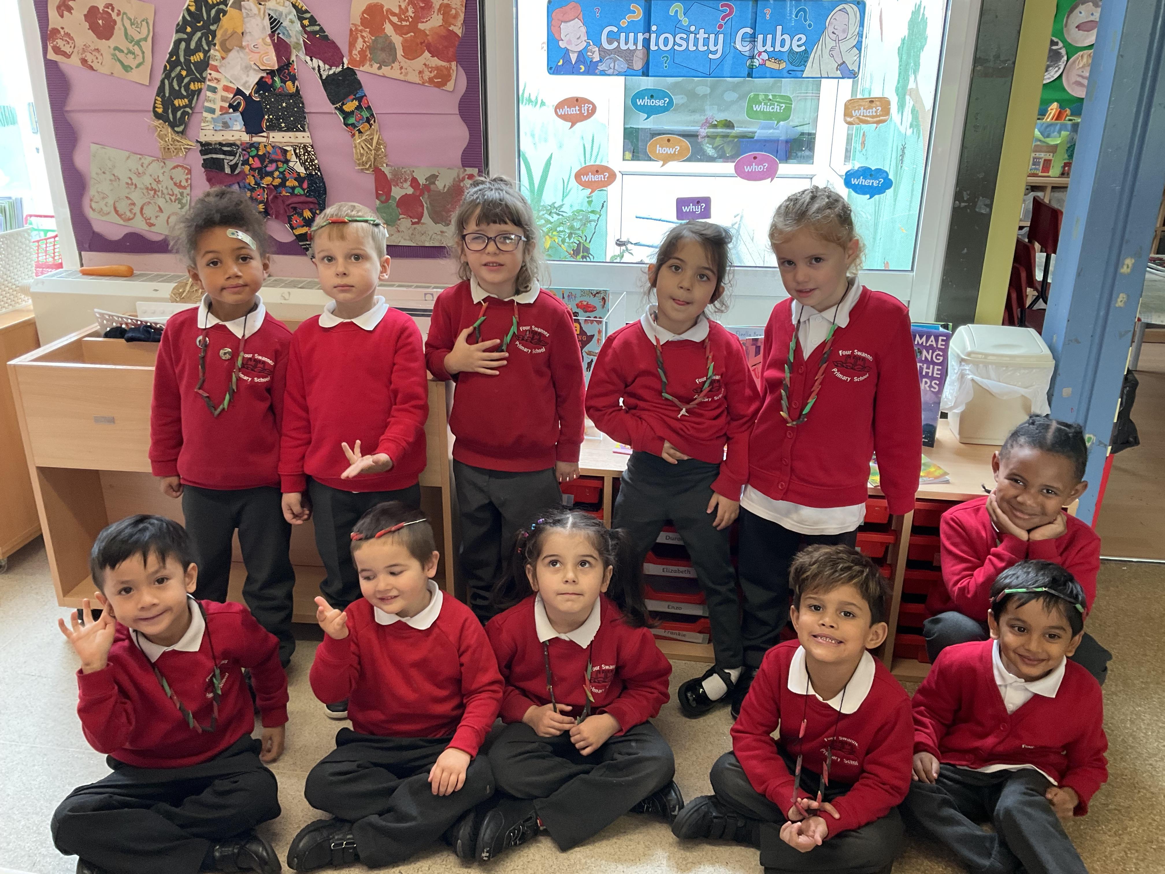 Today we celebrated Diwali, We made Rangoli patterns, sculpted clay divas, had a Diwali feast of samosas, pakoras, and bhajis and then we learnt a diwali dance. Mrs Dhanjal from Year 3 came to talk to the children about how she celebrates Diwali at home.