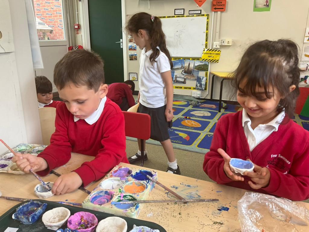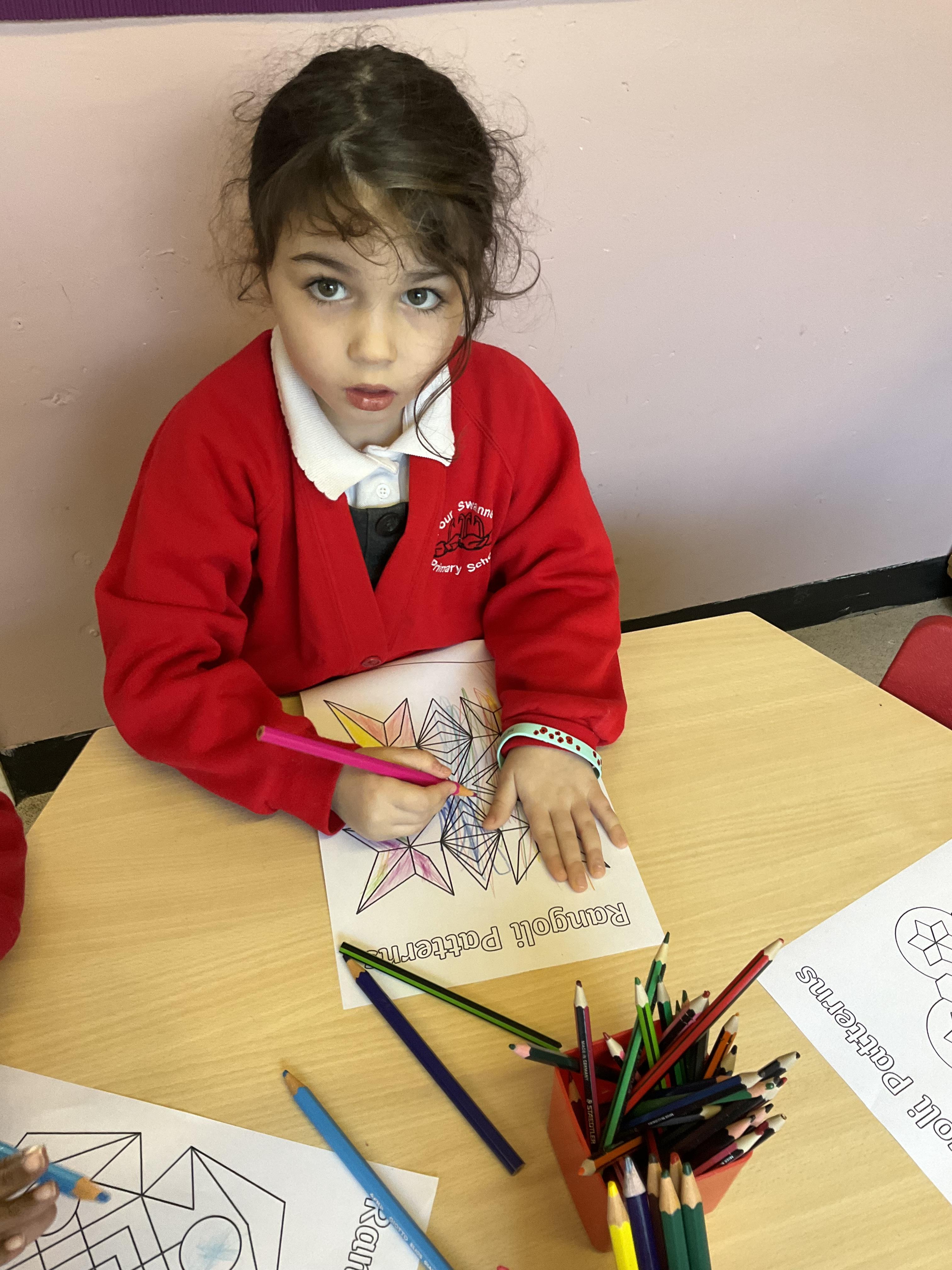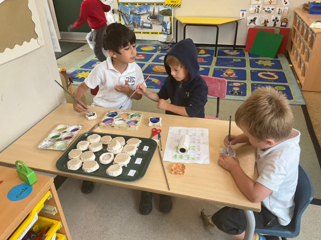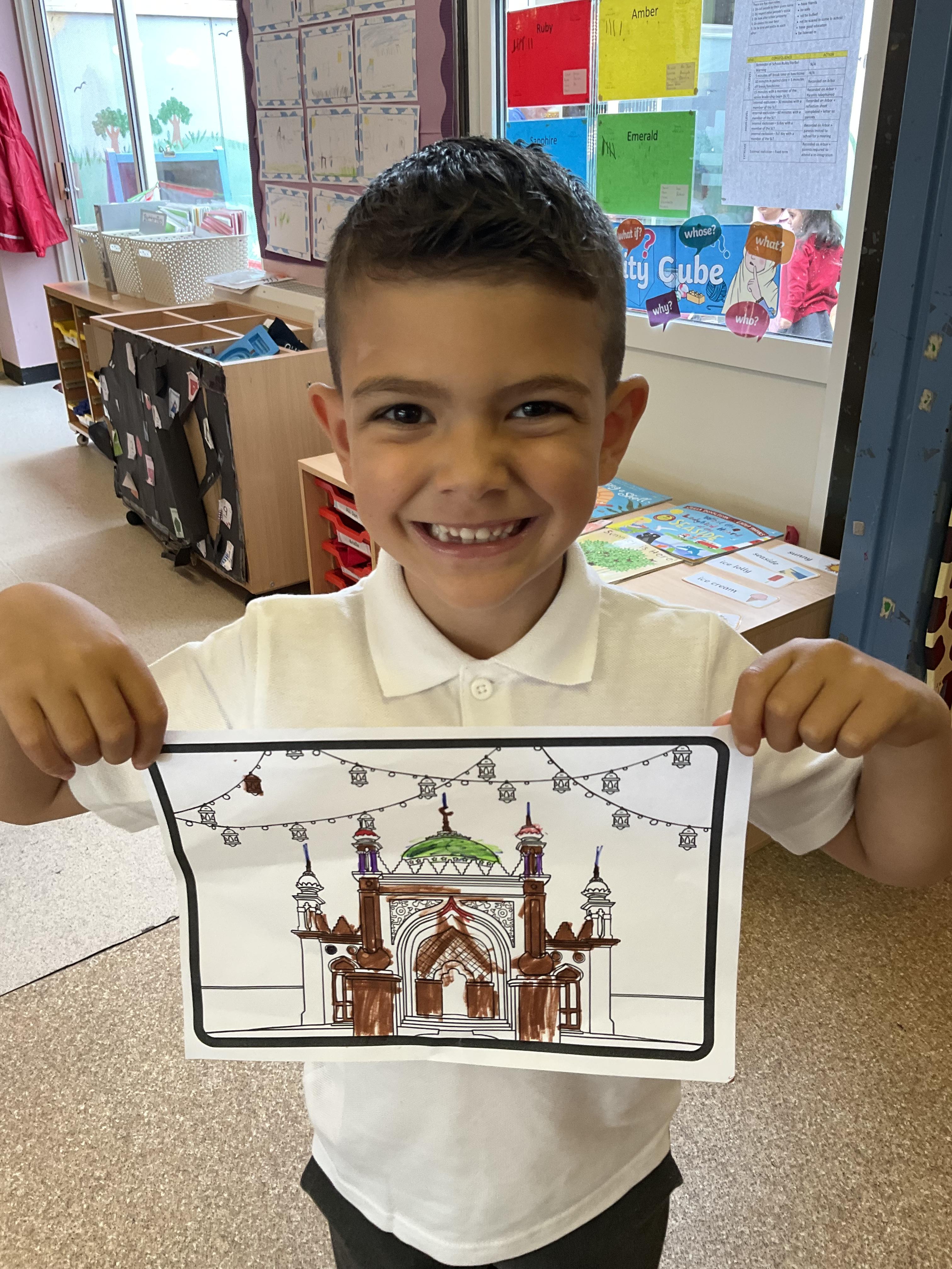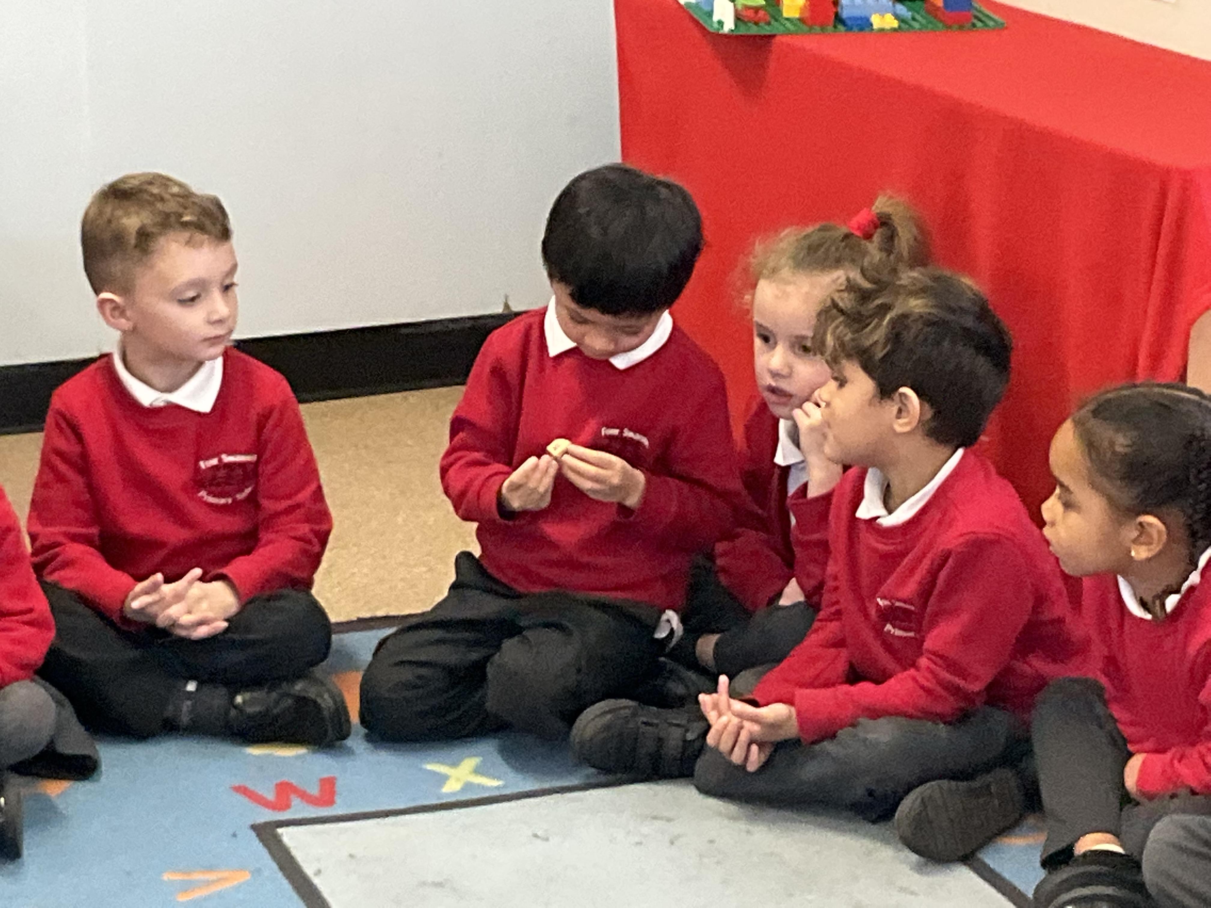 Today we celebrated Diwali, We made Rangoli patterns, sculpted clay divas, had a Diwali feast of samosas, pakoras, and bhajis and then we learnt a diwali dance. Mrs Dhanjal from Year 3 came to talk to the children about how she celebrates Diwali at home.