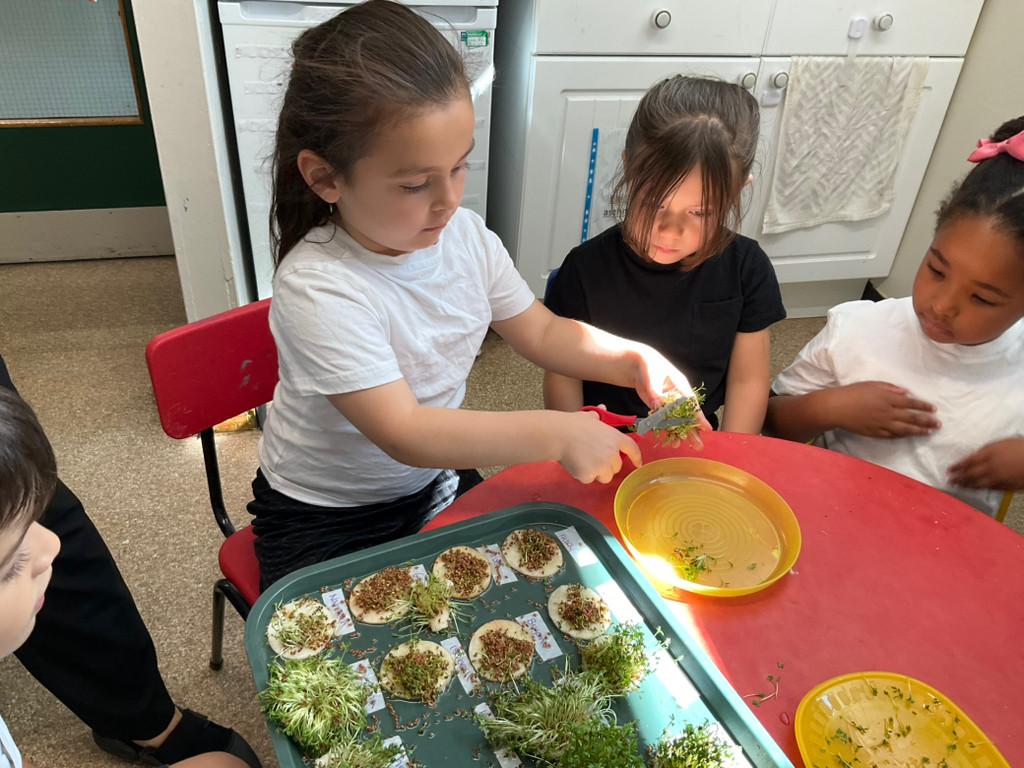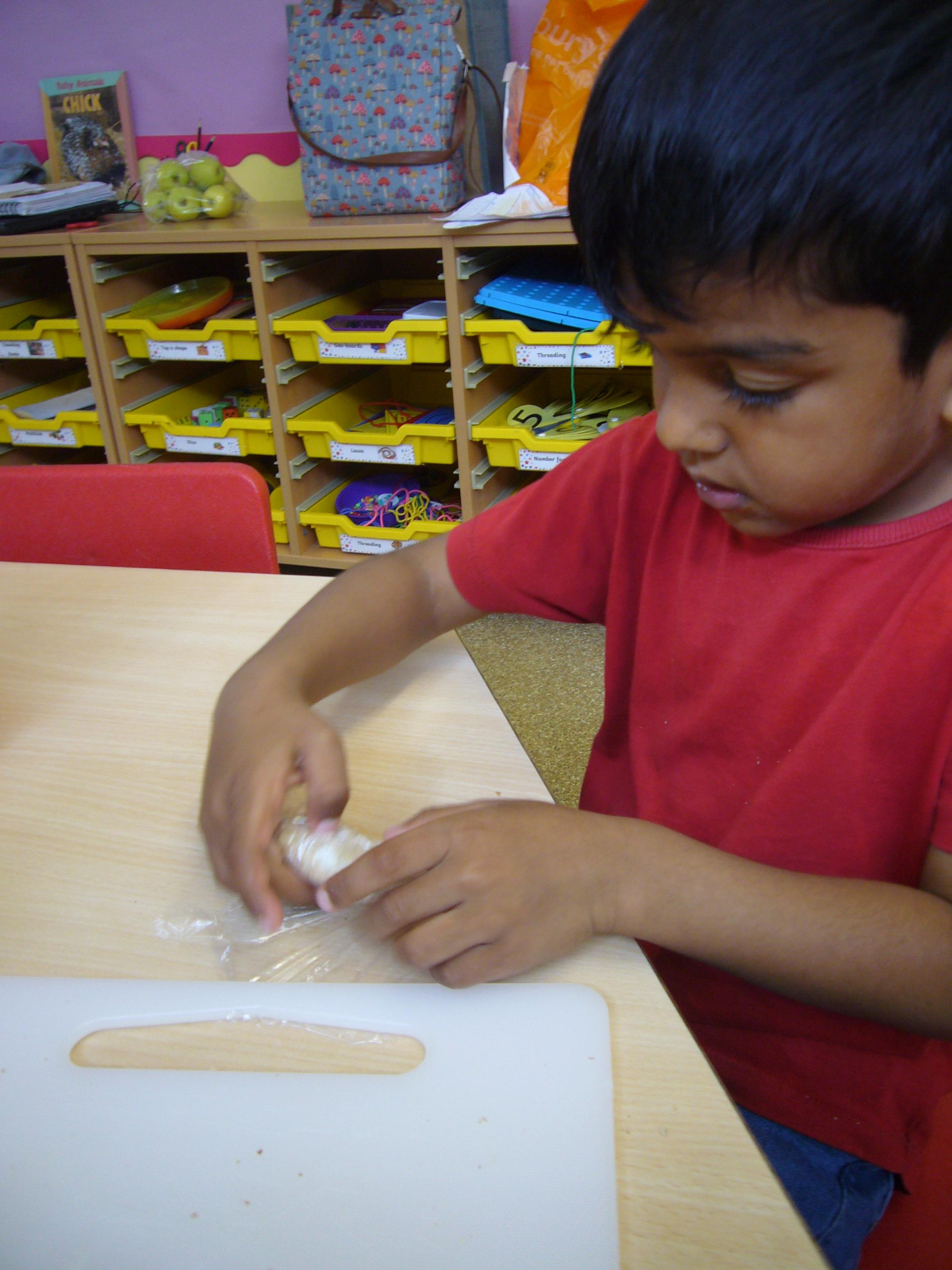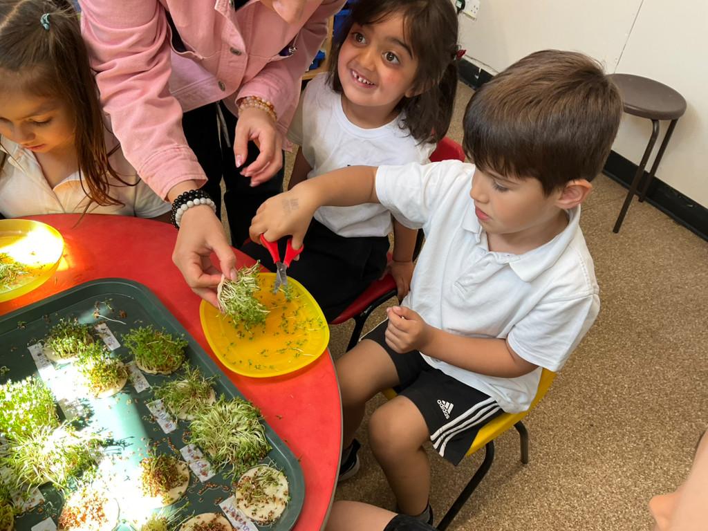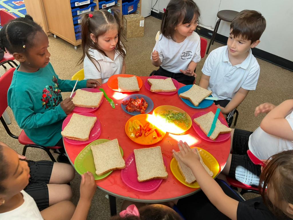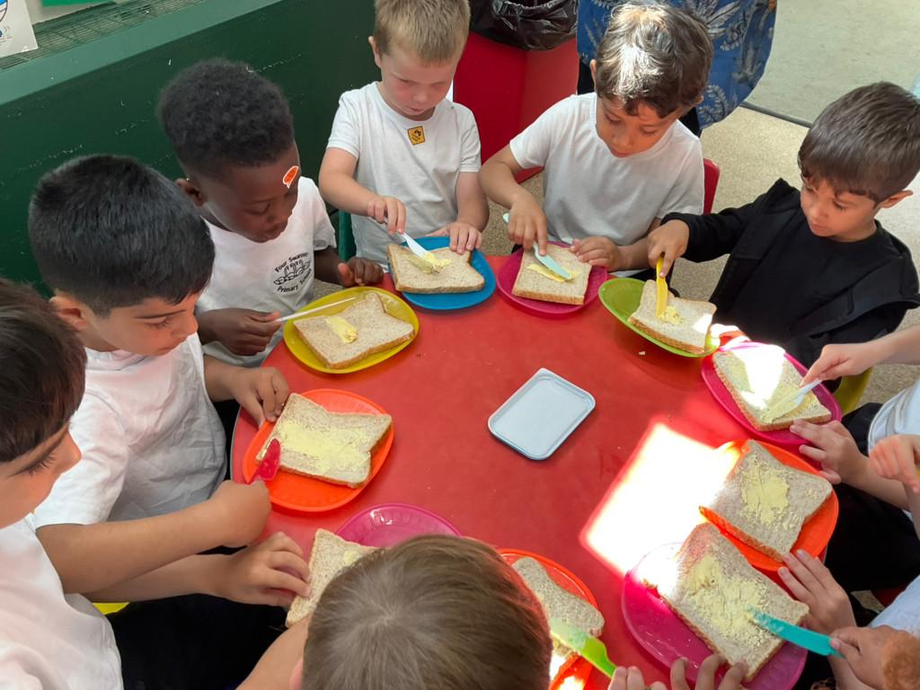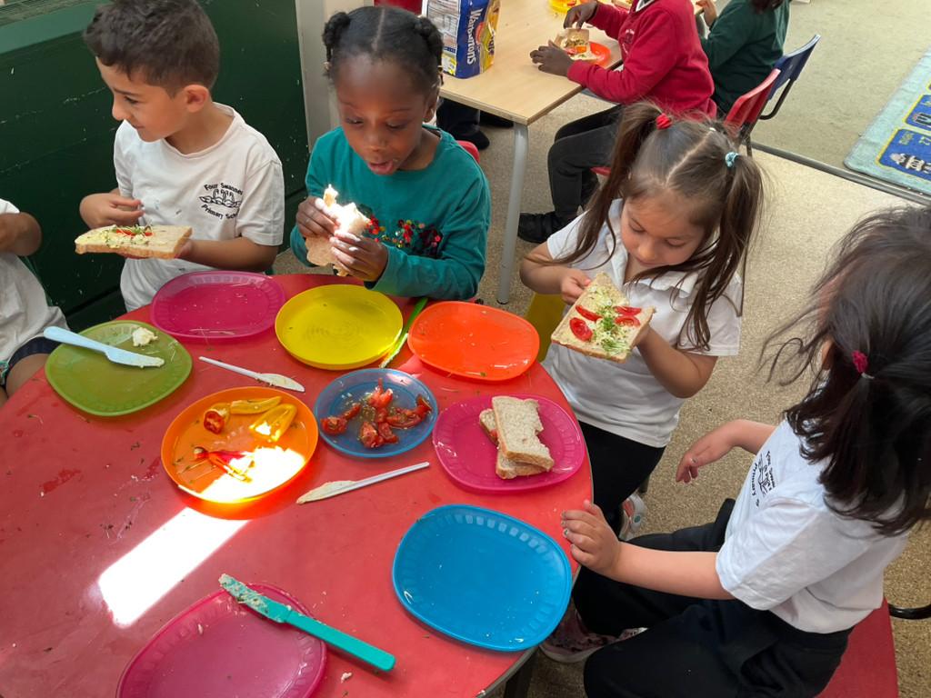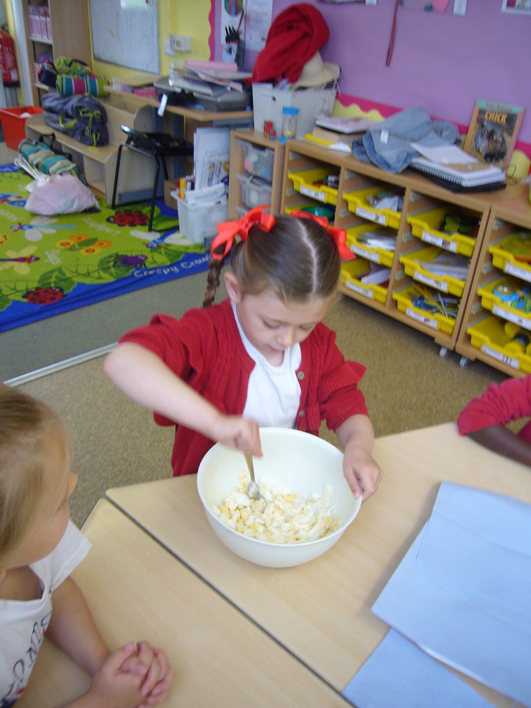 After reading the book, “Errol’s Garden”, the children planted cress seeds, which they watered everyday and looked after. Now it has grown beautifully so we decided to use it to garnish our sandwiches. They carefully used their fine motor skills skills to cut the cress plants and spread butter in their breads. Then they shelled the eggs to which they added mayonnaise and gave it a good mix. The children then added tomatoes, peppers and cress to their egg sandwiches, which they throughly enjoyed.