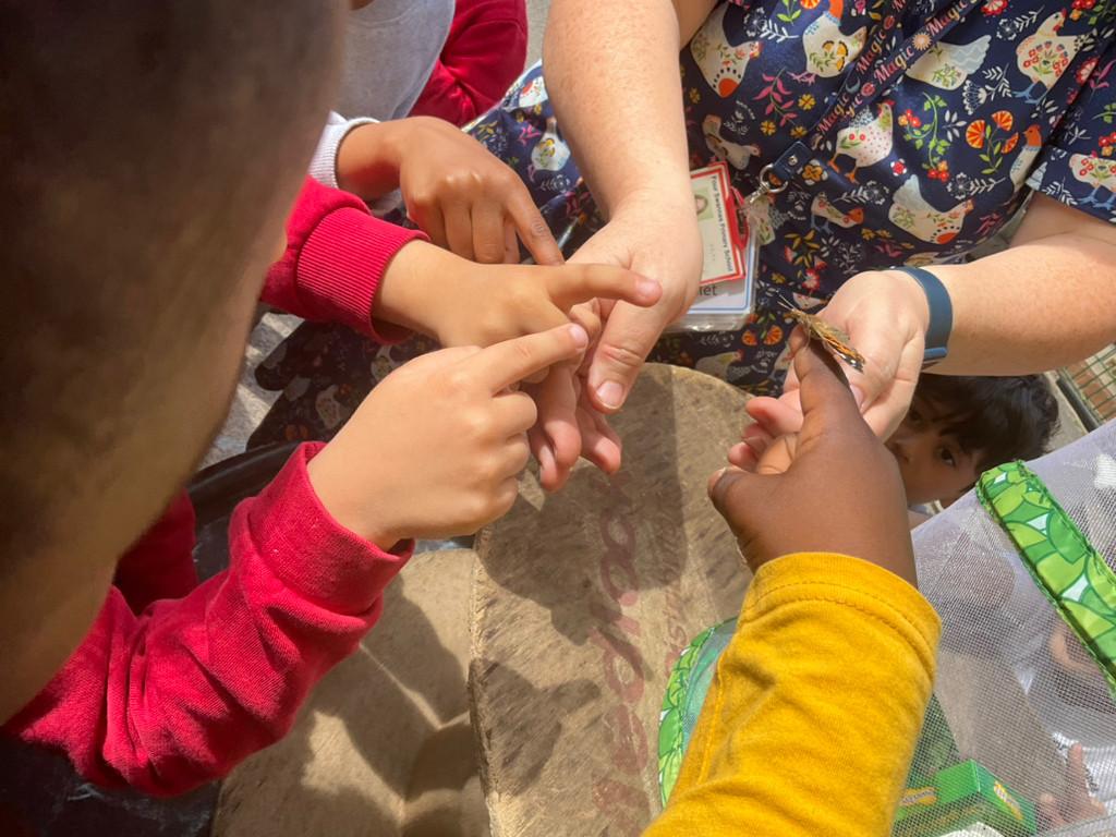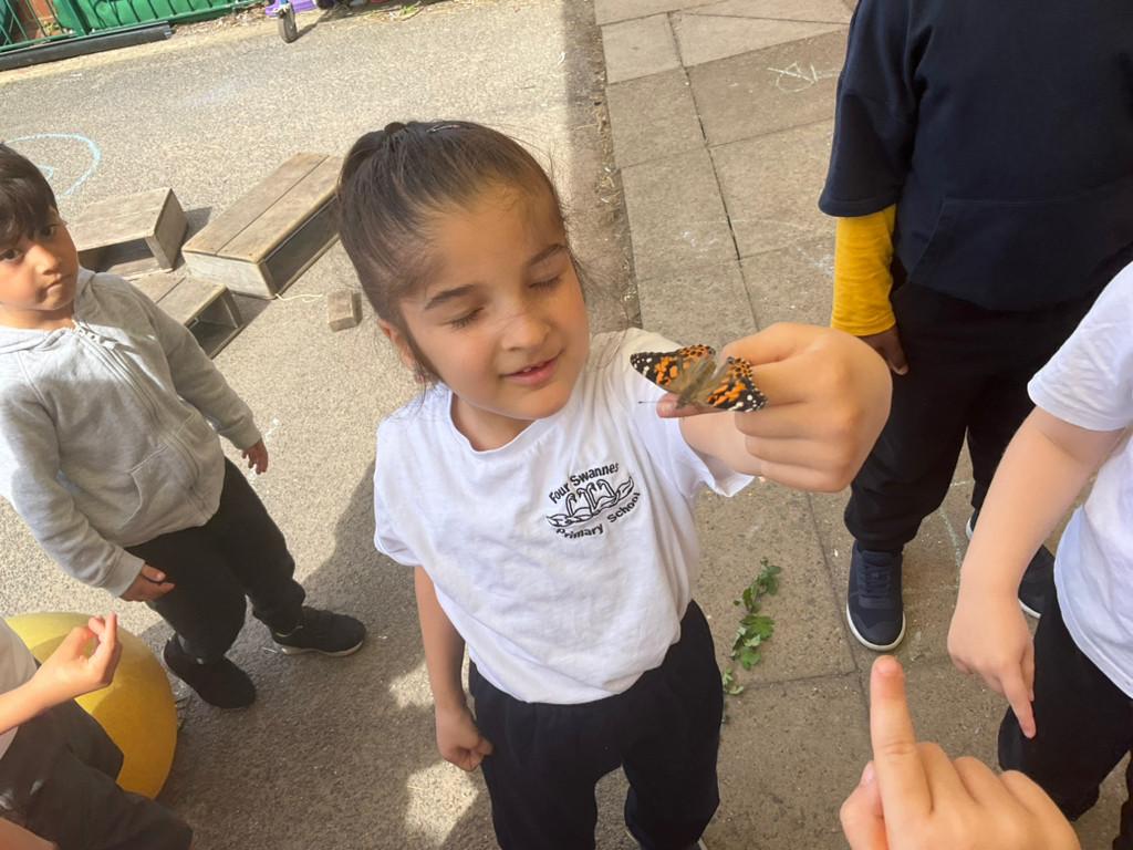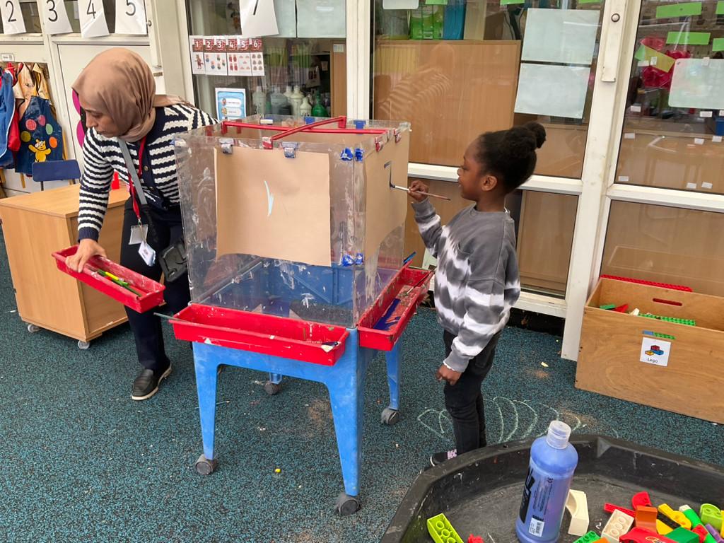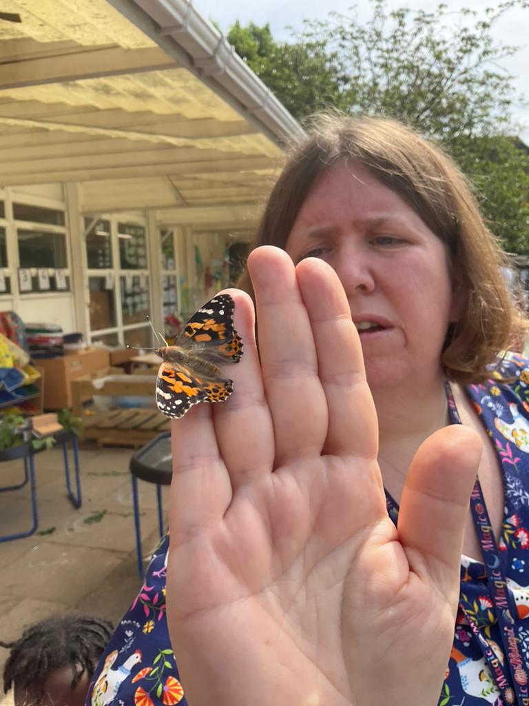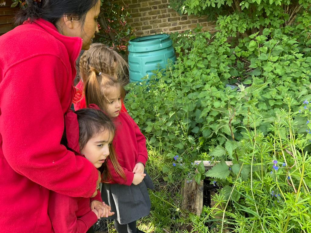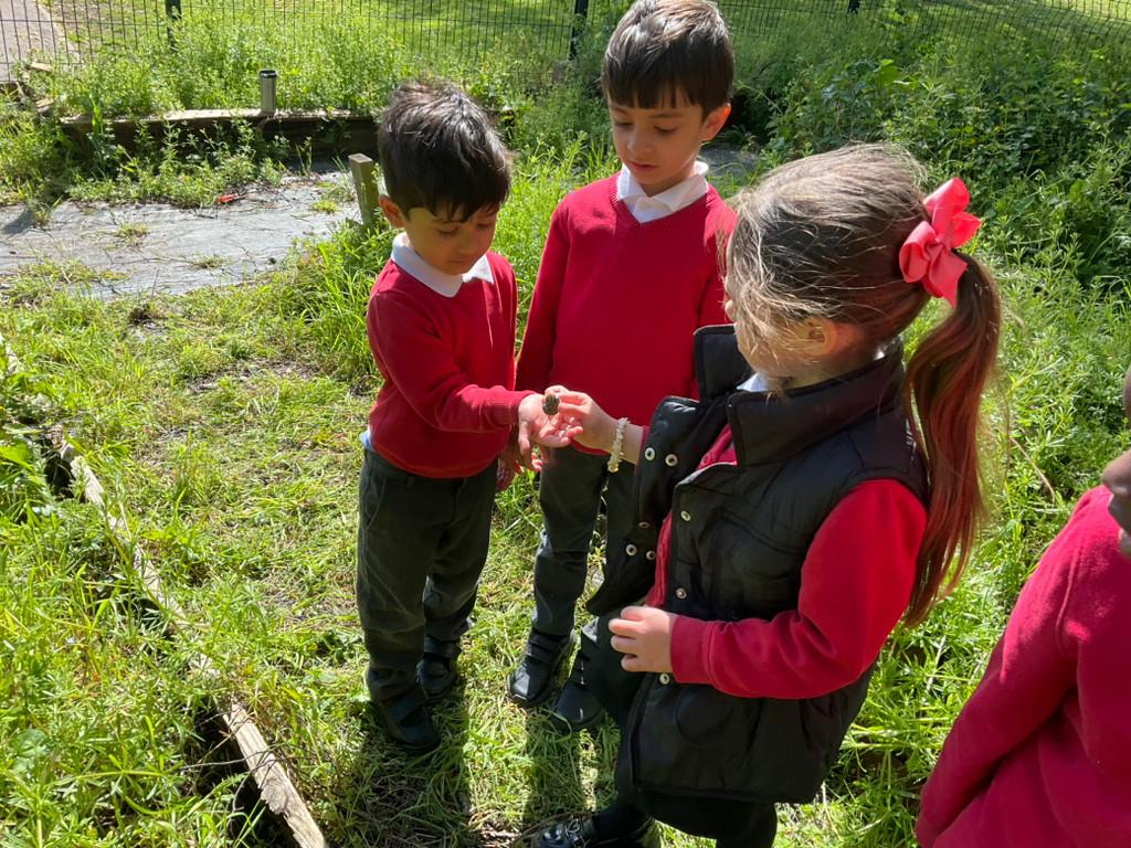 It has been an exciting week as our caterpillars arrived. The children have been learning about the life cycle of a butterfly and have designed a butterfly garden using plants and junk modelling materials. They coloured the bubble wrap in blue to make the pond. Then they placed the cress they grew around the garden. They learnt that plants need soil, water and space to grow. They used their cutting and sticking skills to design the butterfly garden.