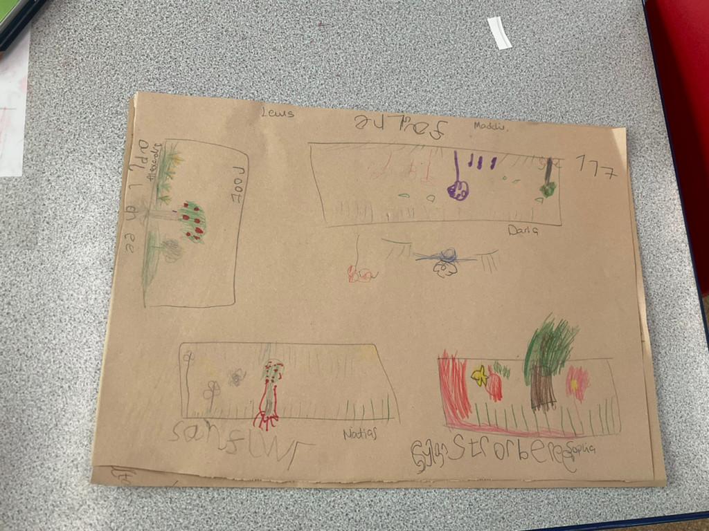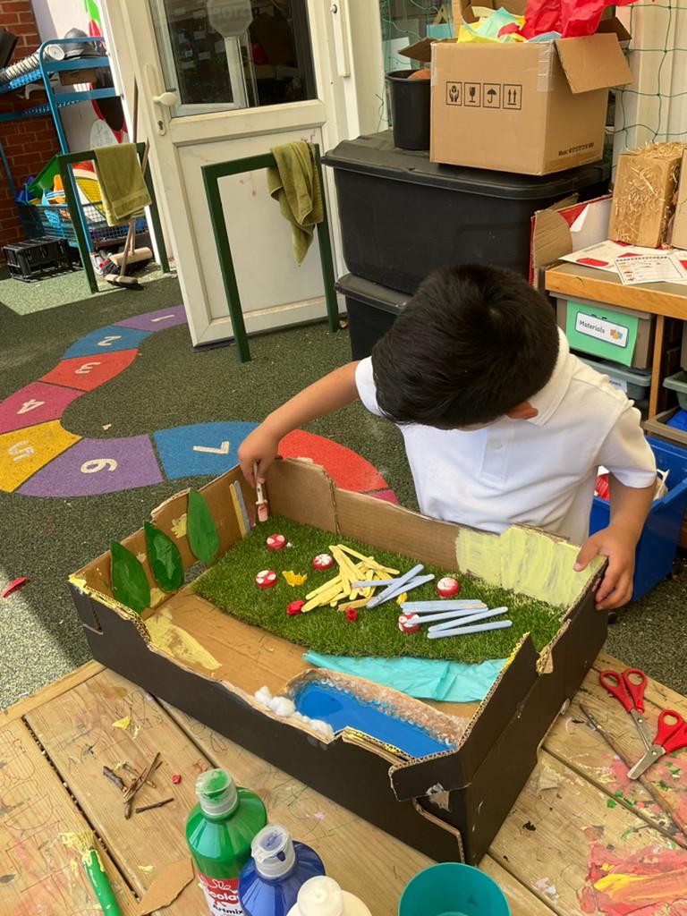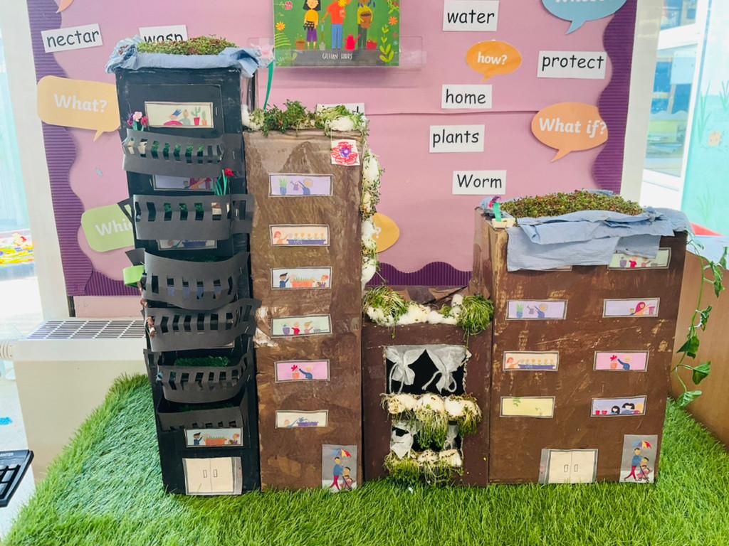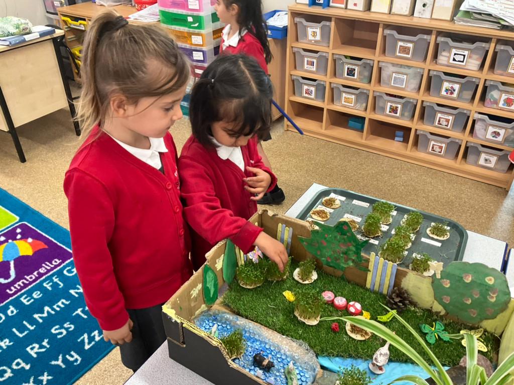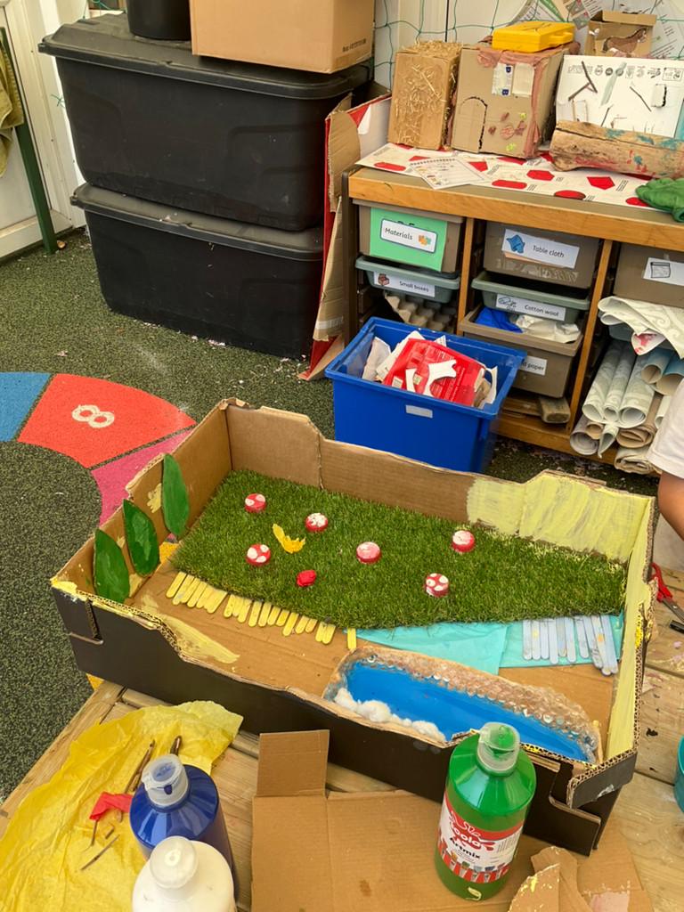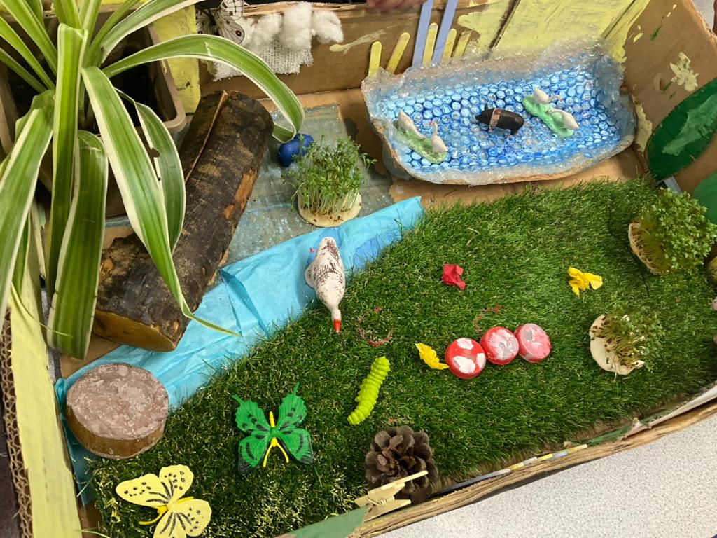 After reading the book Errol’s garden, the children designed their own garden and created their gardens using story boxes. They worked as a team in drawing, painting, creating and sticking all the parts together.
