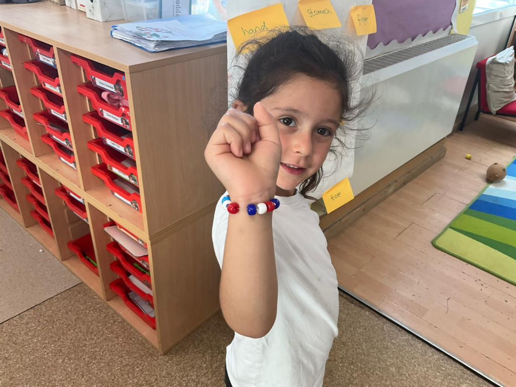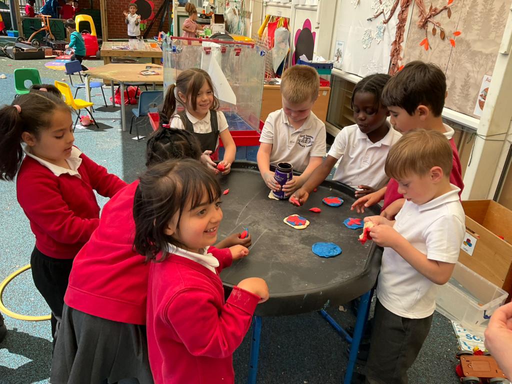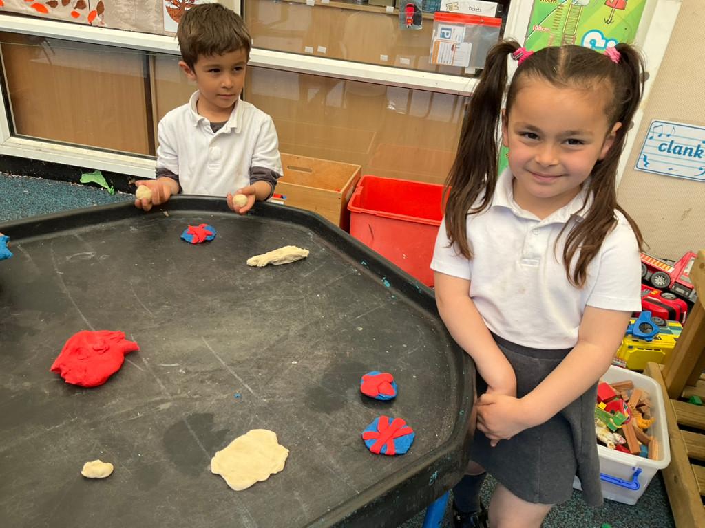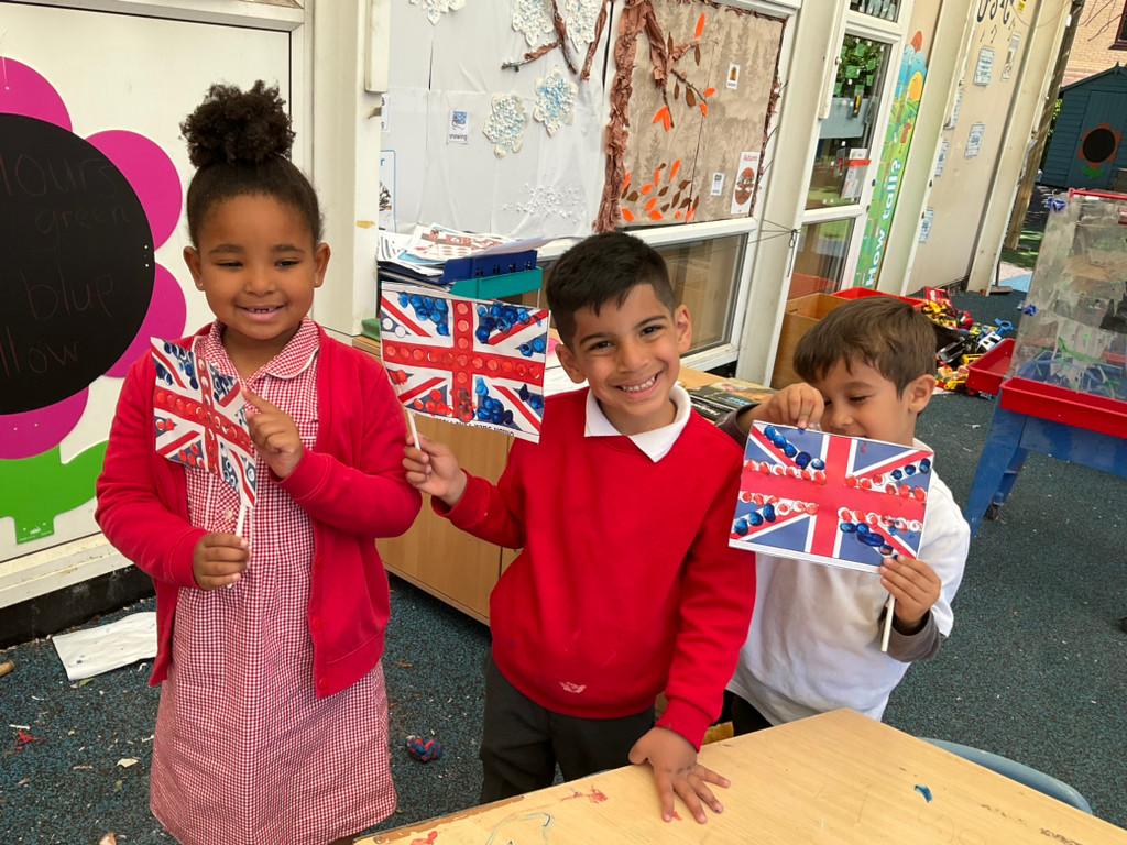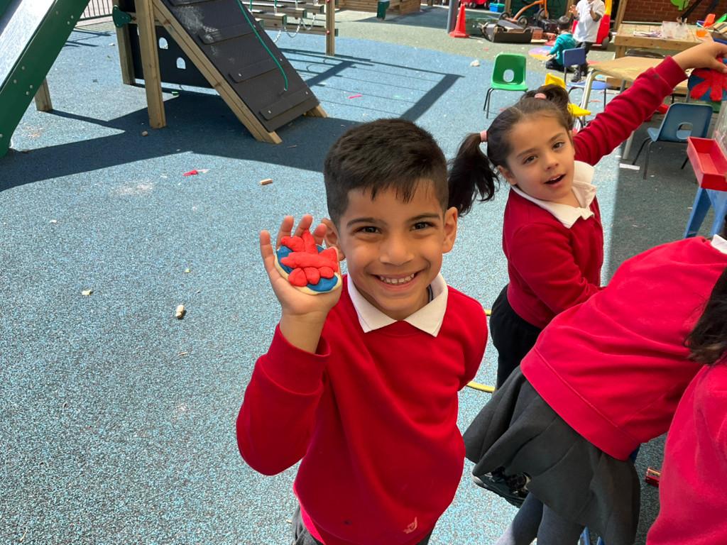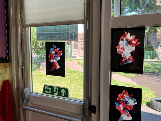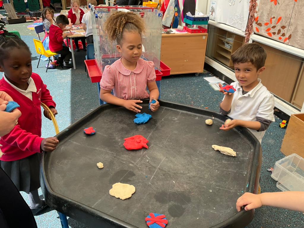 To celebrate Victory Day, the children made flags and bunting using the colours, red, white and blue from the Union Jack. They also designed flags using red, white and blue playdough.