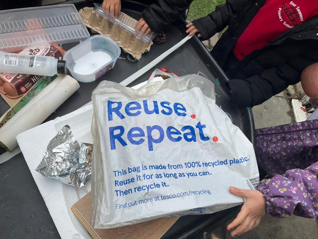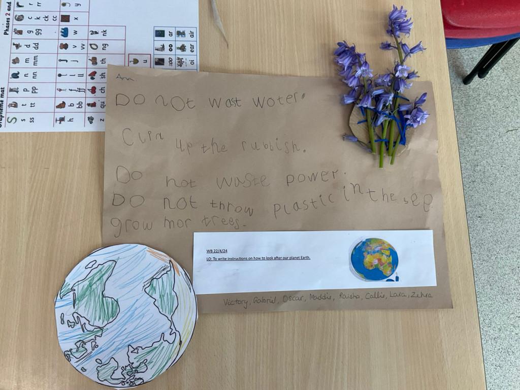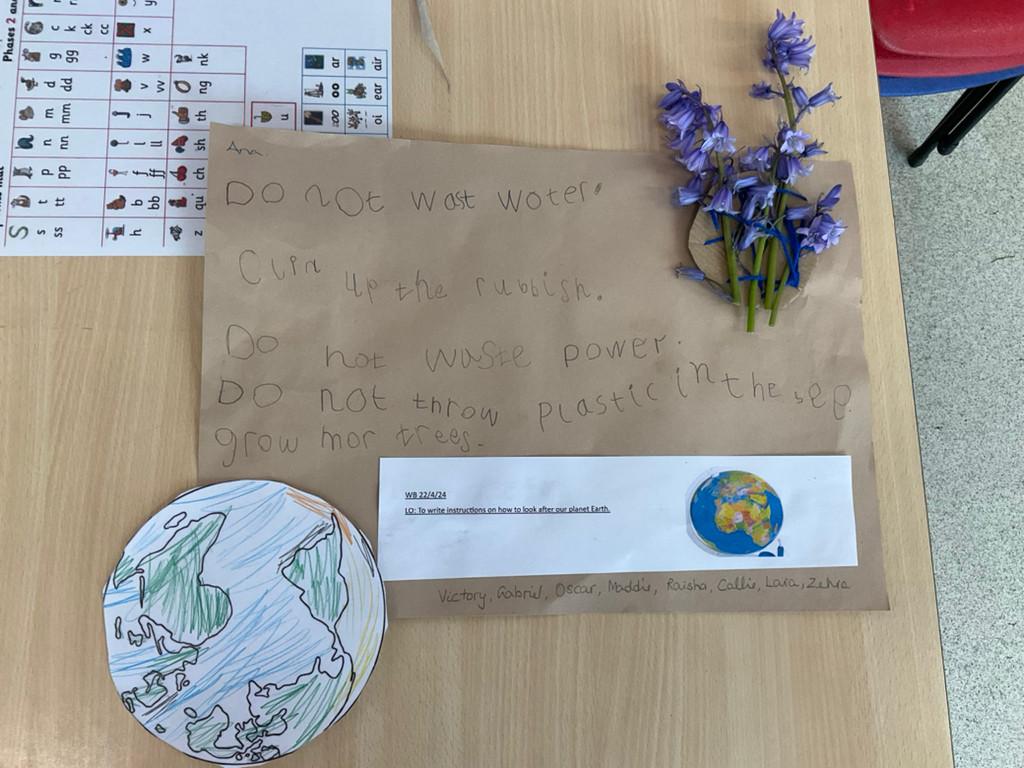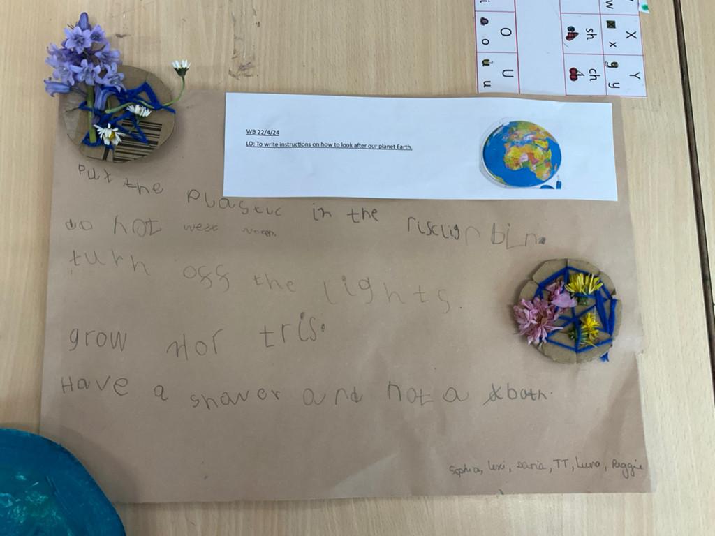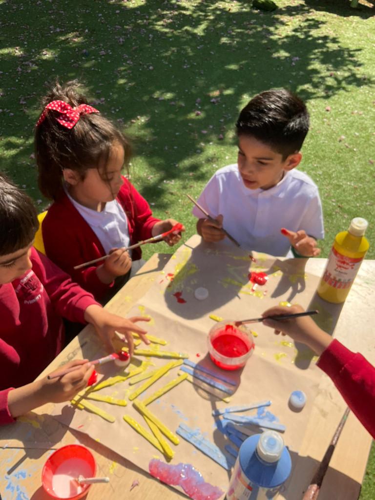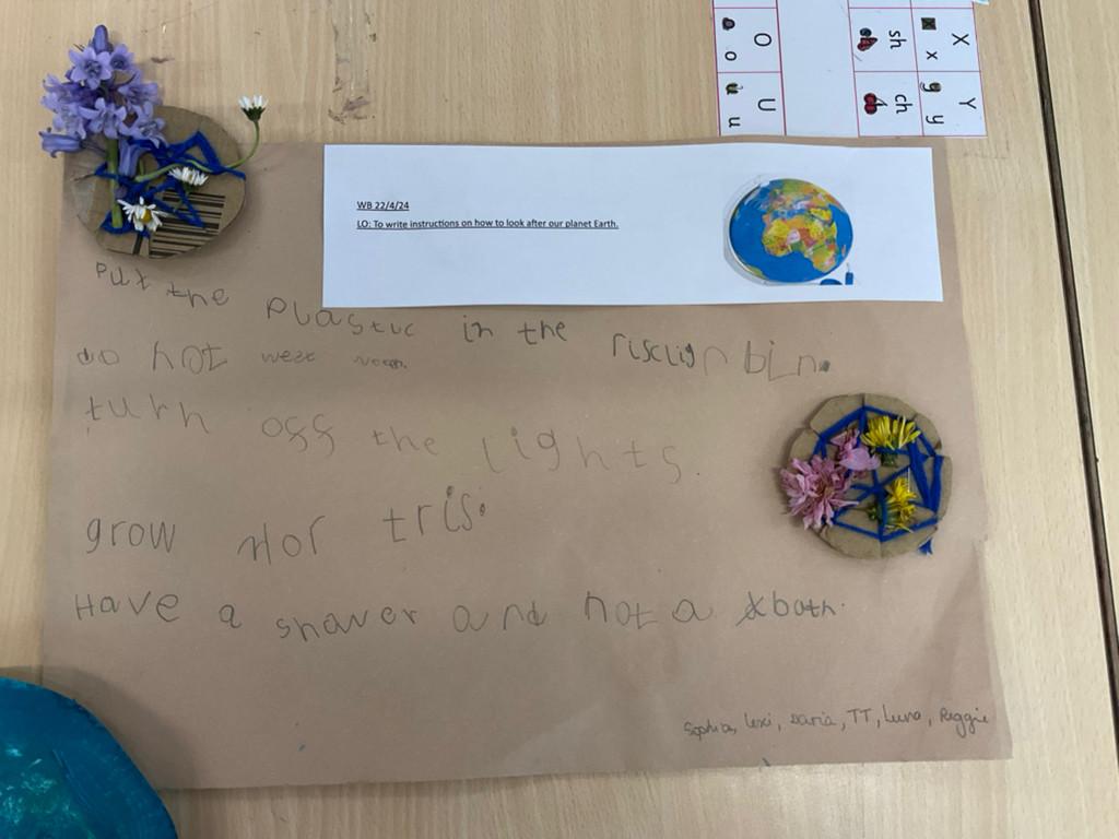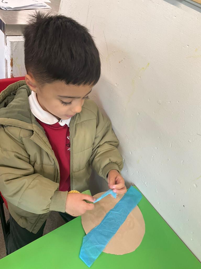 To celebrate Earth day, the children decorated their planet Earth using brown, green and blue tissue papers to represent the desert, land and sea. We identified the different features on the globe. Then we discussed all the items we find in our kitchen and at home and sorted them into items that go in the recycling bin and items that don’t go in the recycling bins. We discussed how we can look after our planet by litter picking, growing plants and trees and by recycling.