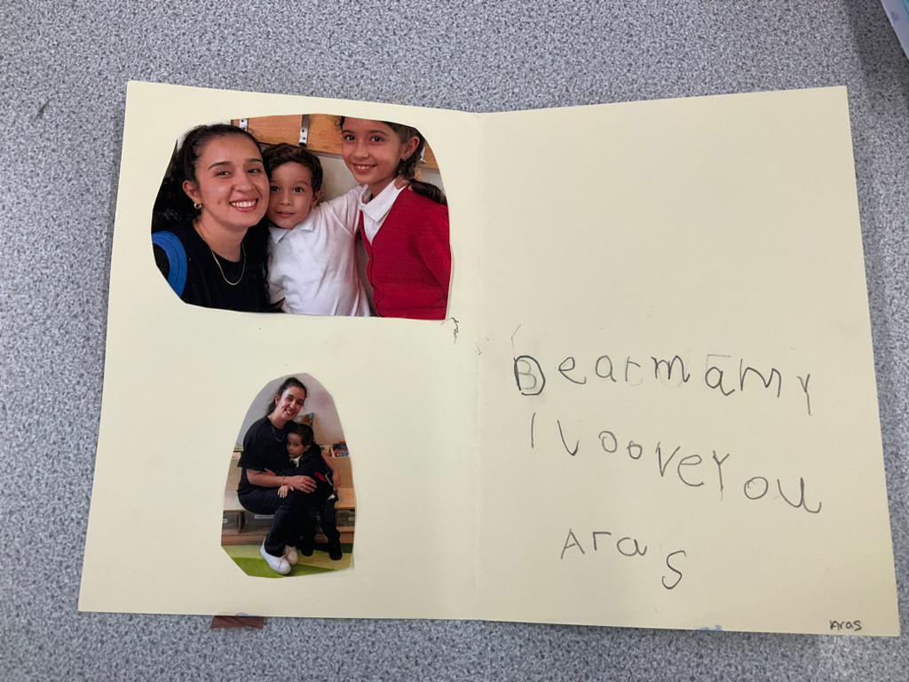 The children made beautiful cards for their mothers using their handprint and tissue papers. Then they wrote a lovely message inside the card for their mothers.