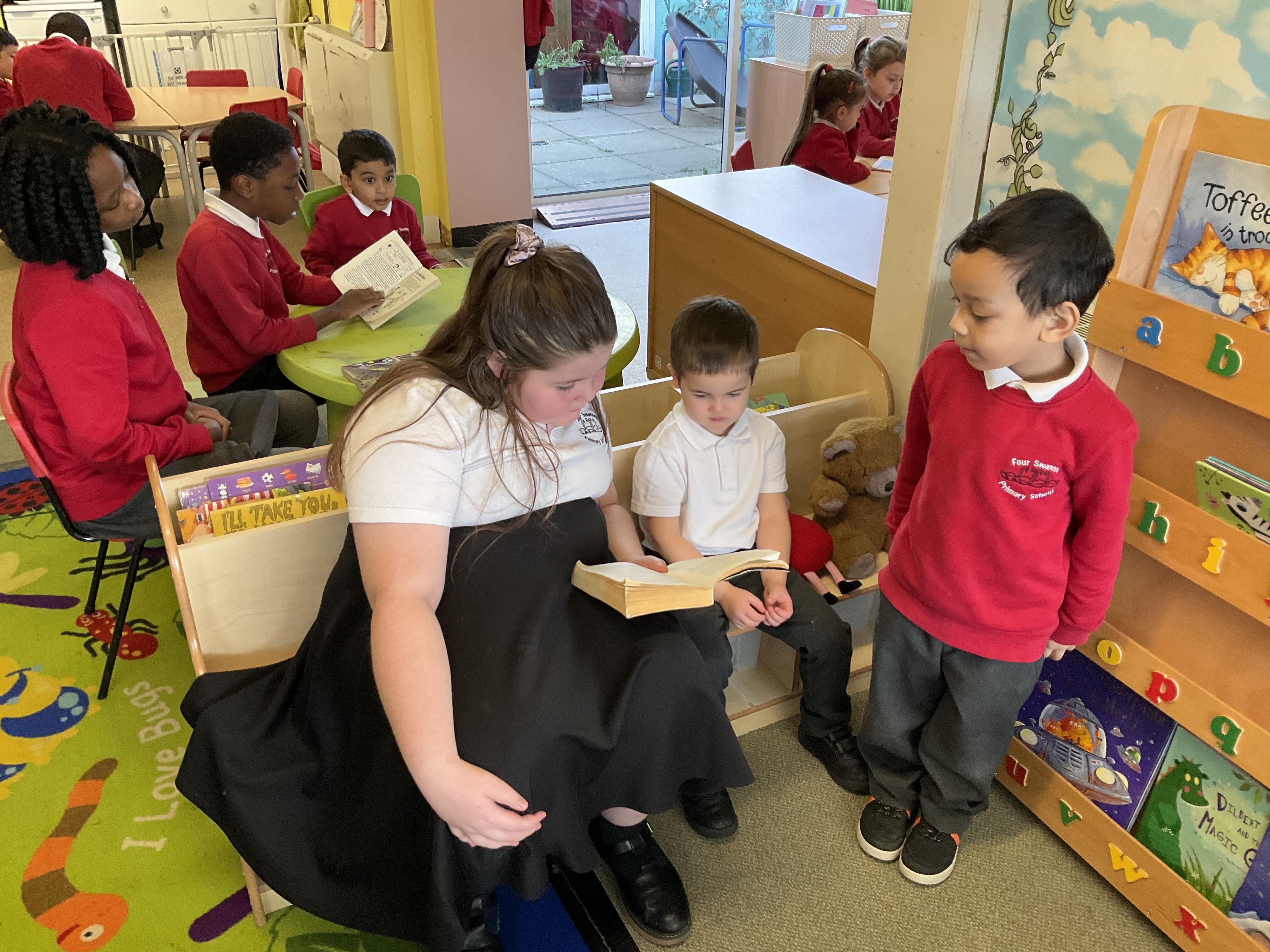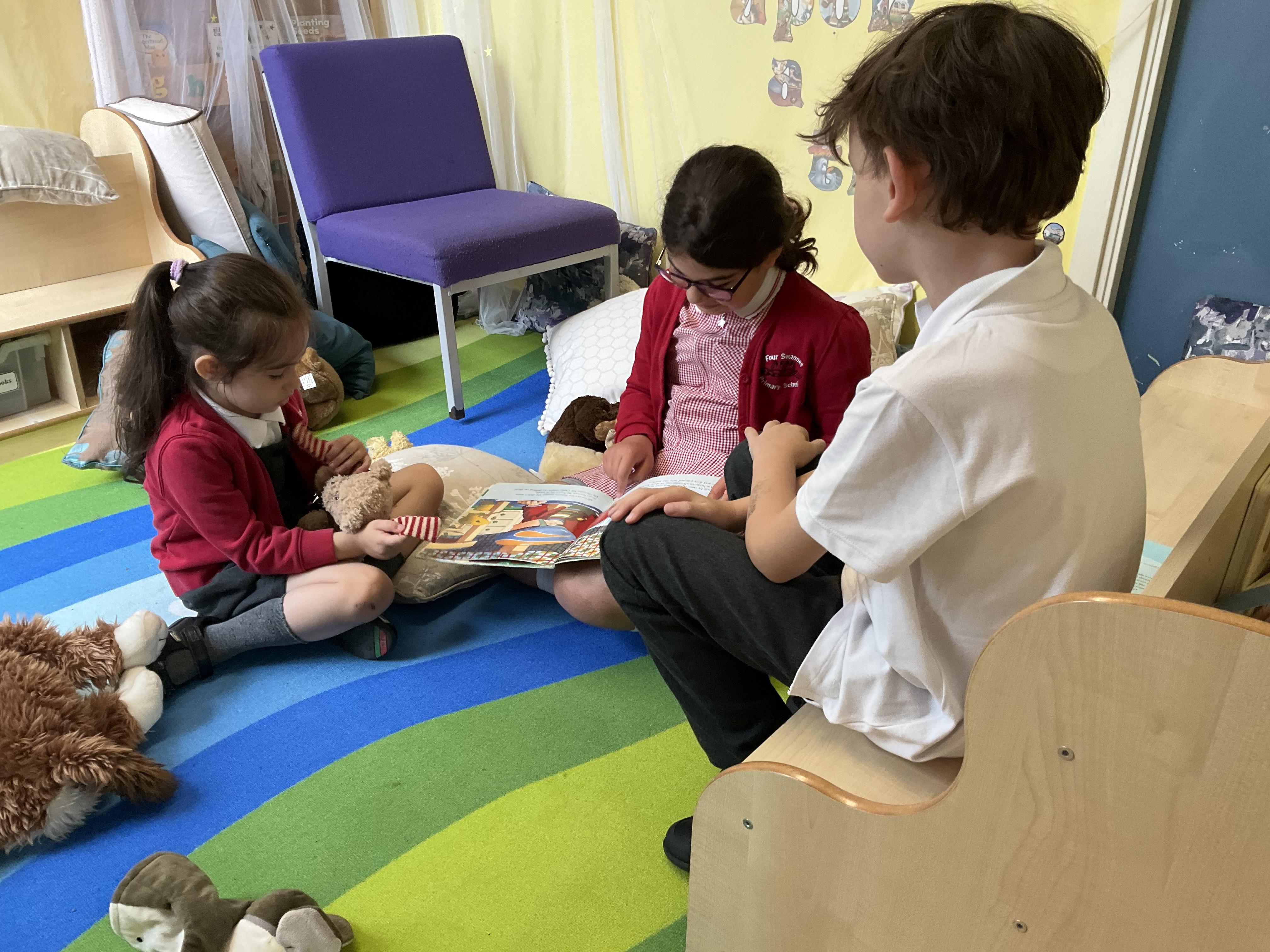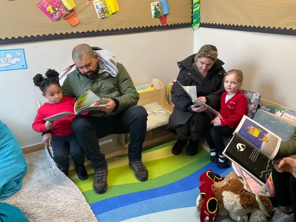 To celebrate our love of reading and books, we invited parents to join us for a special morning reading session with the children. The session began with the teacher reading a story, encouraging responses from the children and inviting them to join in with familiar parts of the text.