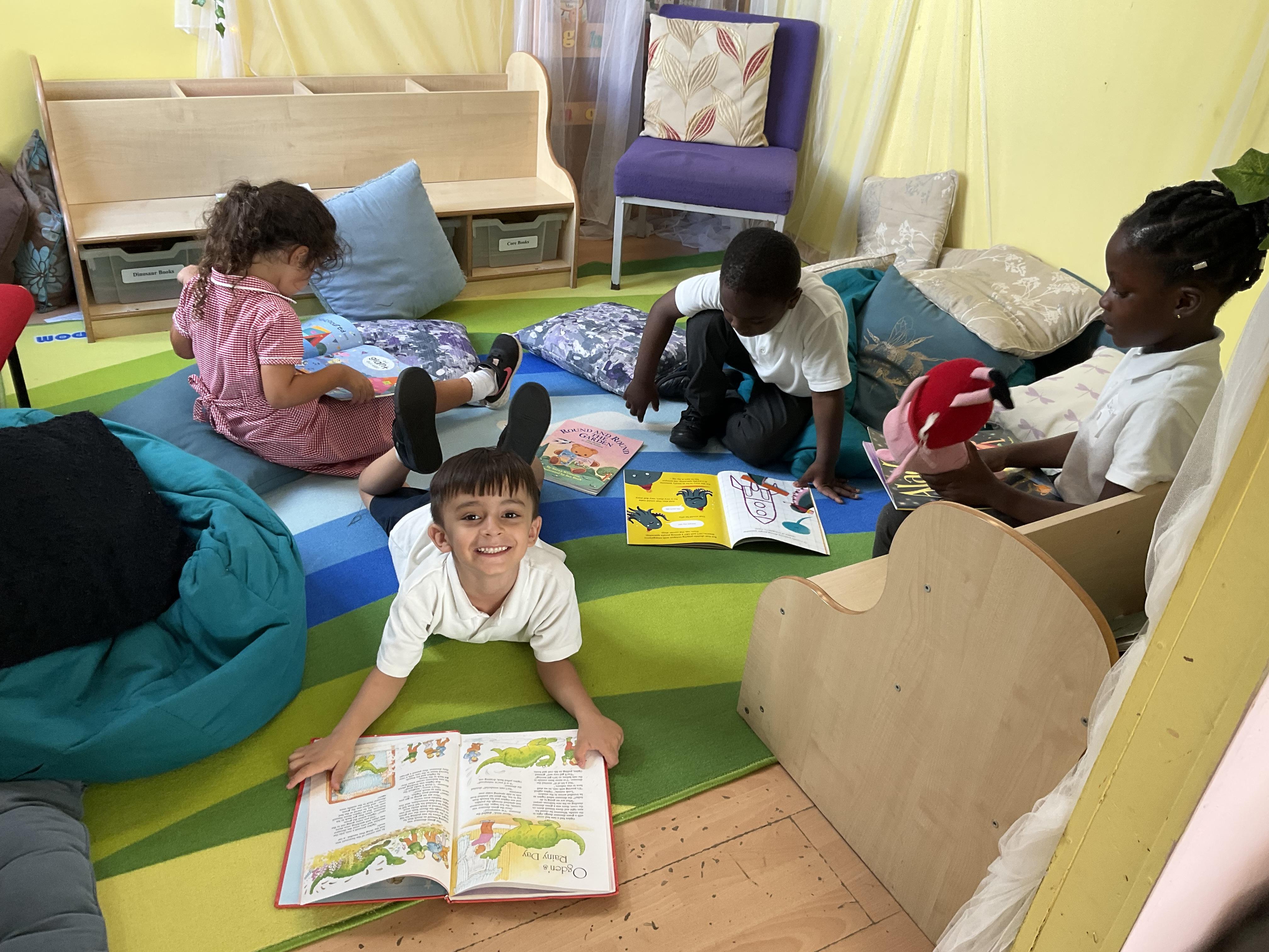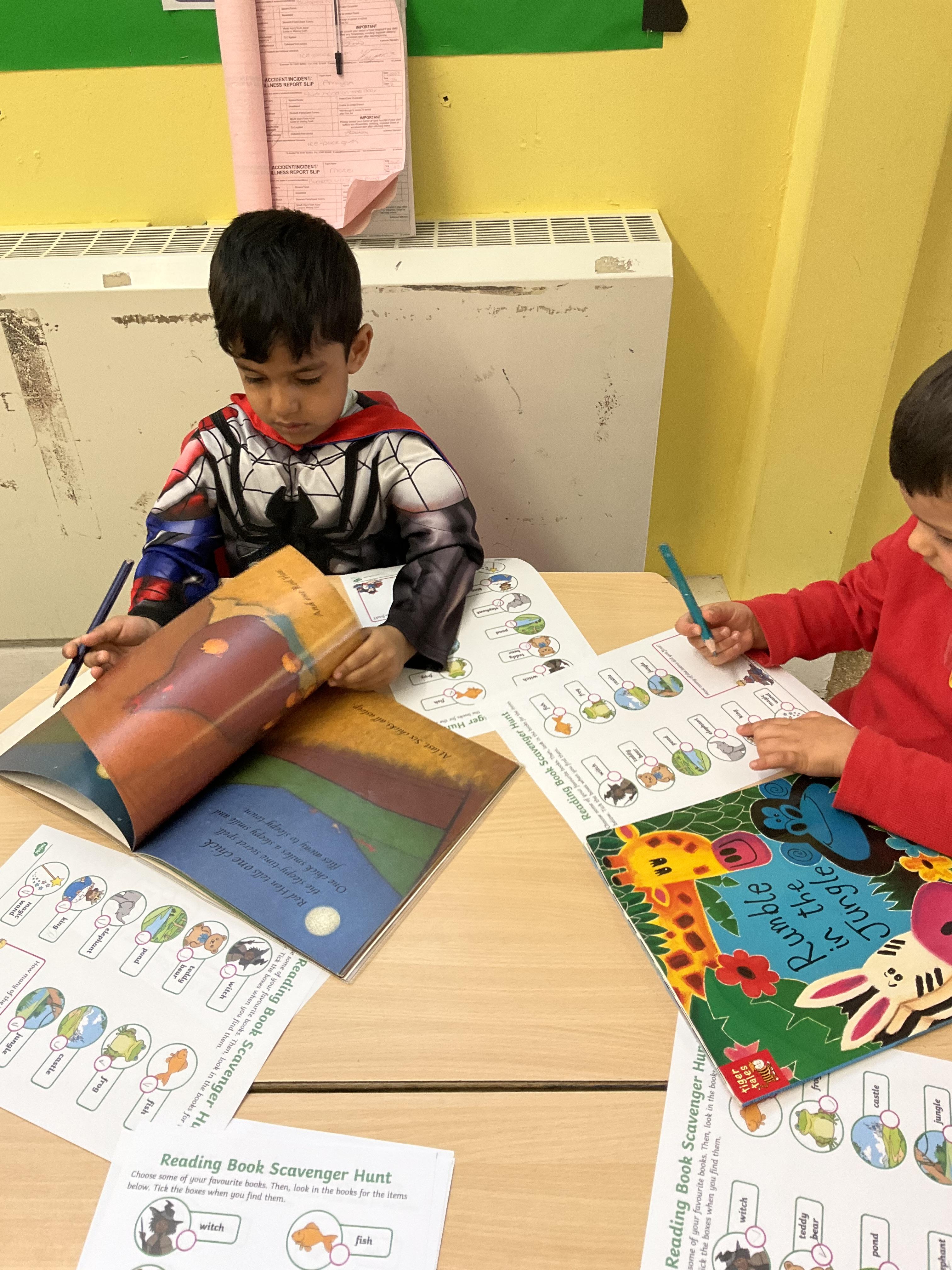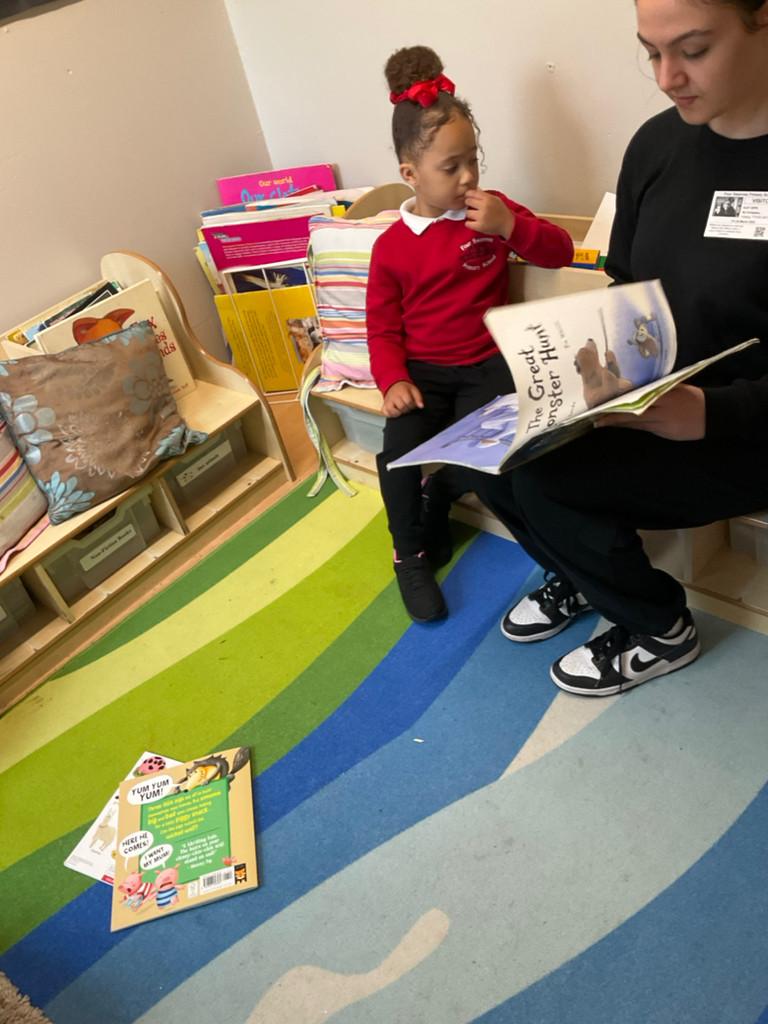 To celebrate our love of reading and books, we invited parents to join us for a special morning reading session with the children. The session began with the teacher reading a story, encouraging responses from the children and inviting them to join in with familiar parts of the text.