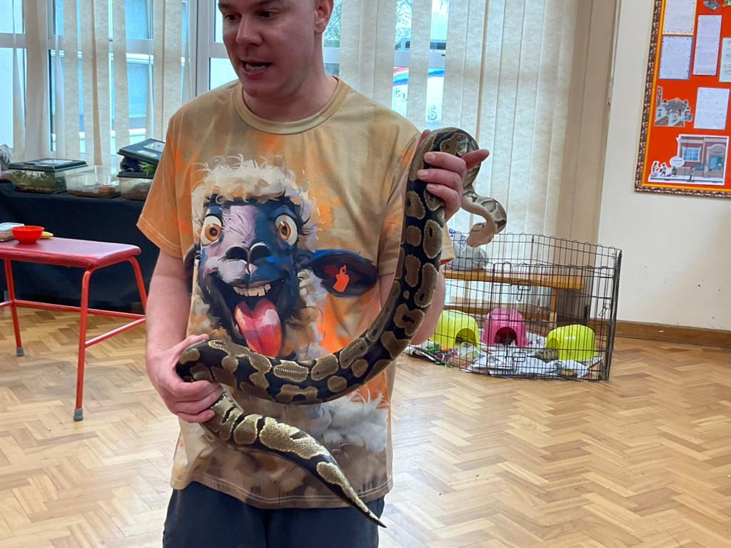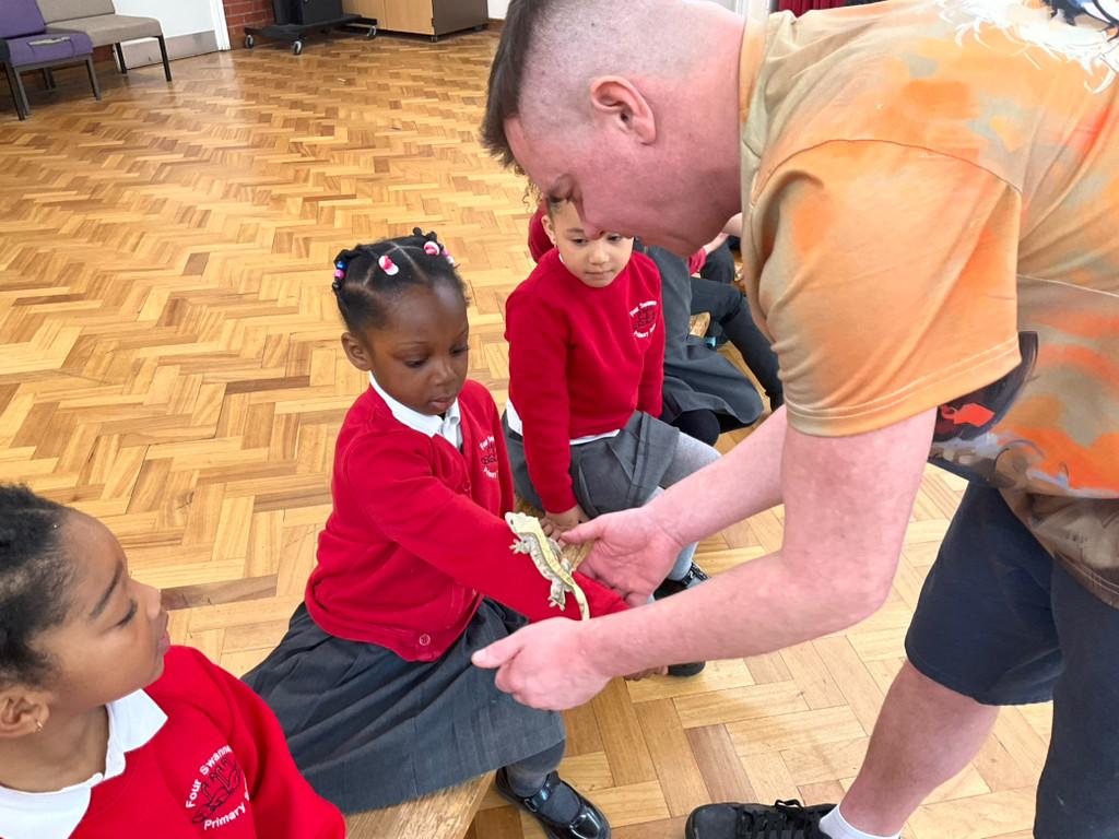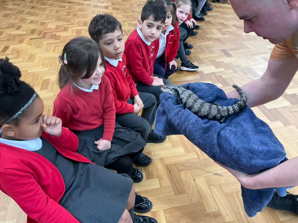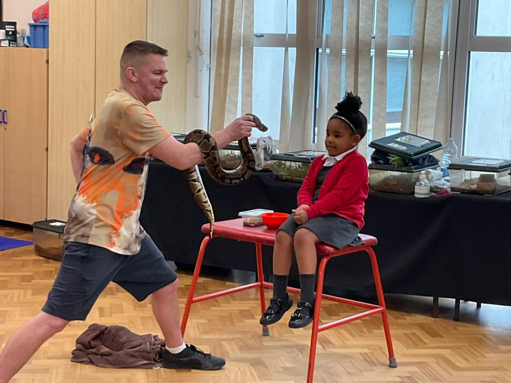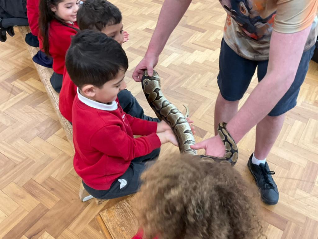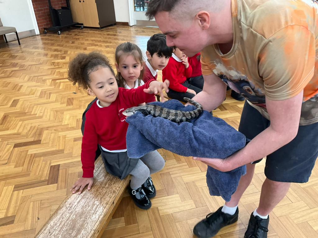 They also got to meet some exotic reptiles like the Bearded dragon, Tarantula, Royal python and African Hedgehog. The children bravely had a go at stroking the reptiles.
