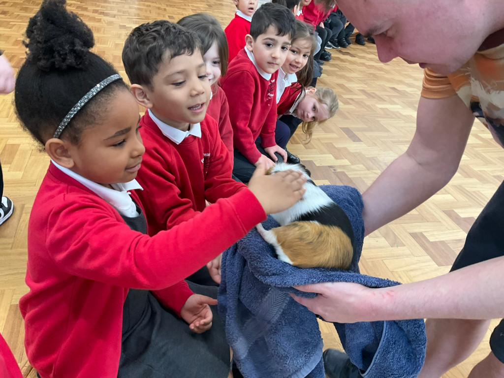 The children were thrilled to meet and feed the animals at School. As part of their topic, 'Farm animals', they got to feed the farm animals like the duck, chickens and goats. They were very excited to stroke the rabbit and the Guinea Pig.