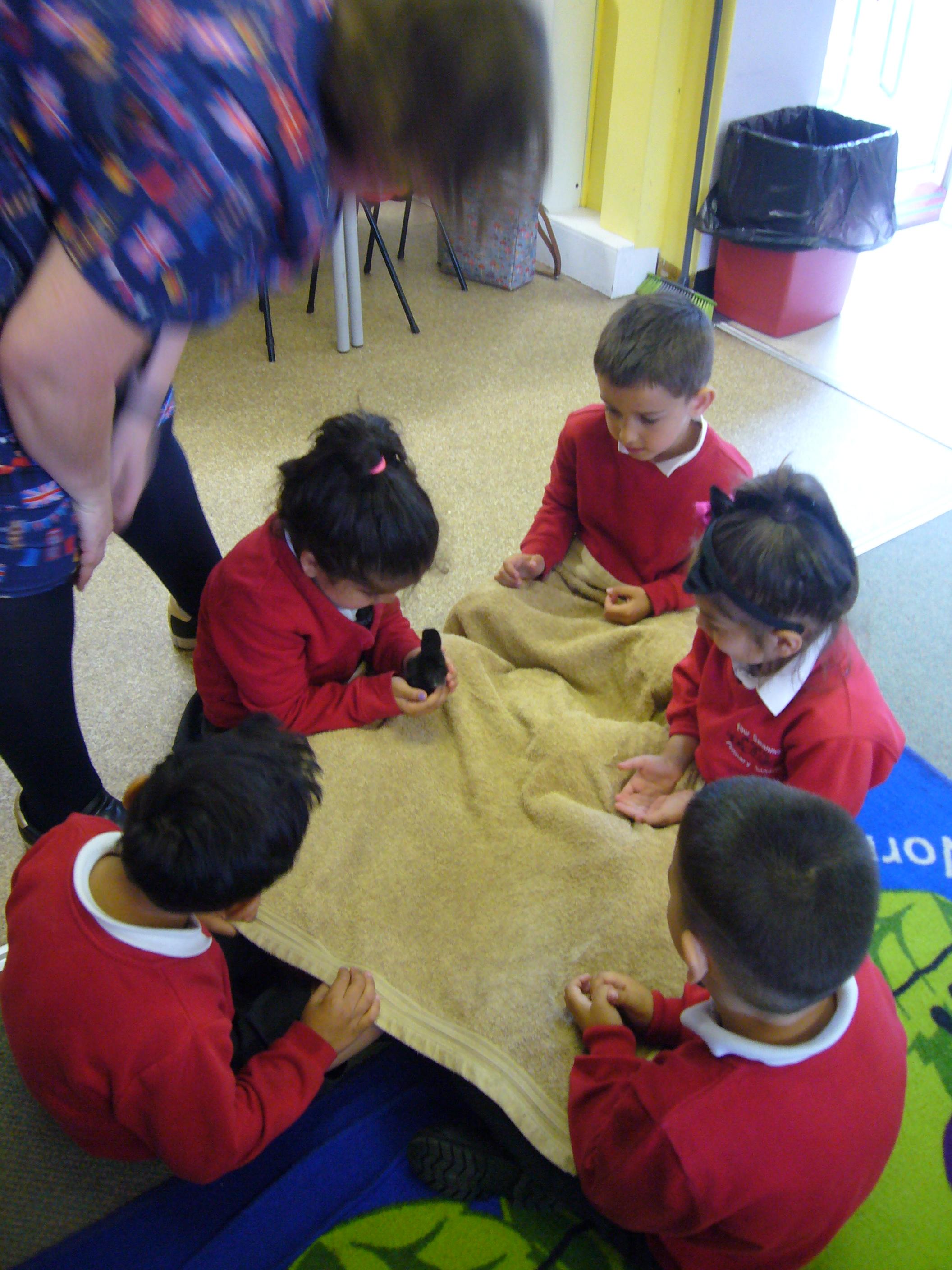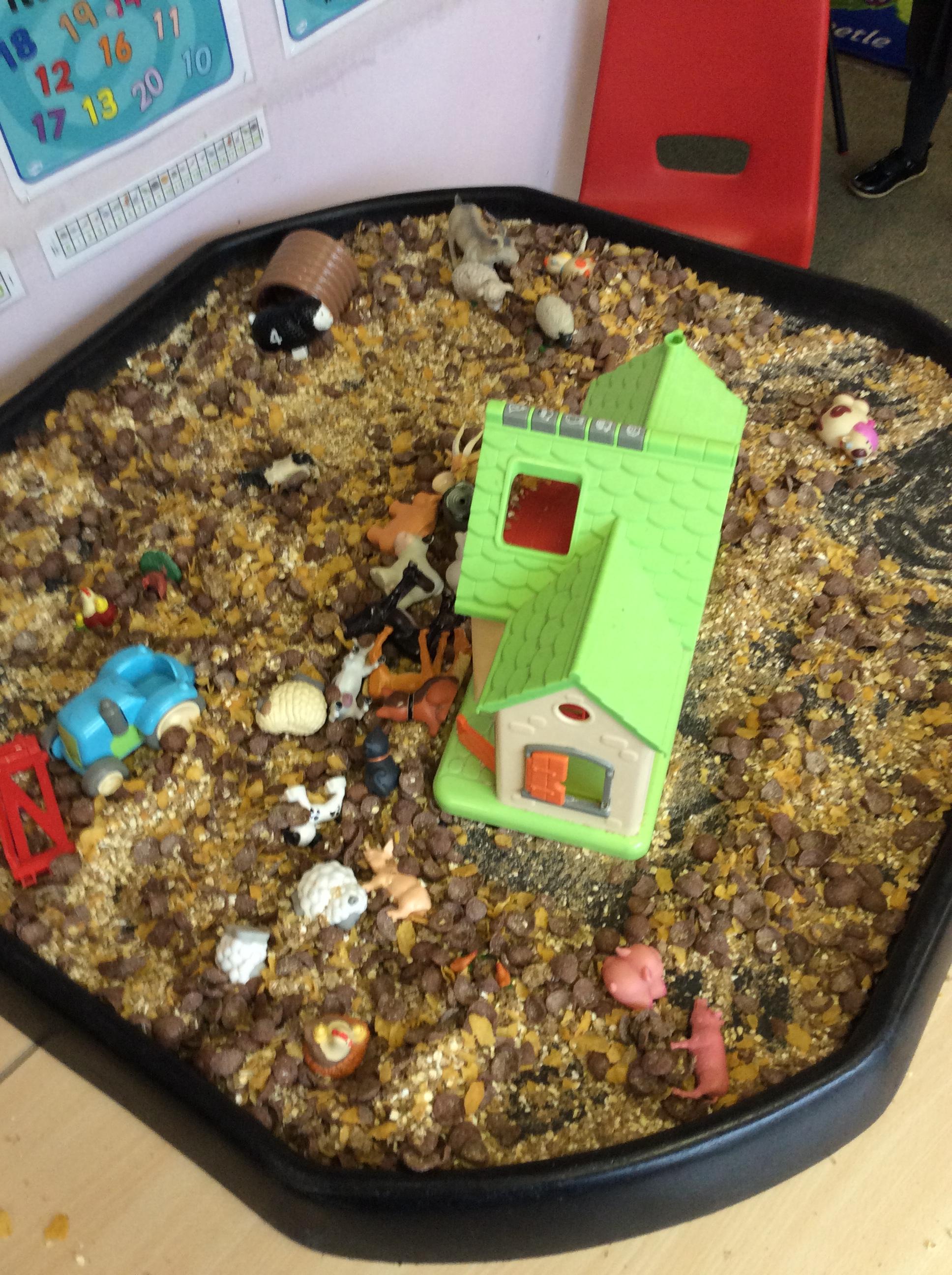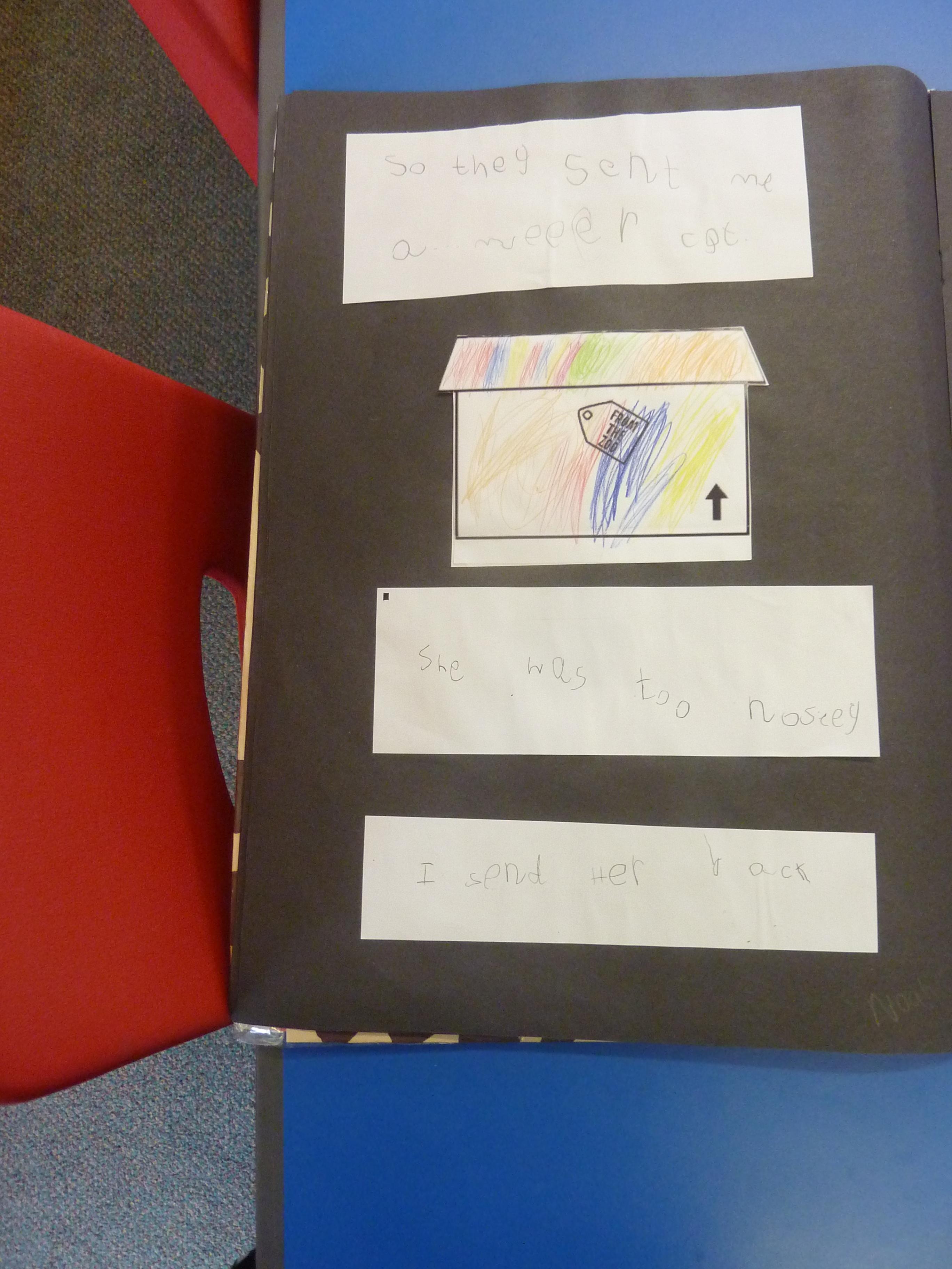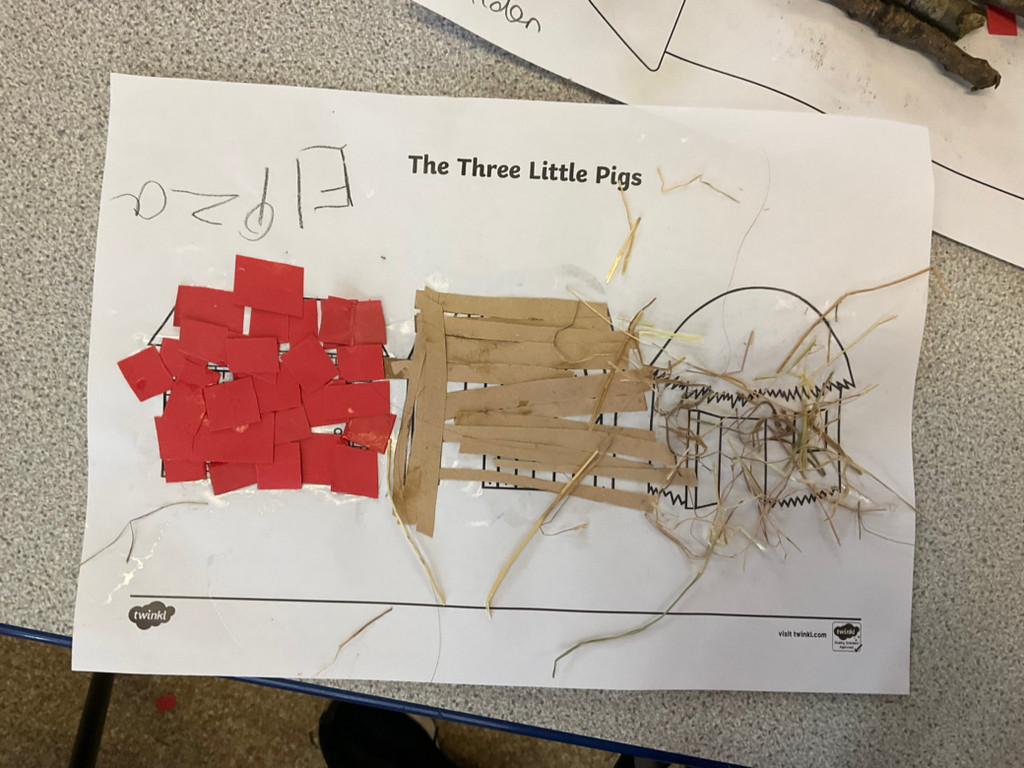 After reading our topic book, “Town mouse and country mouse”, the children used the junk modelling materials to make a house for the mouse. They chose different materials to decorate the house. We also used egg boxes and goggly eyes to make the face of a mouse and the children chose different coloured feathers to decorate the mouse. Through the story, we discussed the difference between a town and a country and the children identified the features that you would find in a town but not in a country, like big buildings and lots of cars and buses.