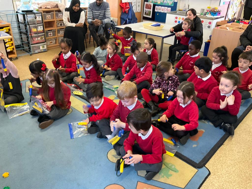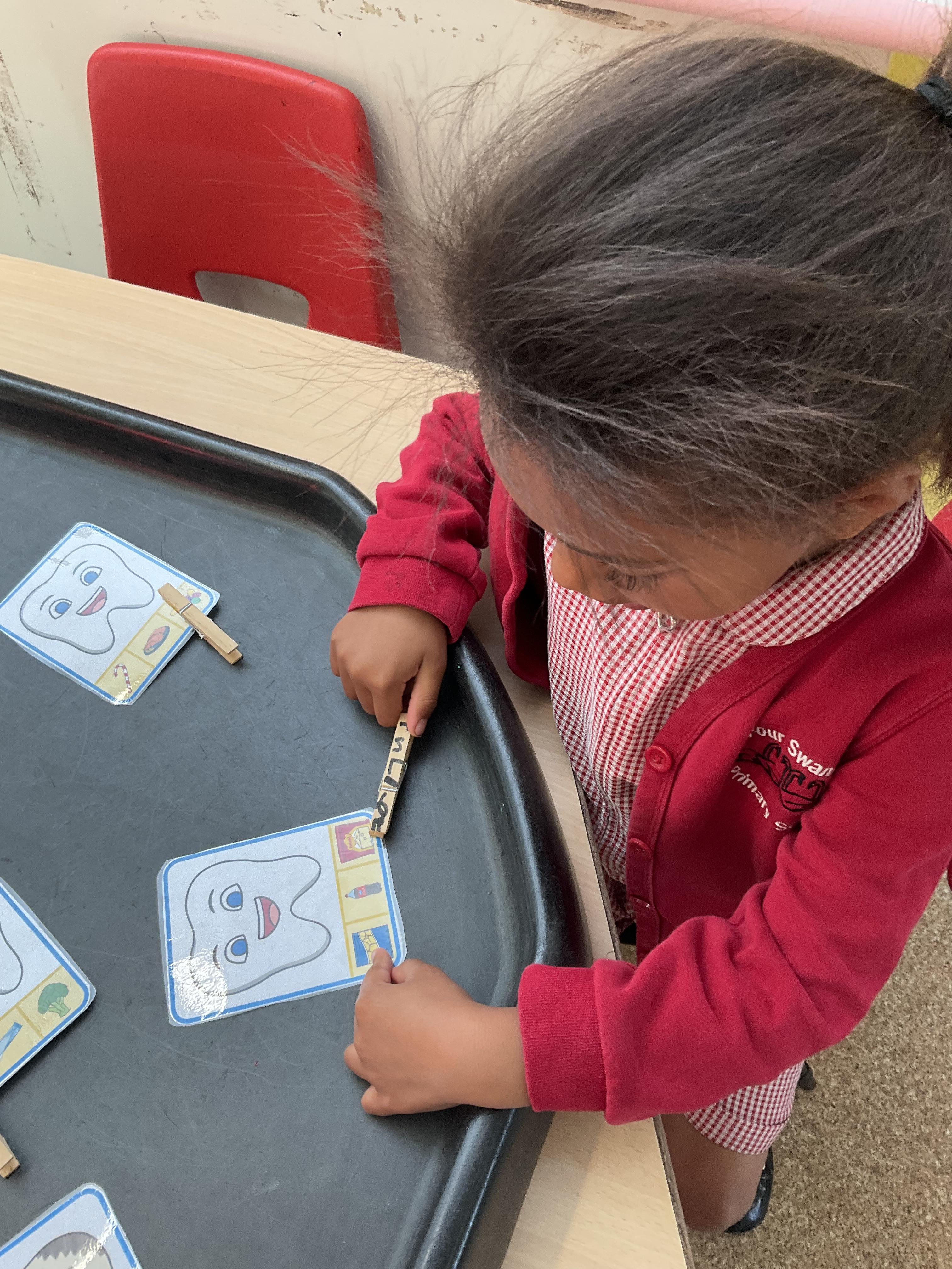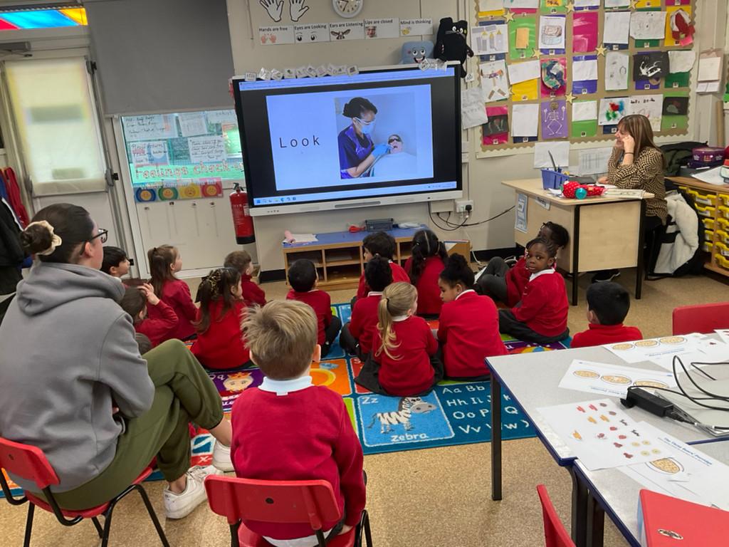 Herts County council selected 26 schools across Hertfordshire to take part in a Supervised Brushing programme. We are very lucky to be one of the chosen Schools. The dentist and specialist oral health nurse spent some time with the children and did a full class session around diet, tooth decay and brushing. The dentist carried out a dental screening for all children in reception that have consented, and applied a one-off application of fluoride vanish for the prevention of tooth decay. All children were provided toothbrushes and toothpaste to take home. The school will also be receiving toothbrushes, toothpaste and a toothbrush racks. Once these arrive, each child will be given the opportunity to brush in school once a day.
