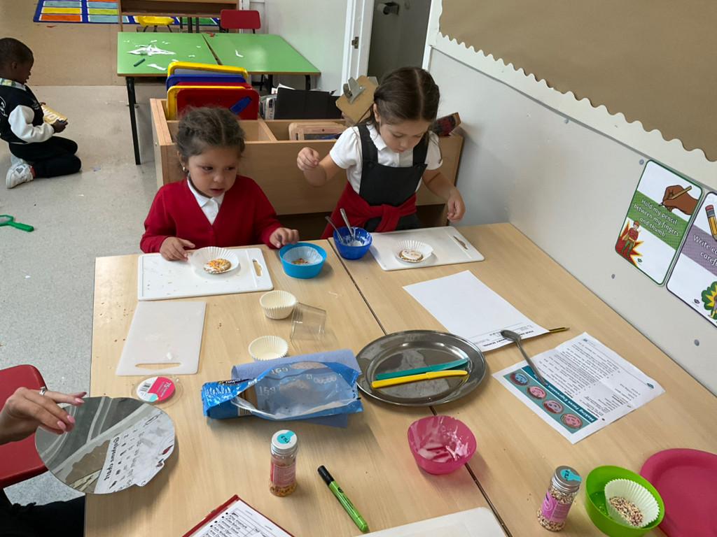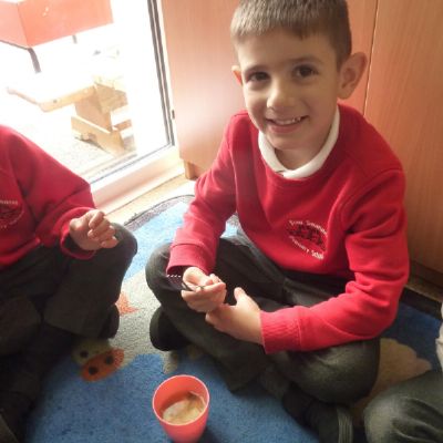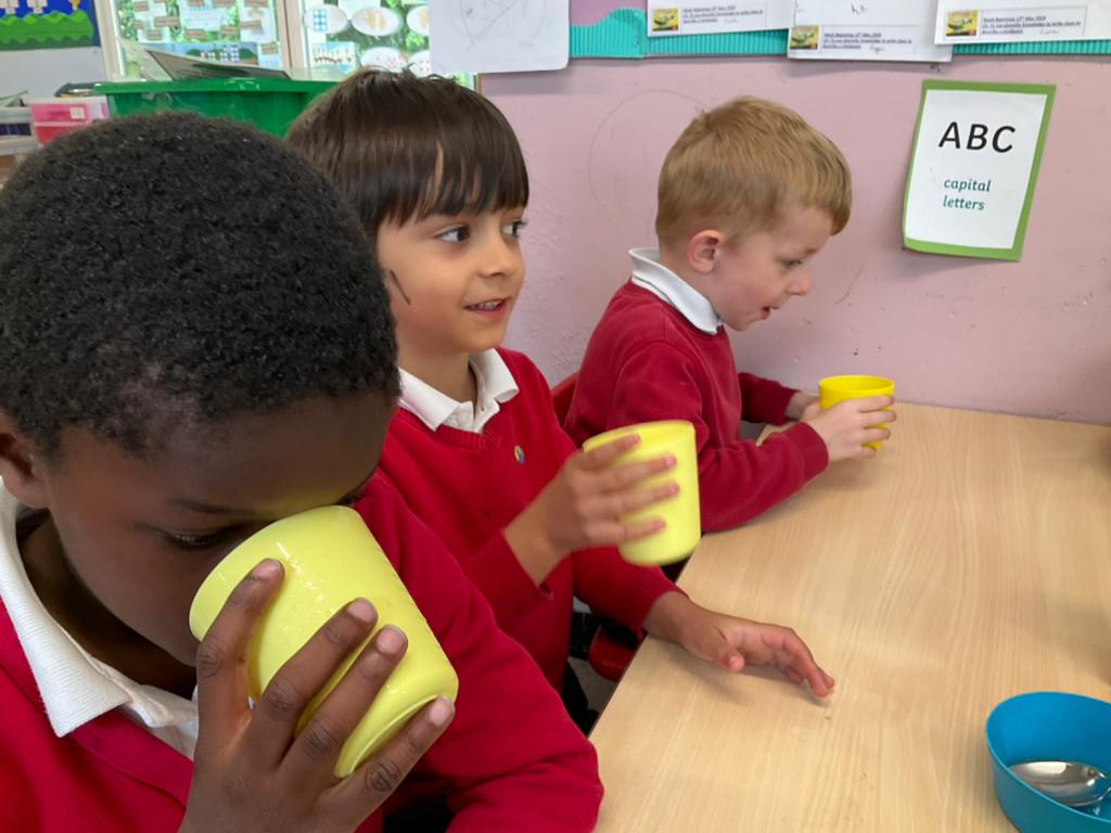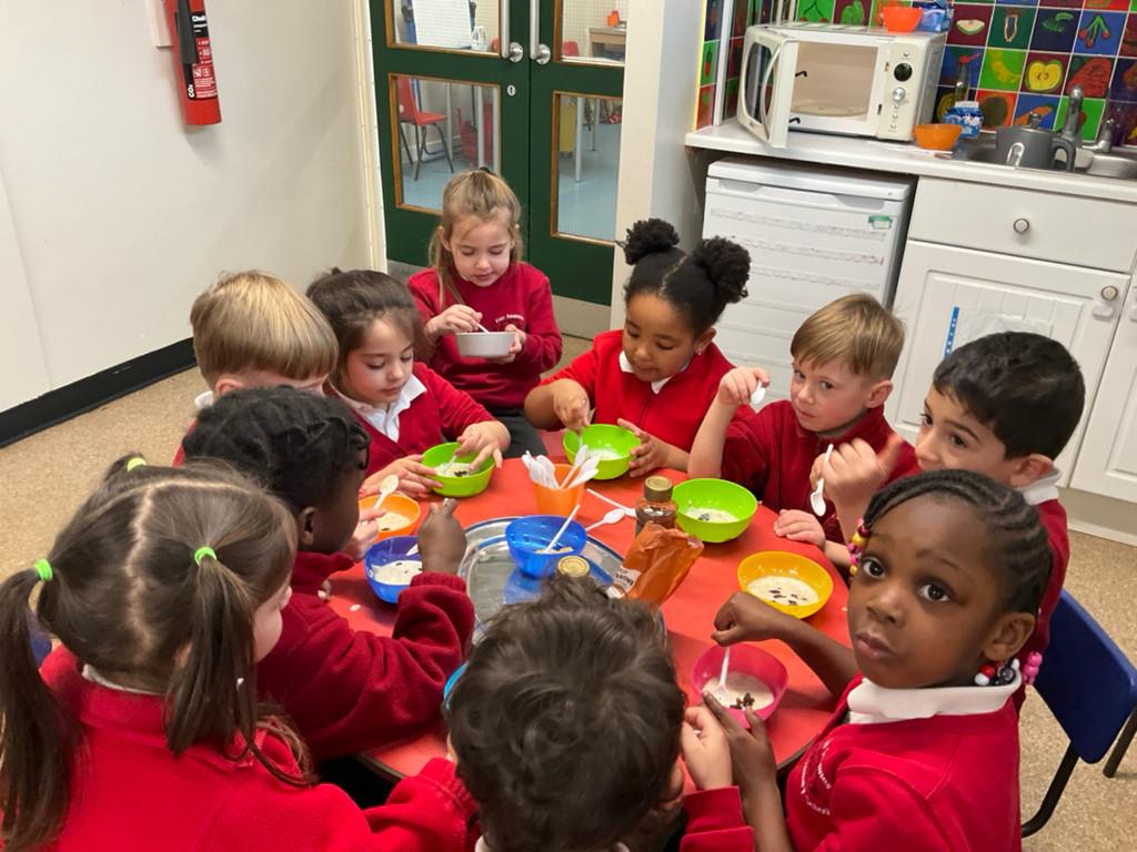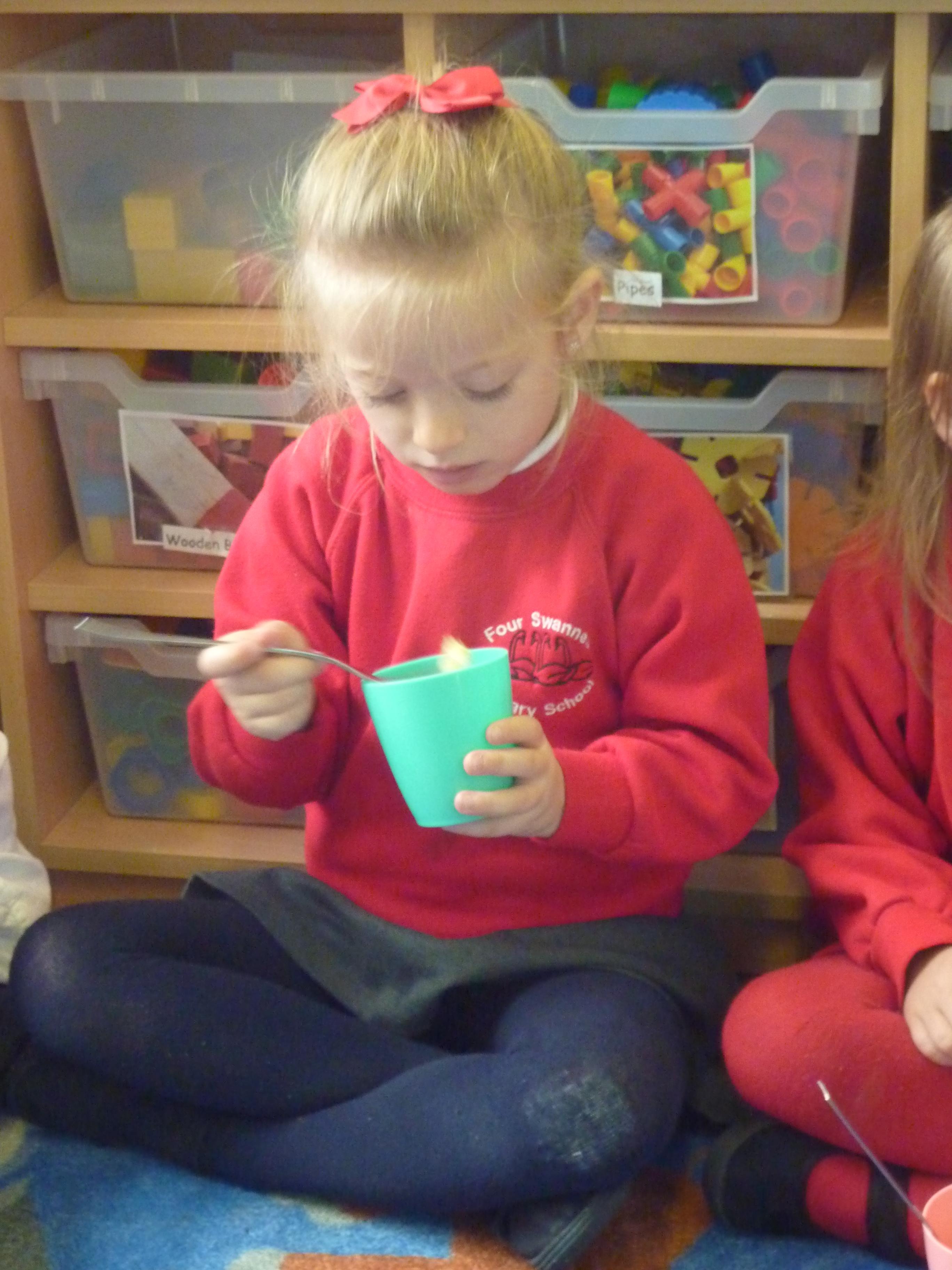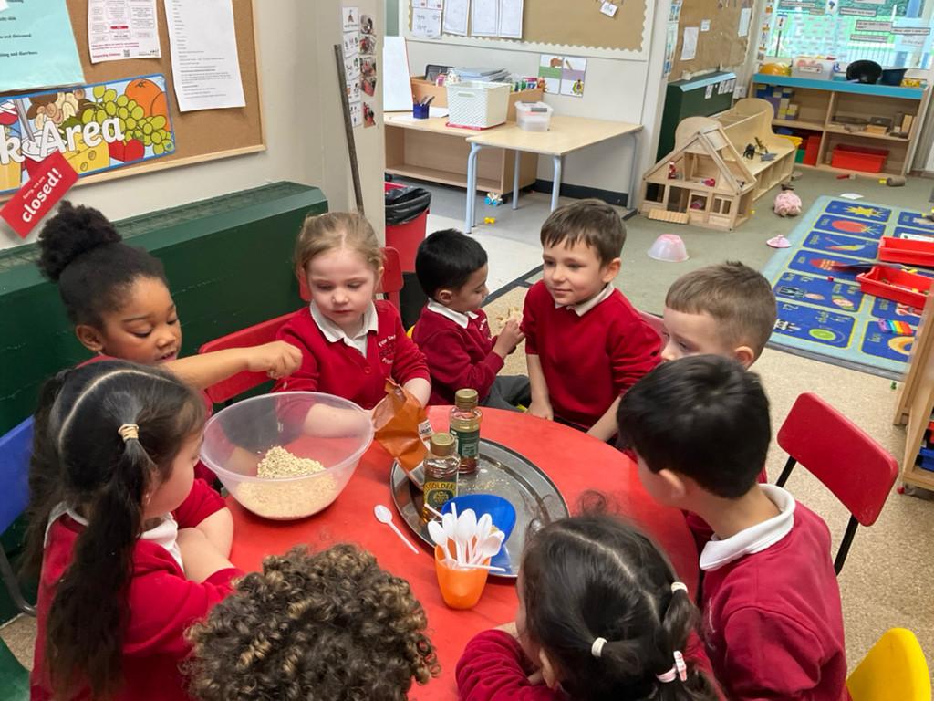 After reading the book, Goldilocks and the three Bears, the children cooked porridge. They observed how the oats changed after adding hot water and after being cooked in the microwave. The children had a selection of toppings to choose from. They enjoyed their porridge and many went for second helpings.