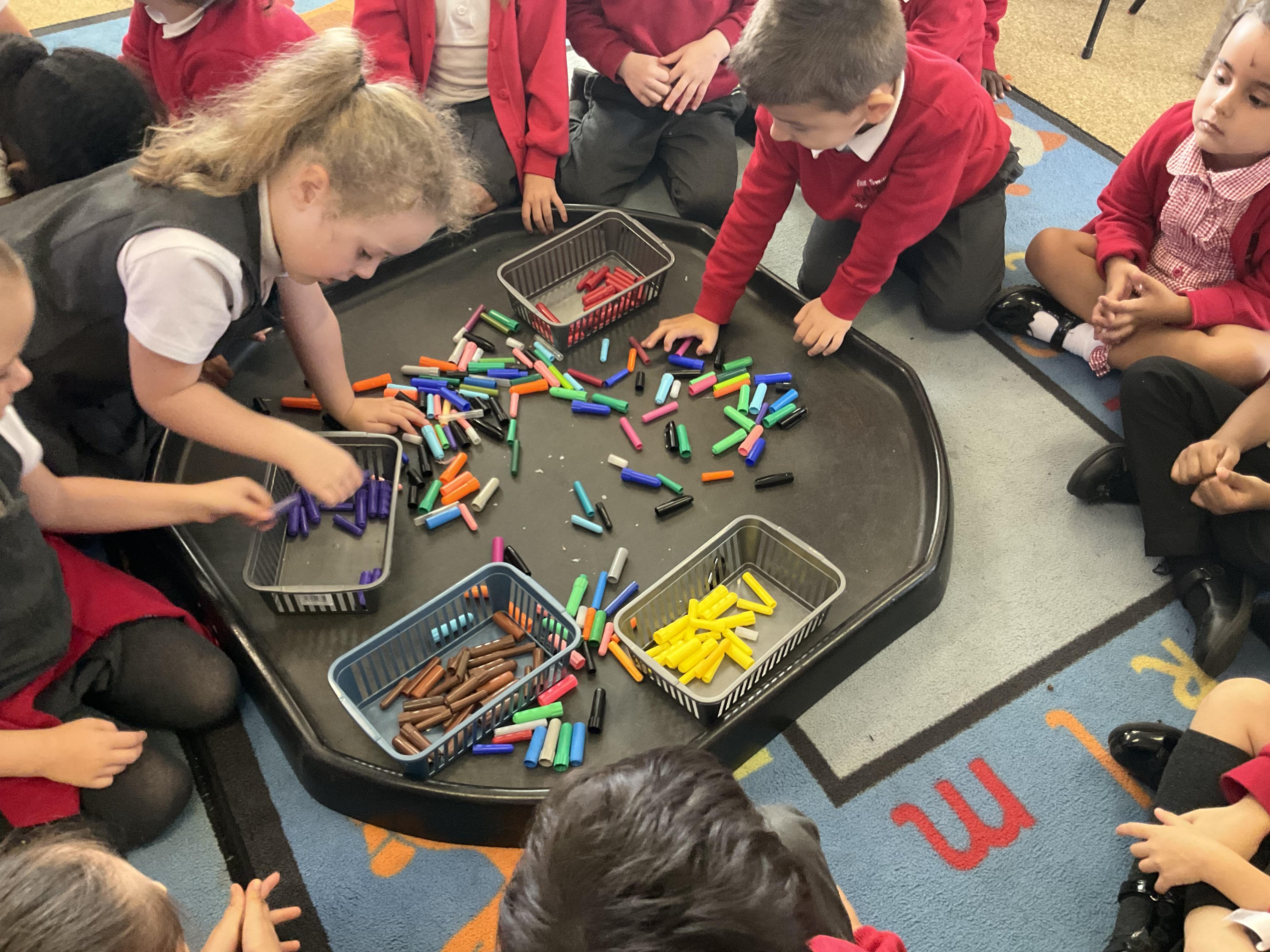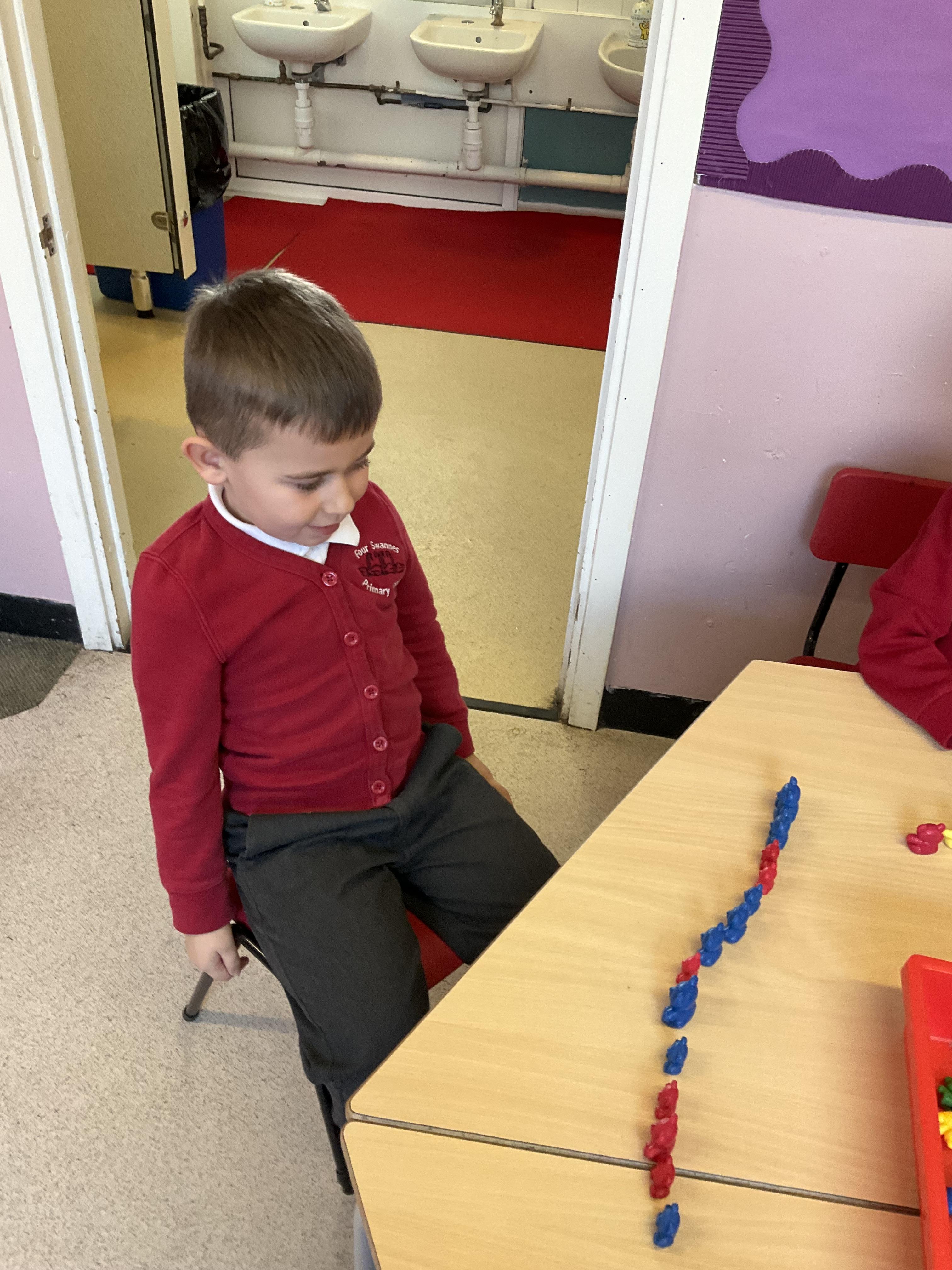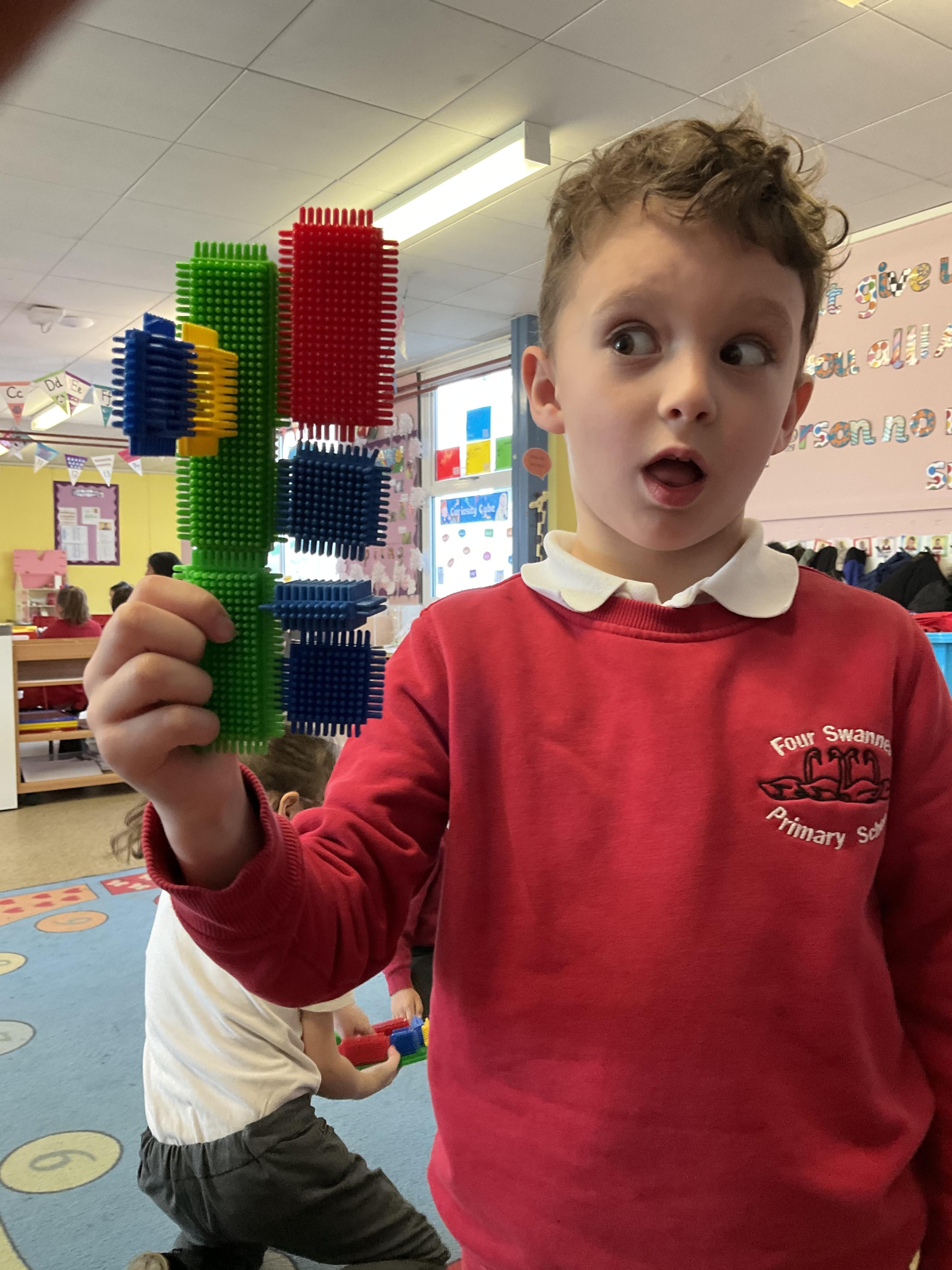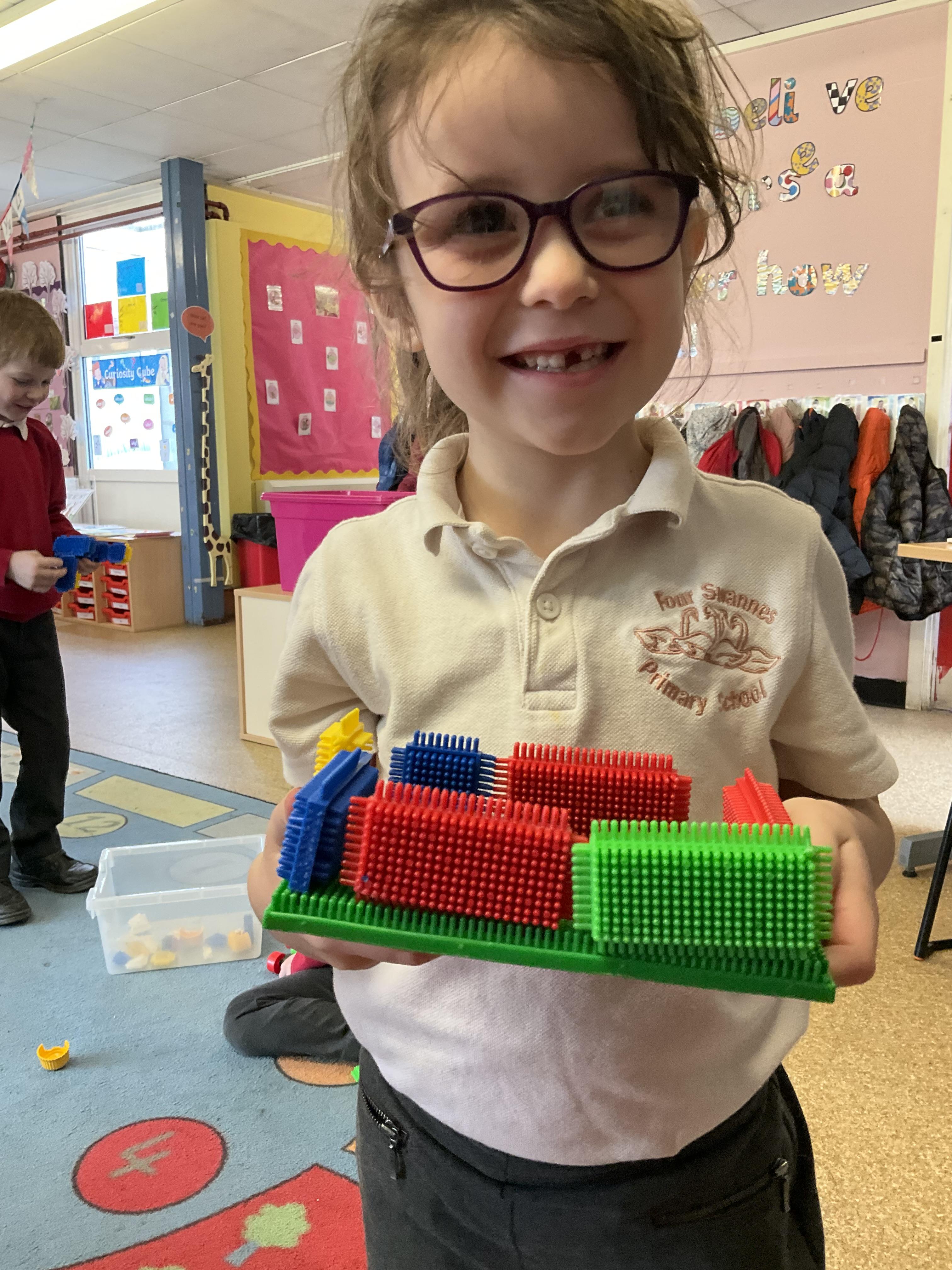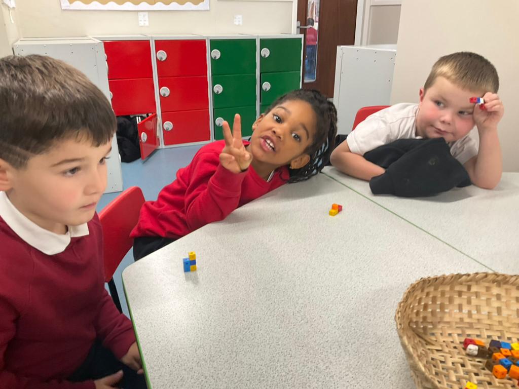 In maths we have been learning about the different composition of the numbers 4 and 5 using multilinks, five frames and counters and numicons. The children explored the different ways to make the number 4; 4 and 0, 3 and 1, 2 and 2 and the number 5; 4 and 1, 3 and 2, 5. Please keep supporting them at home with their Maths learning.