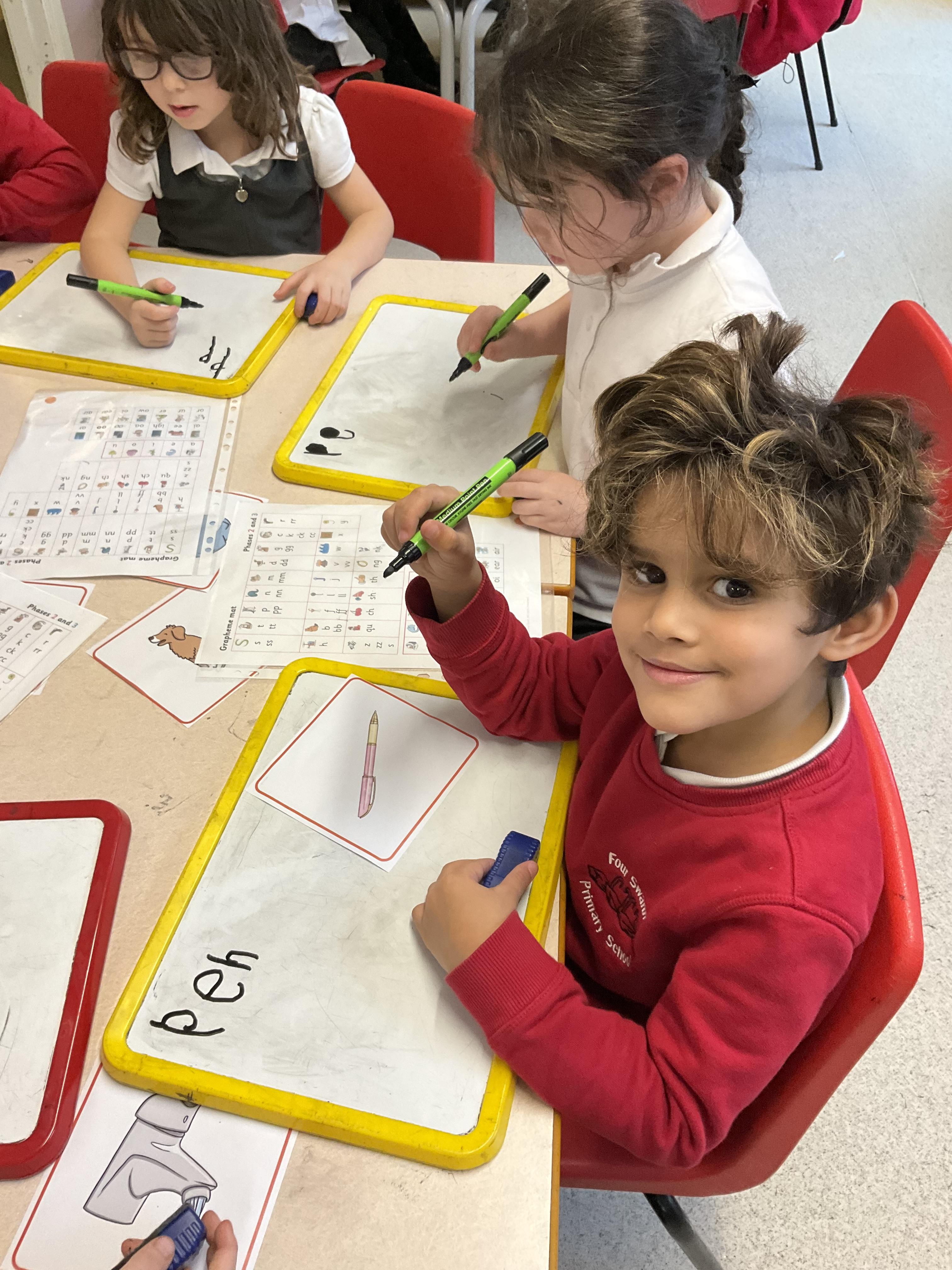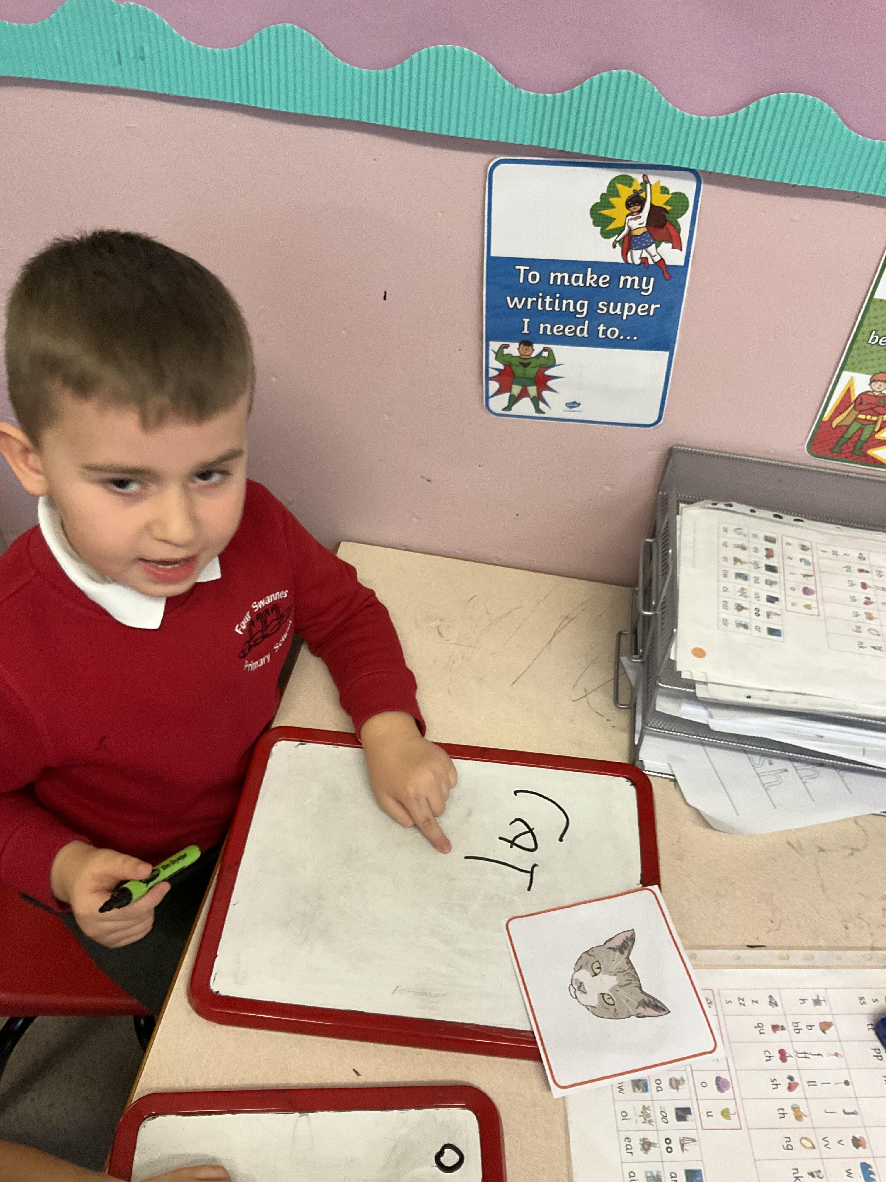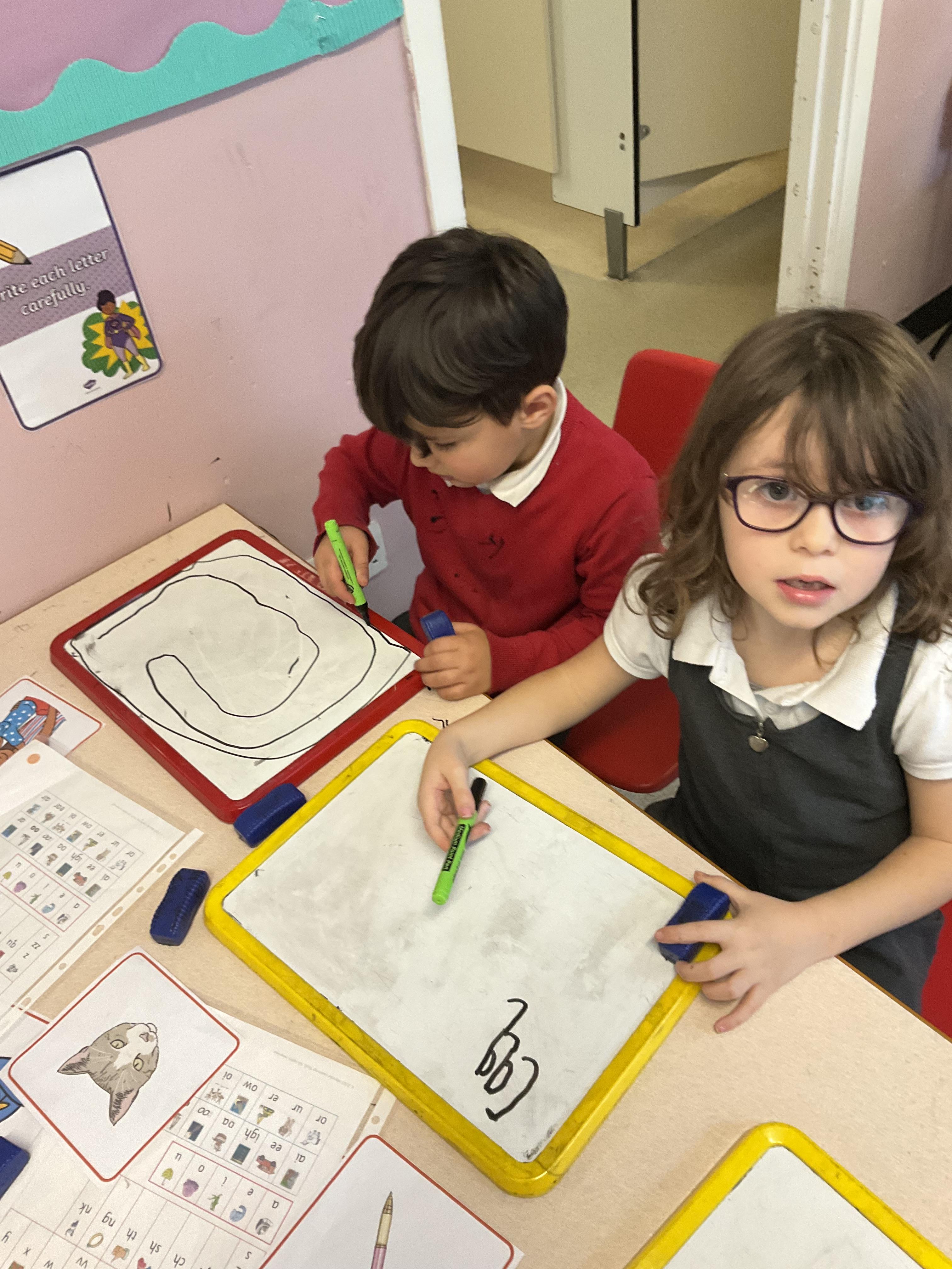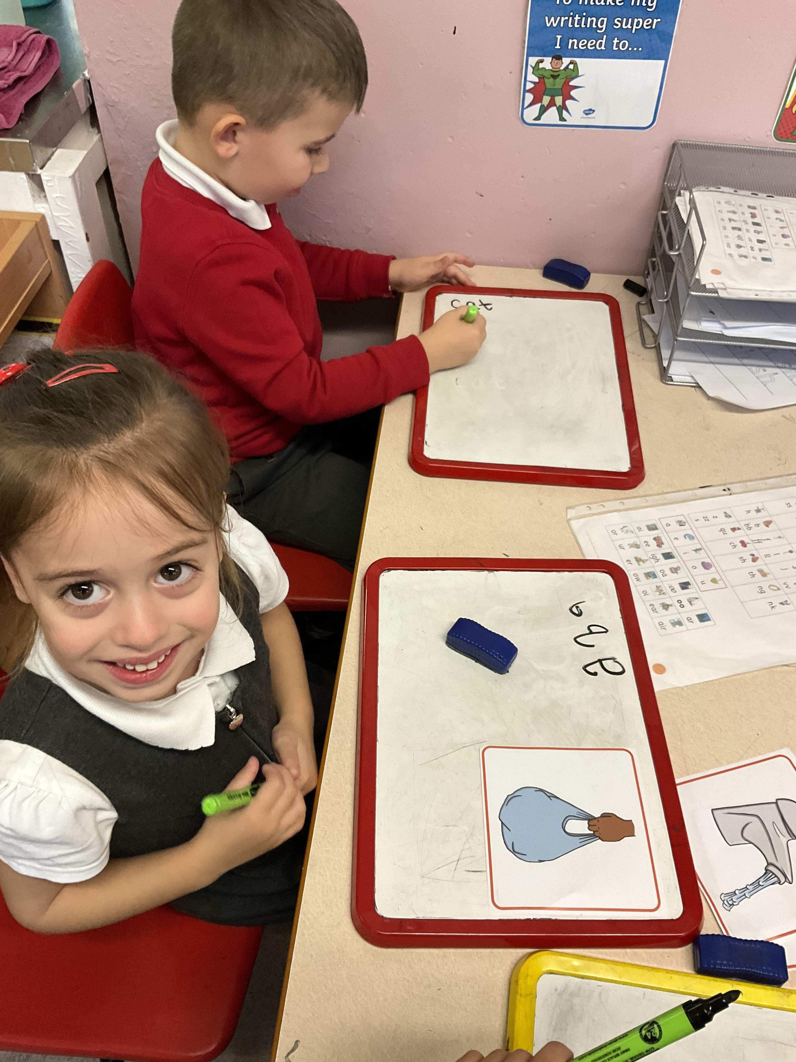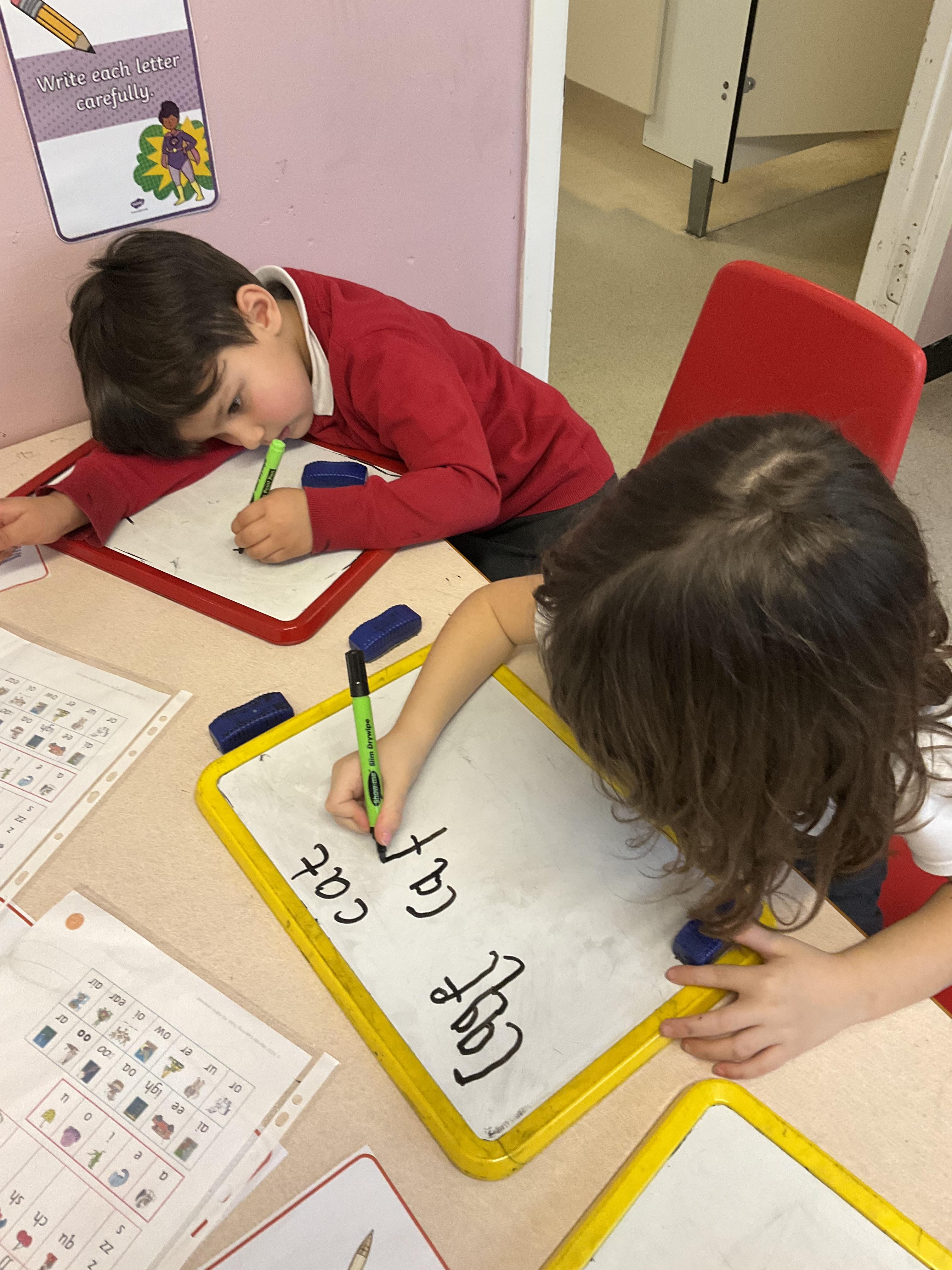 The children have been spelling words using their phonetic knowledge. They are using good letter formation to write the corresponding graphemes. We are very proud of them.