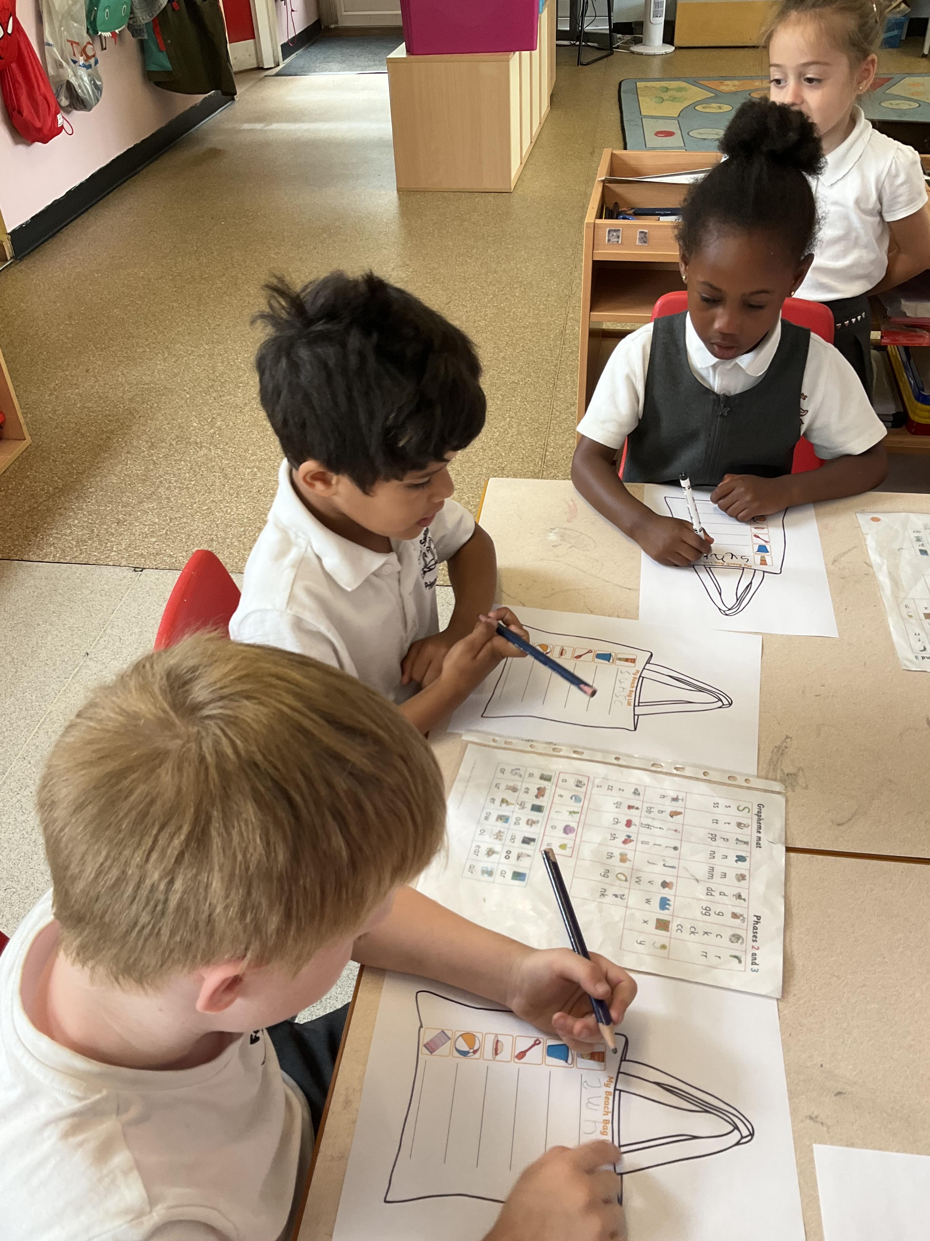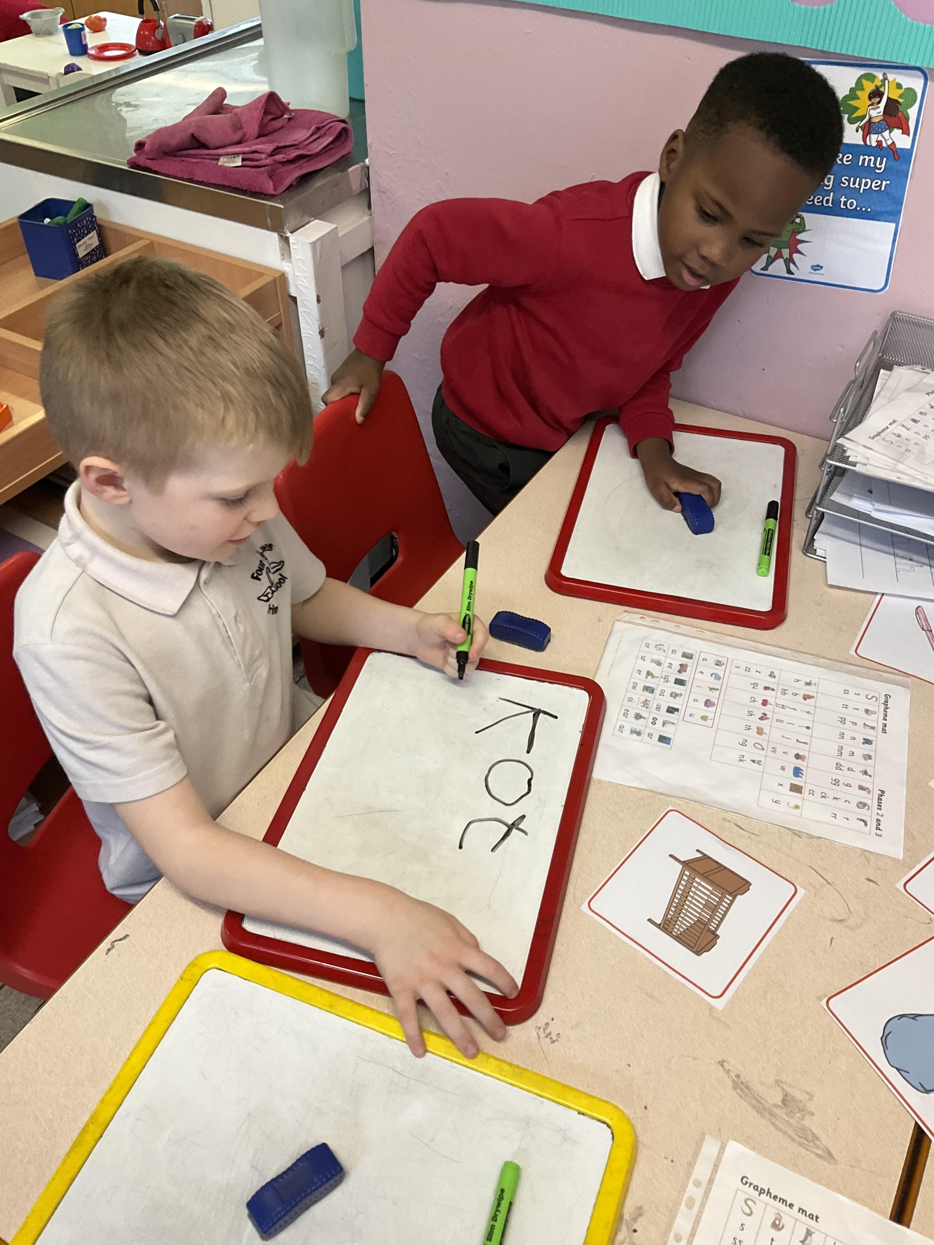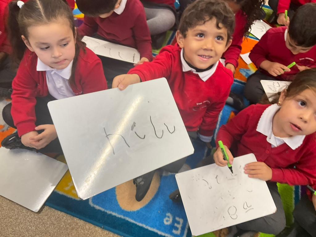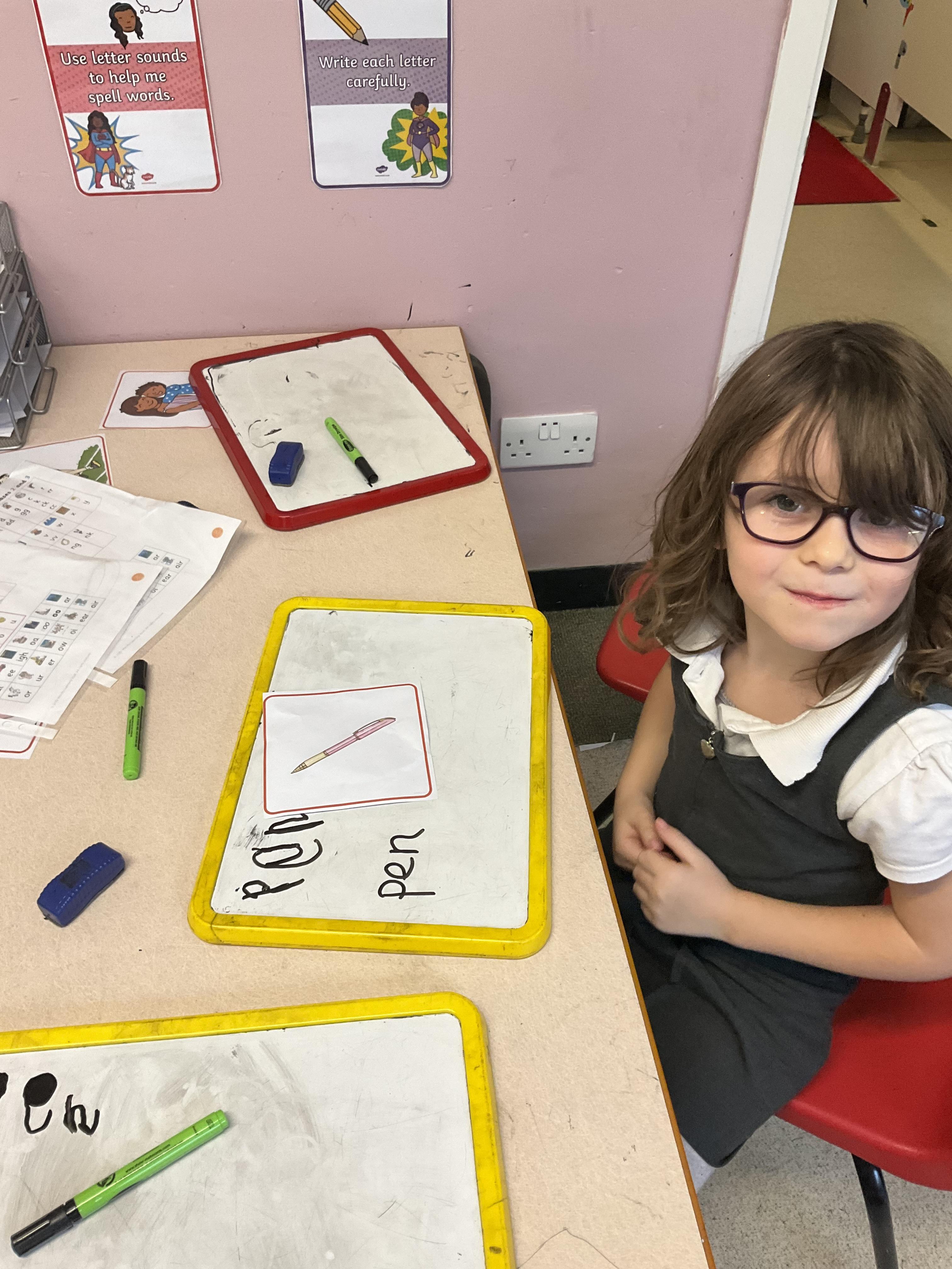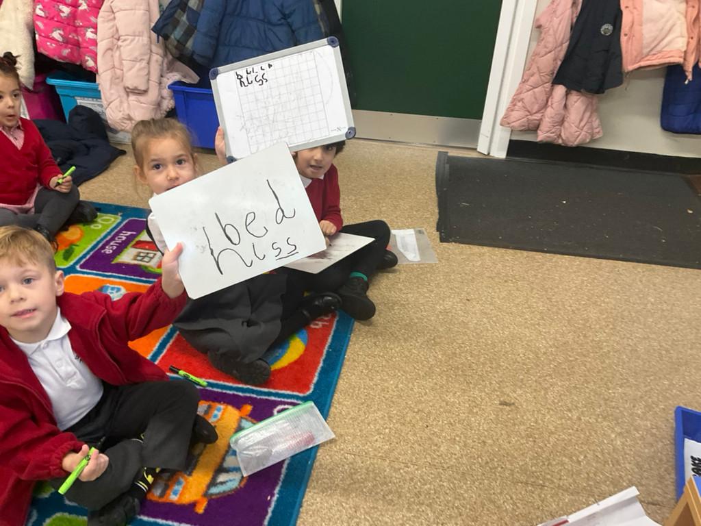 The children have been spelling words using their phonetic knowledge. They are using good letter formation to write the corresponding graphemes. We are very proud of them.
