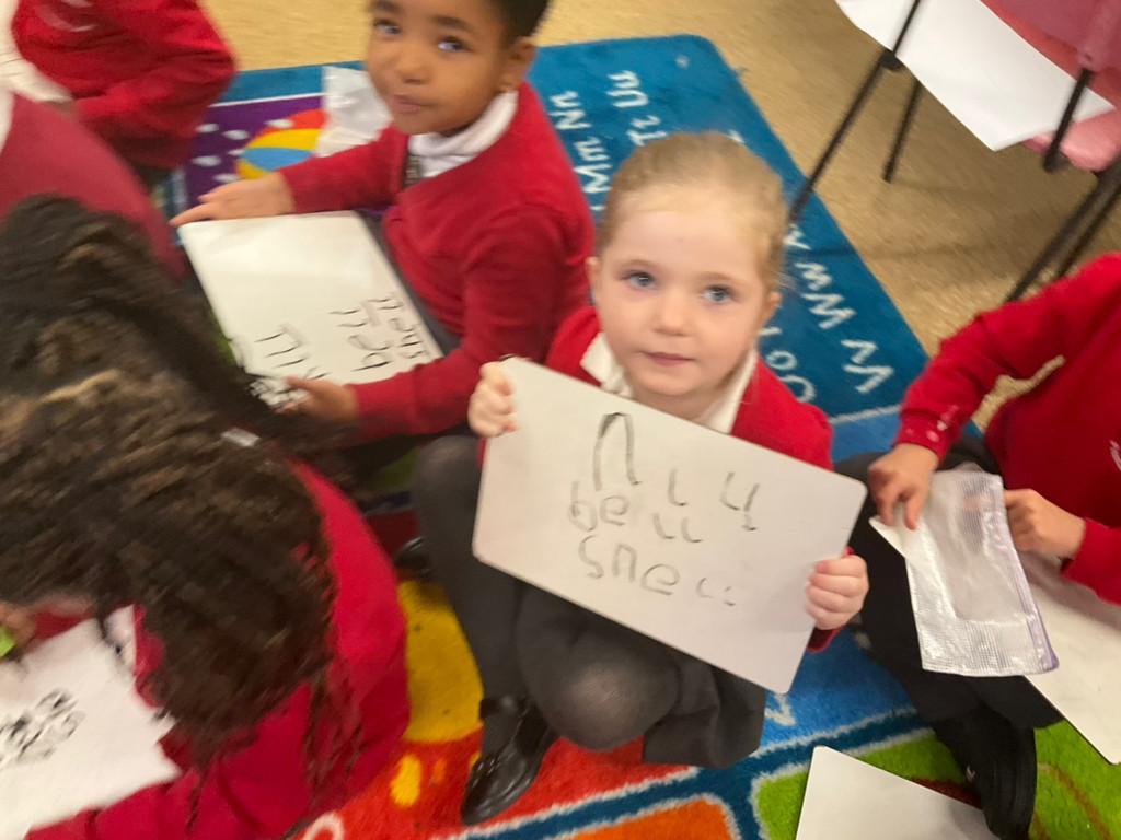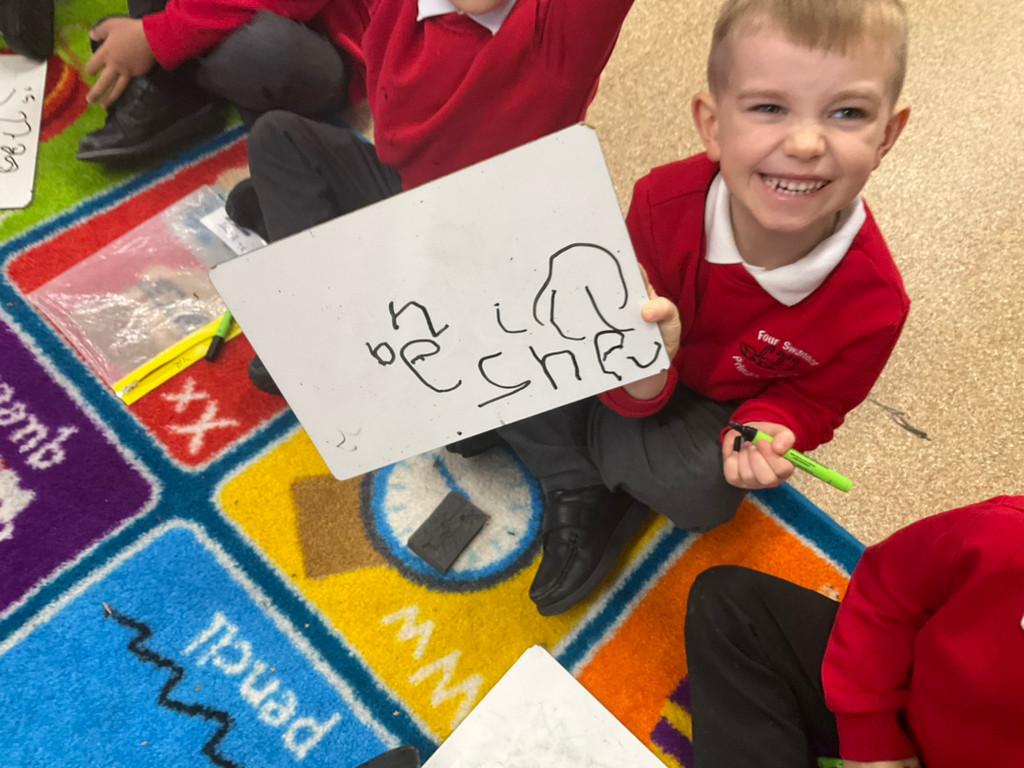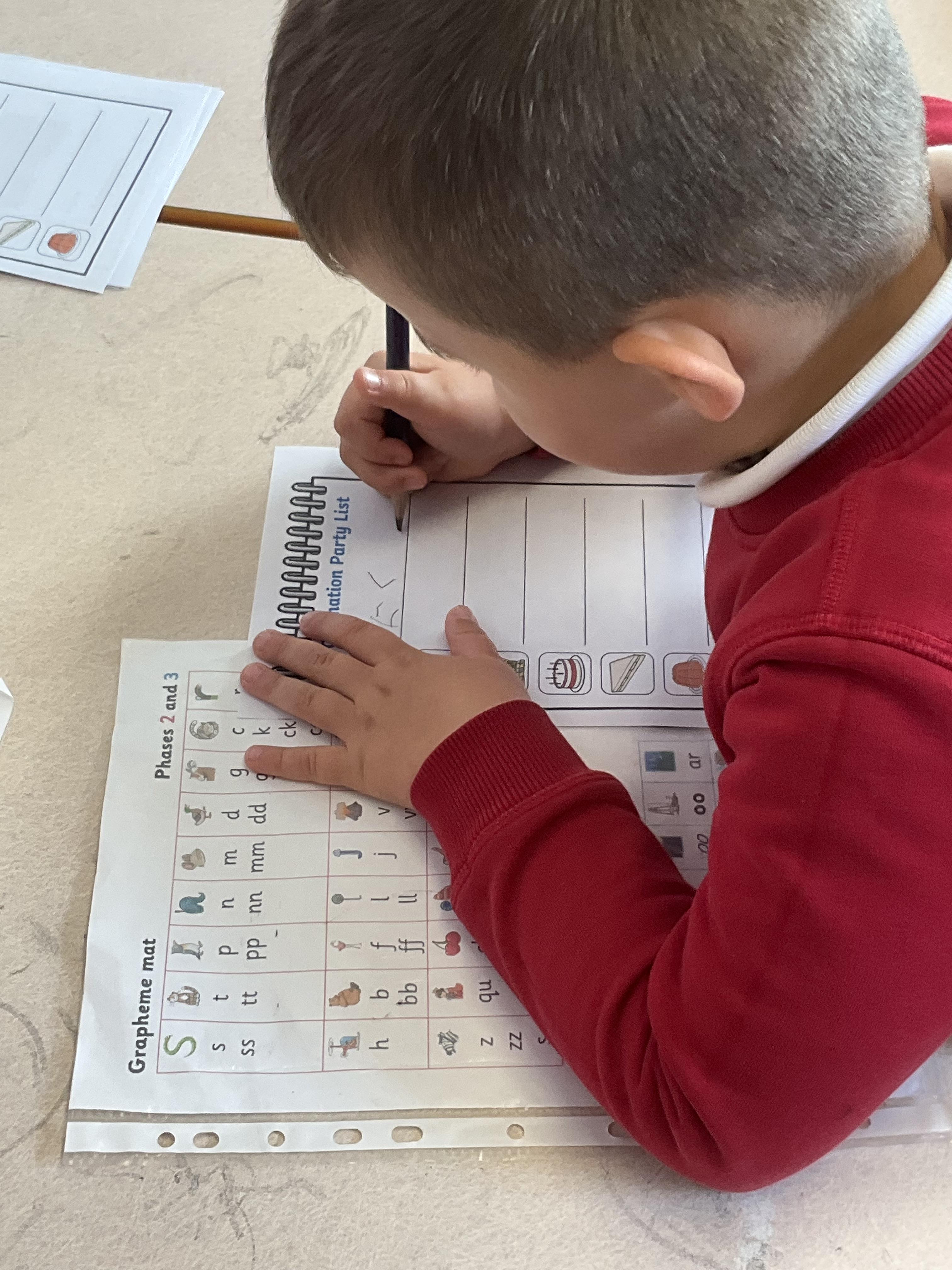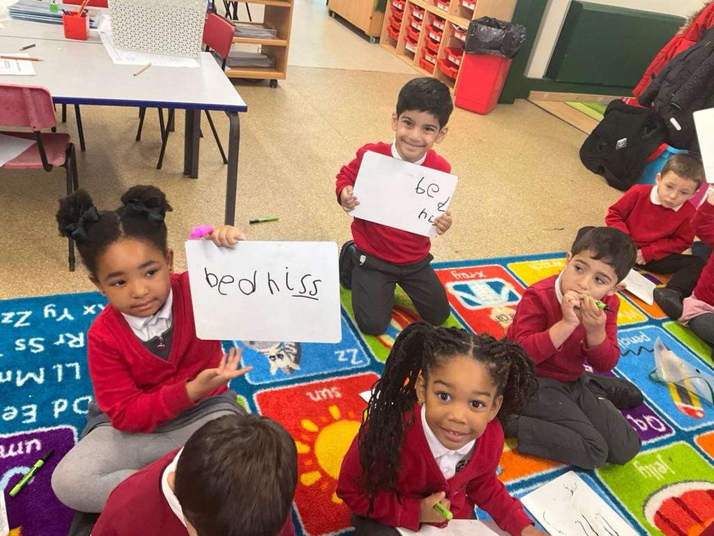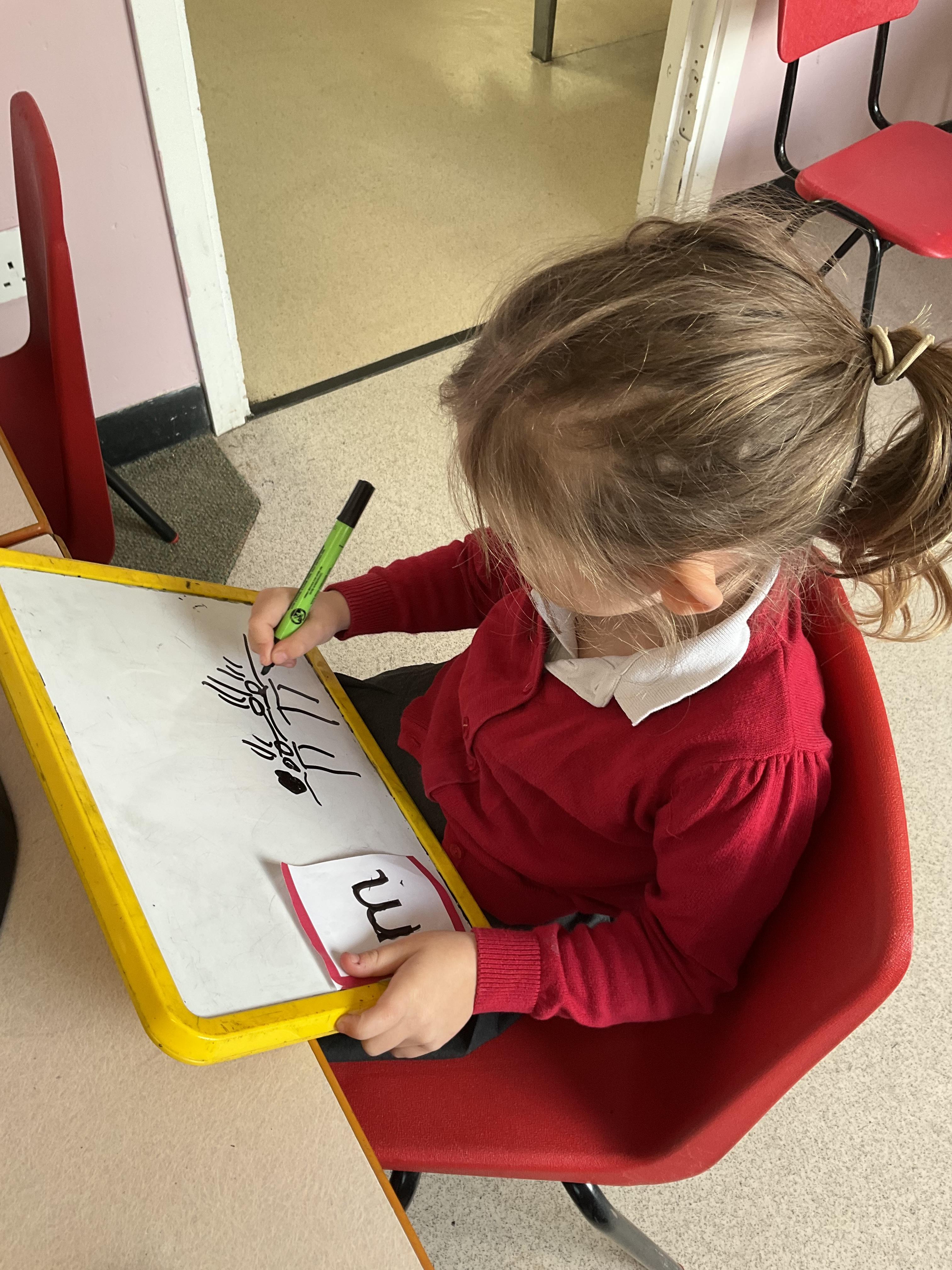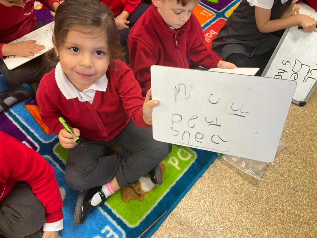 The children have been spelling words using their phonetic knowledge. They are using good letter formation to write the corresponding graphemes. We are very proud of them.