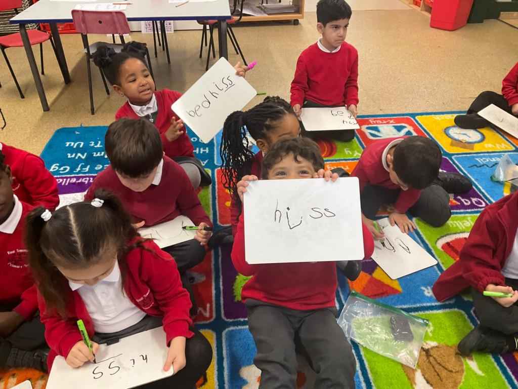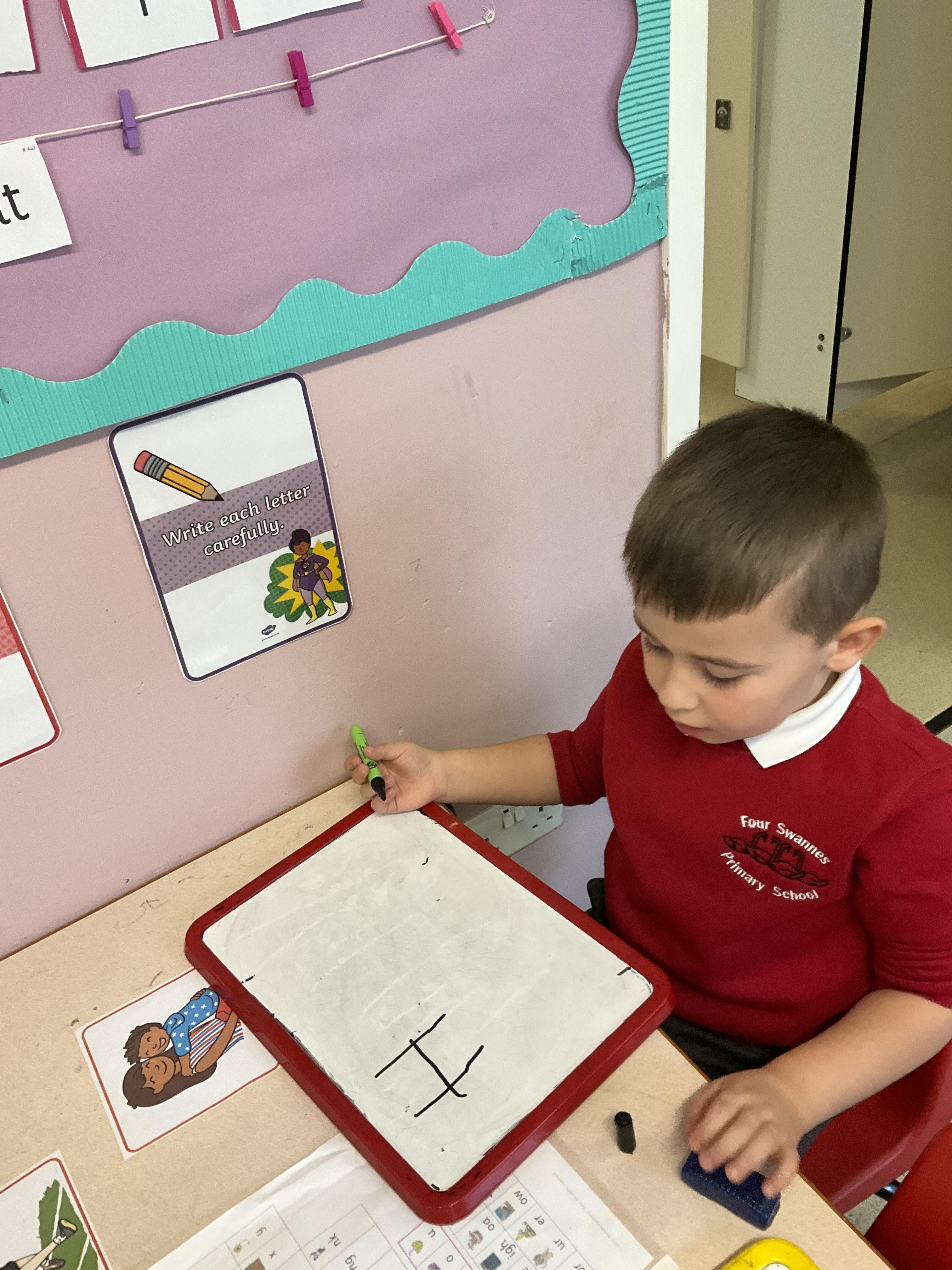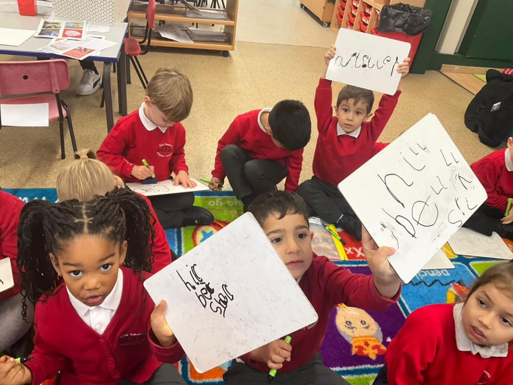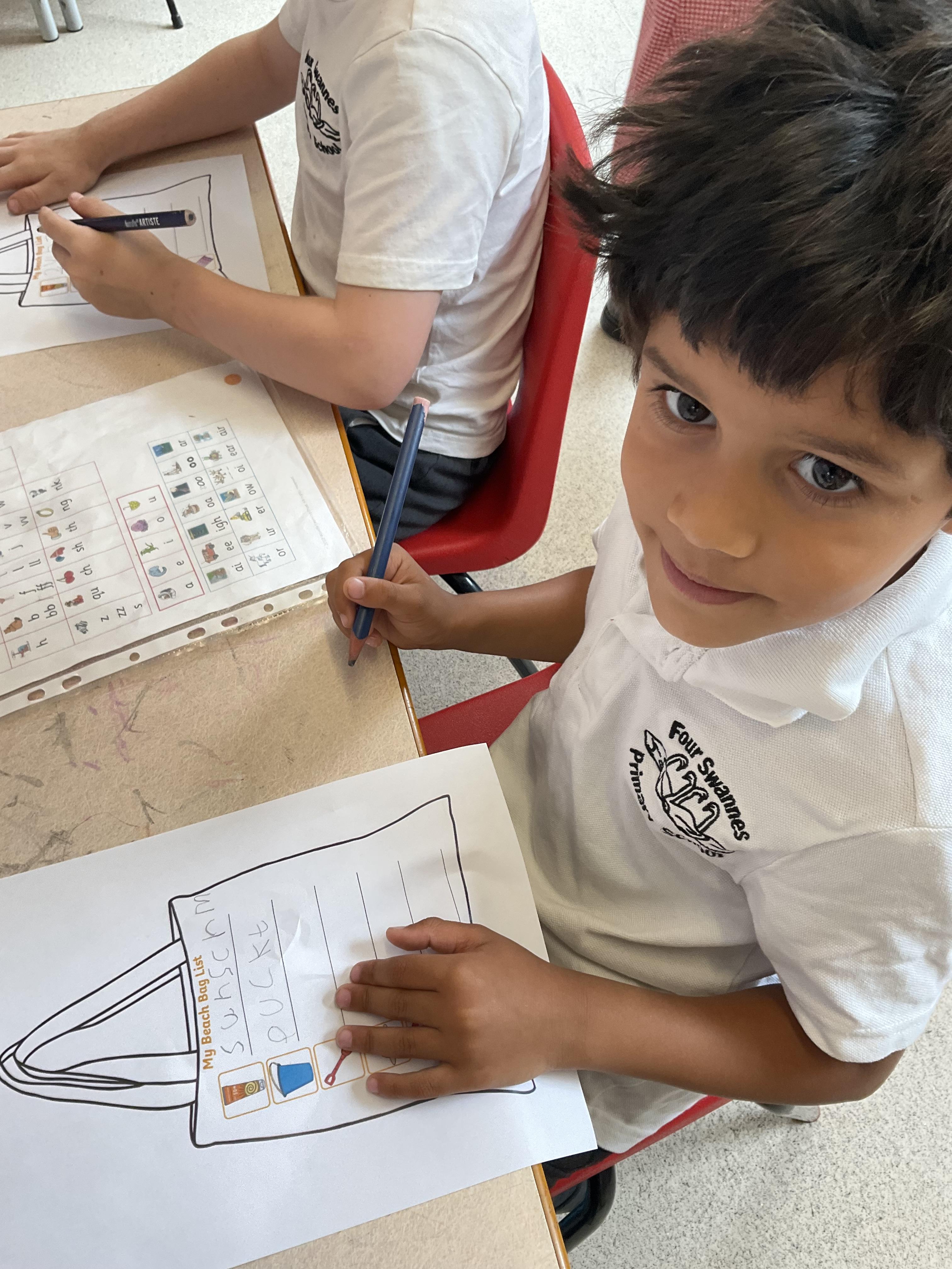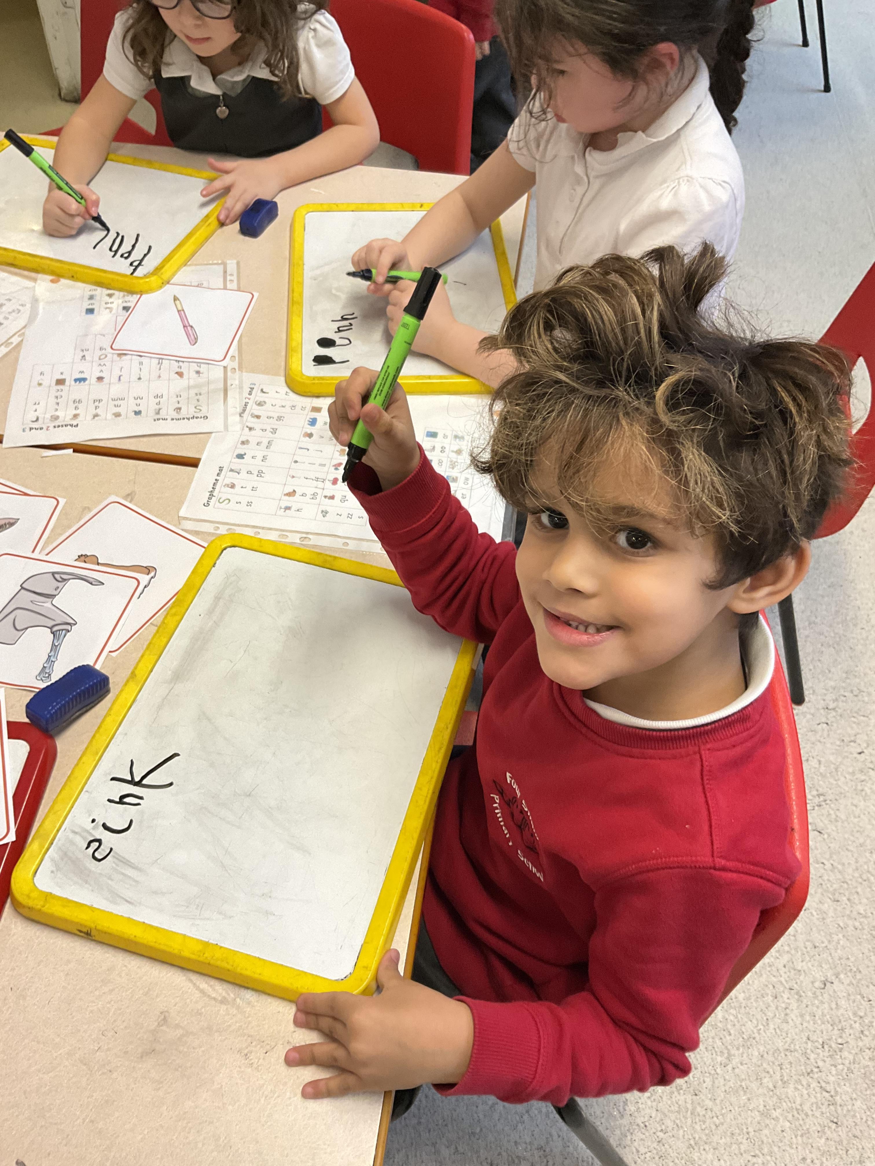 The children have been spelling words using their phonetic knowledge. They are using good letter formation to write the corresponding graphemes. We are very proud of them.