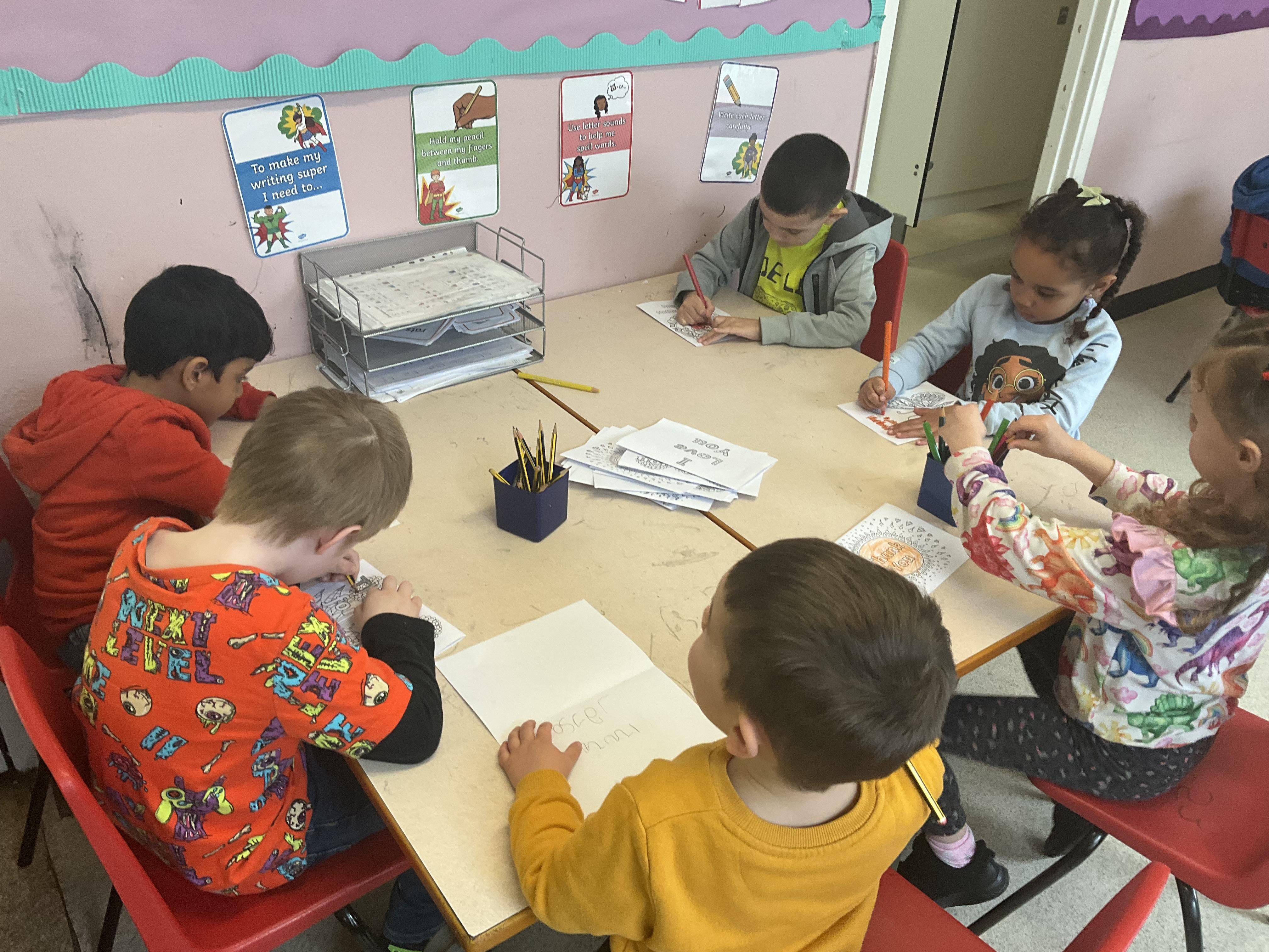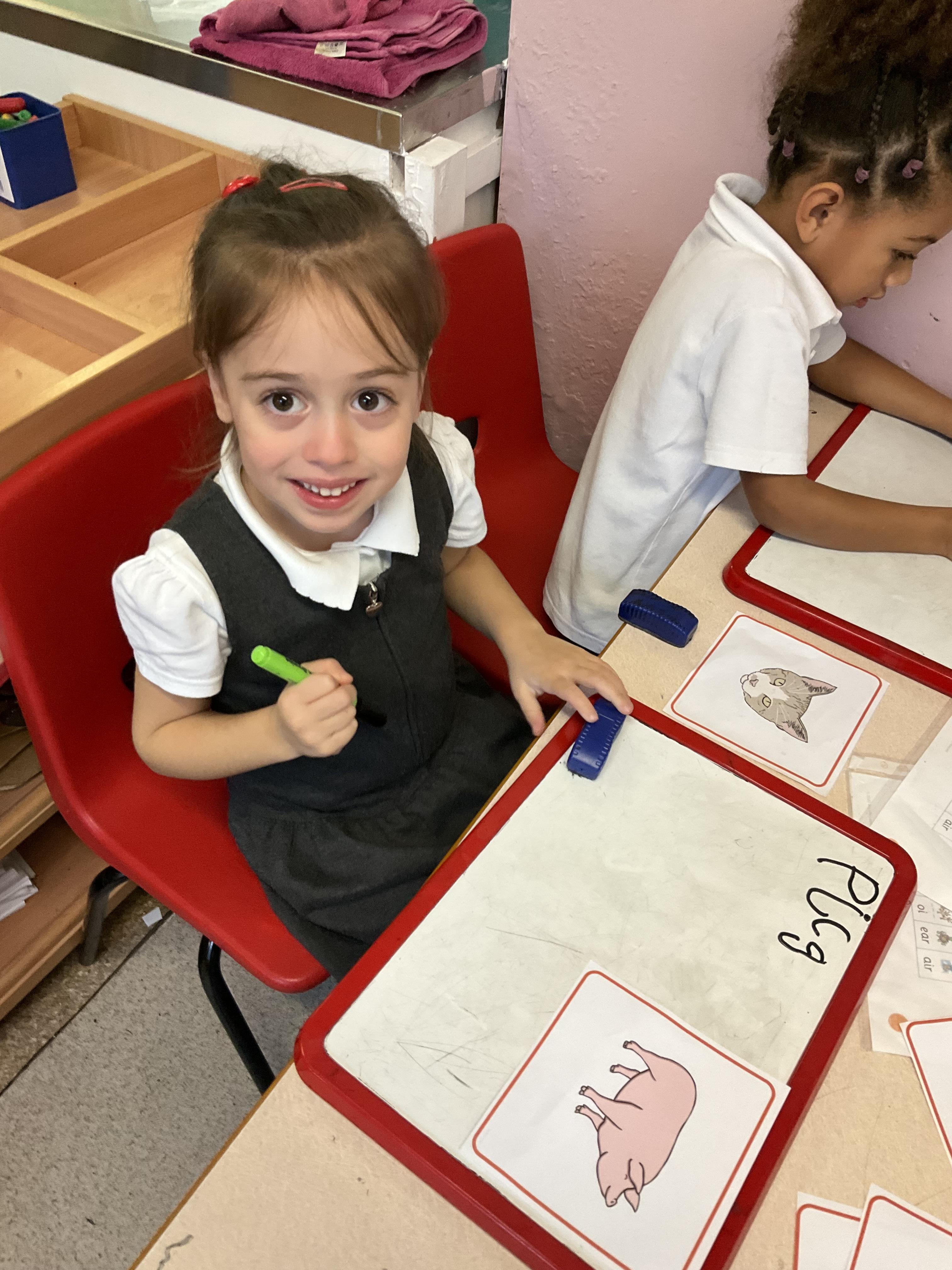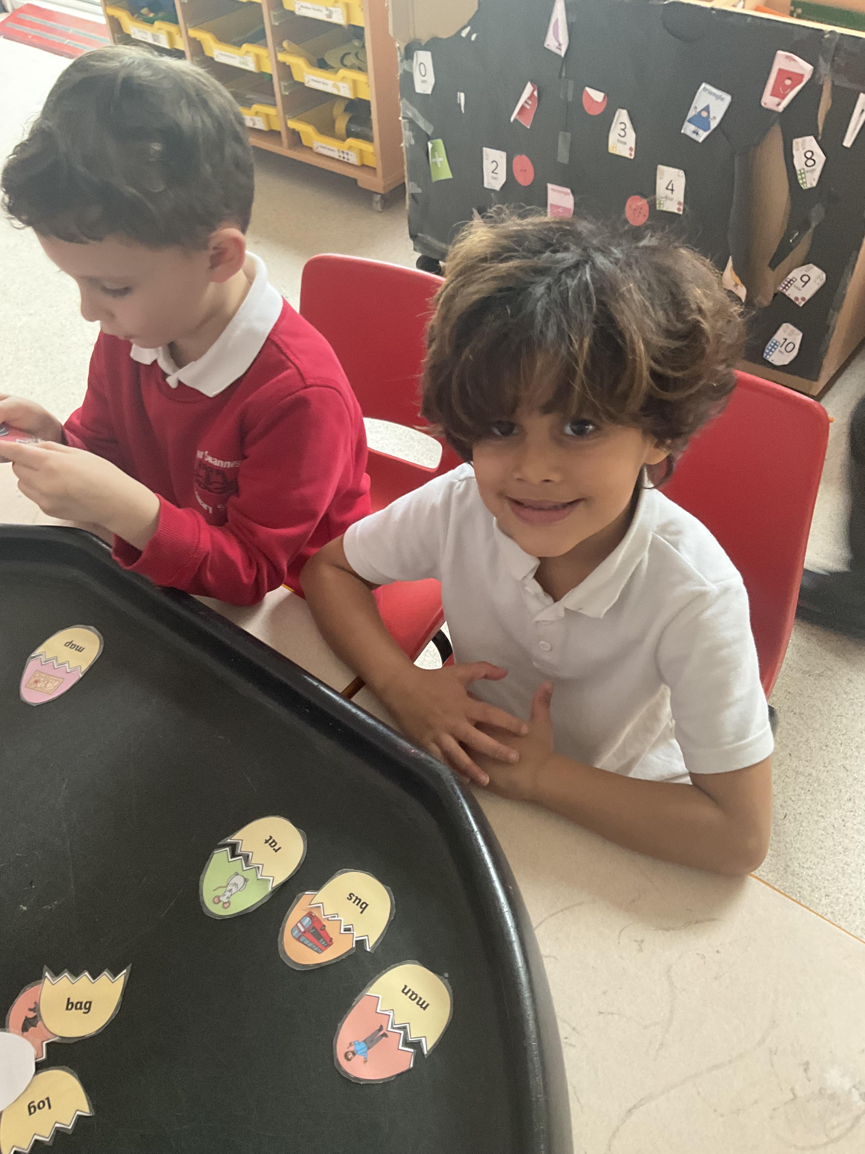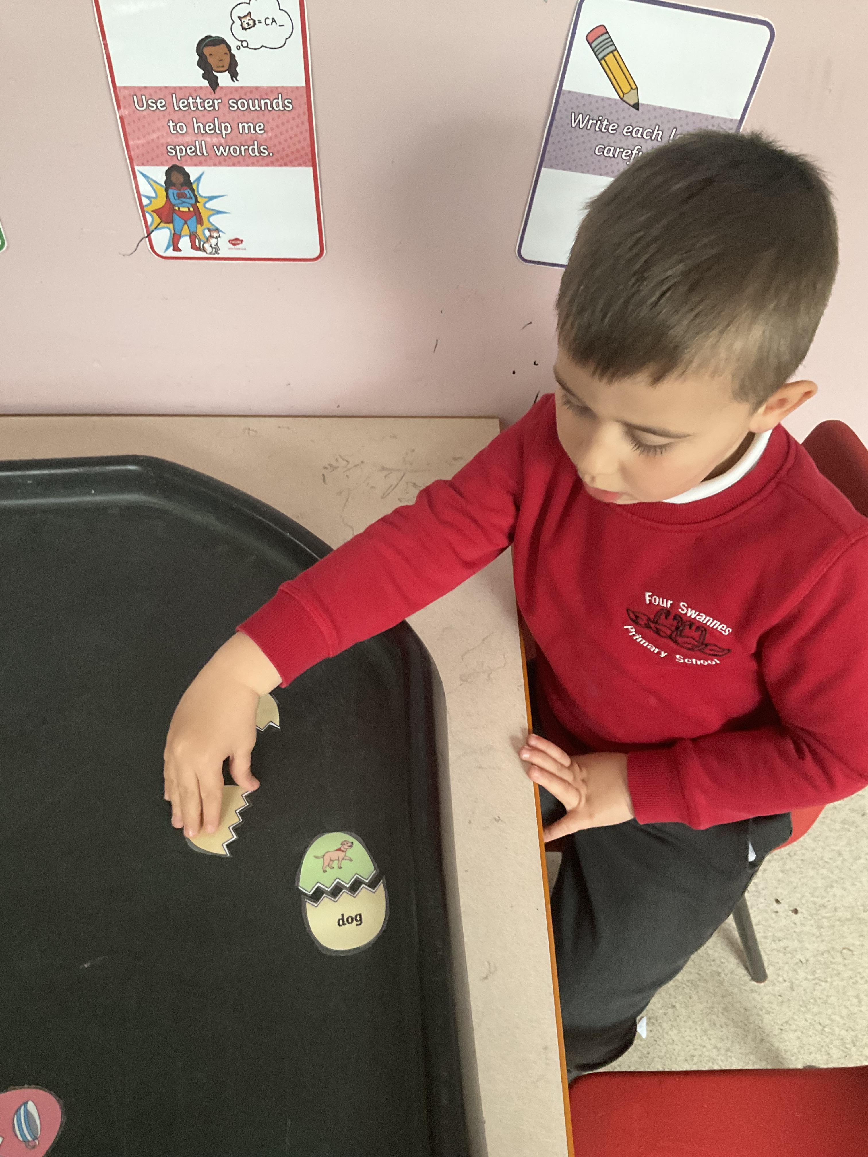 The children have been spelling words using their phonetic knowledge. They are using good letter formation to write the corresponding graphemes. We are very proud of them.