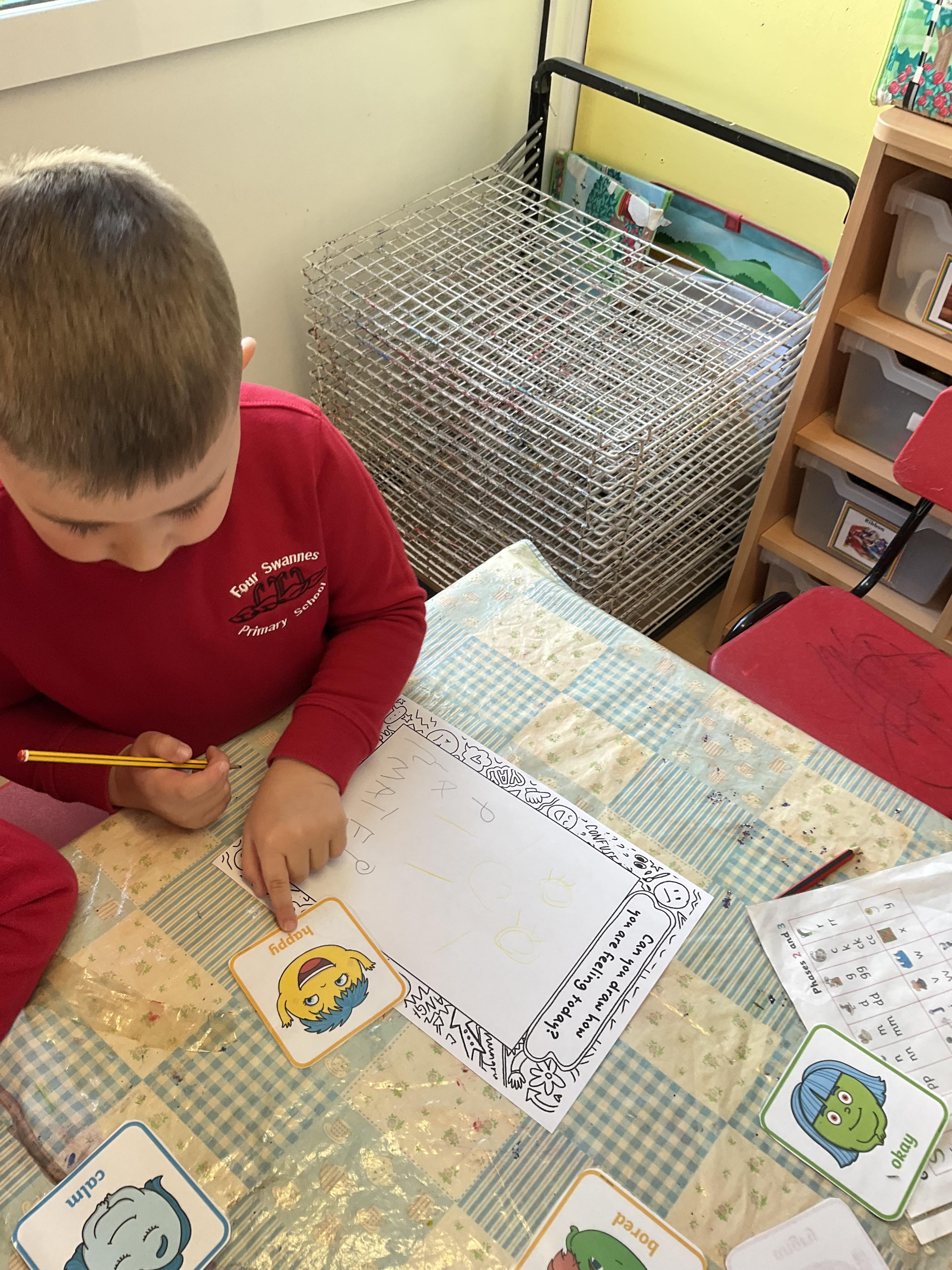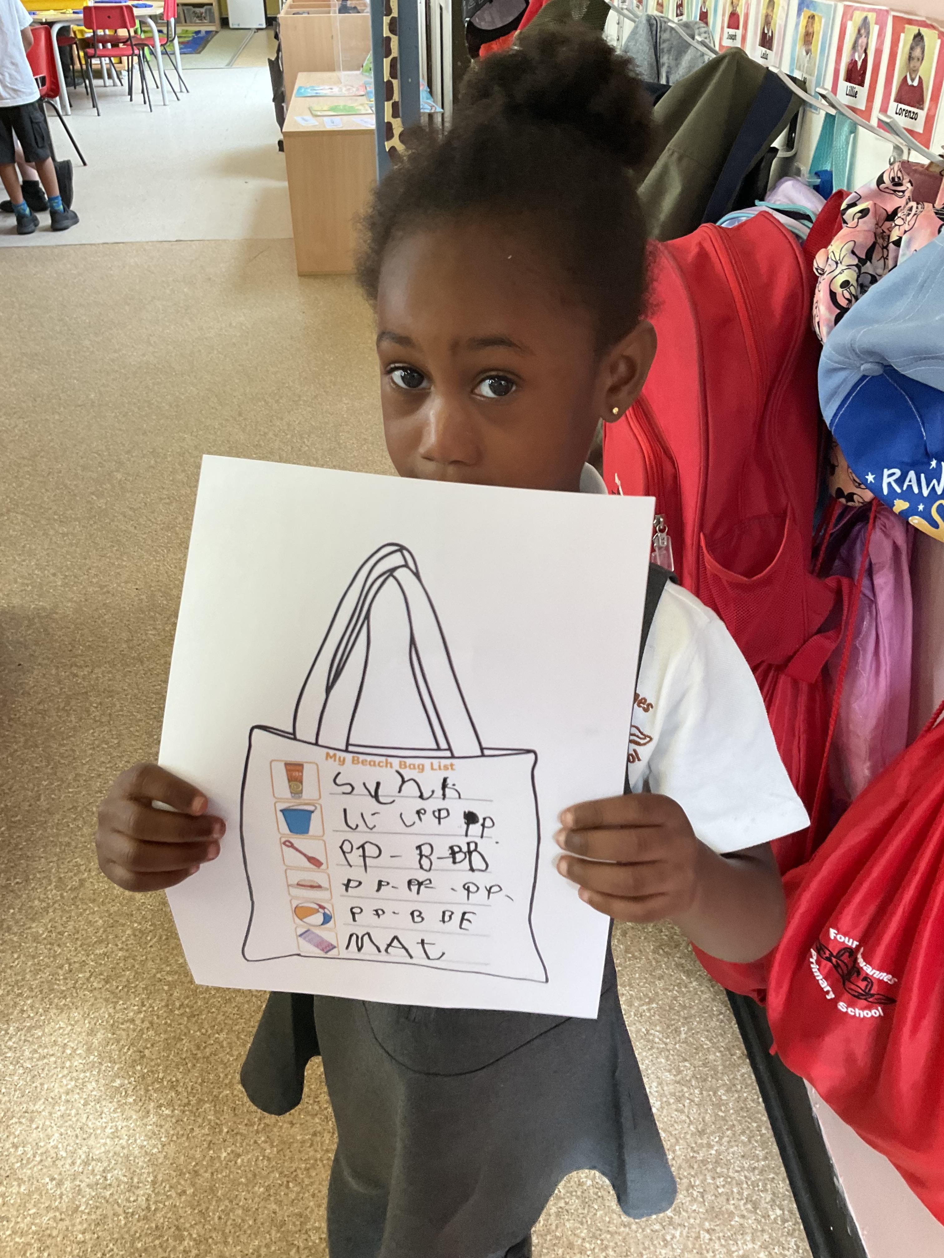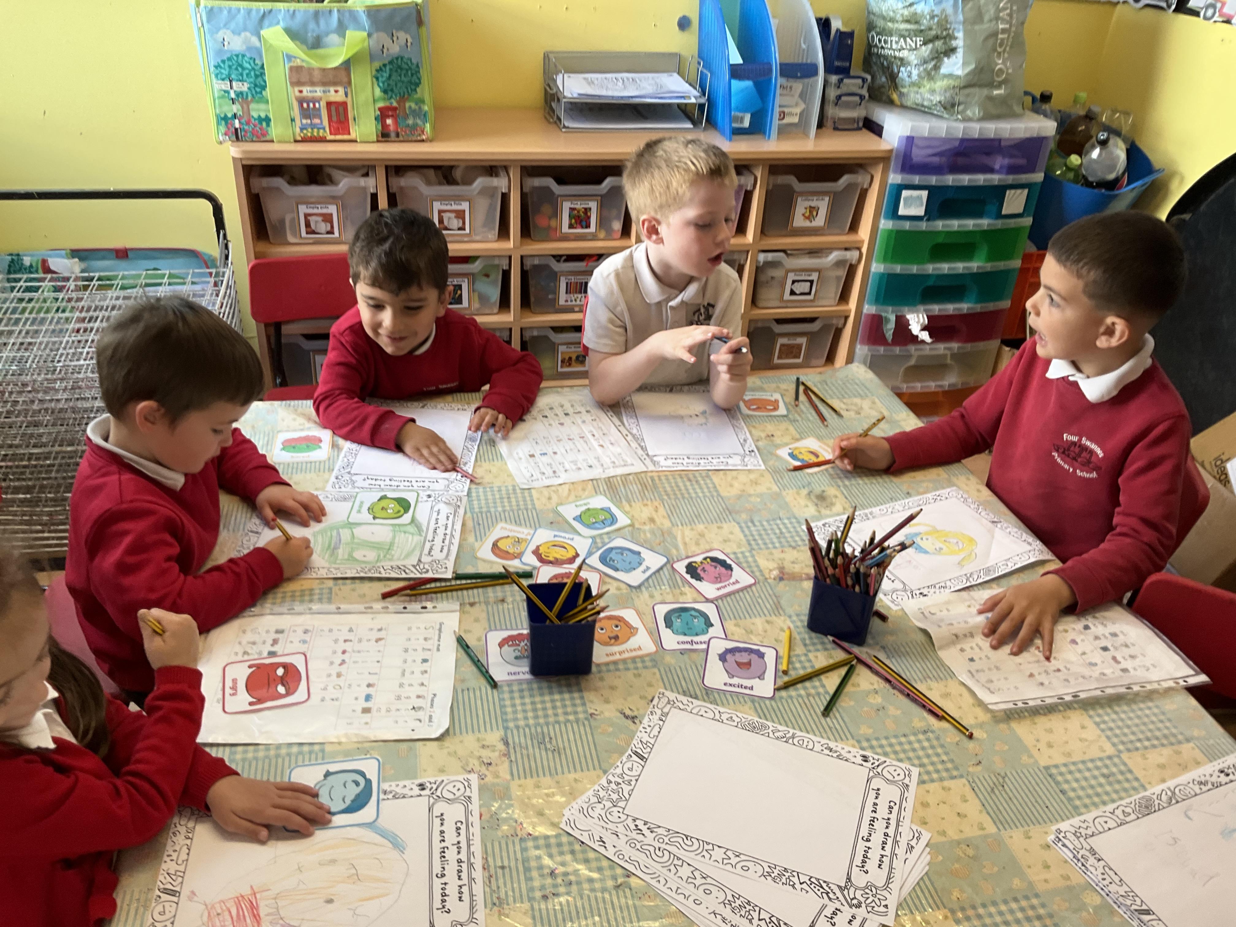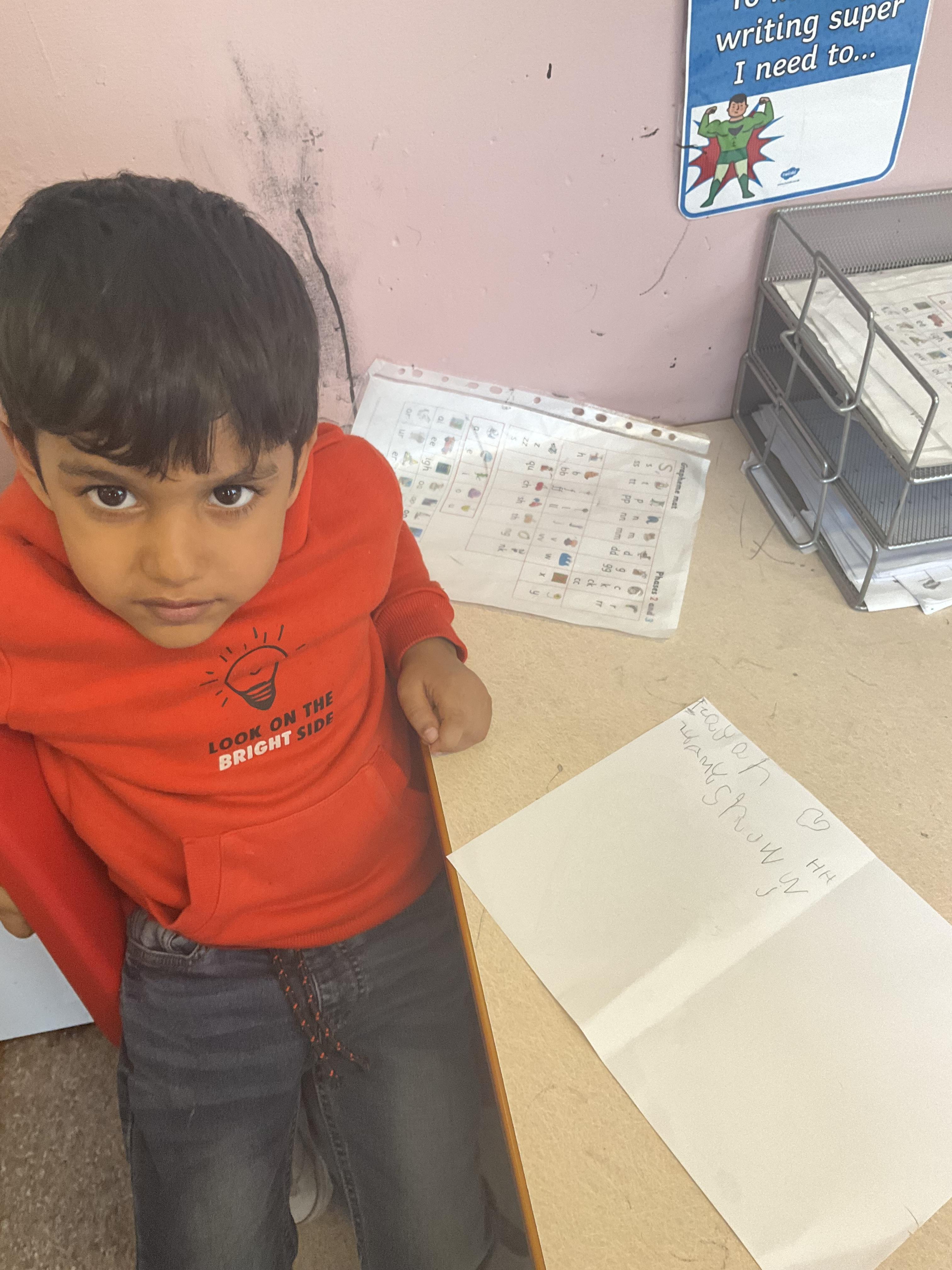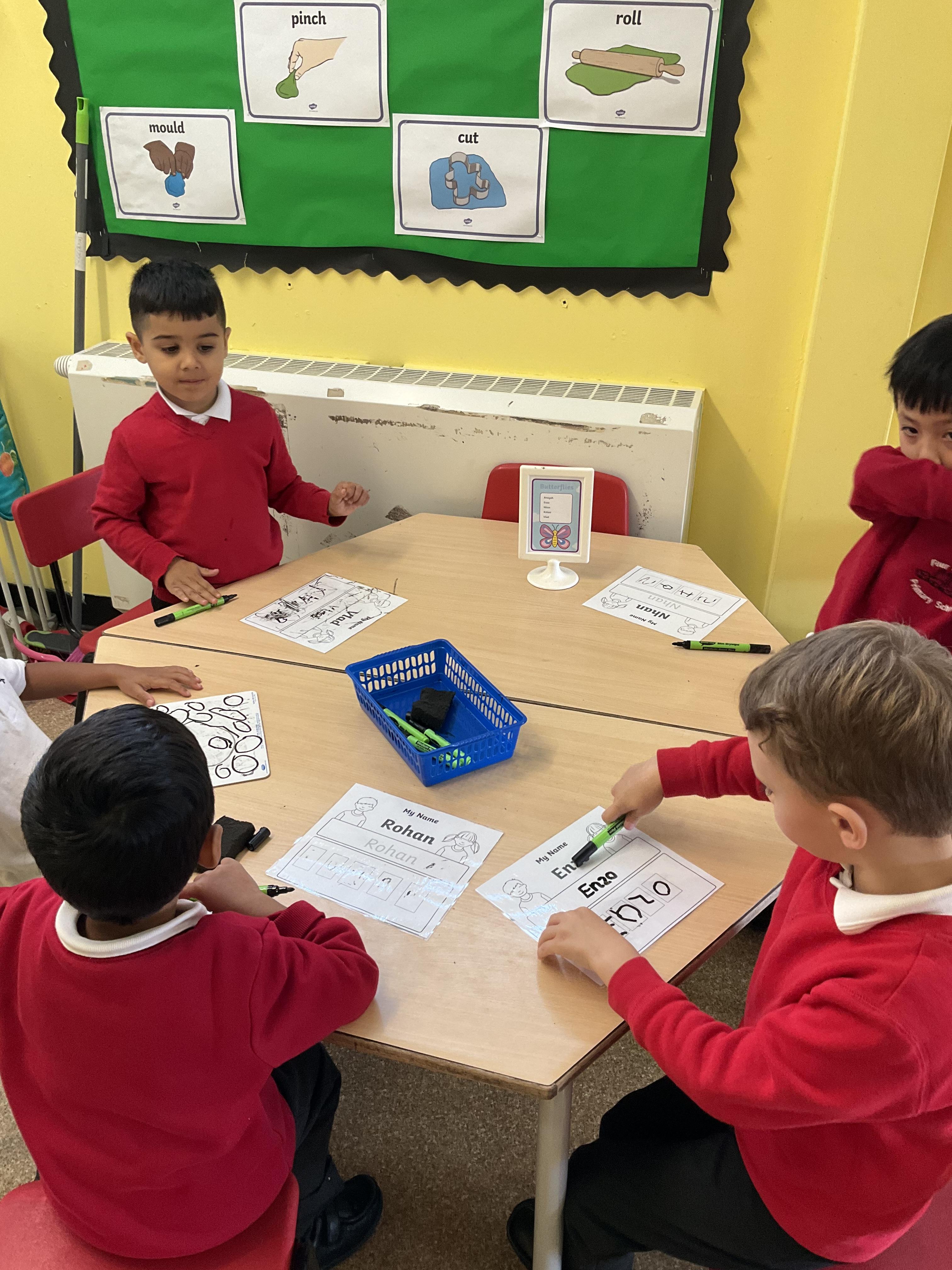 The children have been spelling words using their phonetic knowledge. They are using good letter formation to write the corresponding graphemes. We are very proud of them.