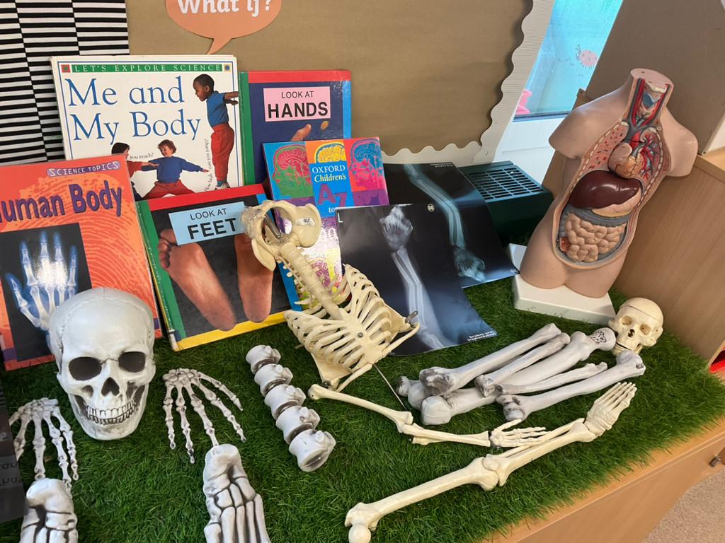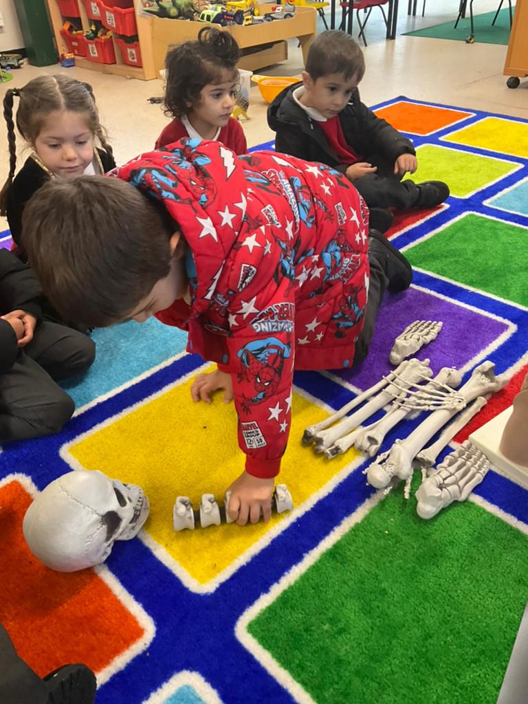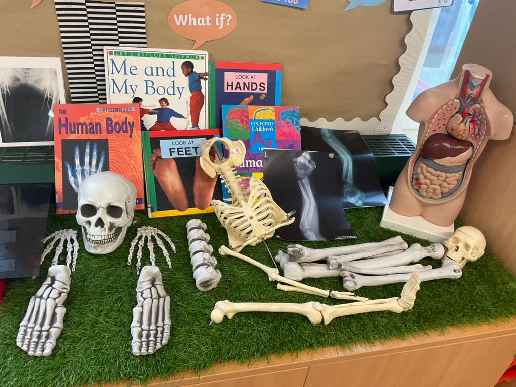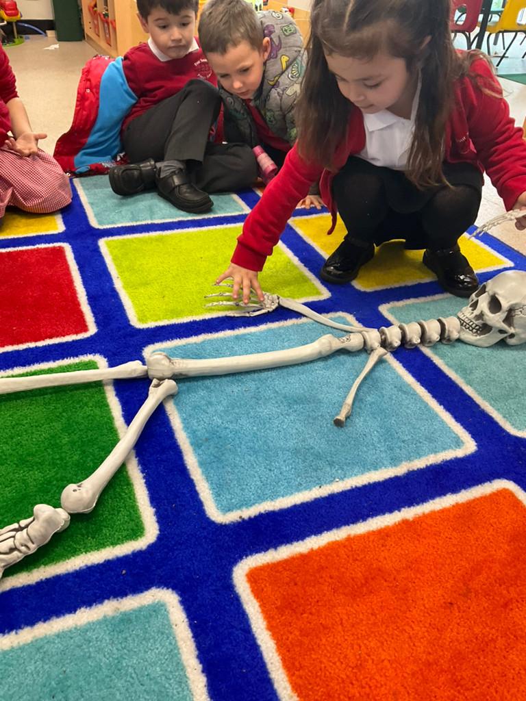 After reading the book, “Funny bones”, the children had to put the bones of the skeleton together in the correct order. They observed and identified the different parts of the skeleton. They also looked at the X-rays to identify parts of the skeleton.