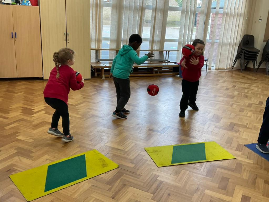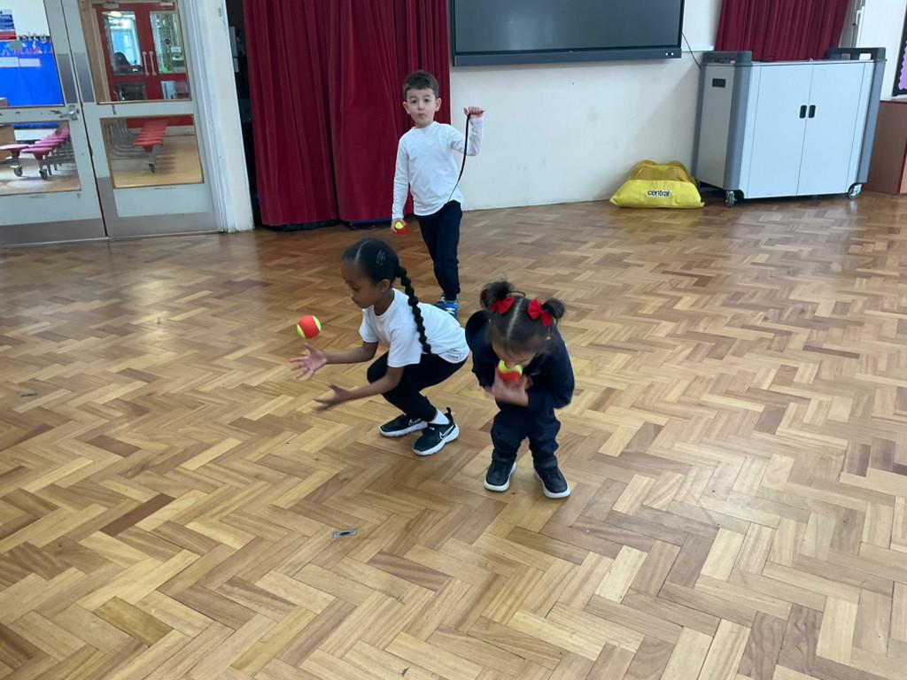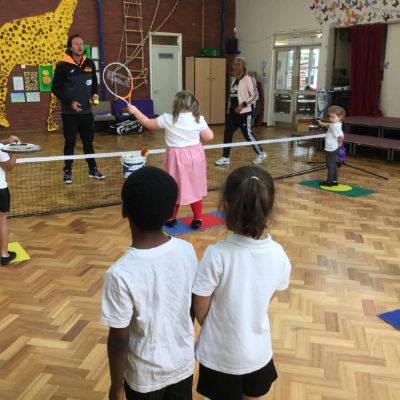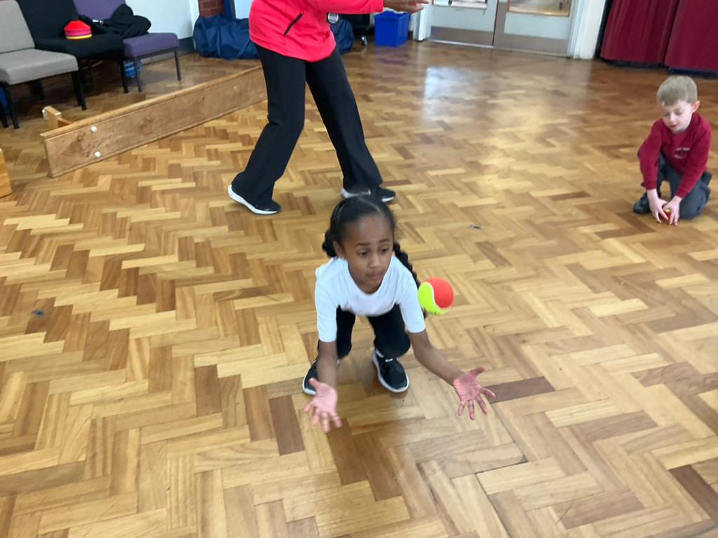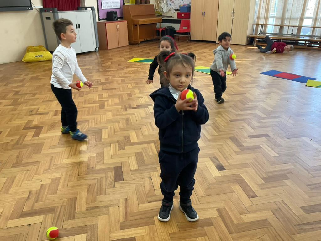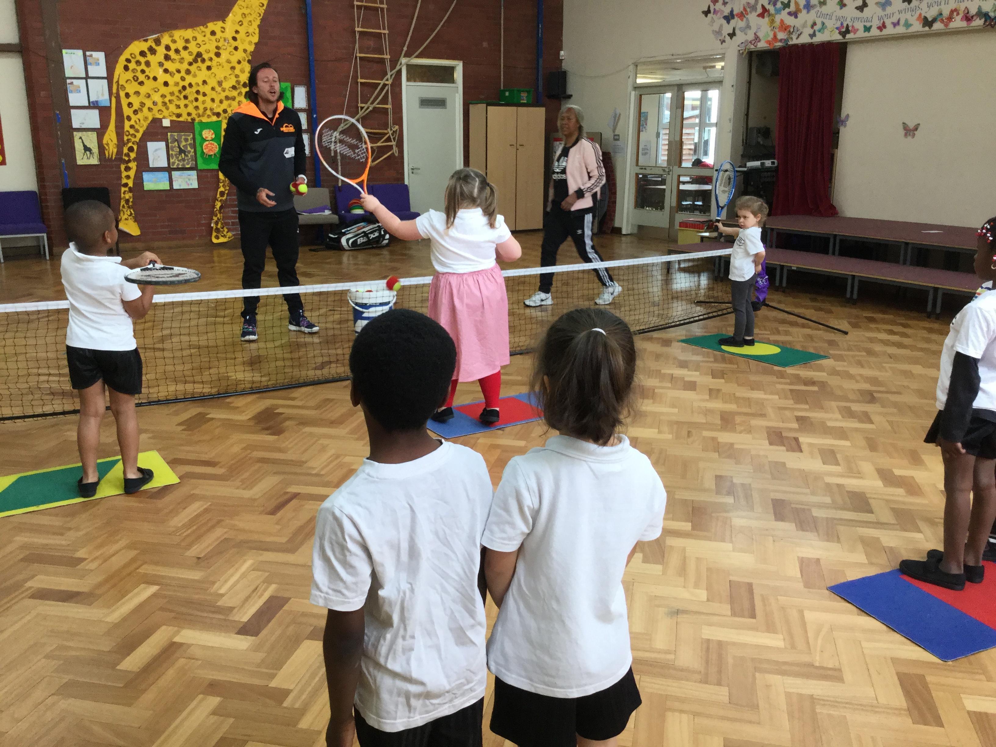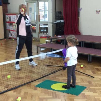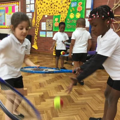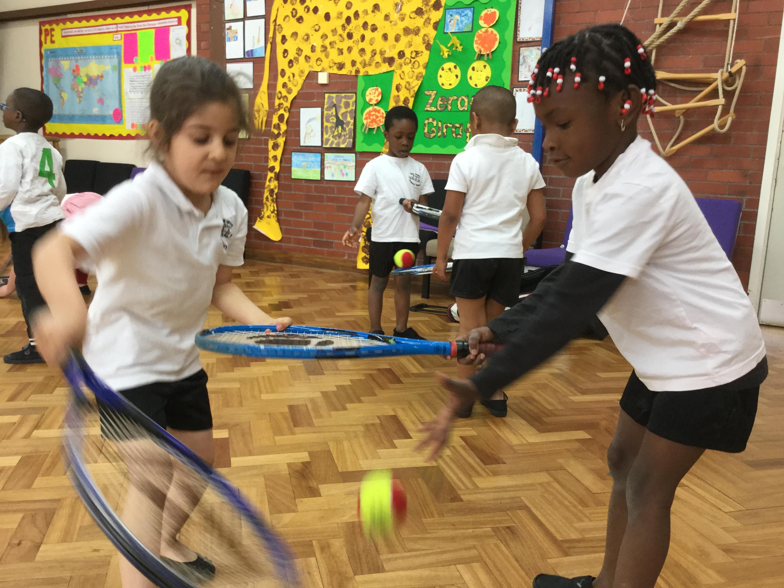 This term we are learning tennis skills, we had great fun trying to use the tennis rackets!