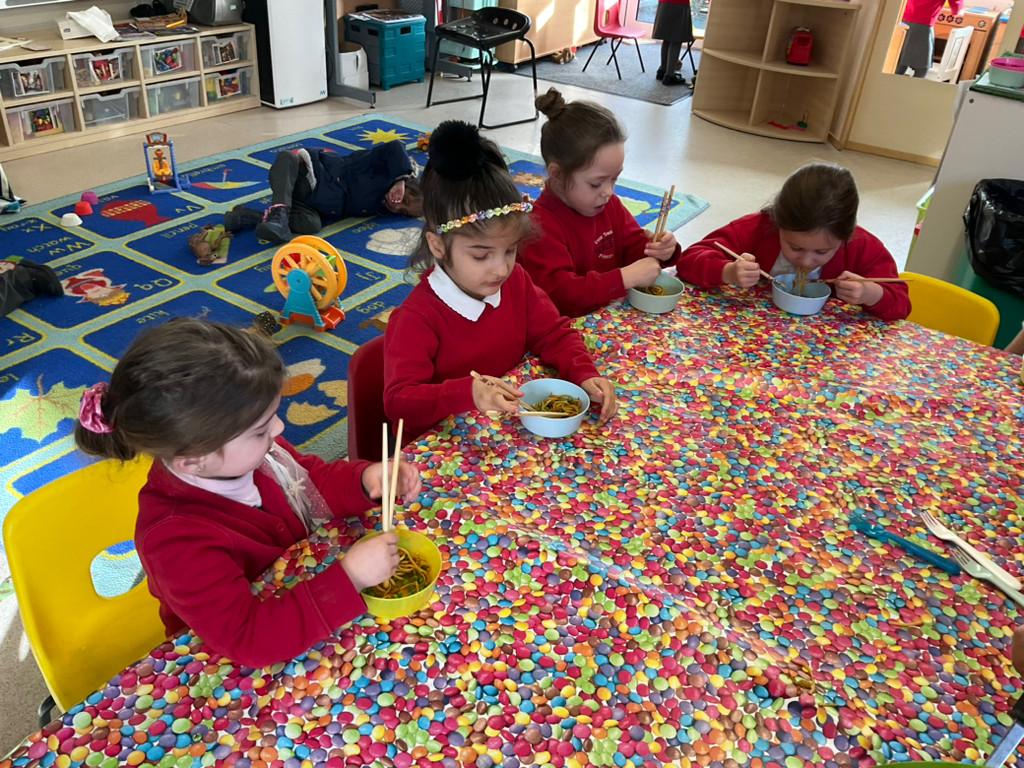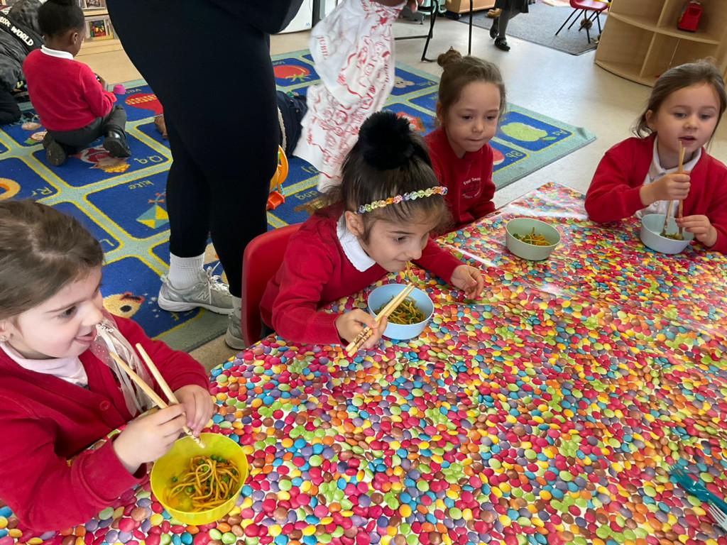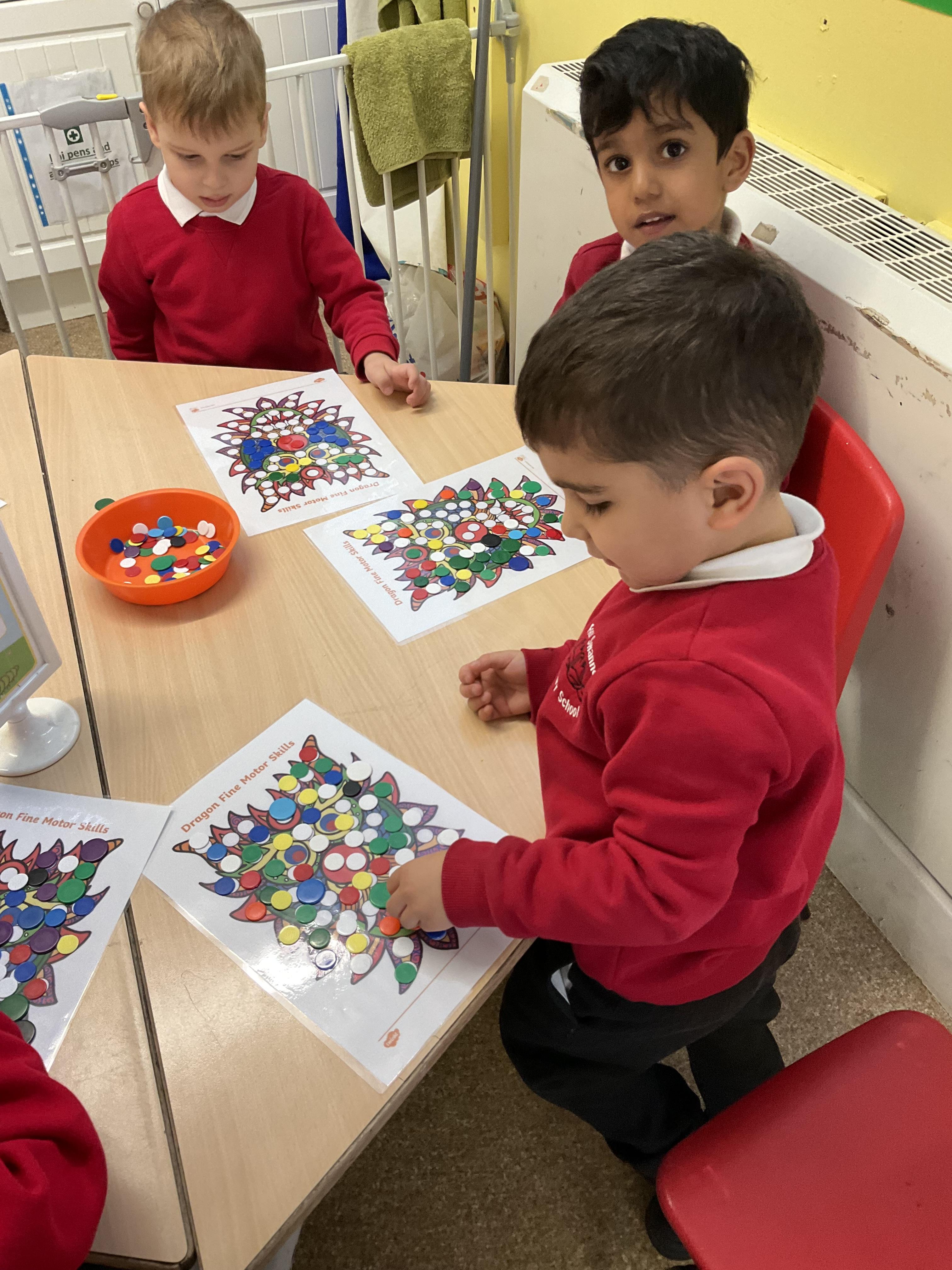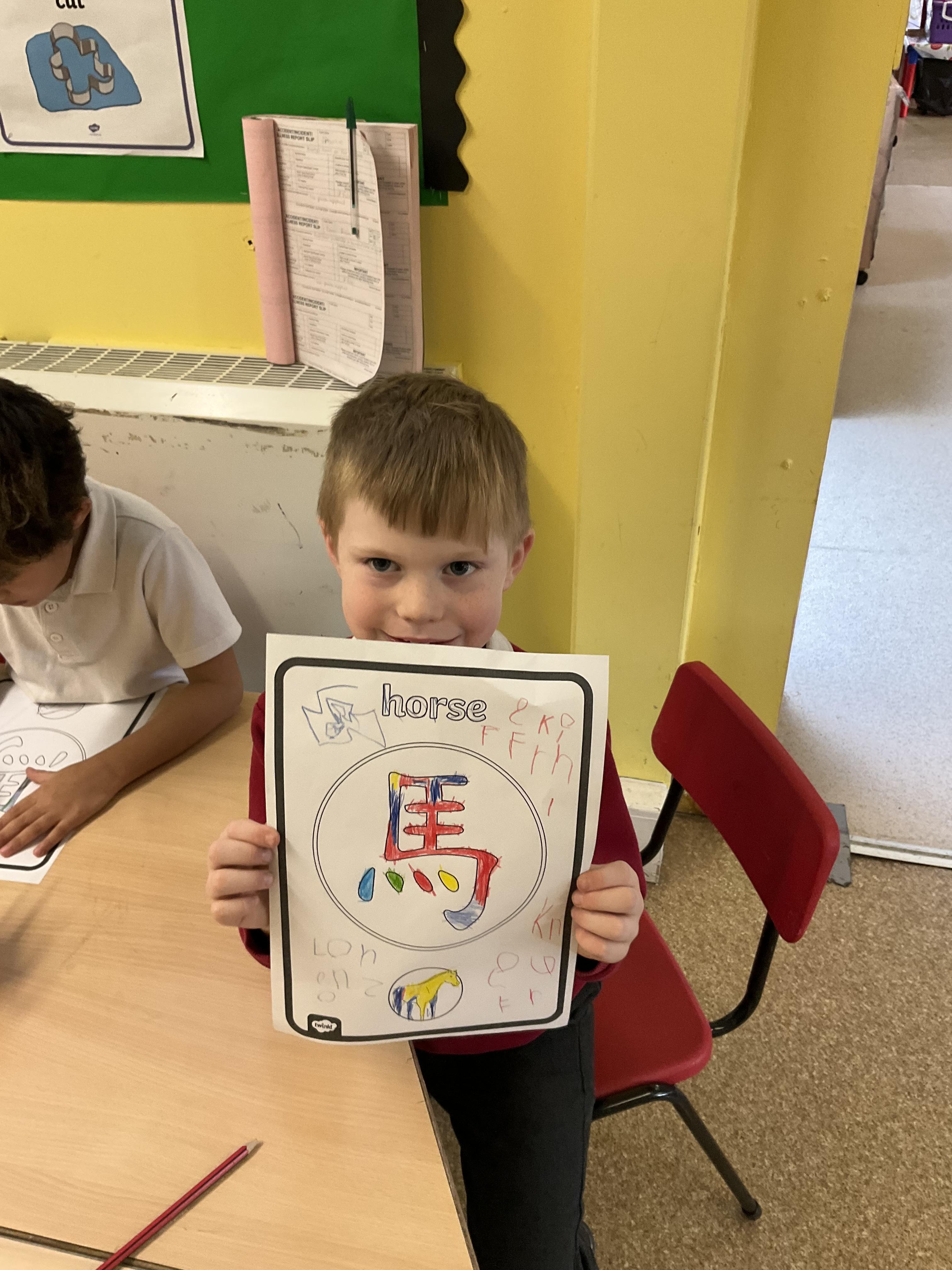 This week the children have been learning about the festival Chinese New Year. They have watched videos to develop their understanding. The children have also listened to the Chinese New Year story and learnt about all the animals in the story. They have also explored writing numbers and animal names in Chinese in coloured sand. The children have also watched the dragon dance and had a go at making their own dragons.