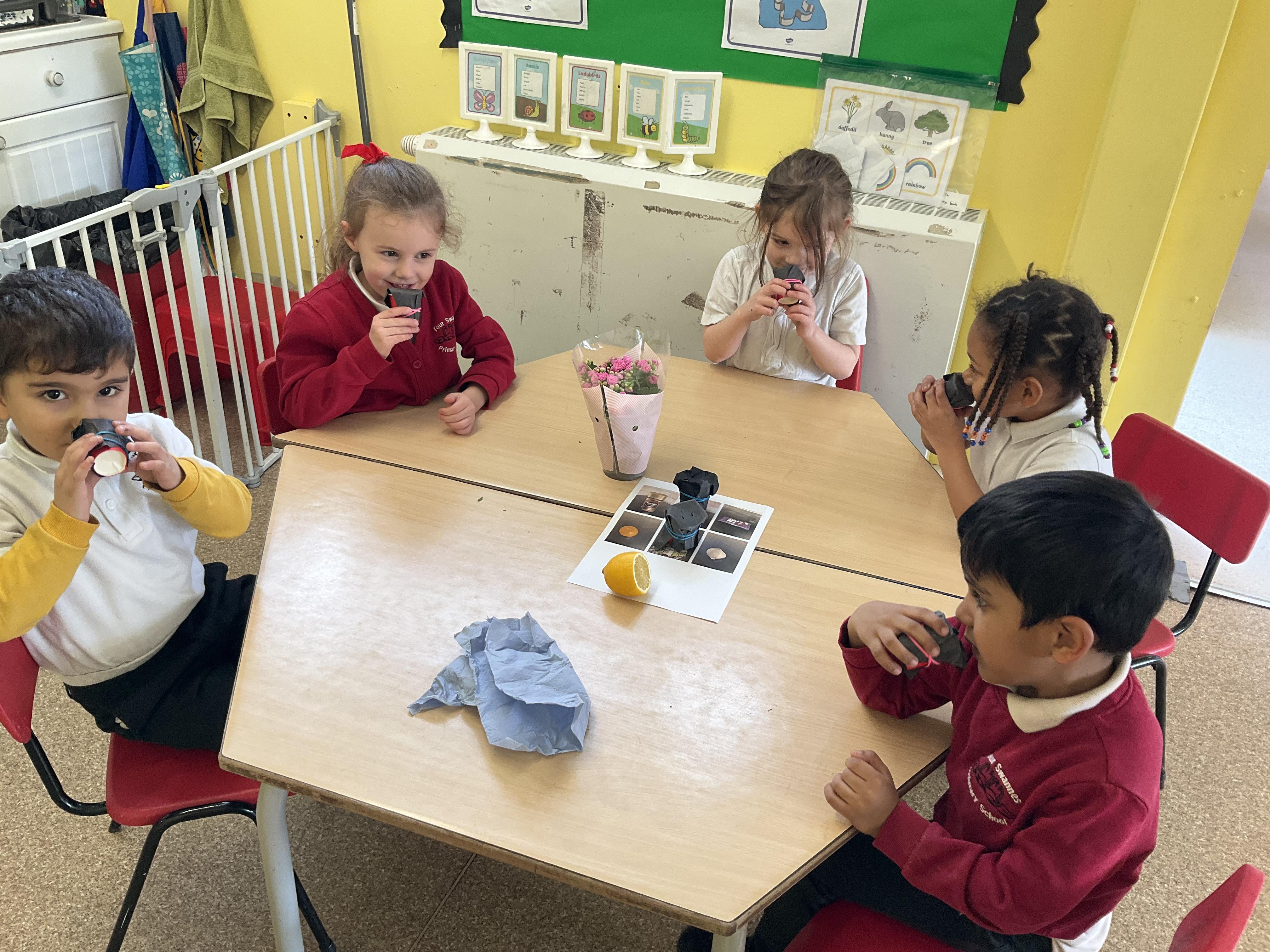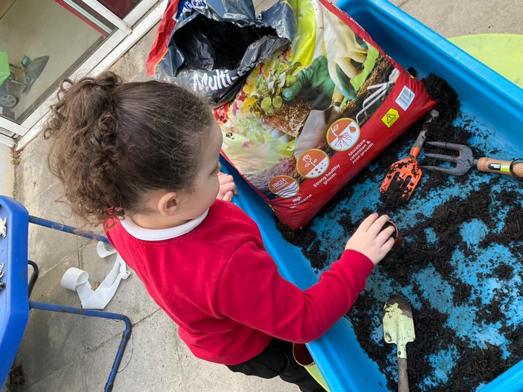 As the weather is getting warmer, the children are enjoying spending time outdoors. We have started a mini project of growing our own herbs. So far we have rosemary and sage. We are going to add more herbs so we can use them in our cooking and sensory play.