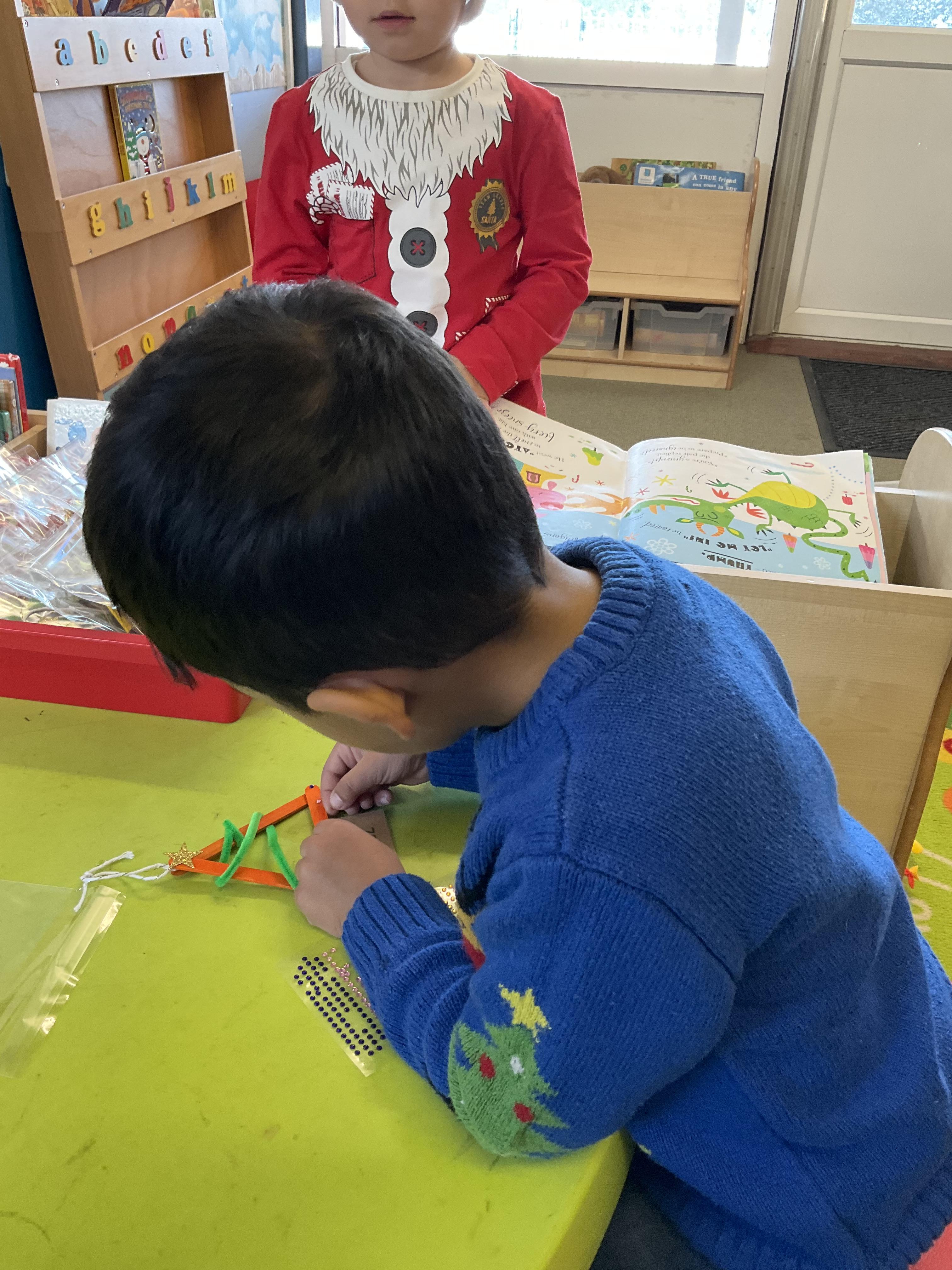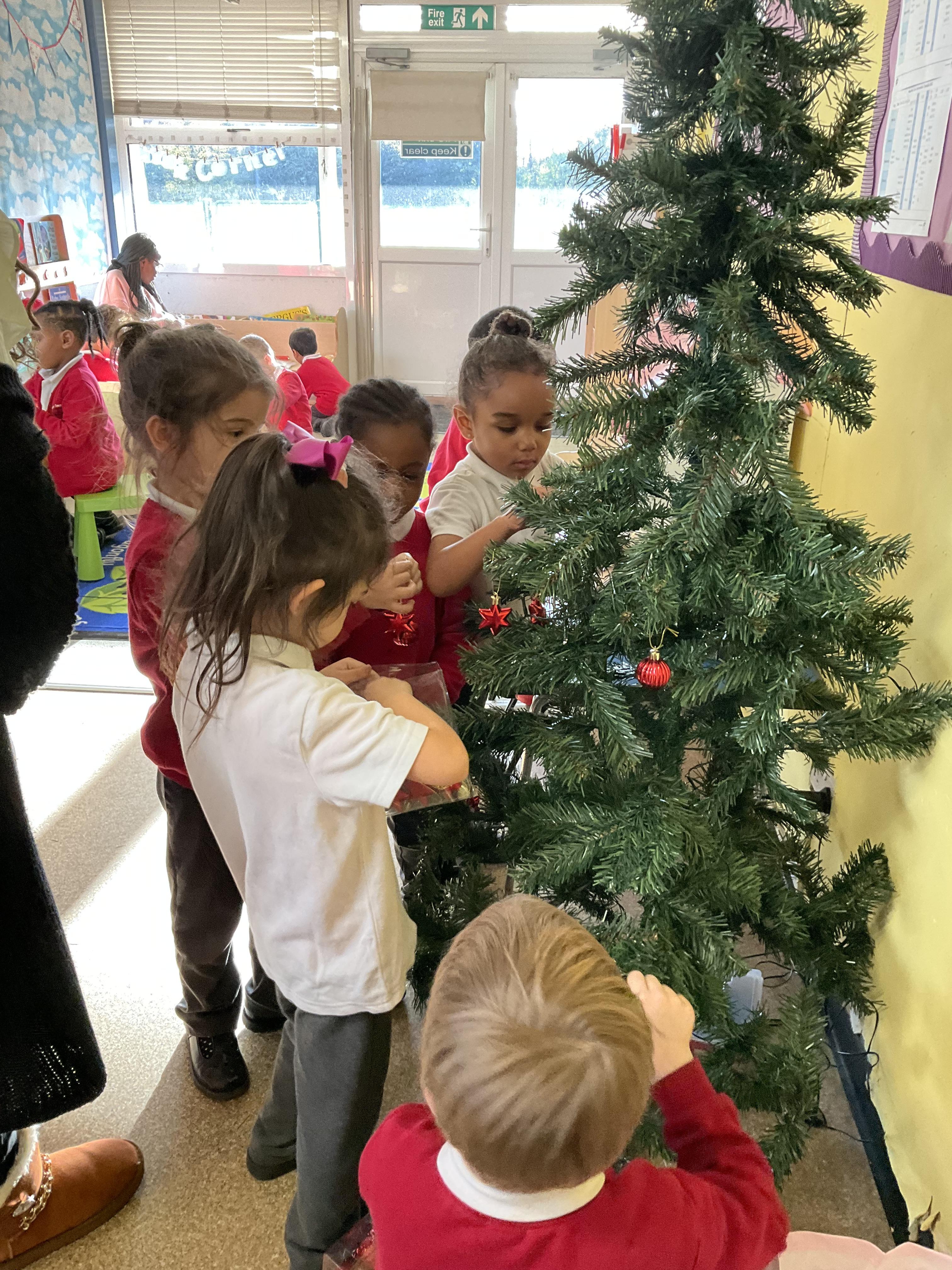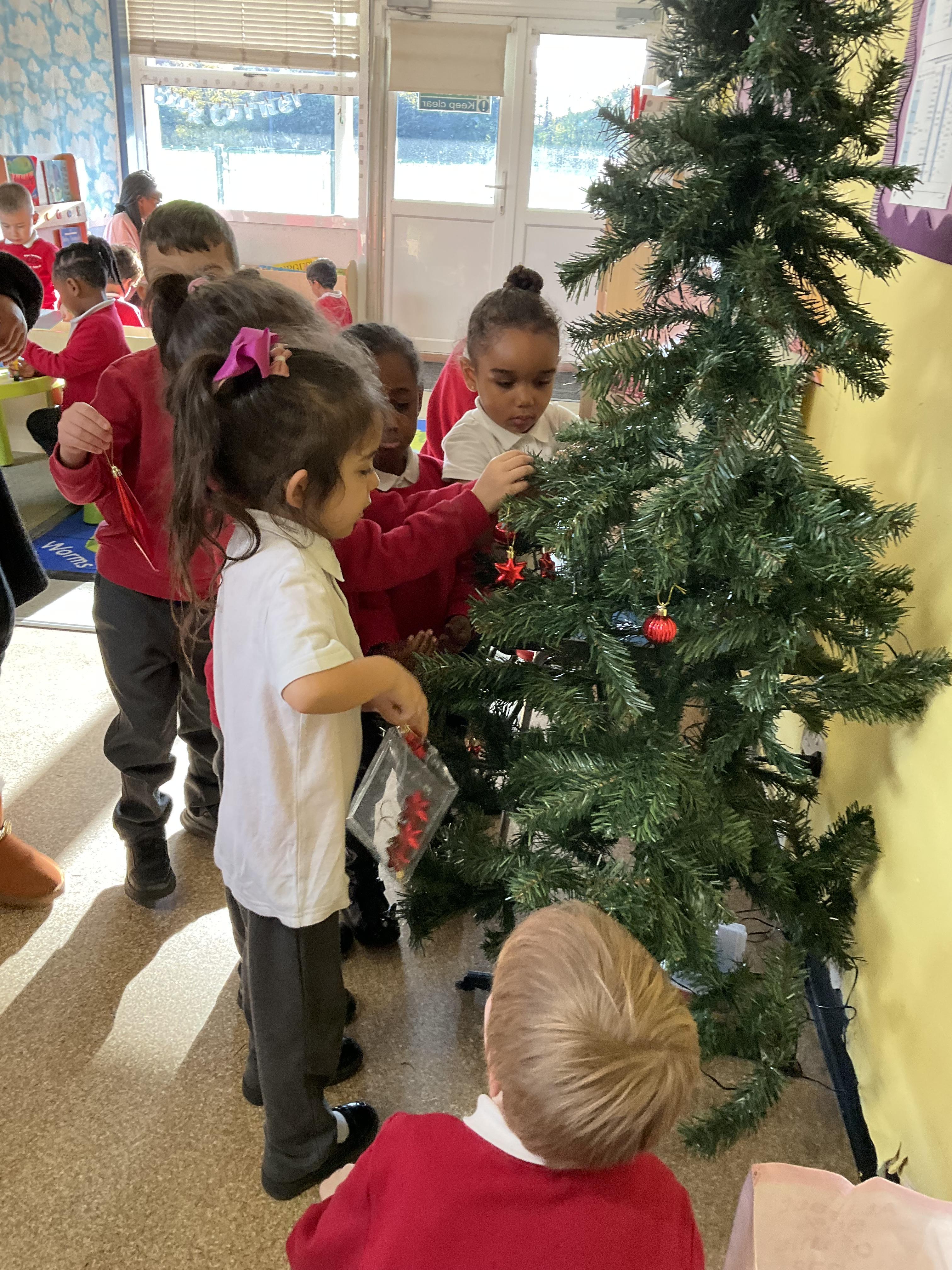 This week the children have been learning about Christmas. They have been busy decorating the Christmas tree. Taking part in Christmas maths and learning about the season Winter through sensory play.