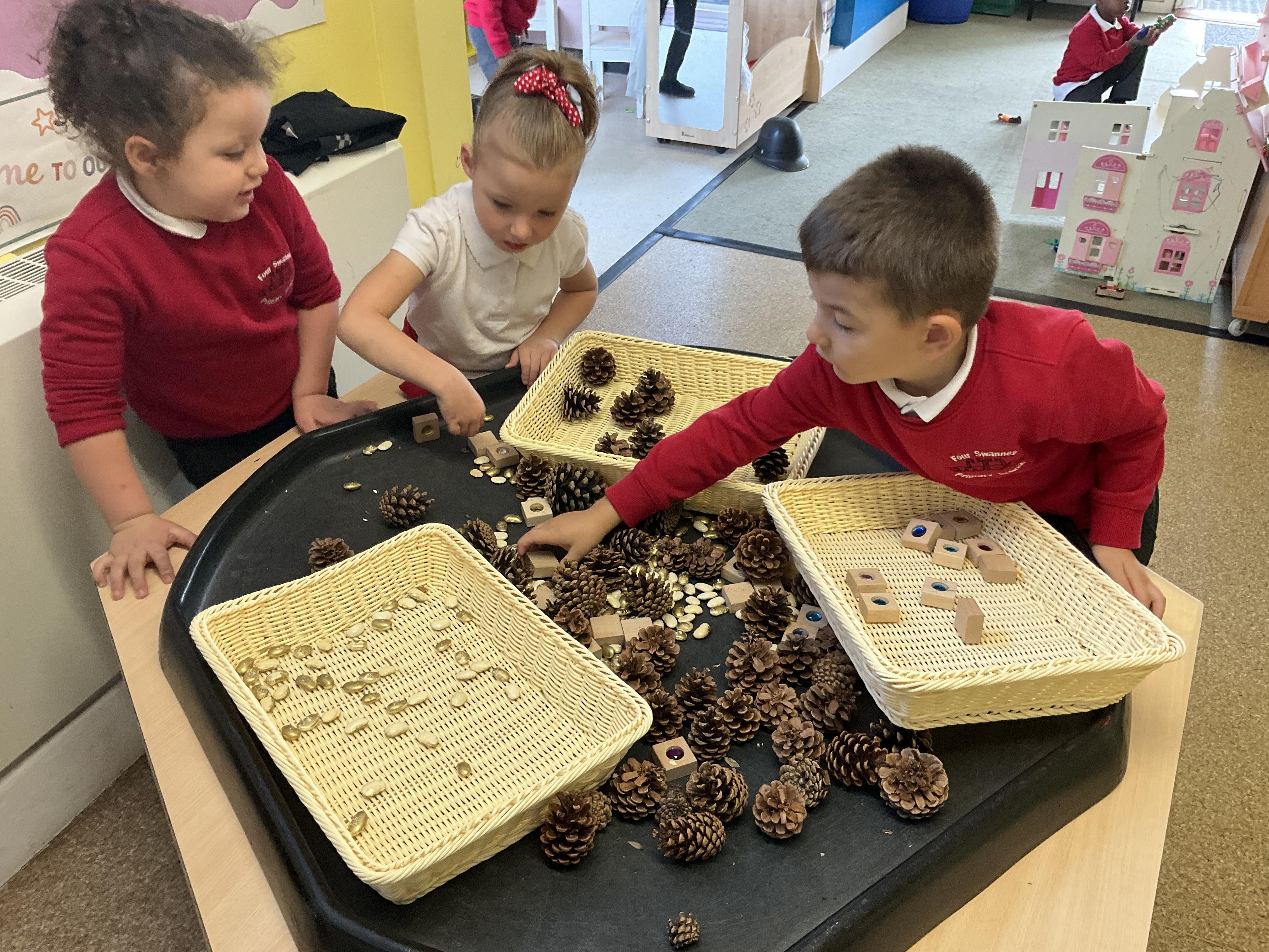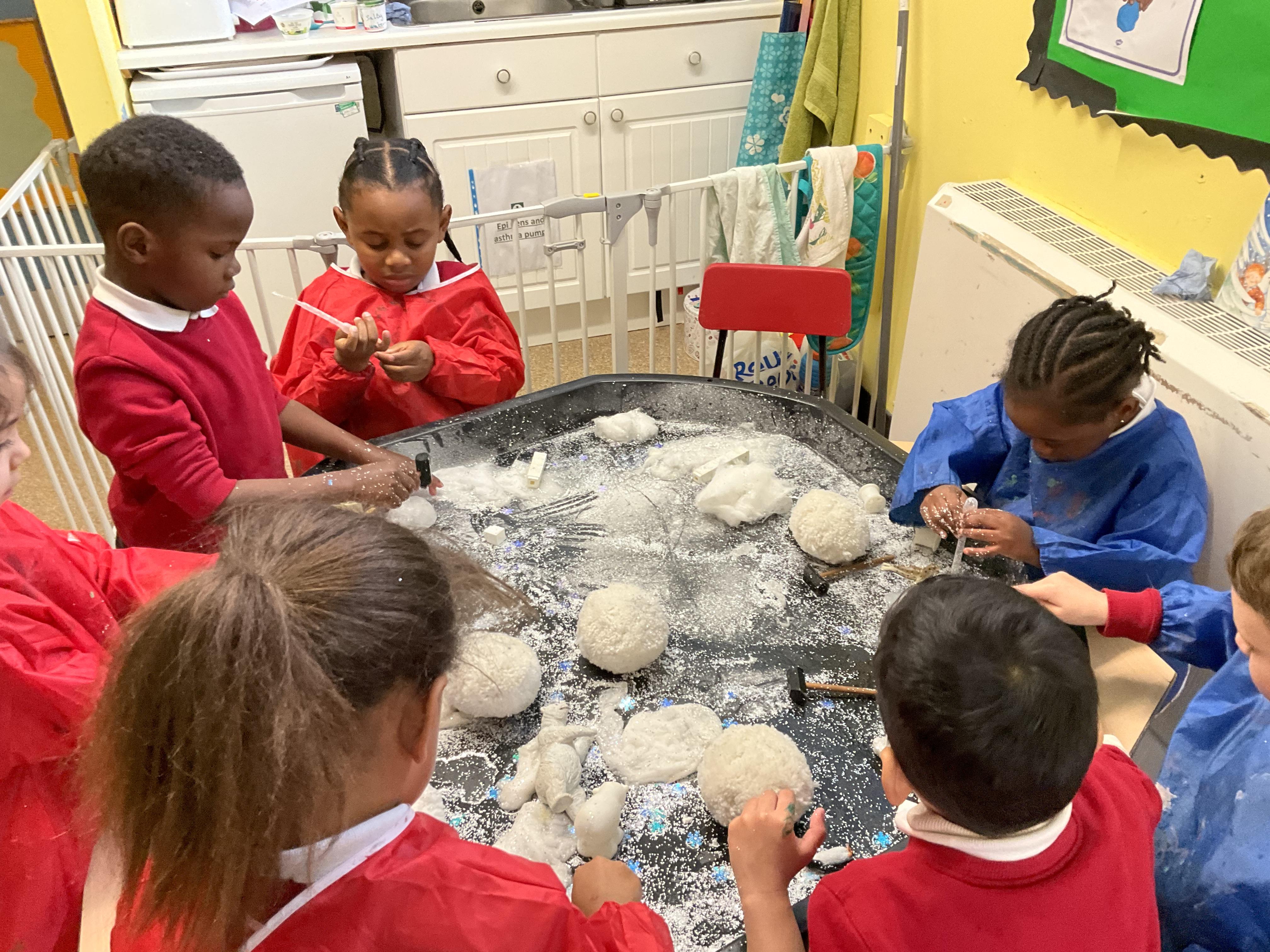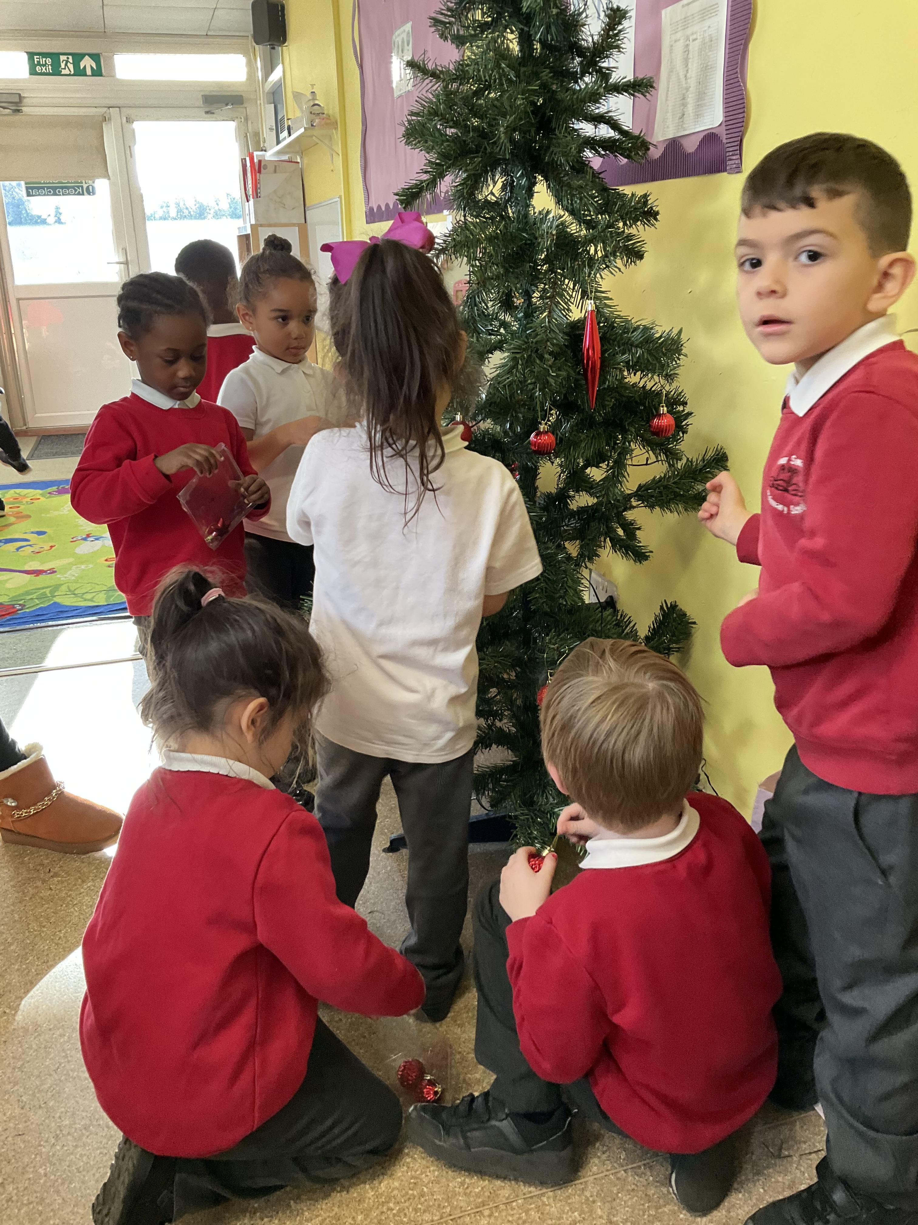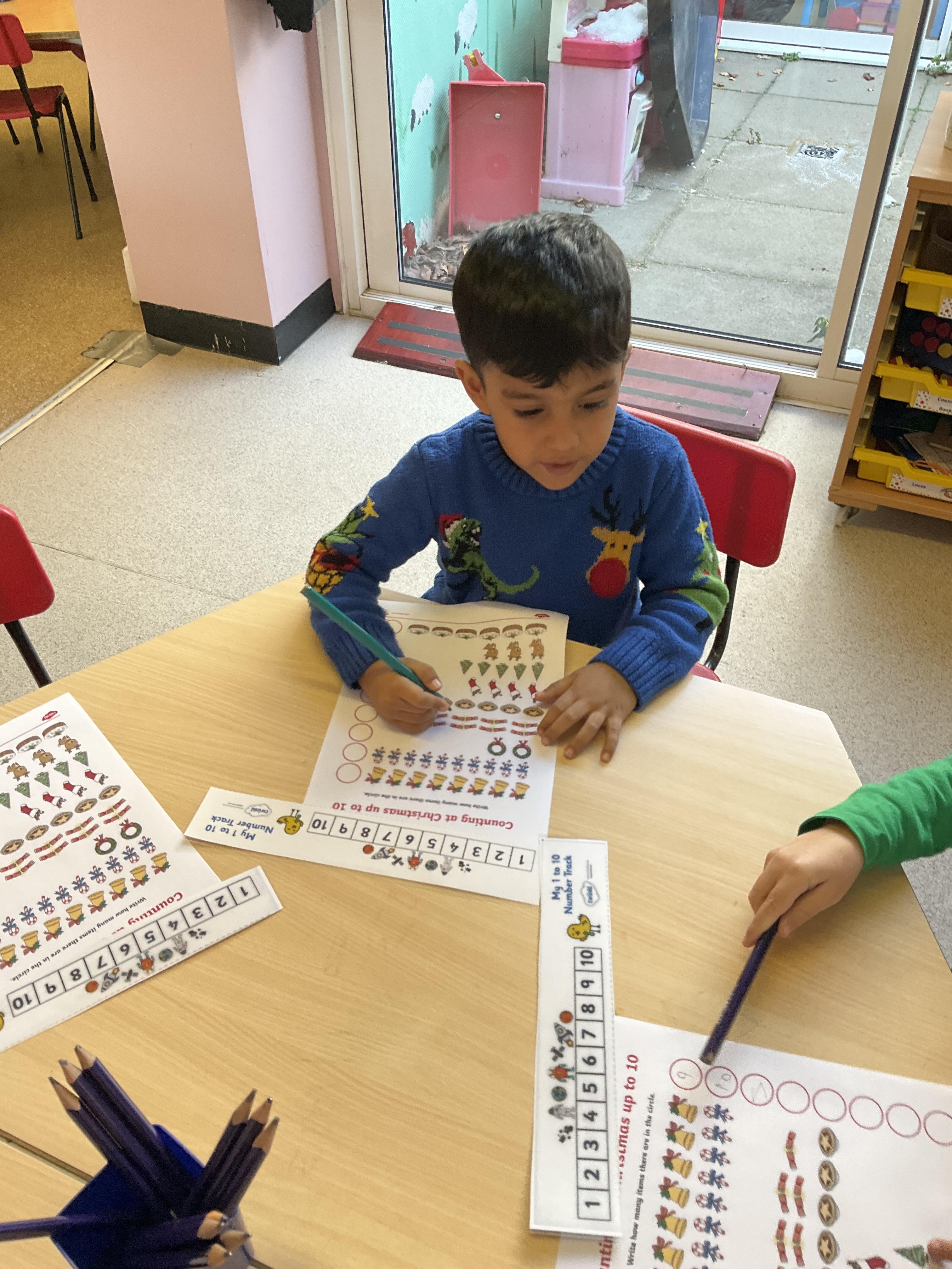 This week the children have been learning about Christmas. They have been busy decorating the Christmas tree. Taking part in Christmas maths and learning about the season Winter through sensory play.