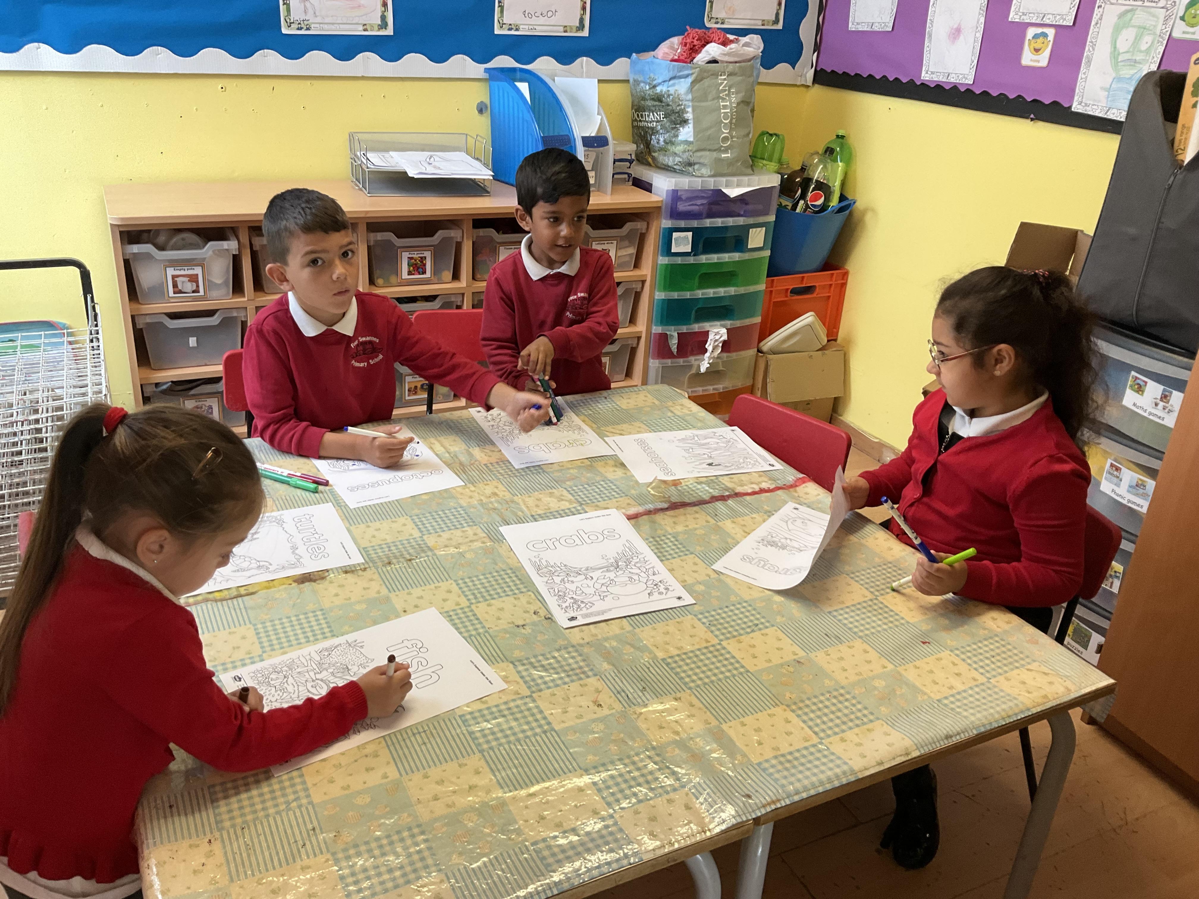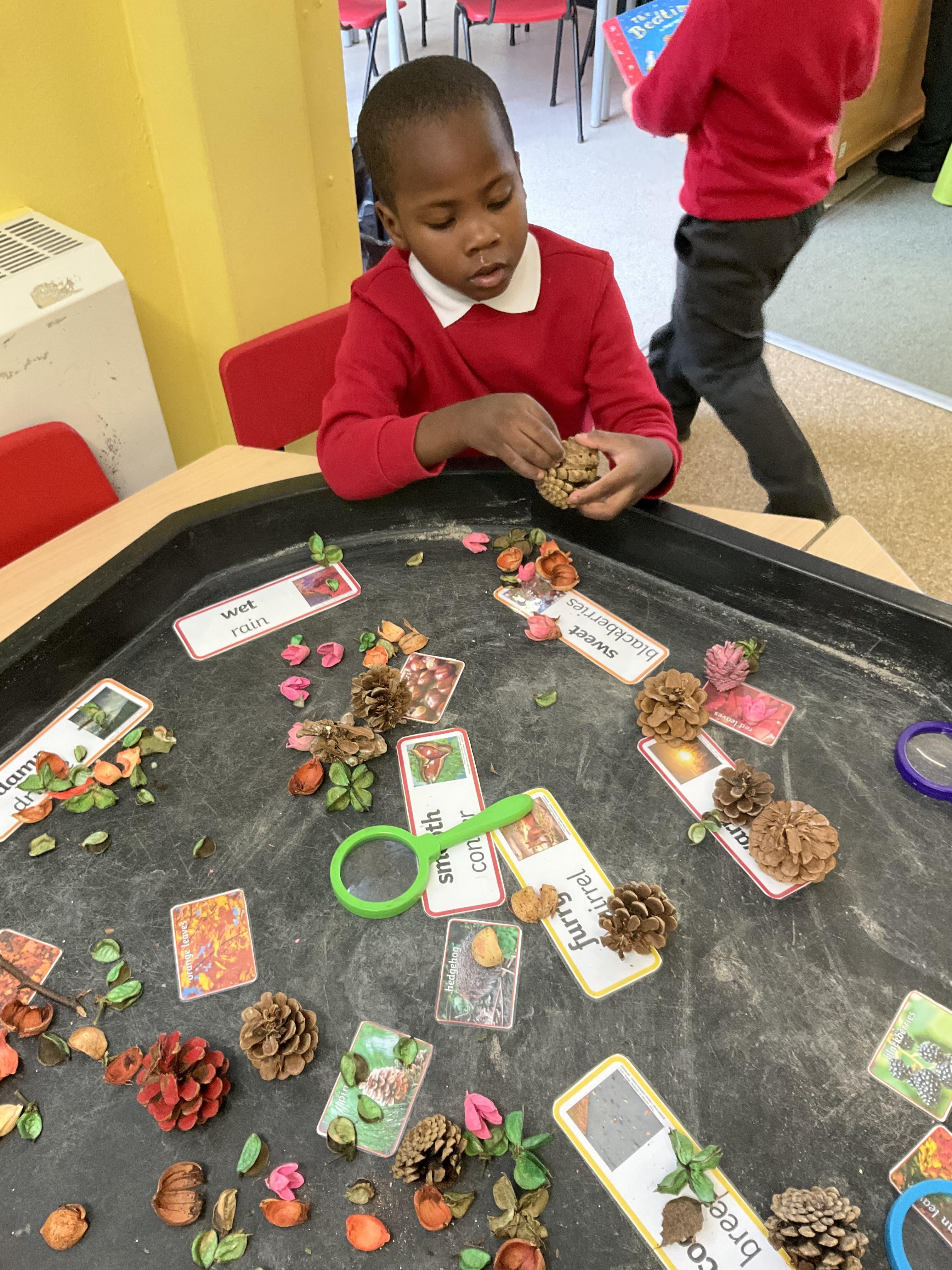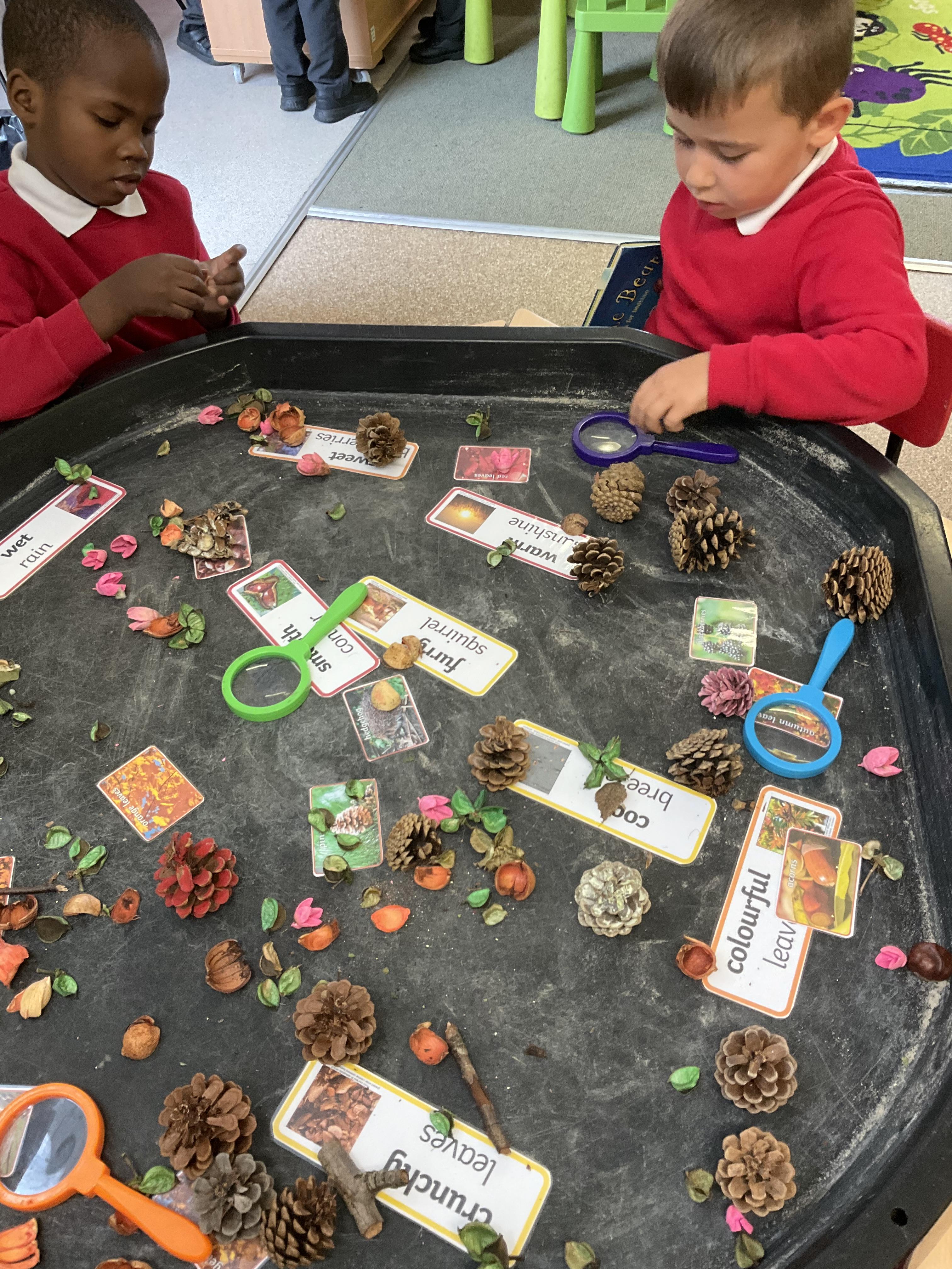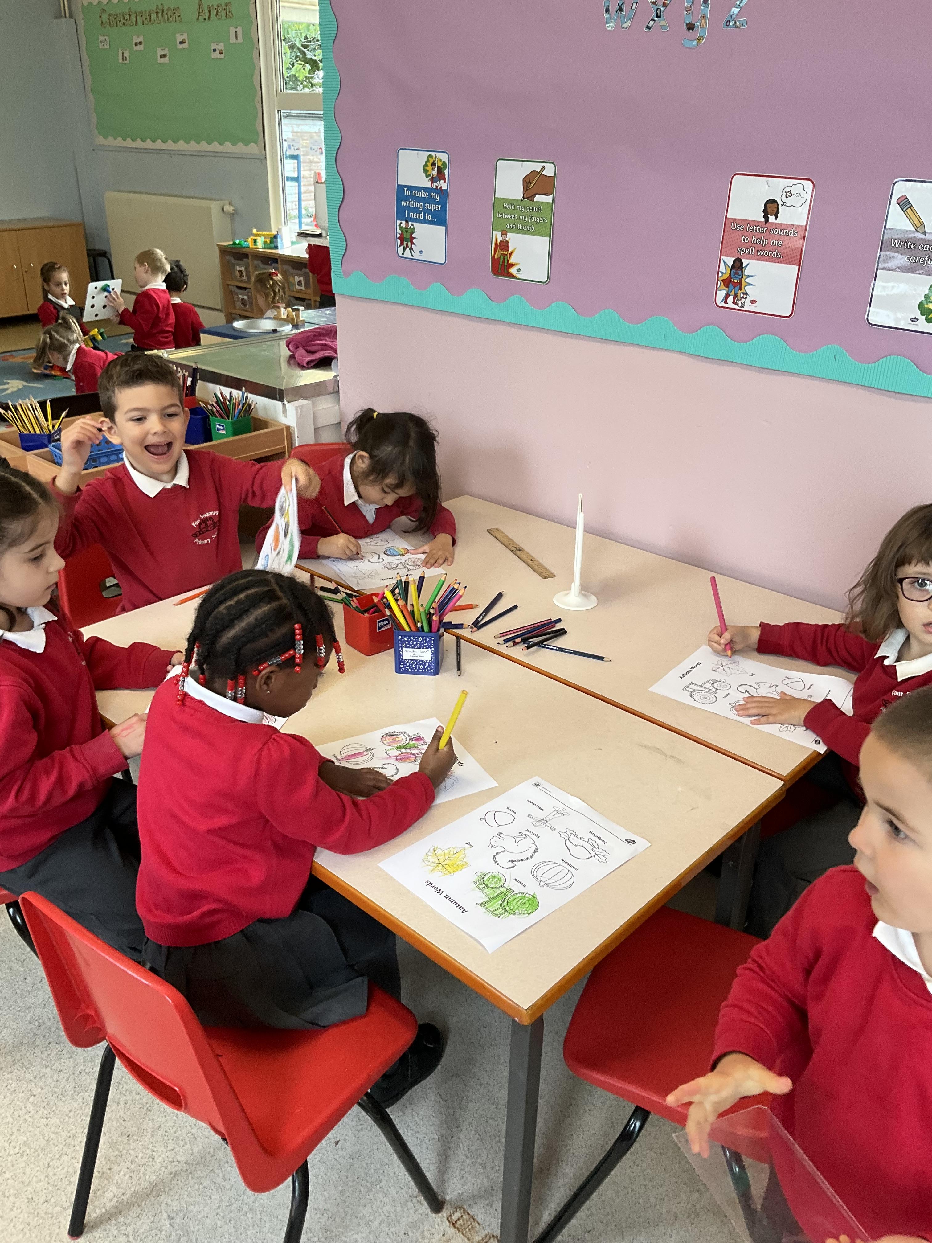 This week the children have listened to the story 'Leaf Man'. They have learnt about the season Autumn. The children have also begun learning their phonic sounds. They have been busy identifying the initial sounds of the phonic sounds they have already learnt. Reception class have also started busy fingers which involves them completing activities to improve their fine moter skills e.g. cutting, writing and colouring. Here are some pictures of the fun learning the children have been doing this week.