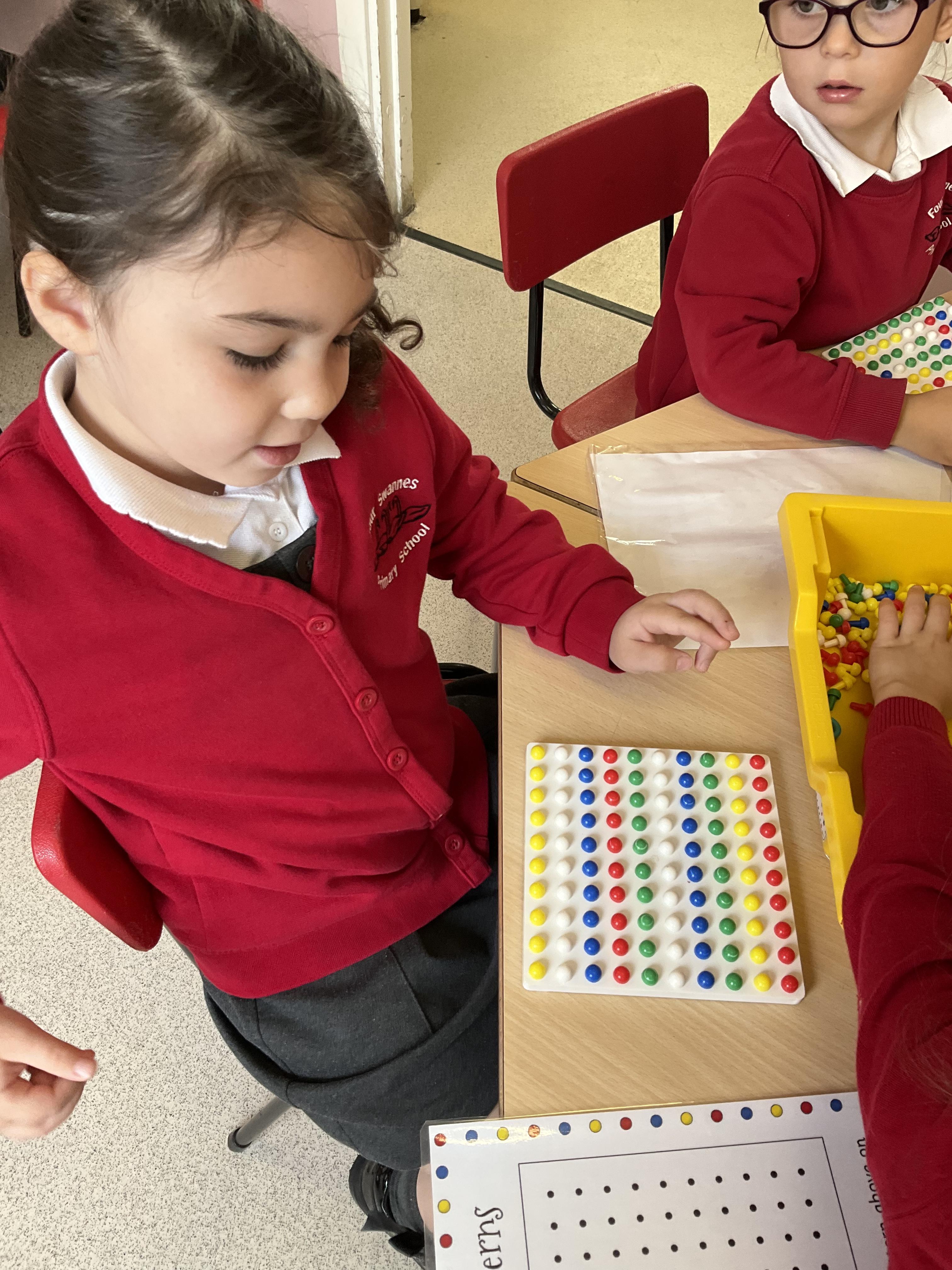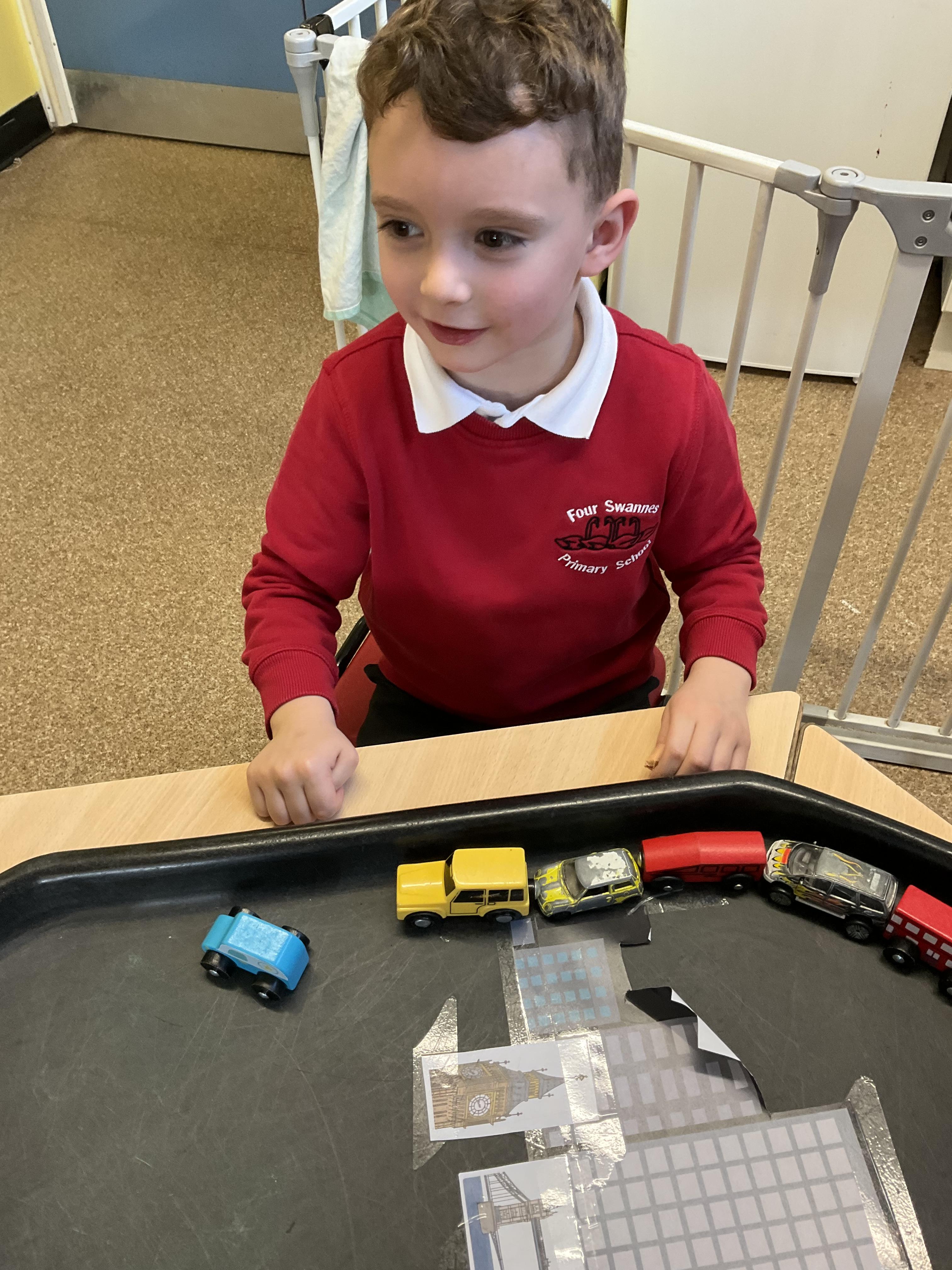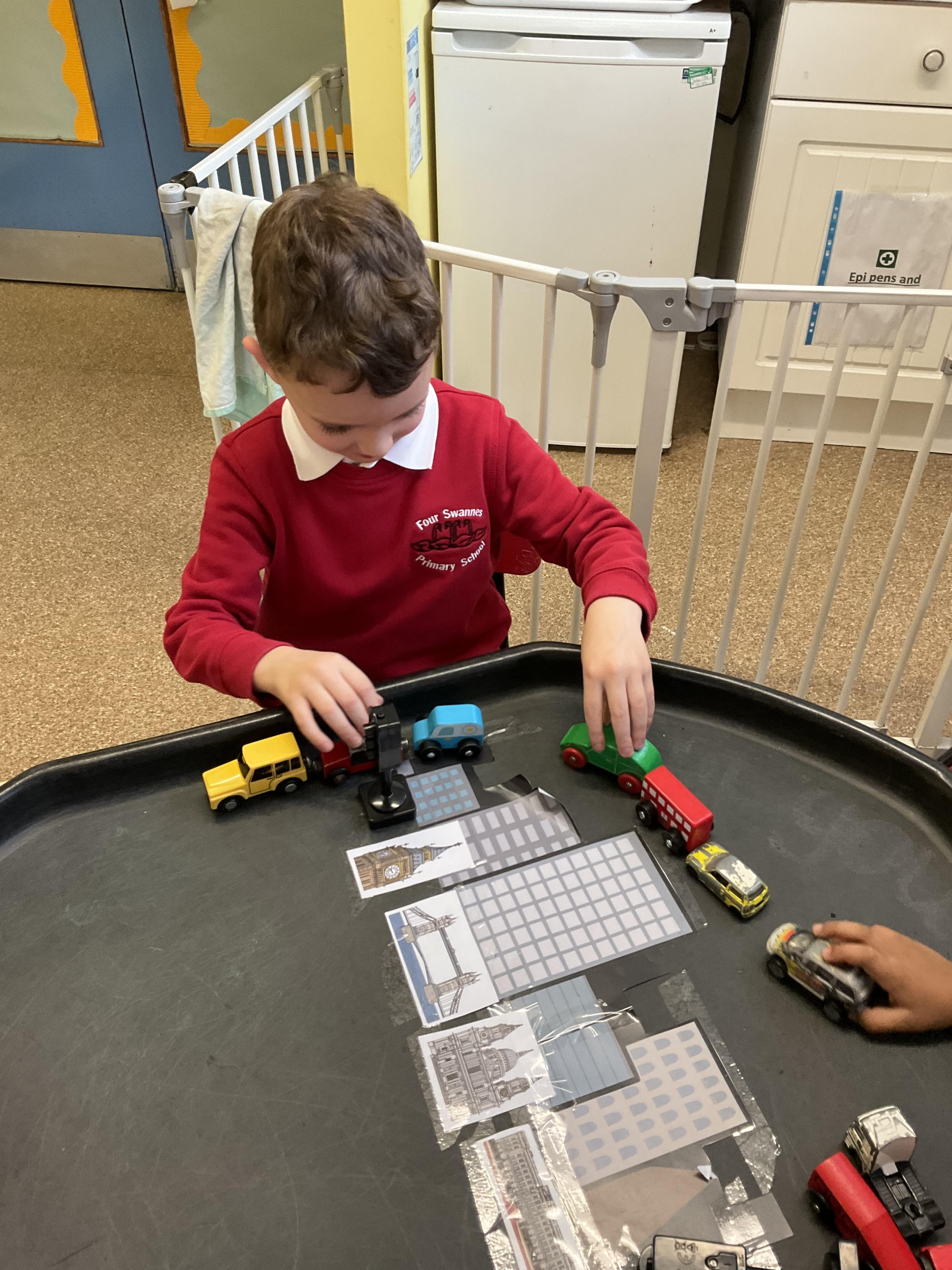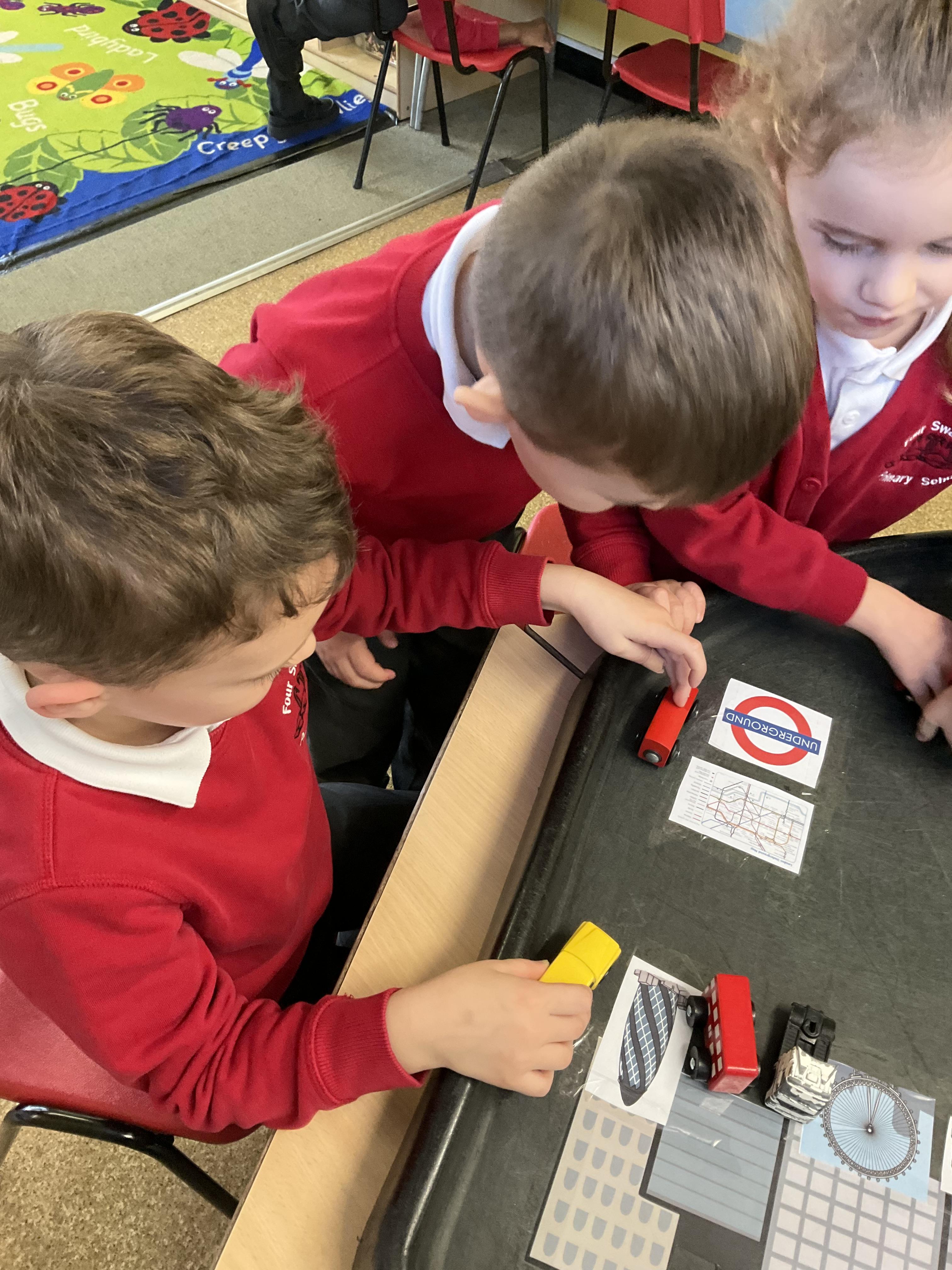 This week the children have been listening to the story Small in the City which is set in a city. Reception class have been learning about London this week. They have learnt about the key buildings in London. The children have recreated their London experiences using the London tuft tray which consisted of high rise buildings, key buildings found in london, the underground sign/tube map, traffic lights and lots of different vehicles. In Maths the children have been learning about repeating patterns. The children have also been beginning to use their phonic knowledge to write words which match the picture selected.