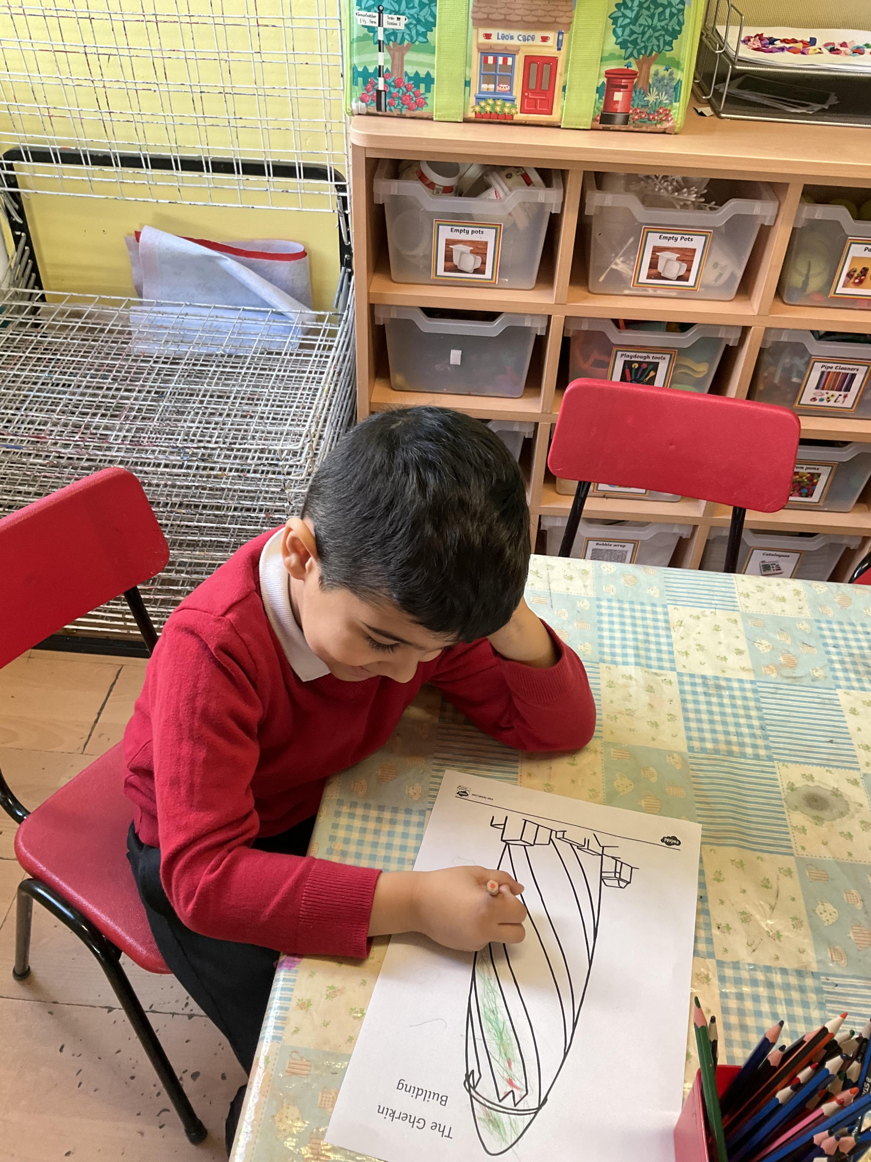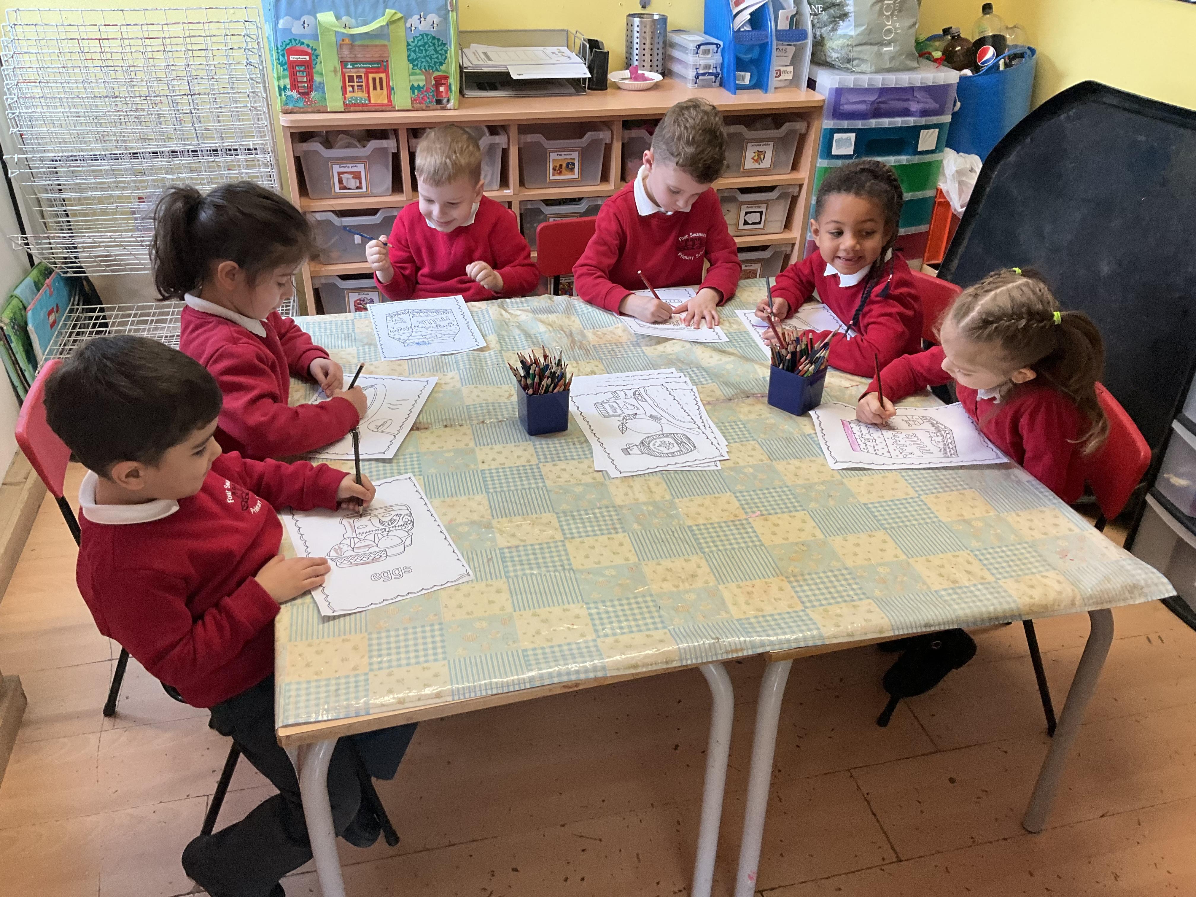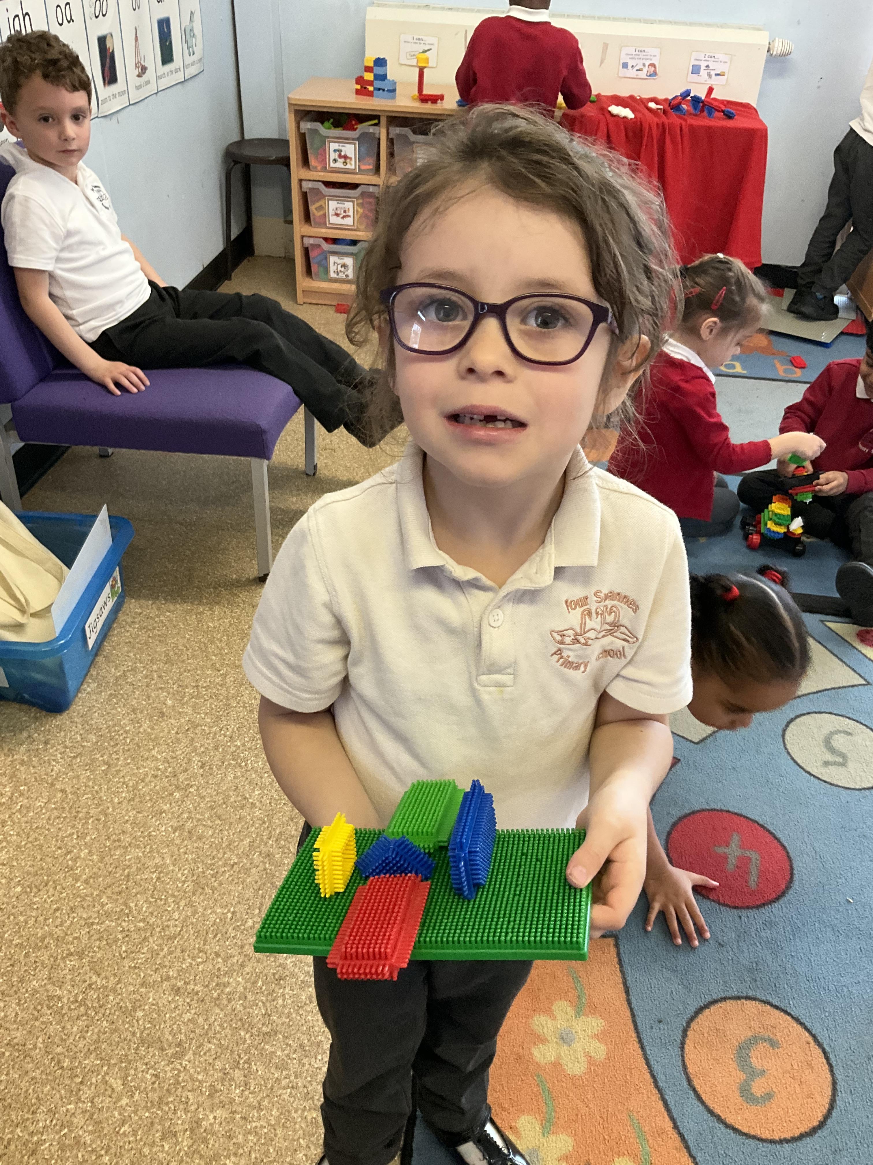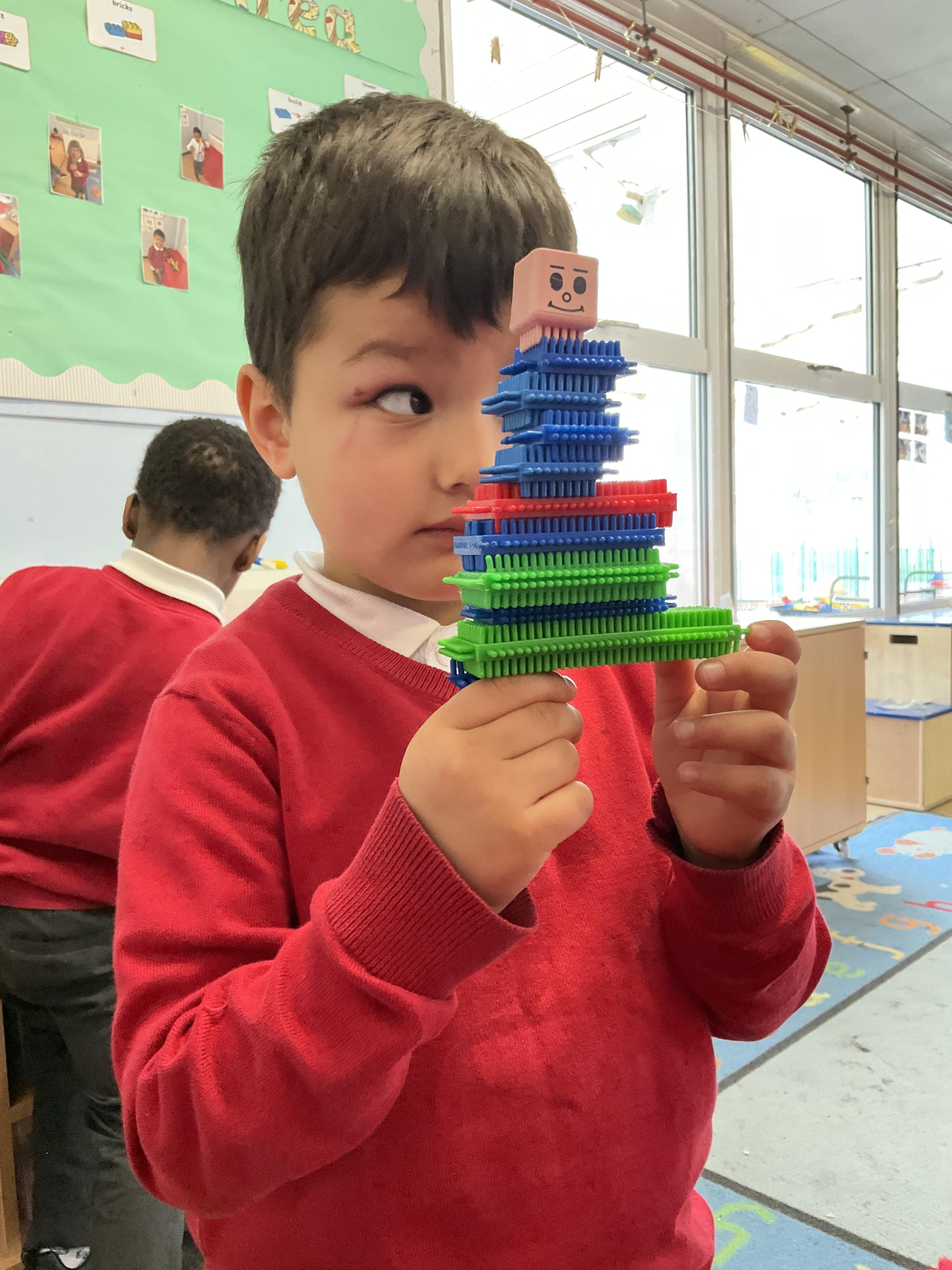 This week the children have been listening to the story Small in the City which is set in a city. Reception class have been learning about London this week. They have learnt about the key buildings in London. The children have recreated their London experiences using the London tuft tray which consisted of high rise buildings, key buildings found in london, the underground sign/tube map, traffic lights and lots of different vehicles. In Maths the children have been learning about repeating patterns. The children have also been beginning to use their phonic knowledge to write words which match the picture selected.