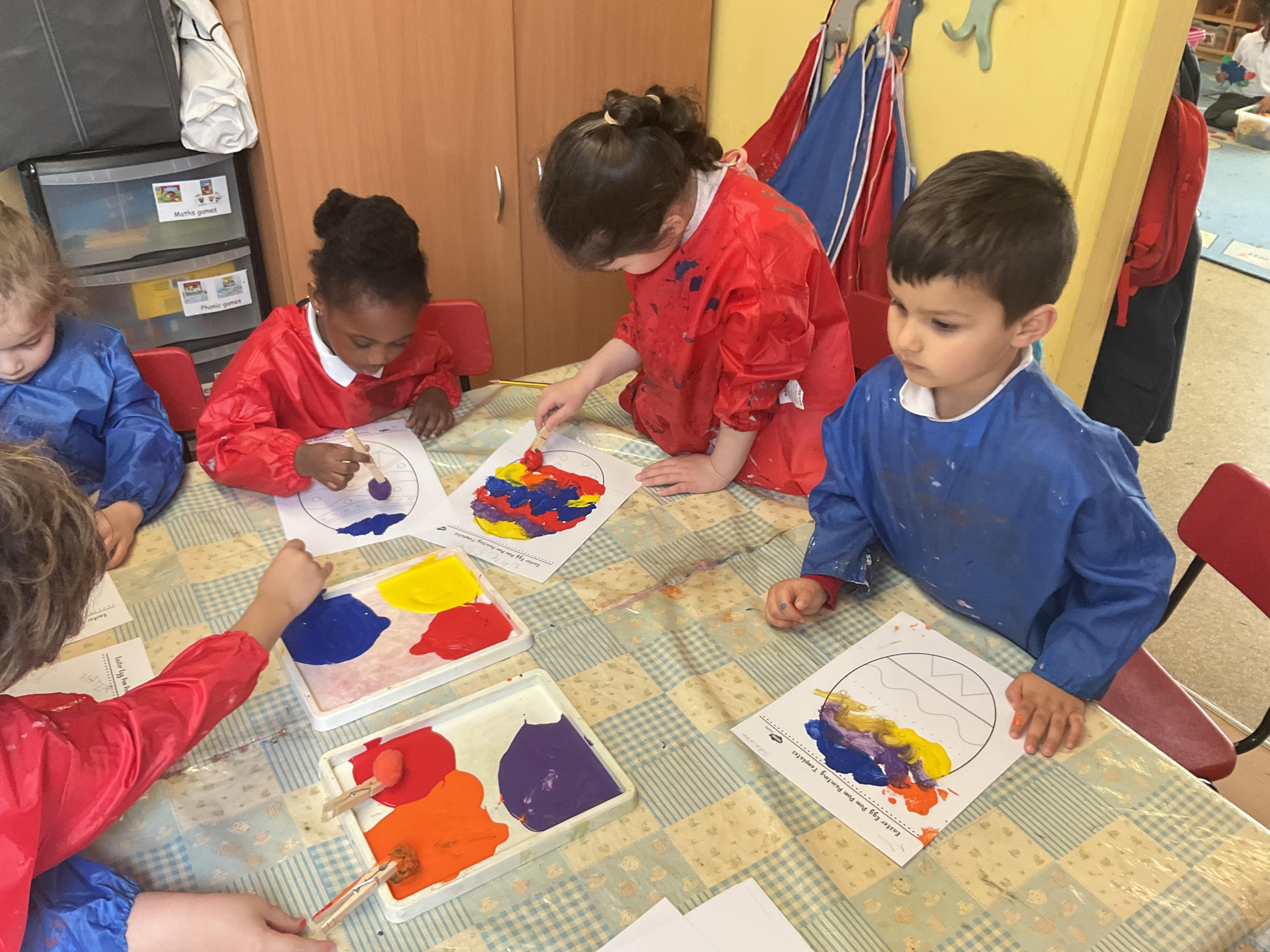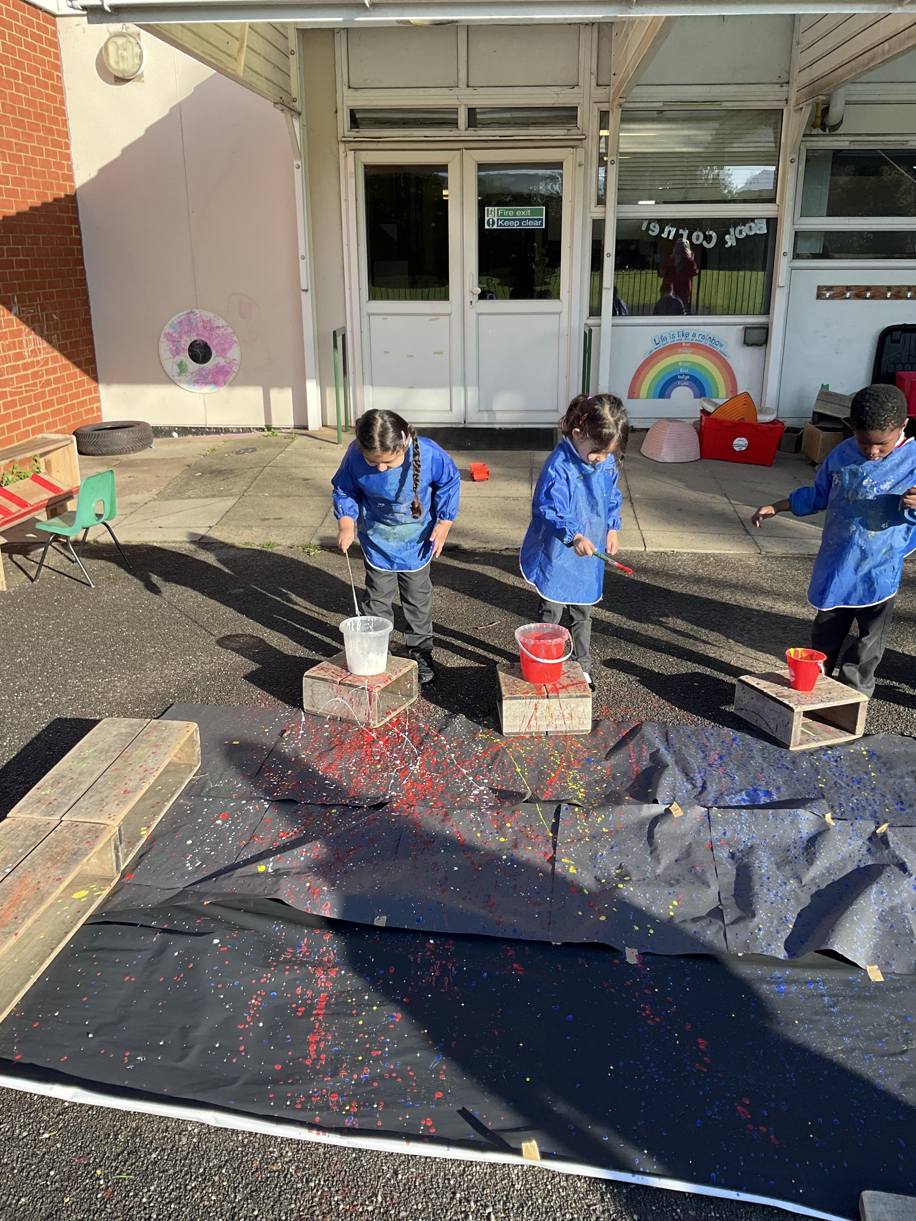 On Monday we had a lot of fun paining to Music. We listened to Music for Royal Fireworks and splattered the paint to match the music.