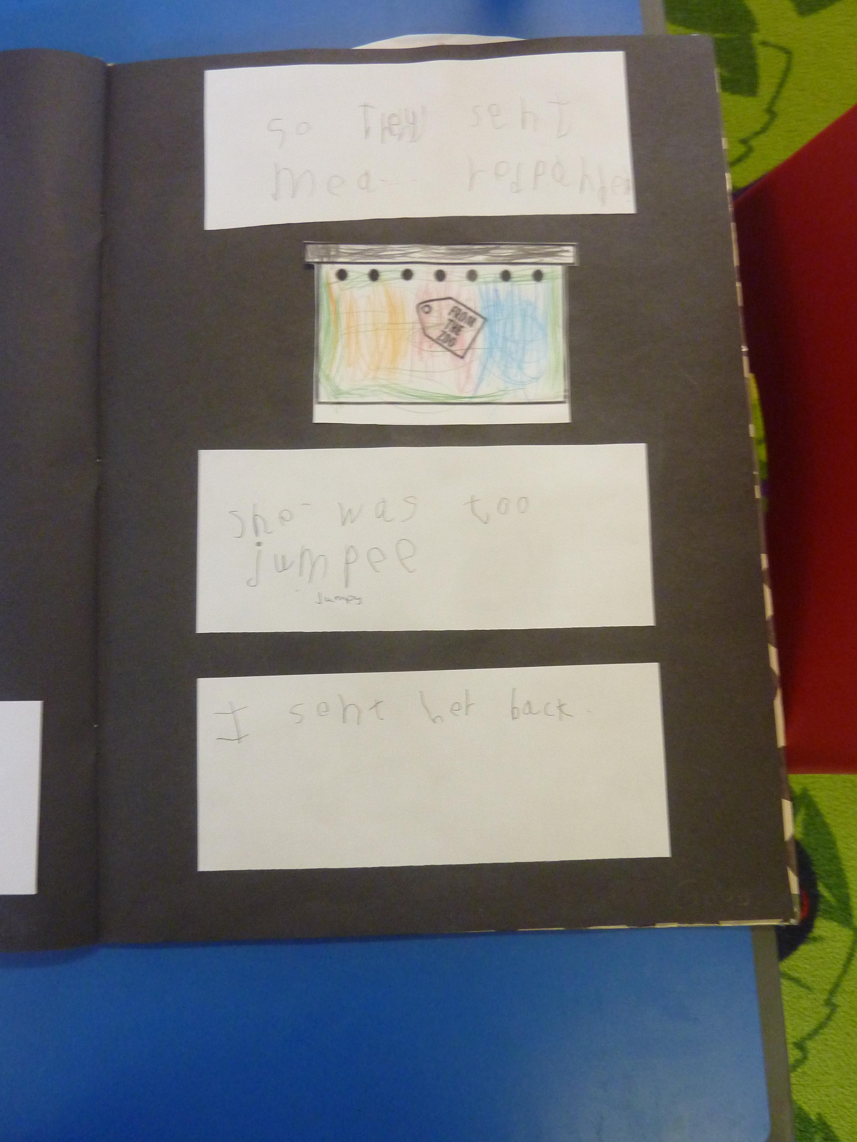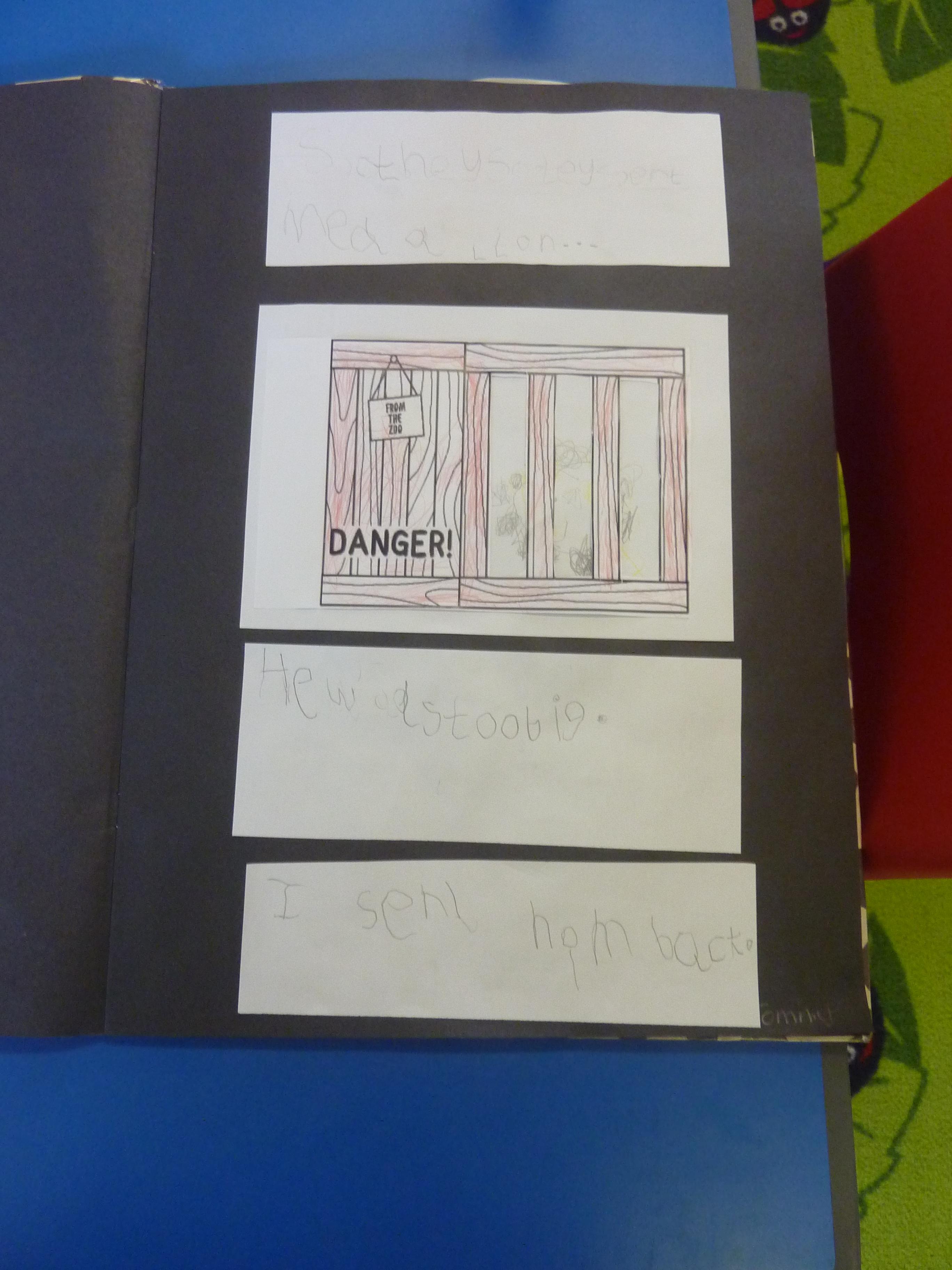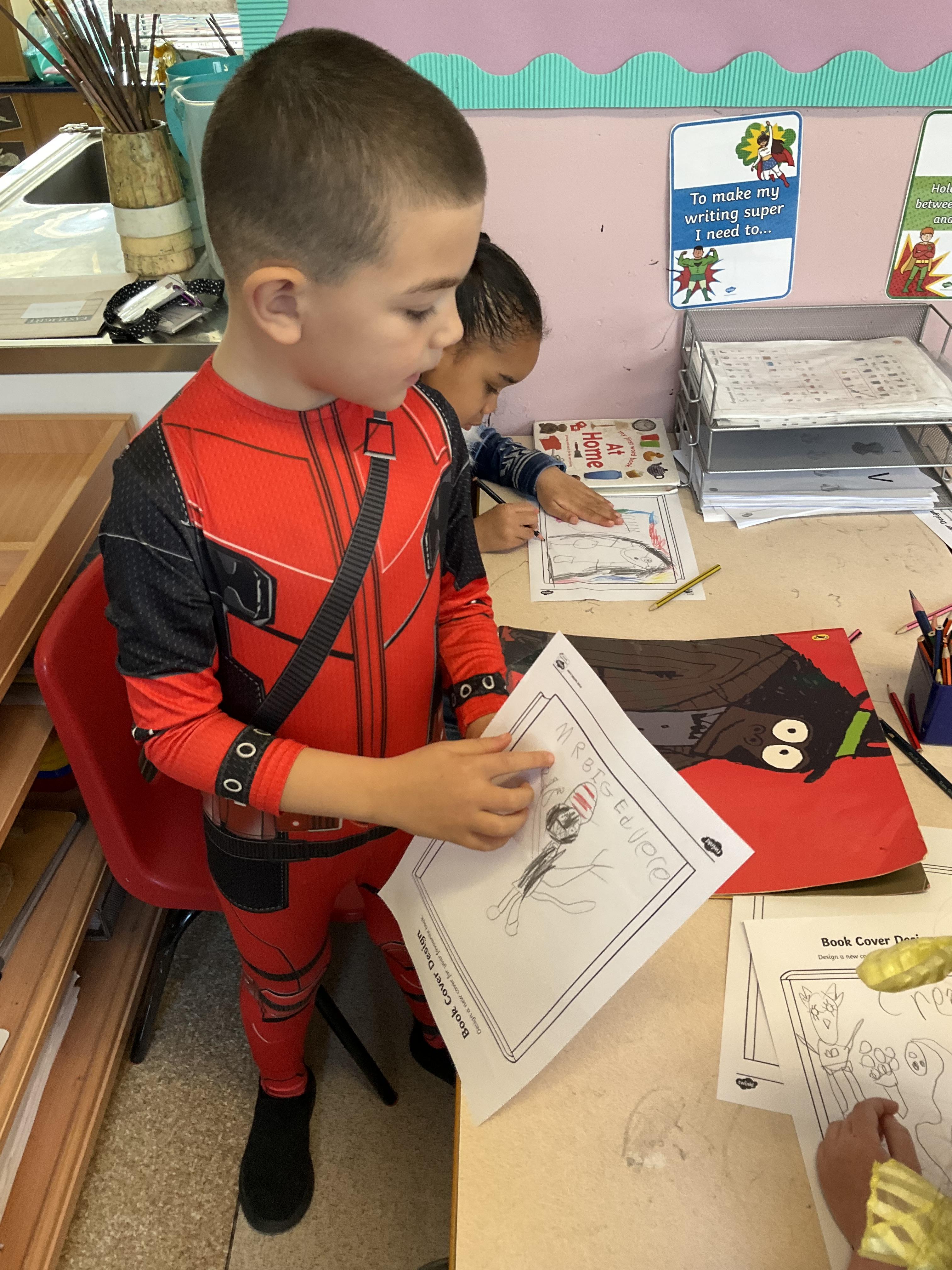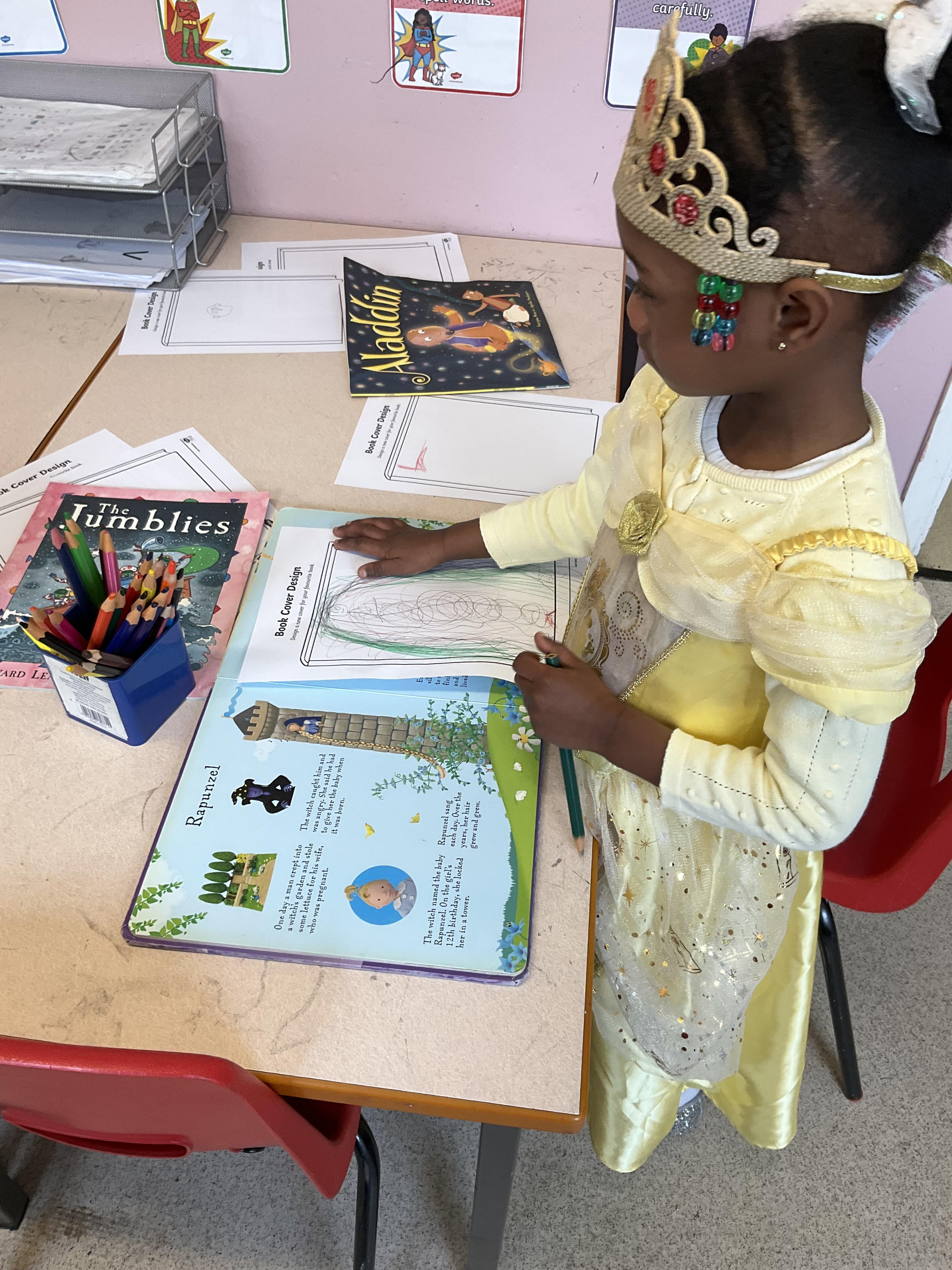 The next day the chidlren drew of a picture of the character they dressed up as. They then treid to use their phonics to write the name of their character.