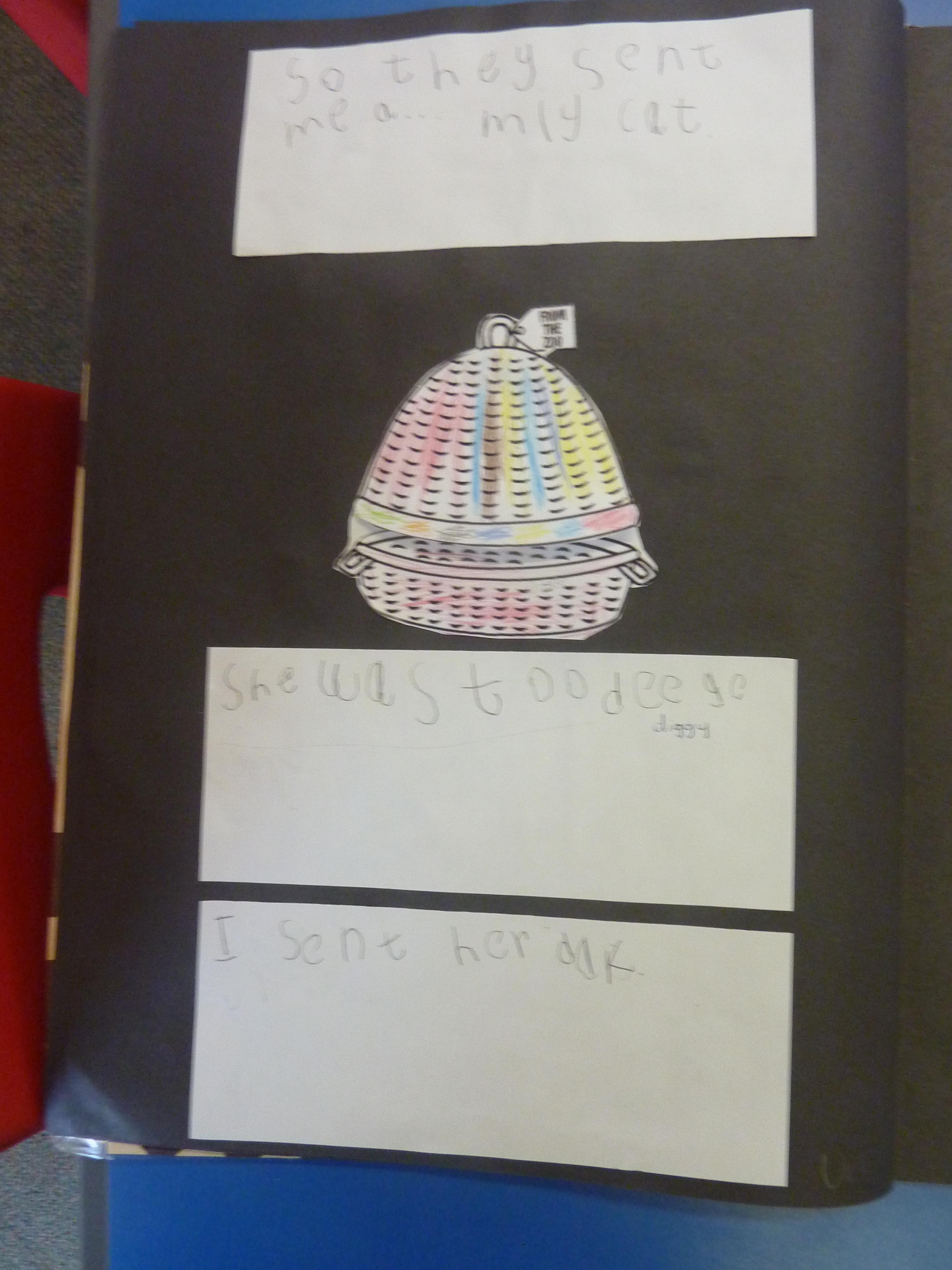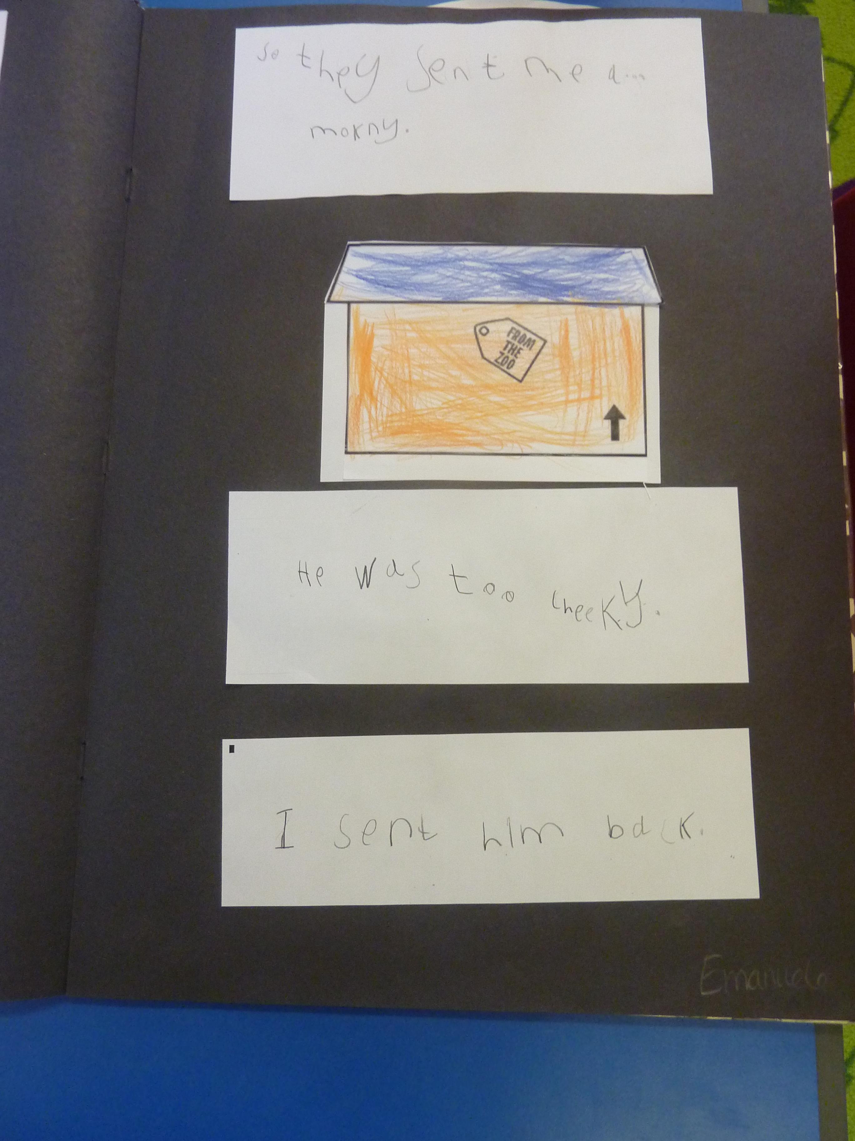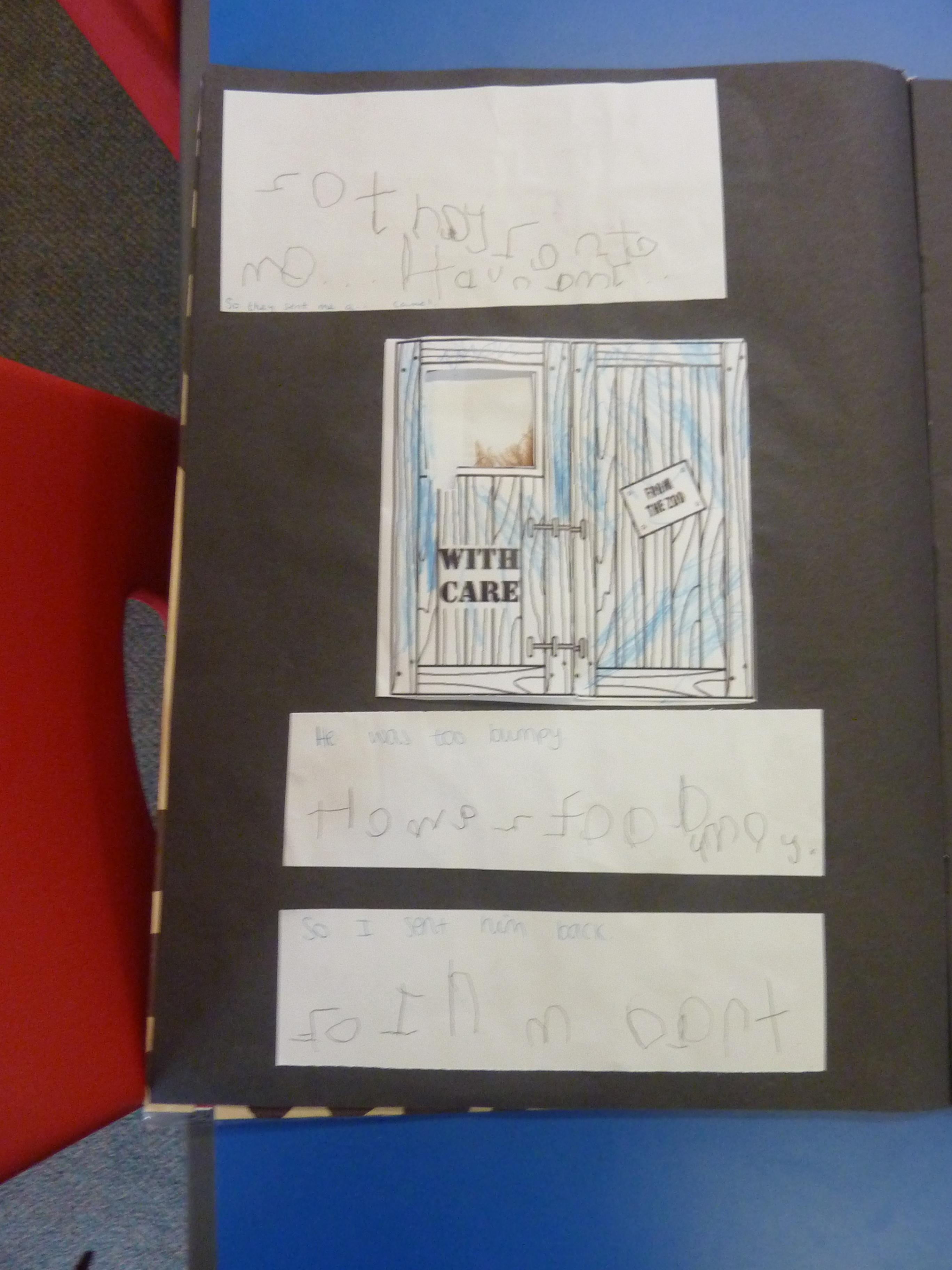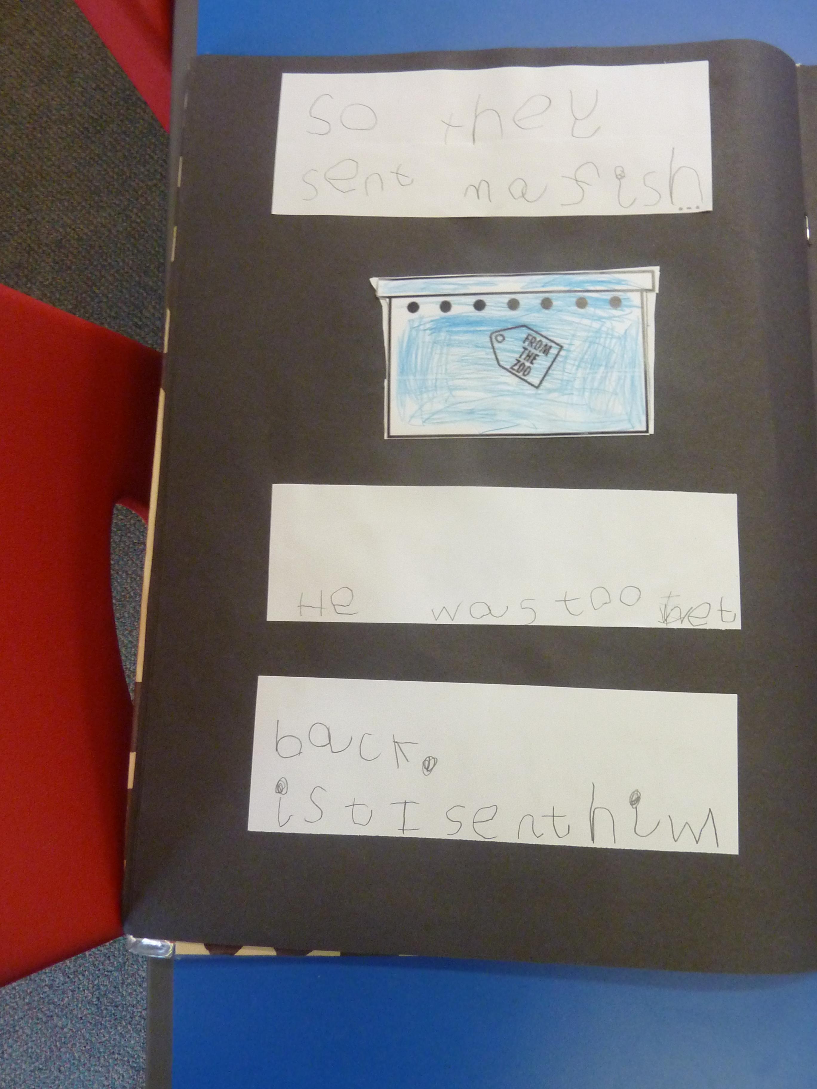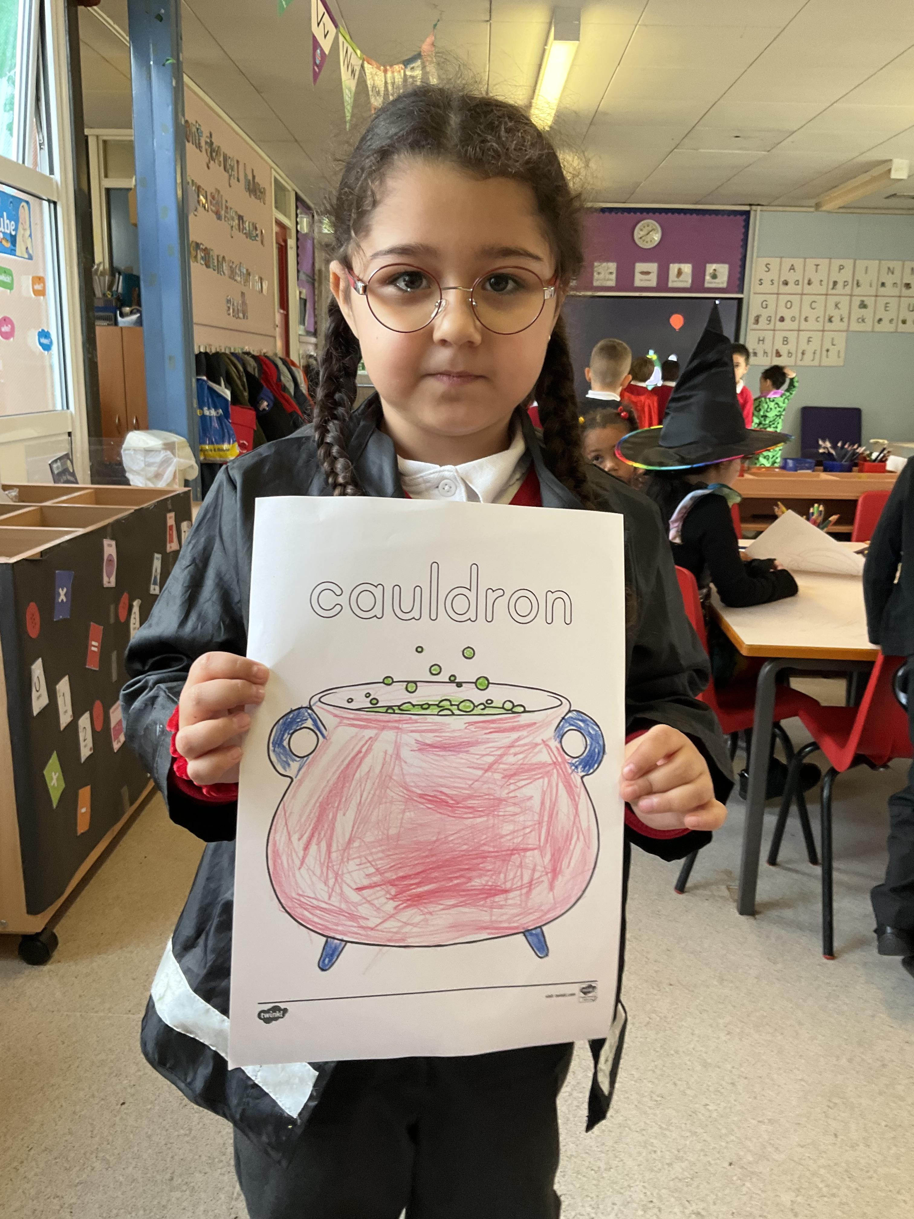 The next day the chidlren drew of a picture of the character they dressed up as. They then treid to use their phonics to write the name of their character.