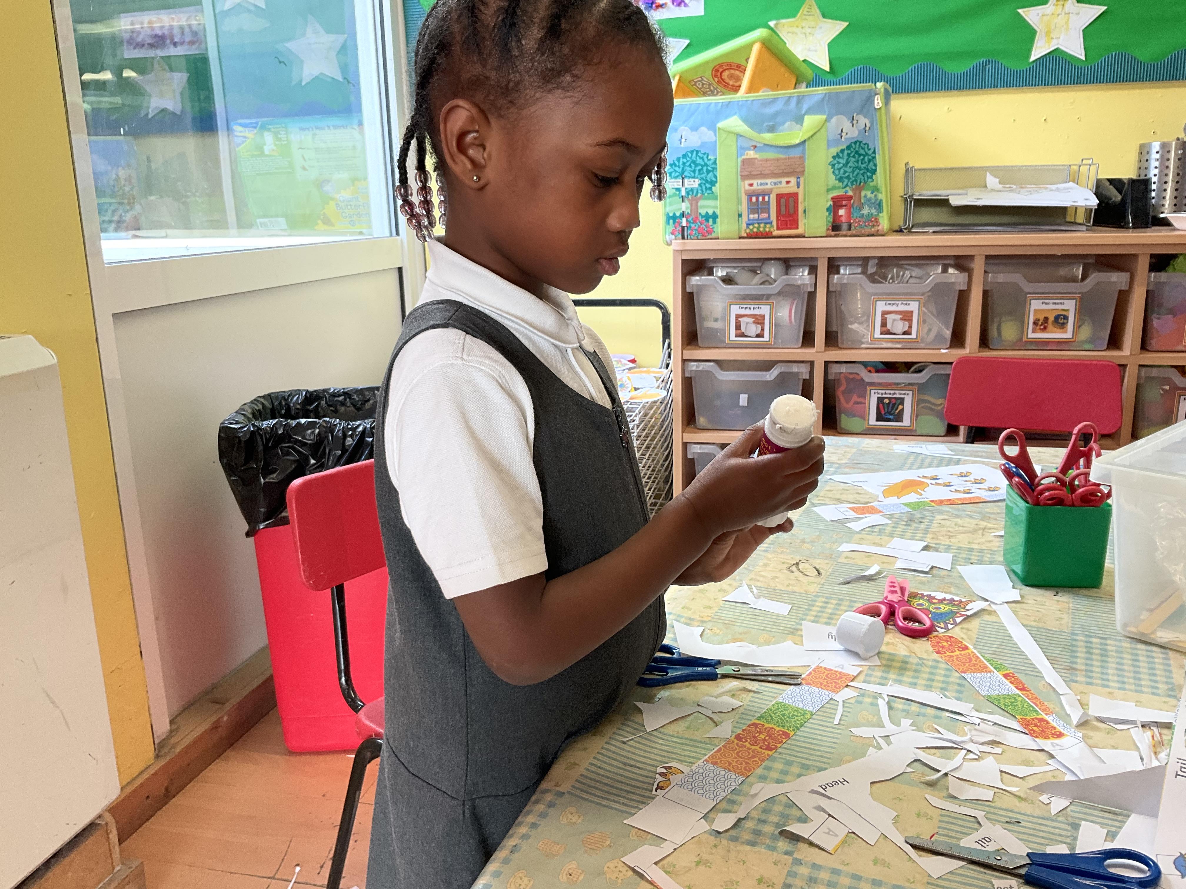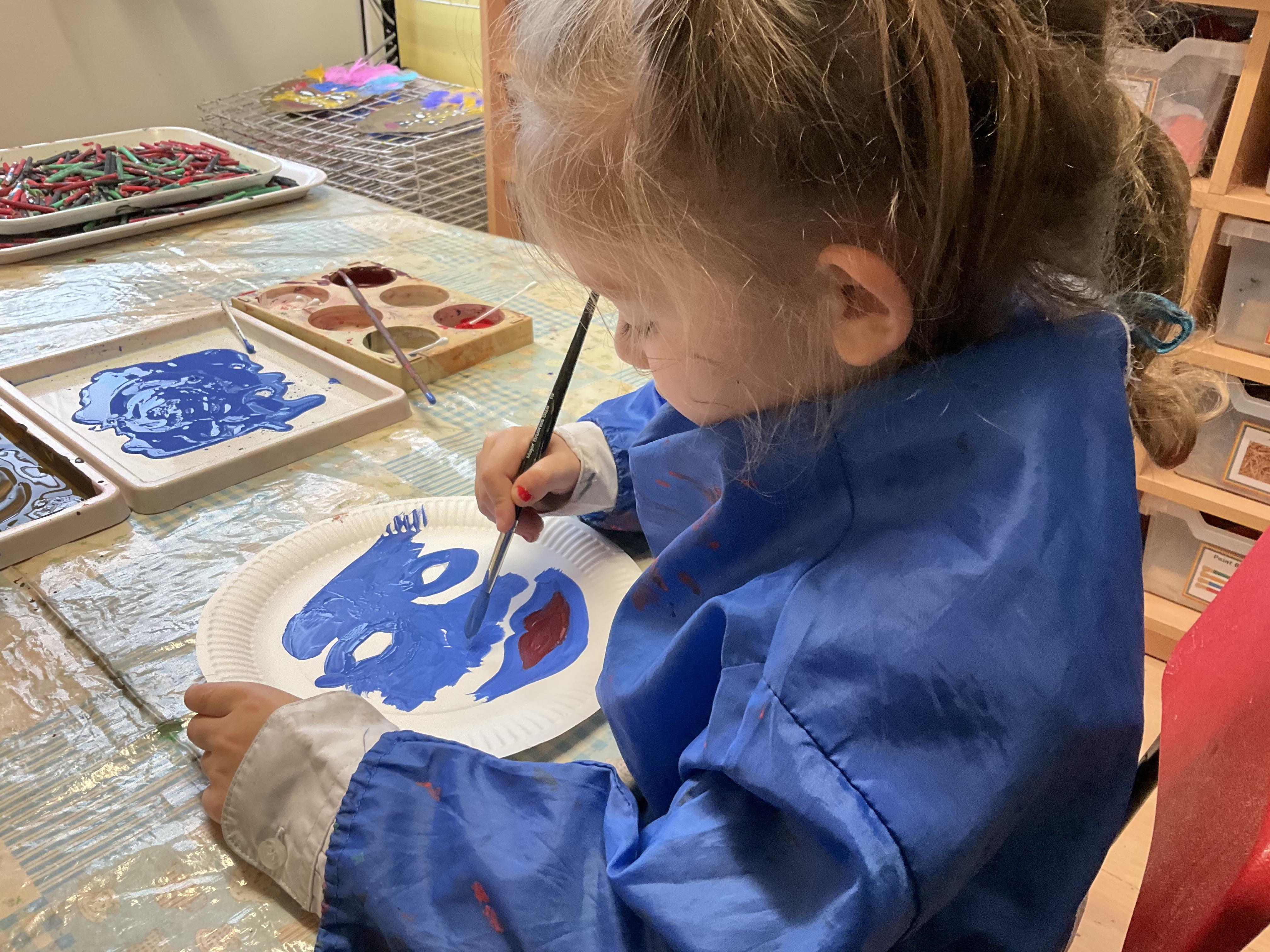The children made Indian Diwali Diya lamps for world market day. They worked together to mix and knead the dough, then shaped it into small diya lamps with their hands. Once dried, the children used paint, glitter, and ribbons to decorate their diyas. They discussed colors, patterns, and shared ideas with their peers, showing pride in their individual designs. Manipulating the dough, painting, and using small materials supported their fine motor development and hand–eye coordination.