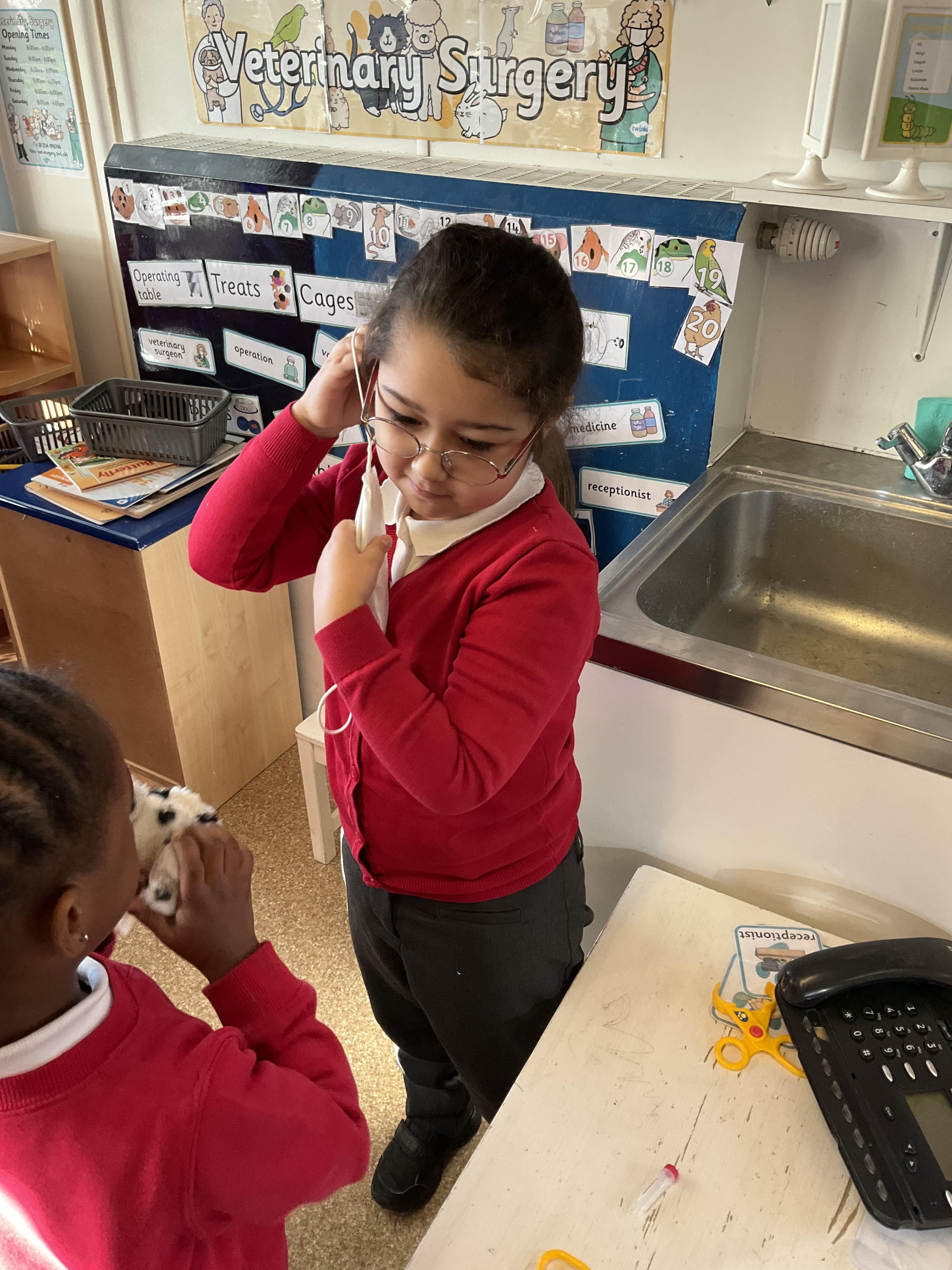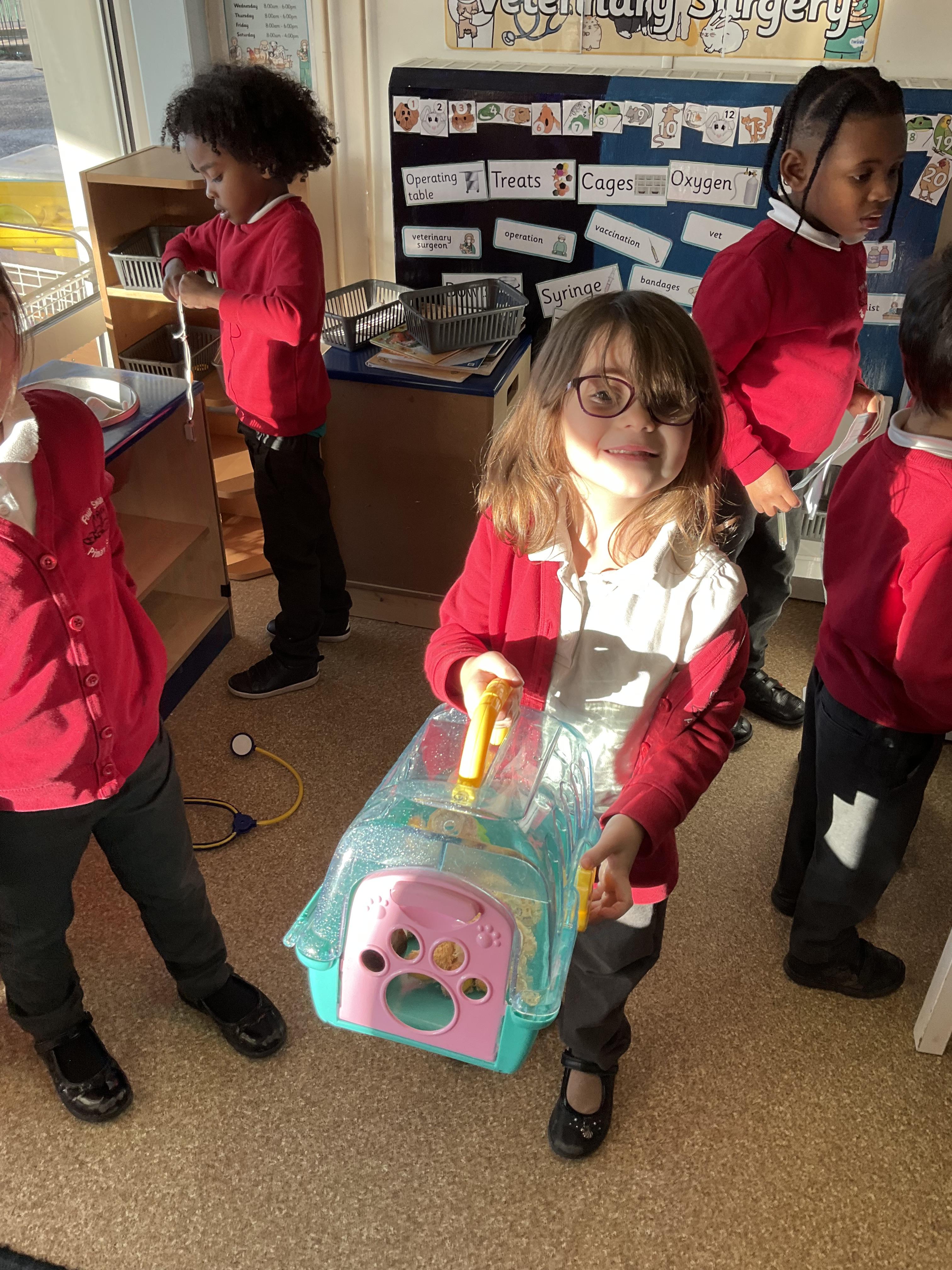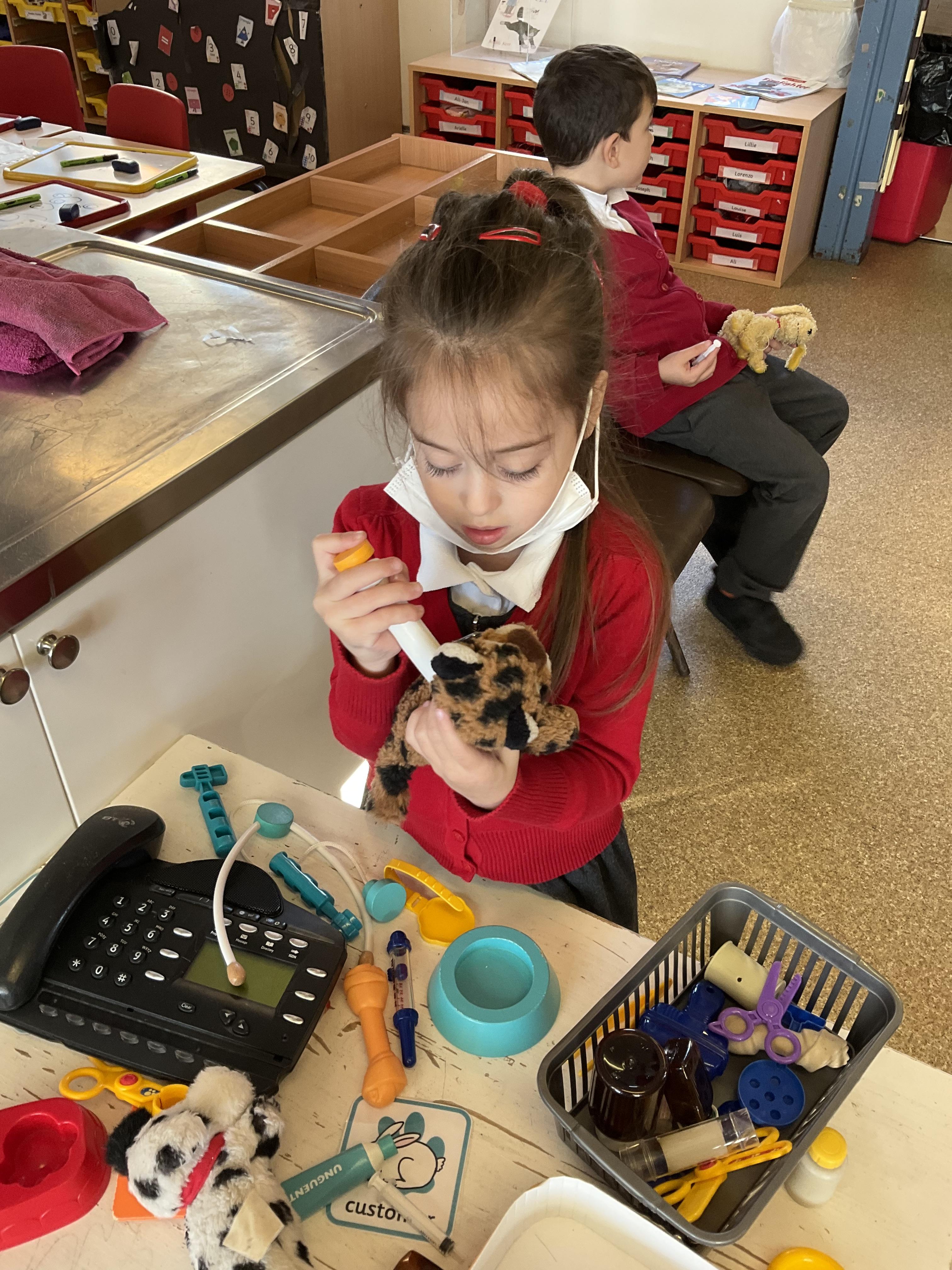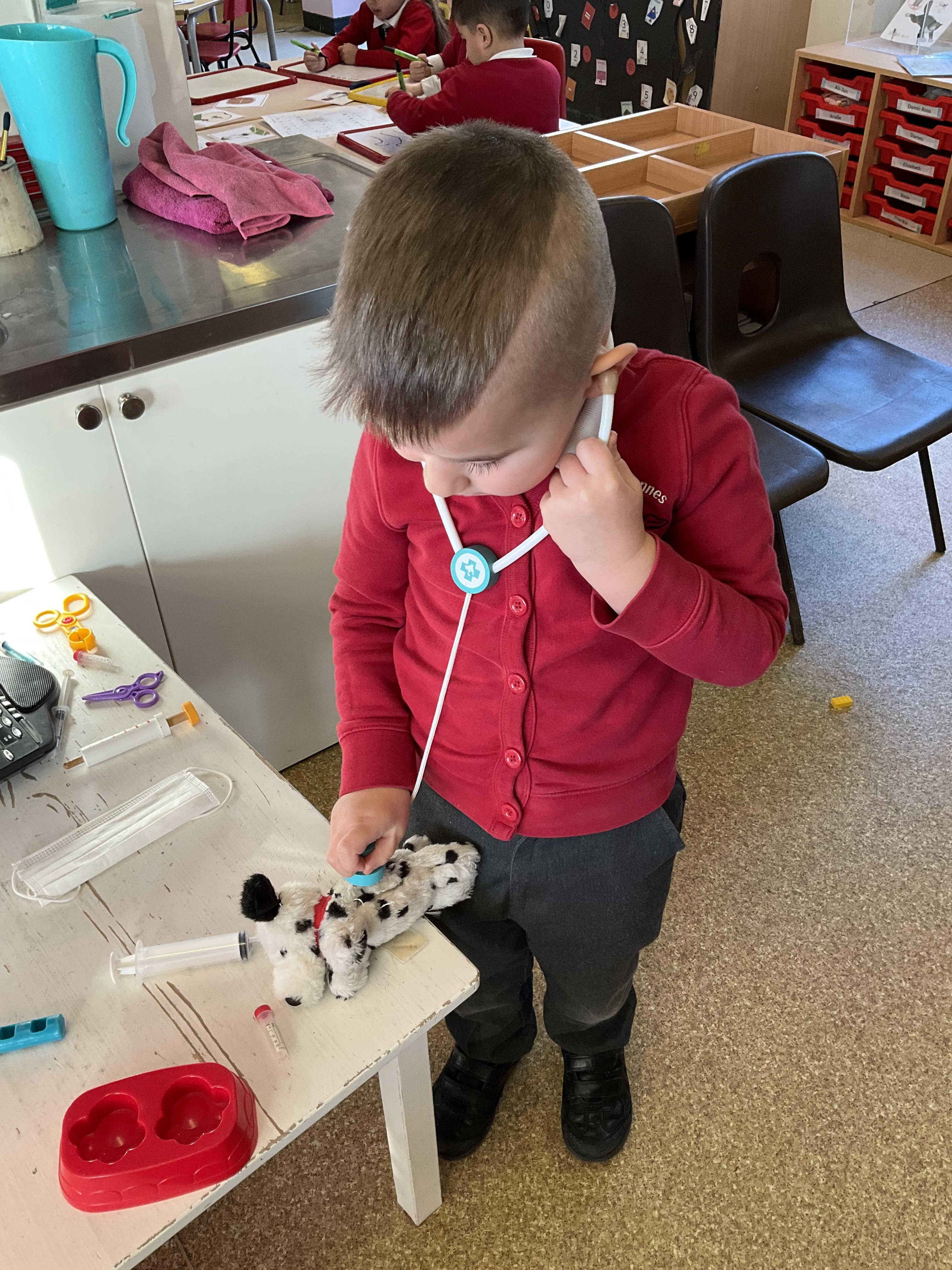 This week the children have been focusing on People Who Help Us. They have been learning about different People Who Help Us and their jobs. The children have also learnt about the vets in particular, who goes to the vets and what happens when you visit the vets. The children have been watching videos to develop their understanding. The children have enjoyed their new role play area this week which is the vets.